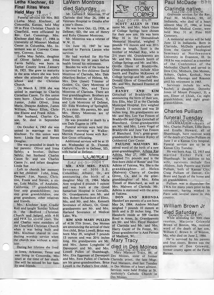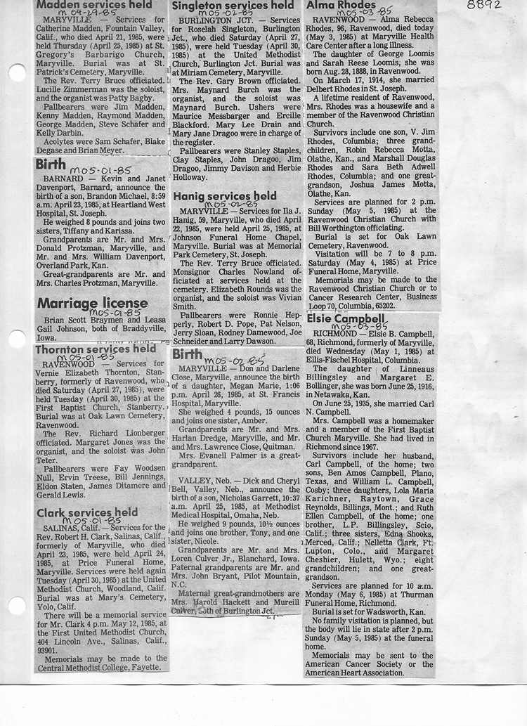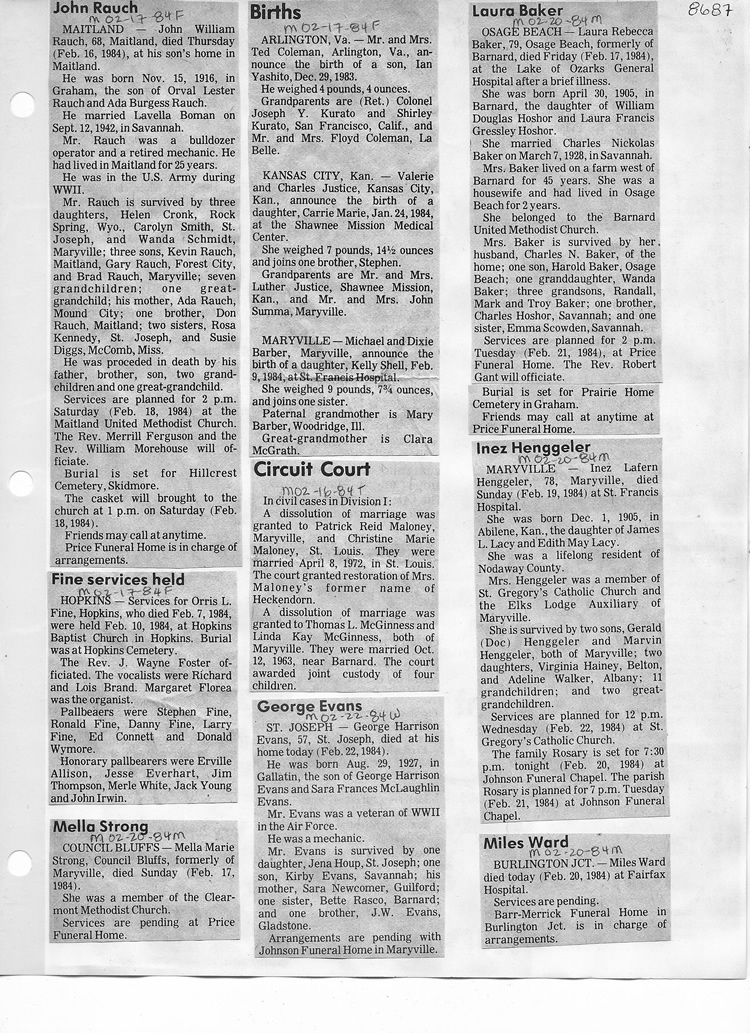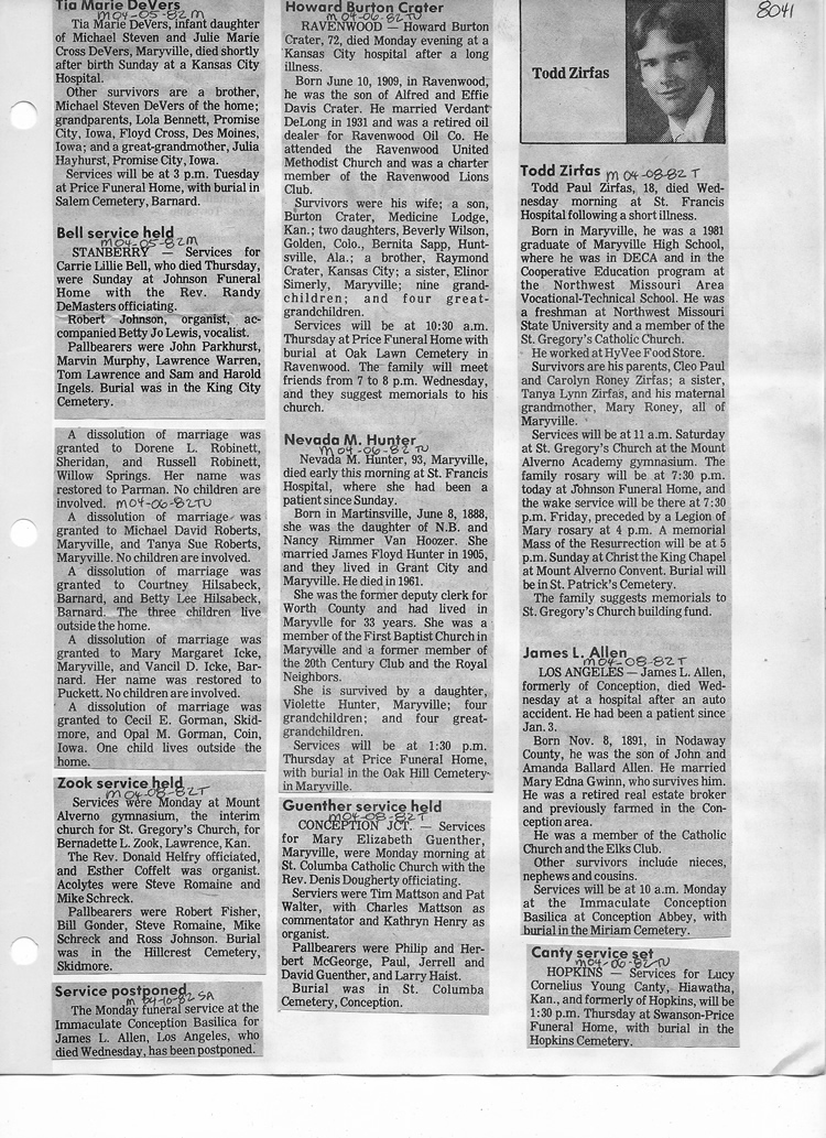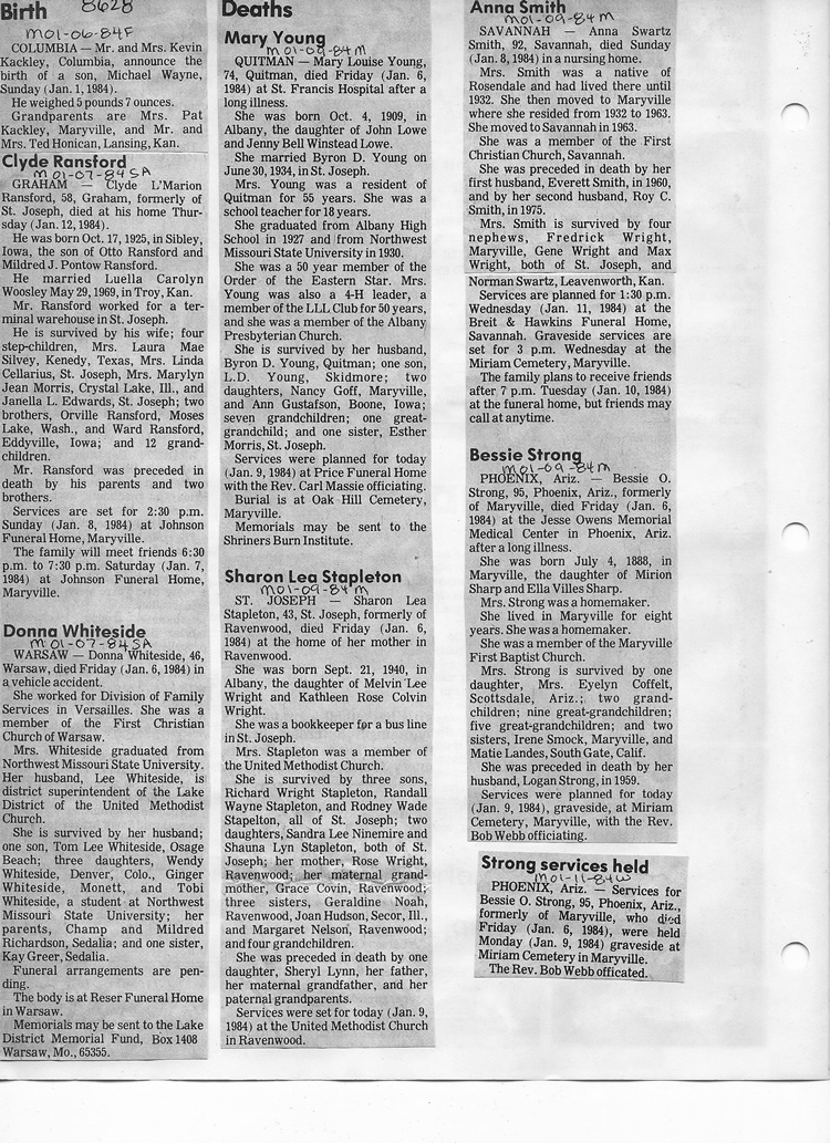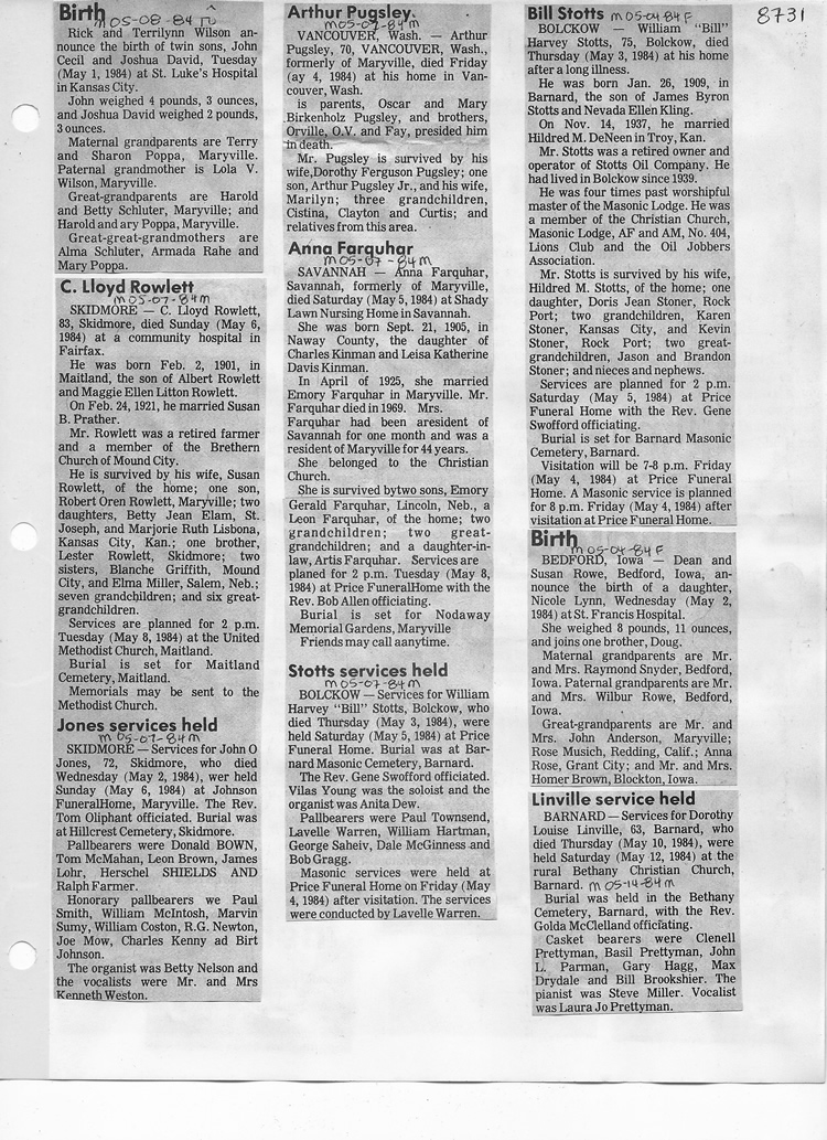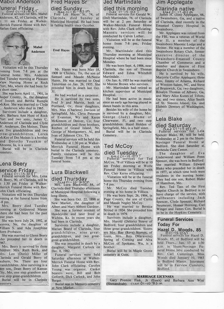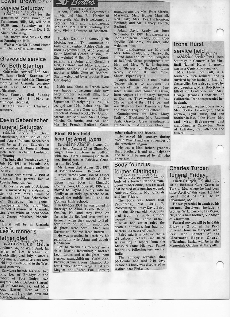 O'Dell's Abstracted Newspaper Index - Clippings - #8000's