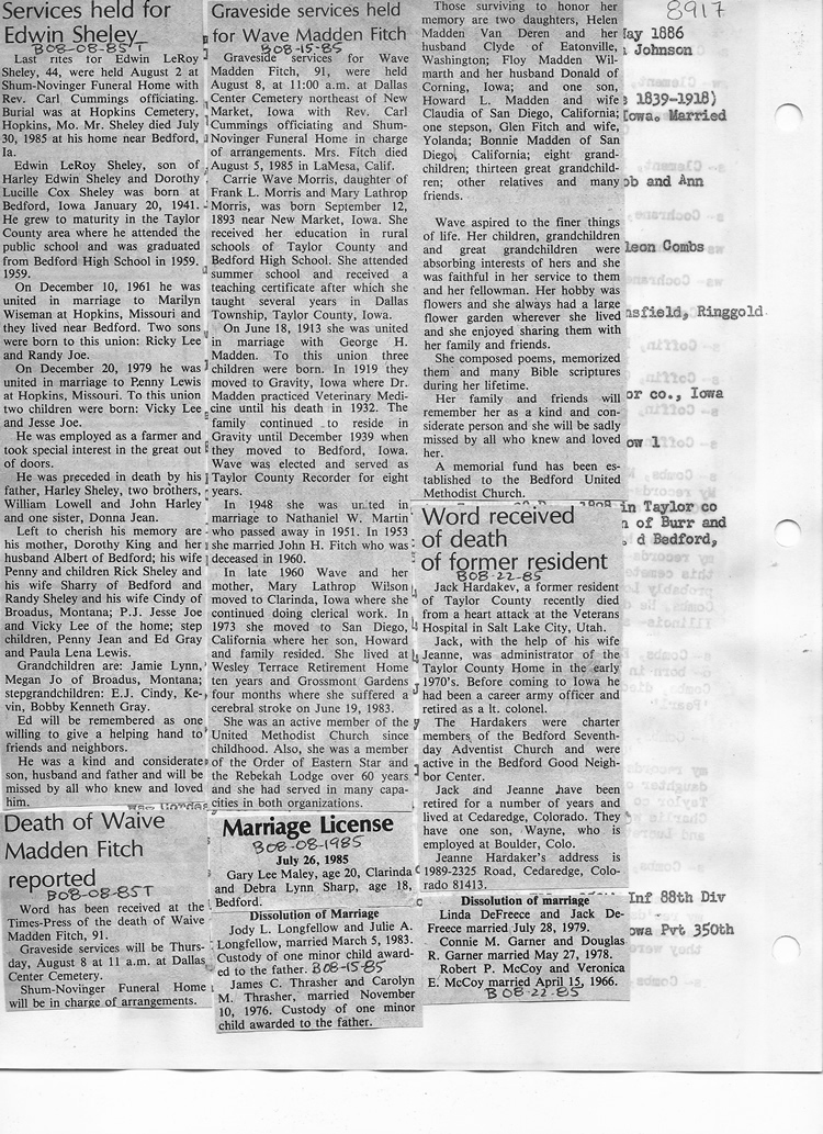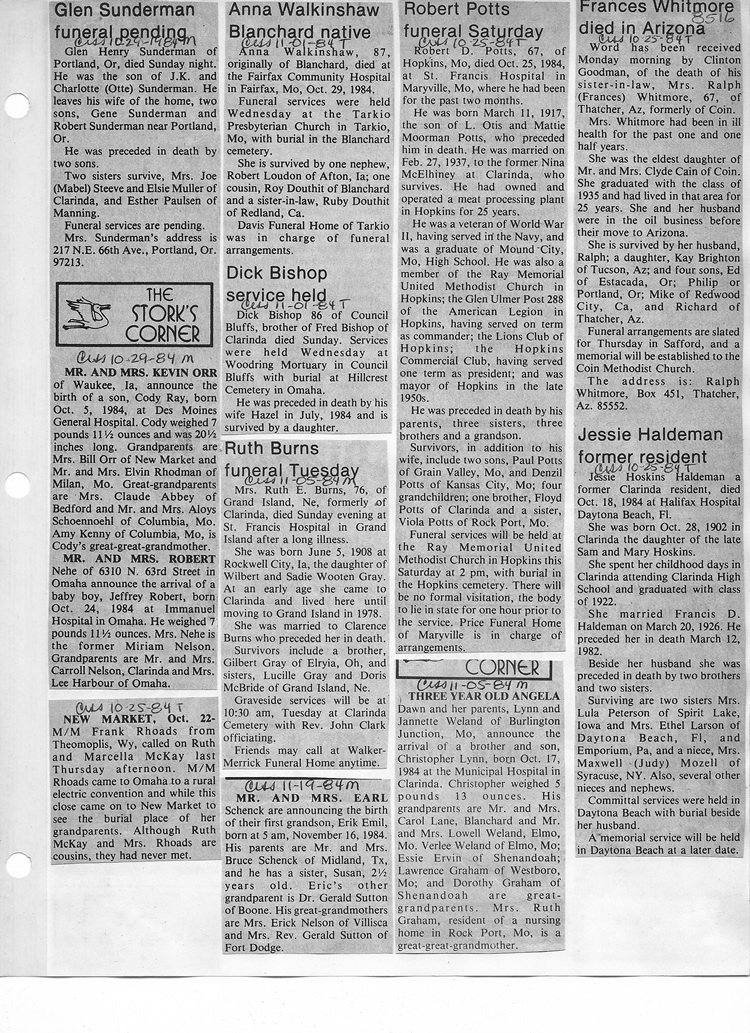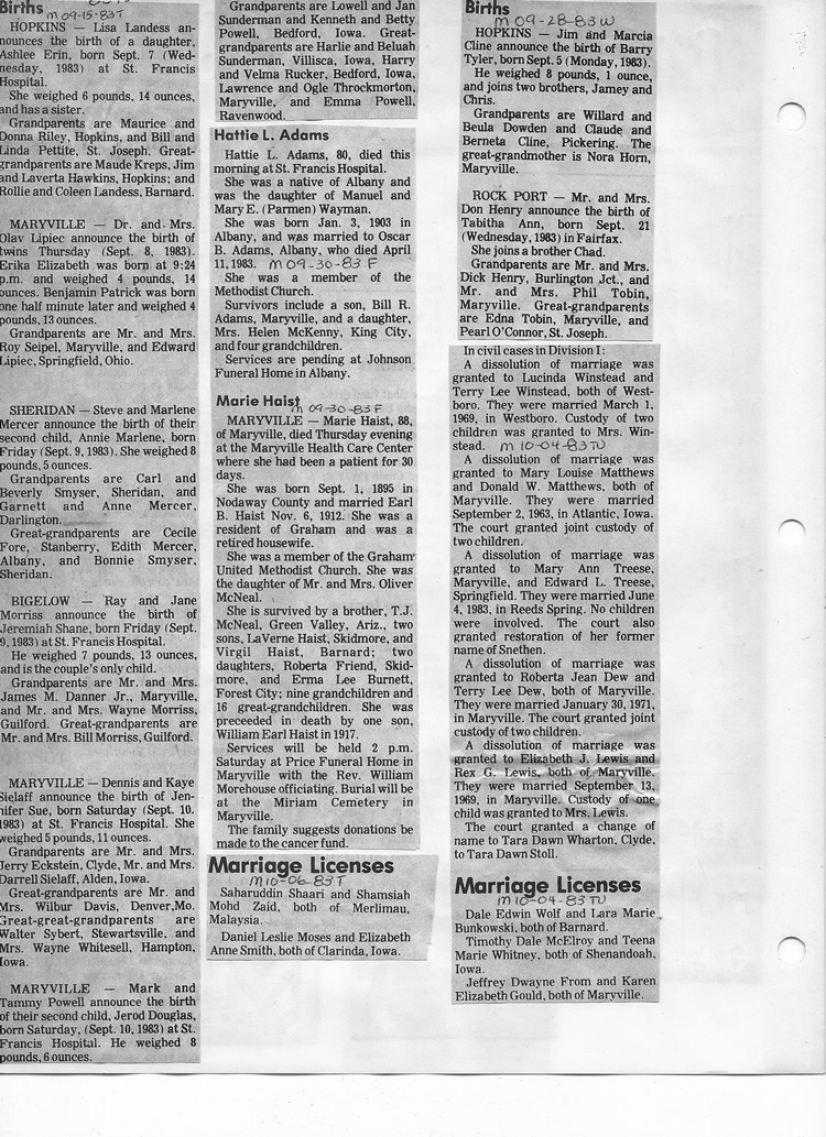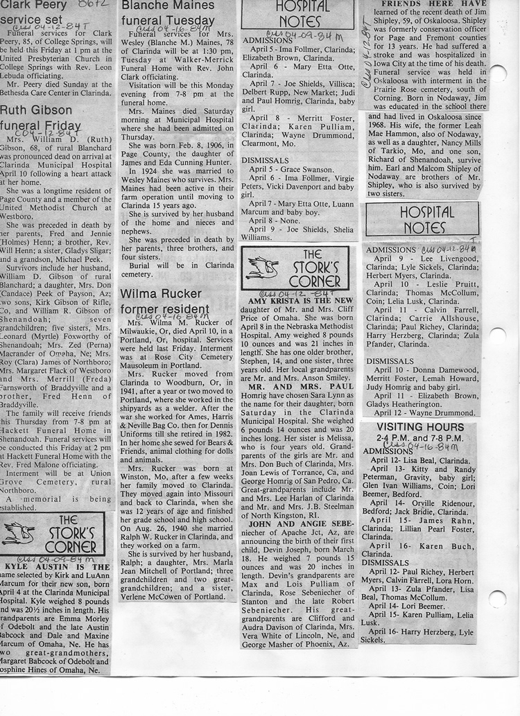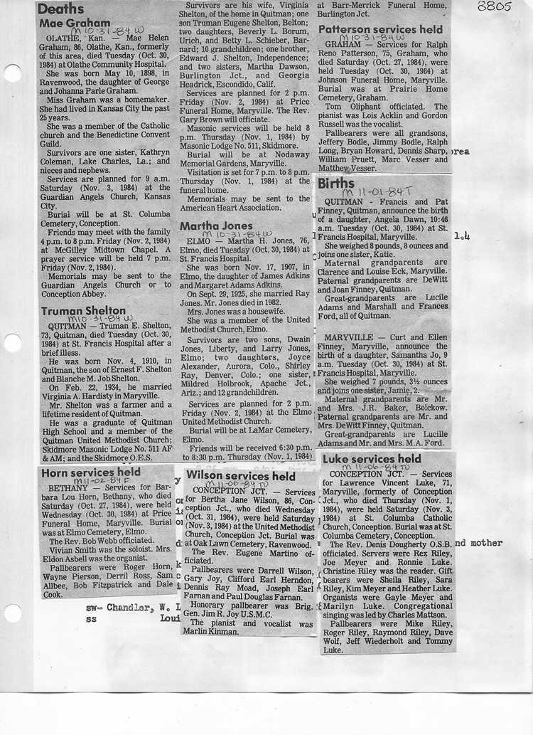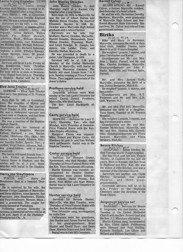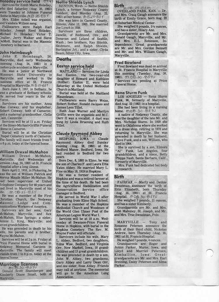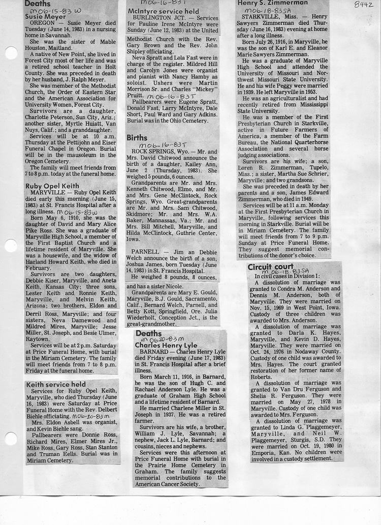 O'Dell's Abstracted Newspaper Index - Clippings - #8000's