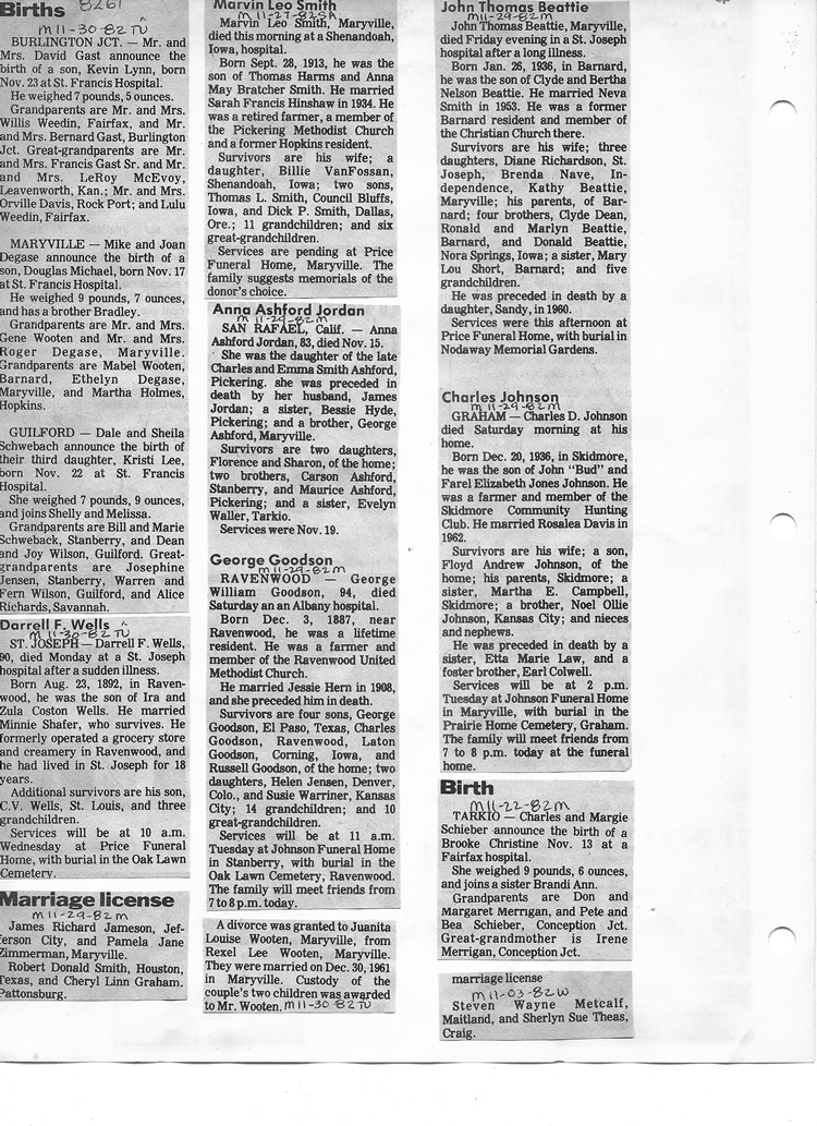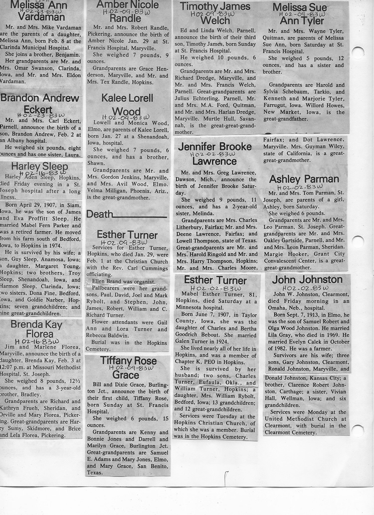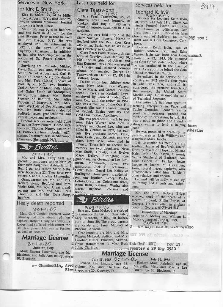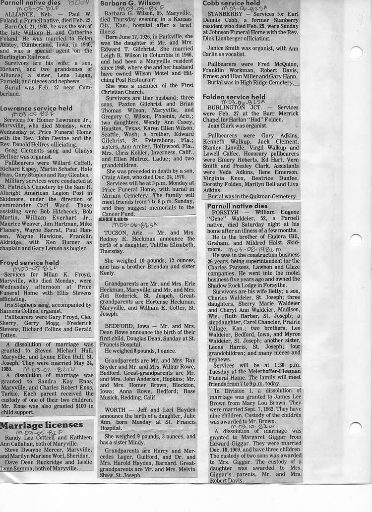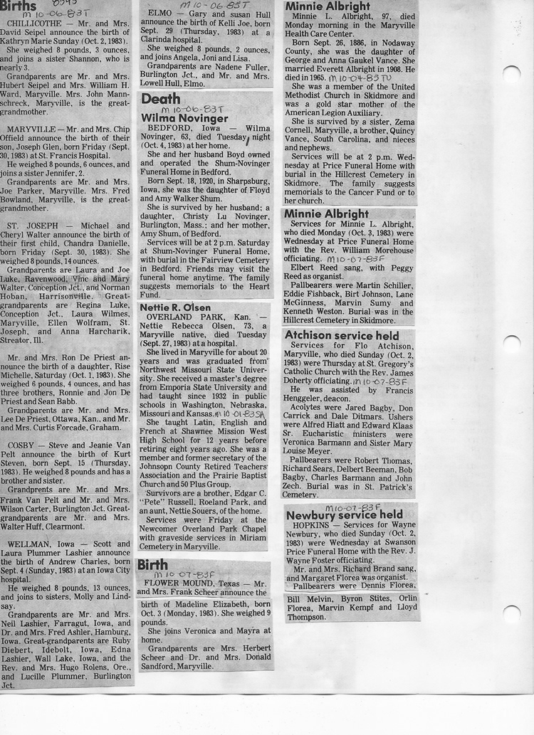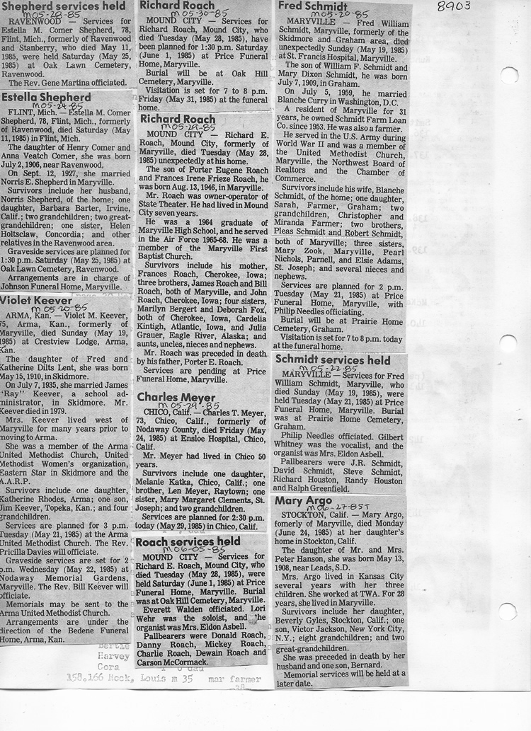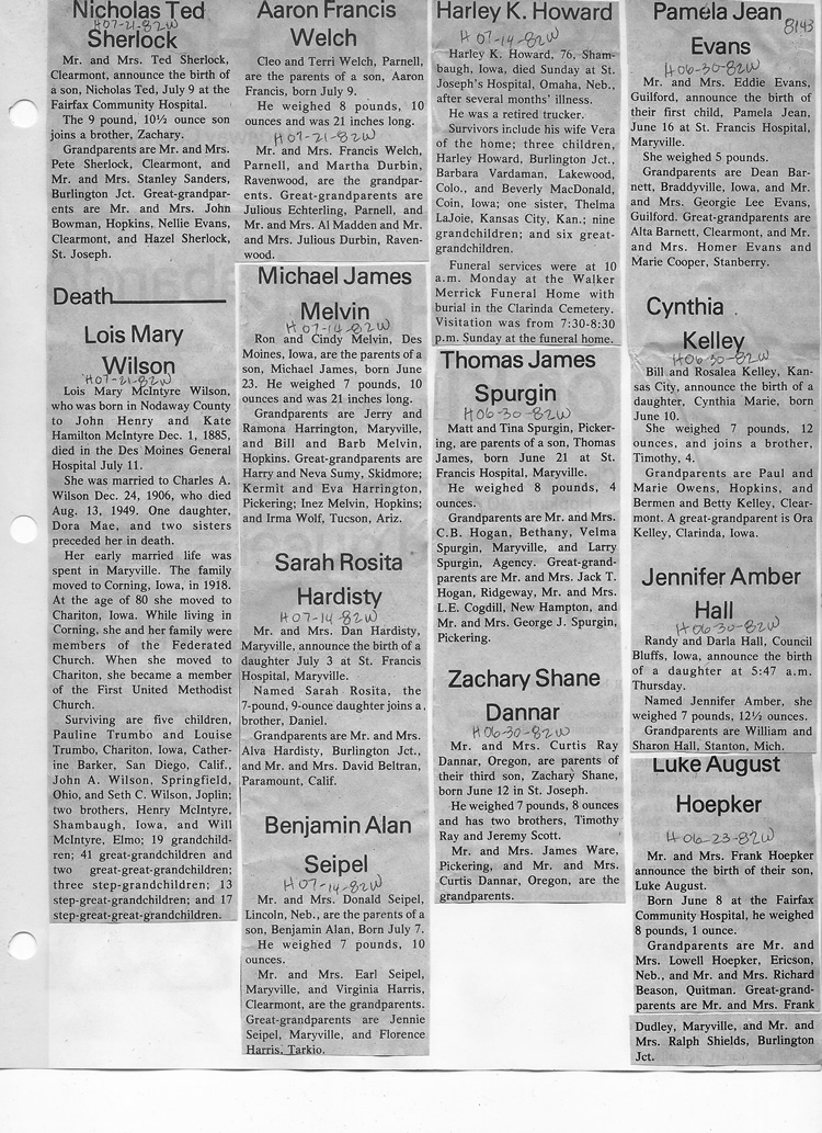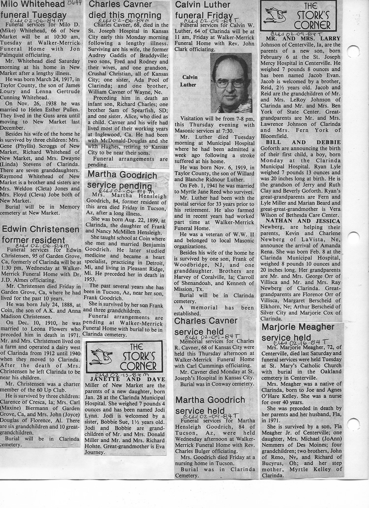 O'Dell's Abstracted Newspaper Index - Clippings - #8000's