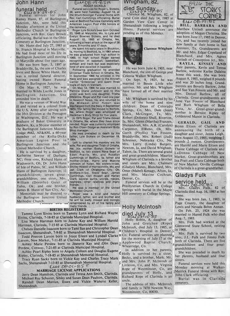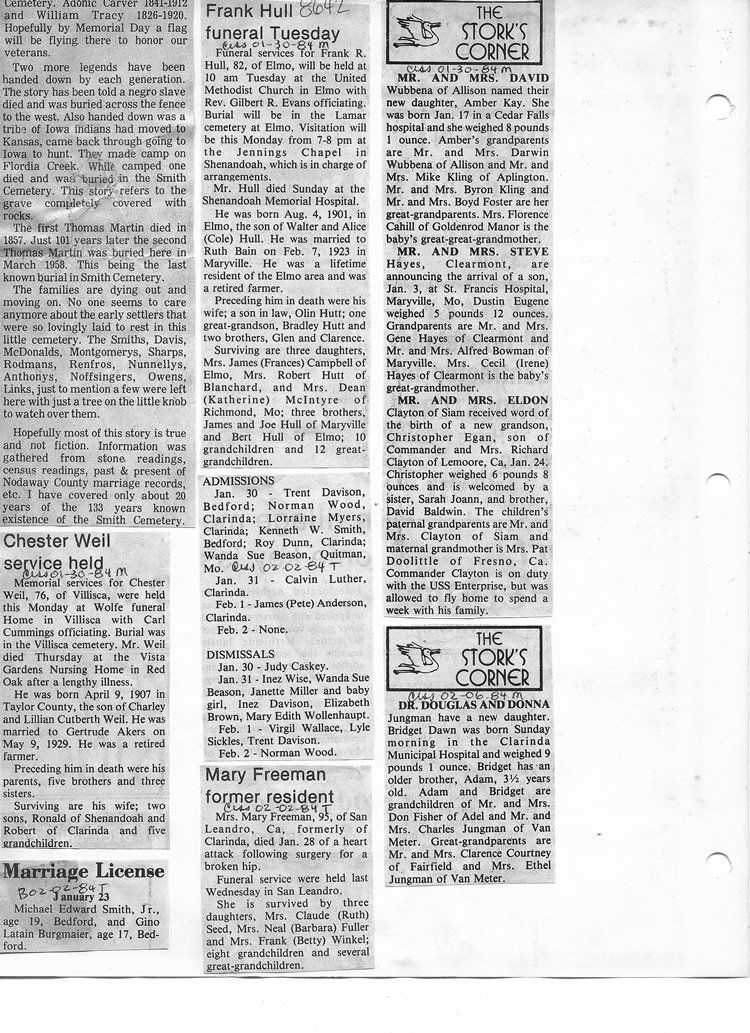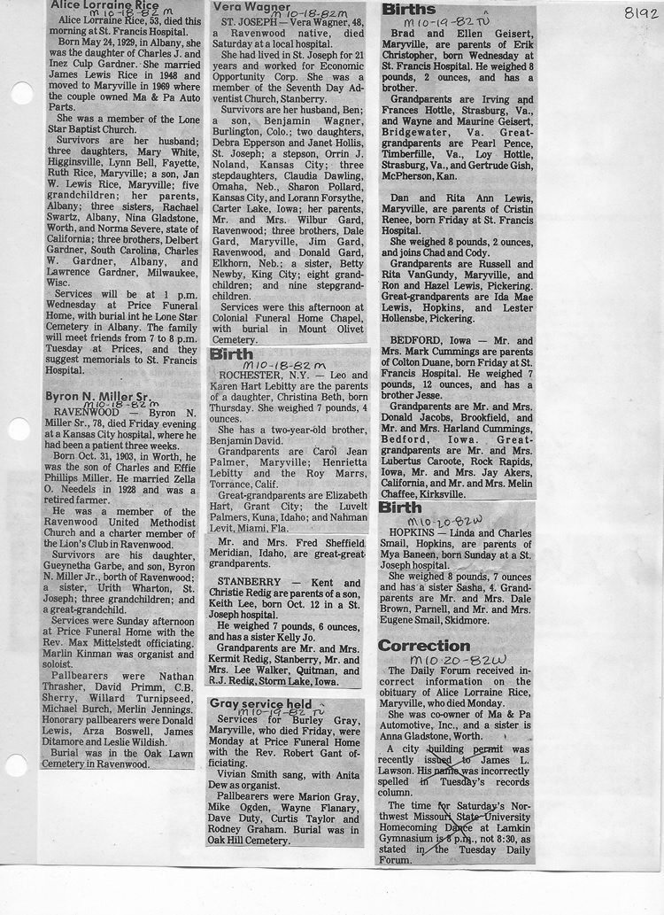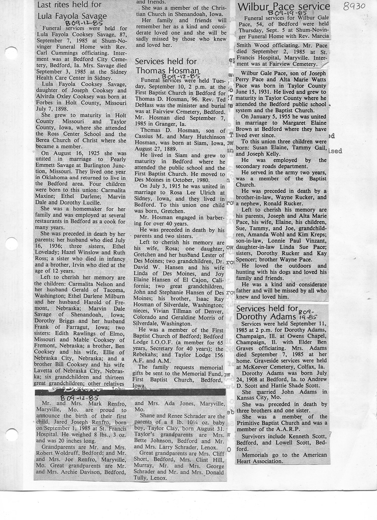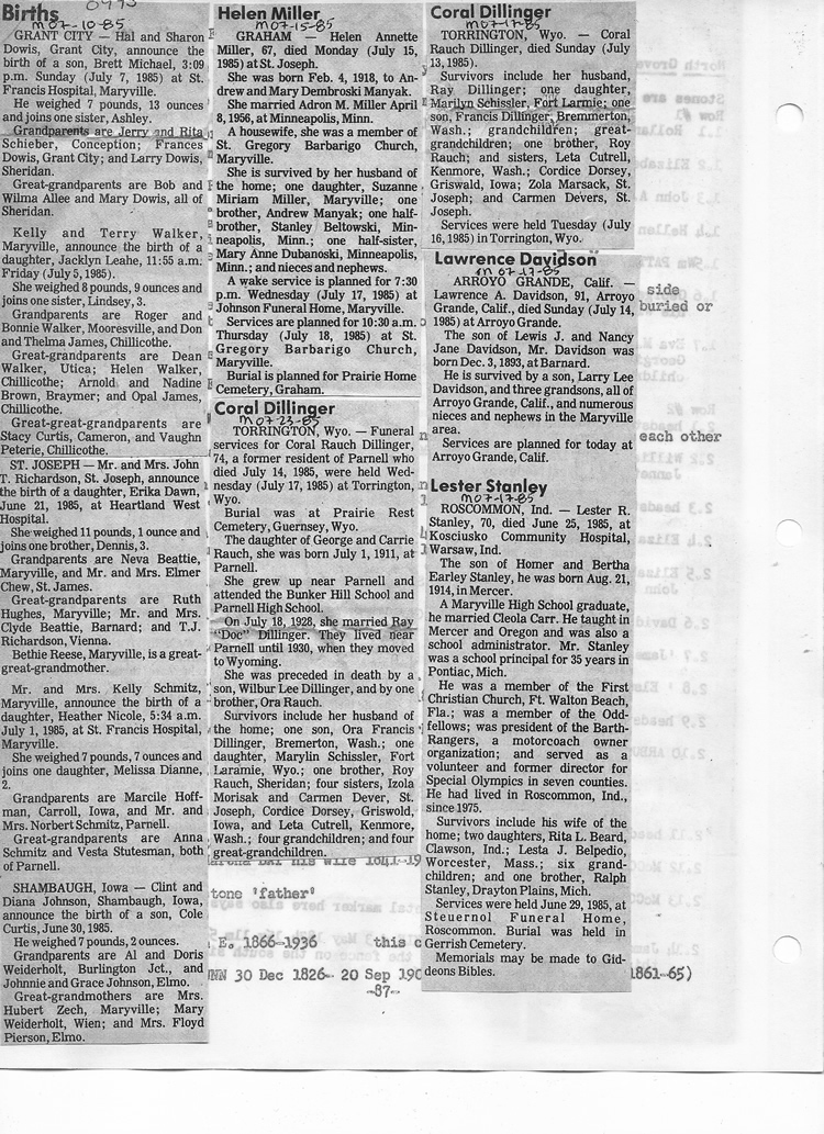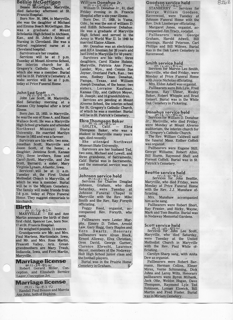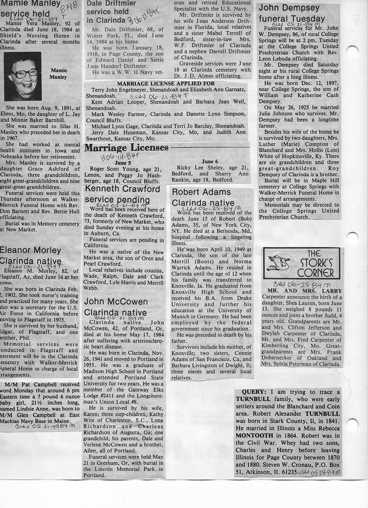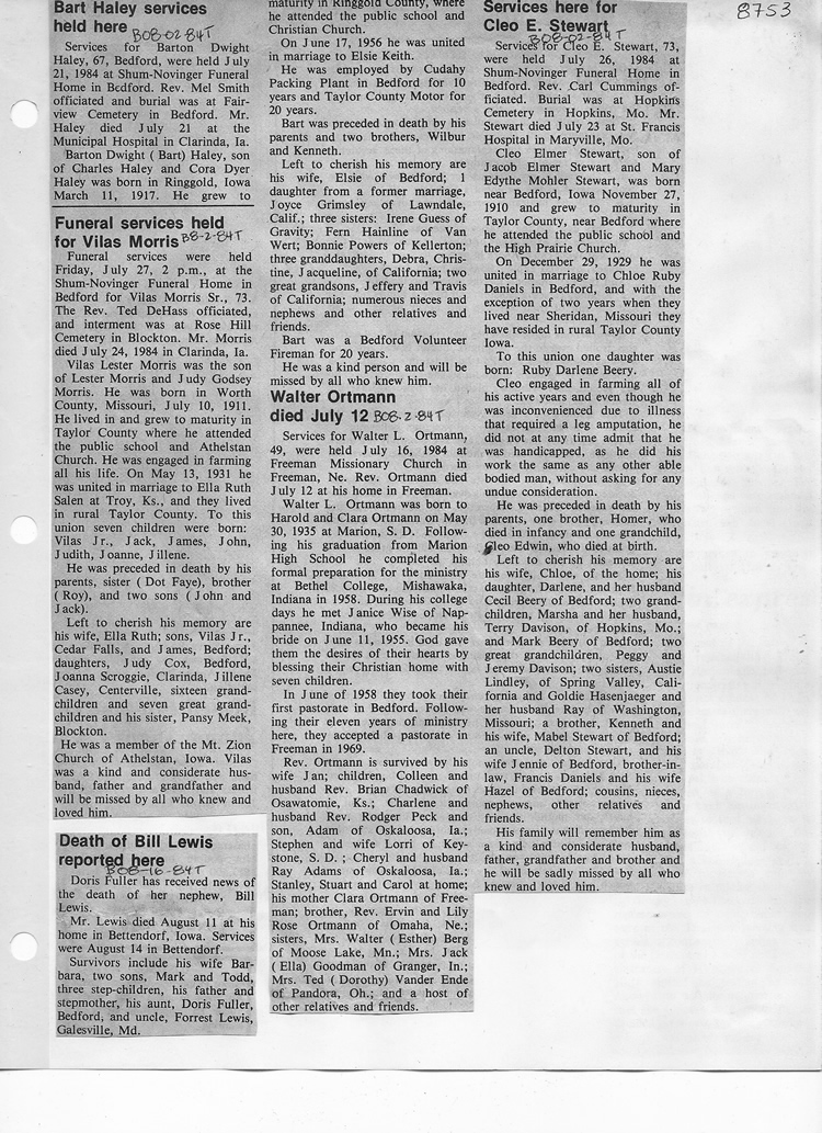 O'Dell's Abstracted Newspaper Index - Clippings - #8000's