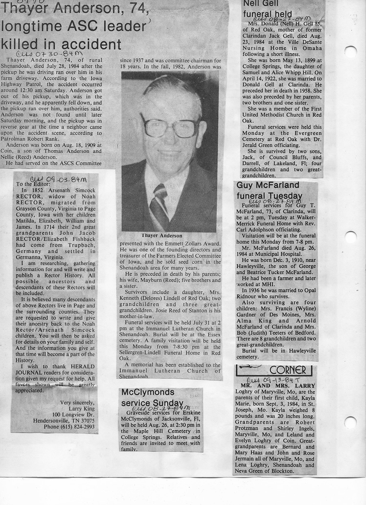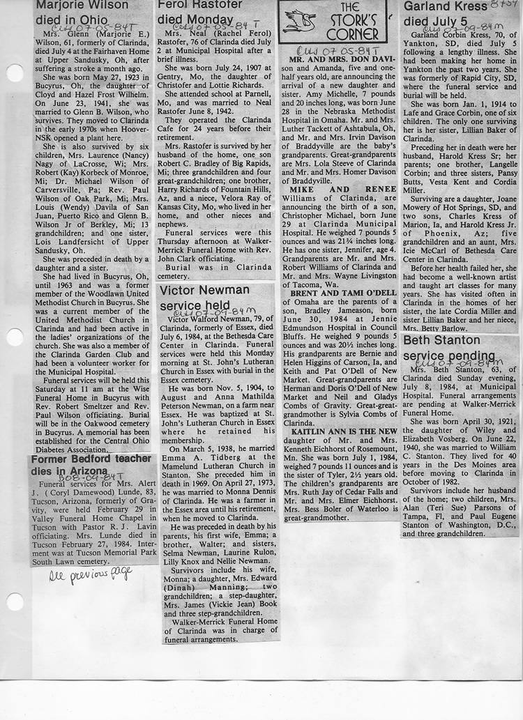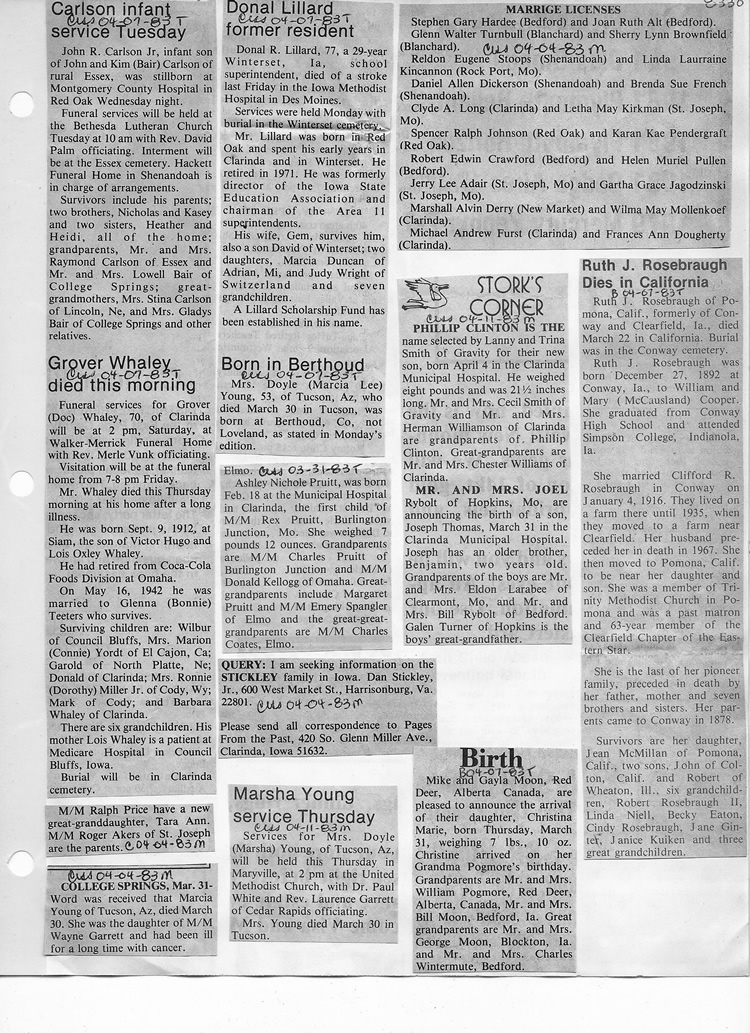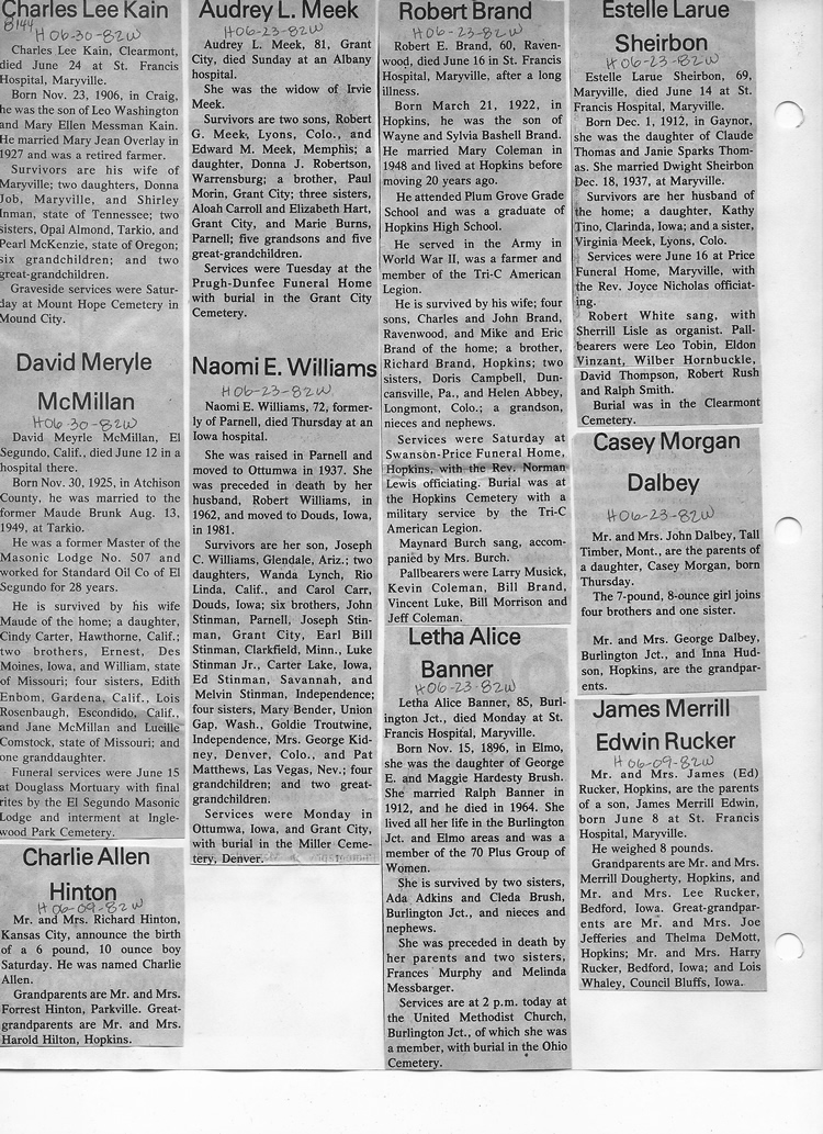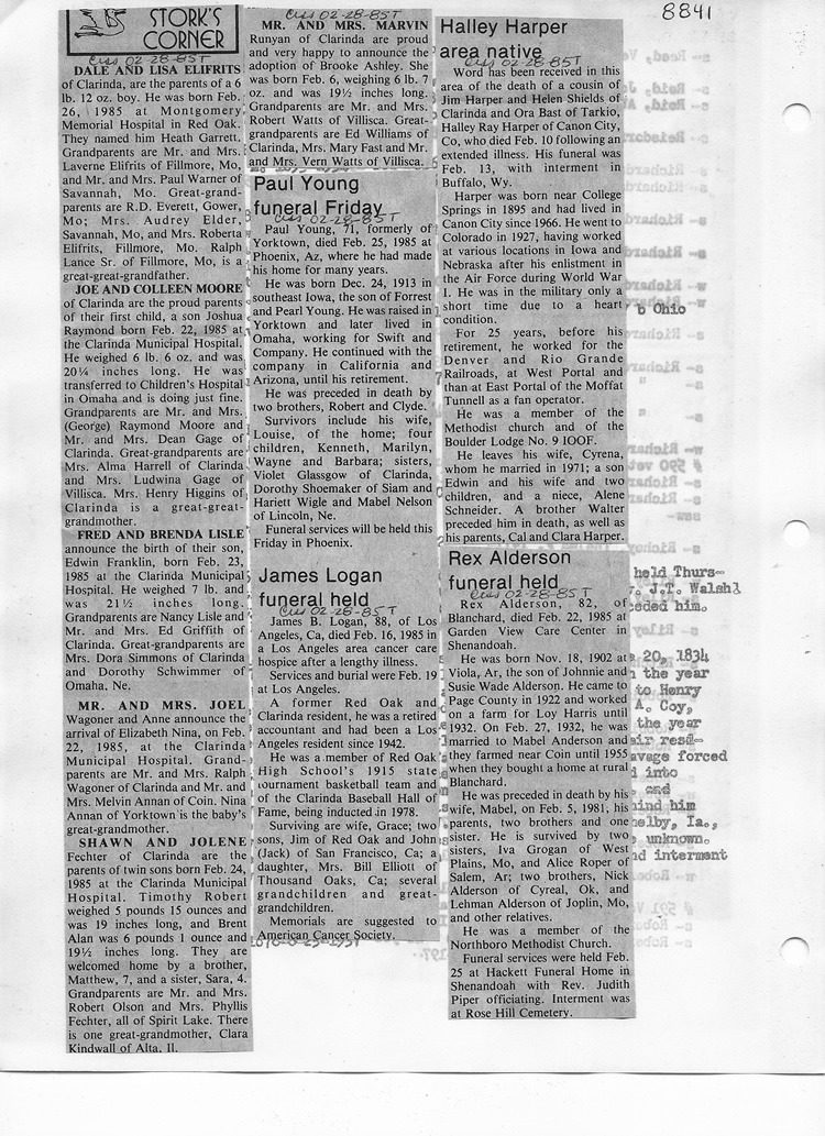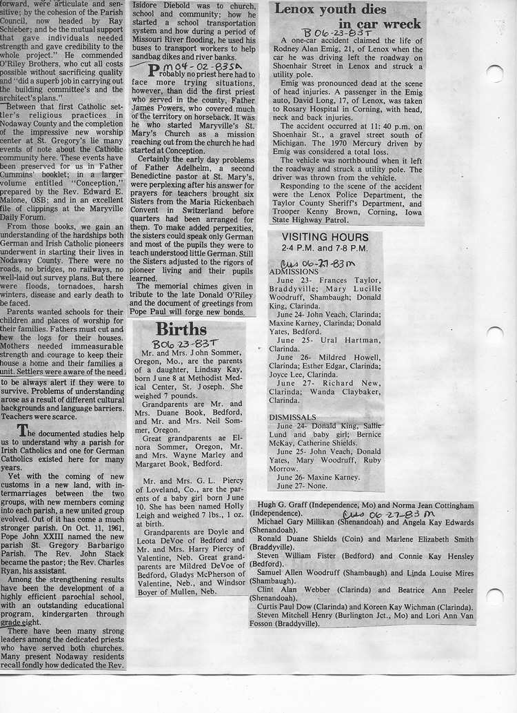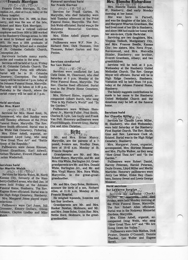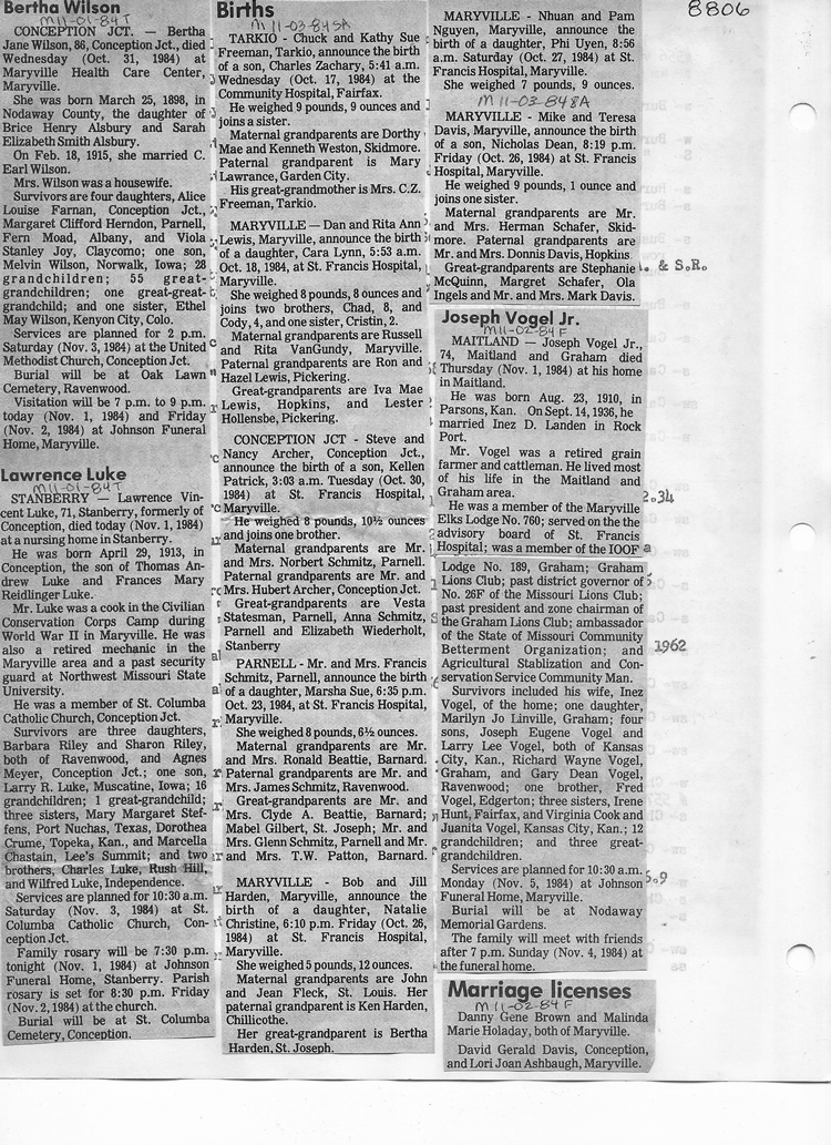 O'Dell's Abstracted Newspaper Index - Clippings - #8000's