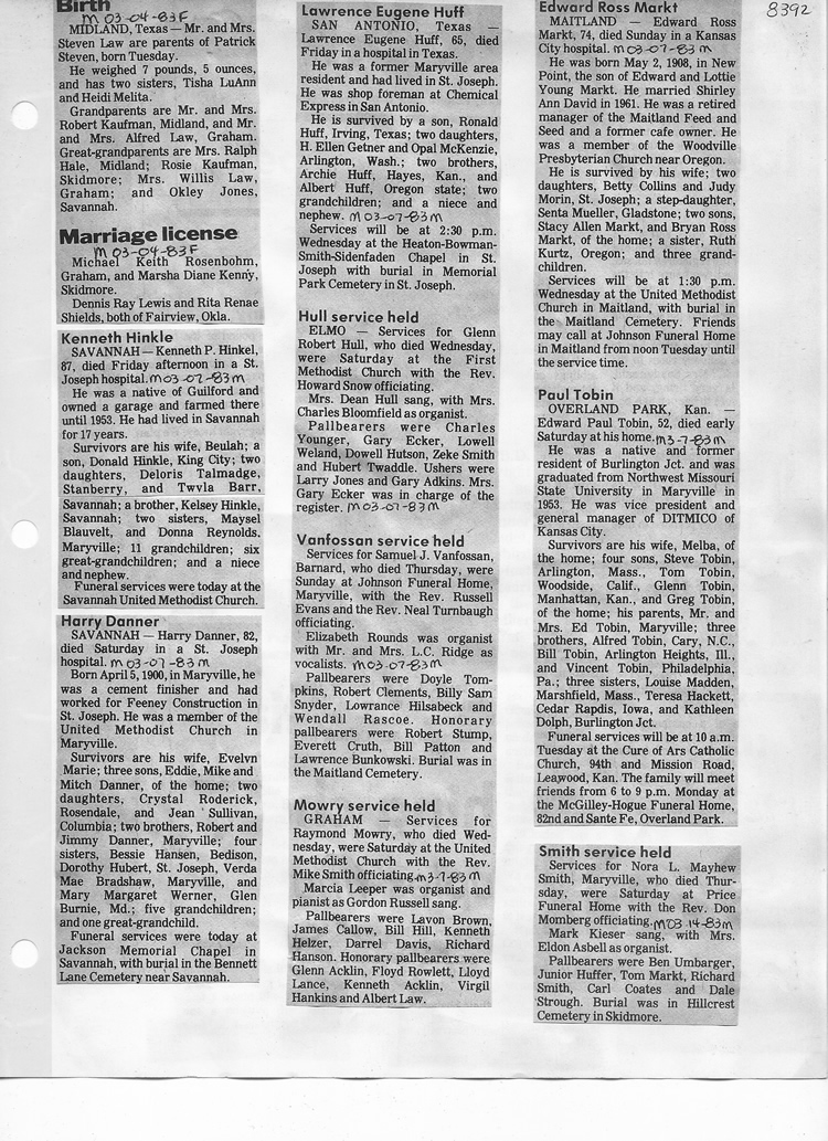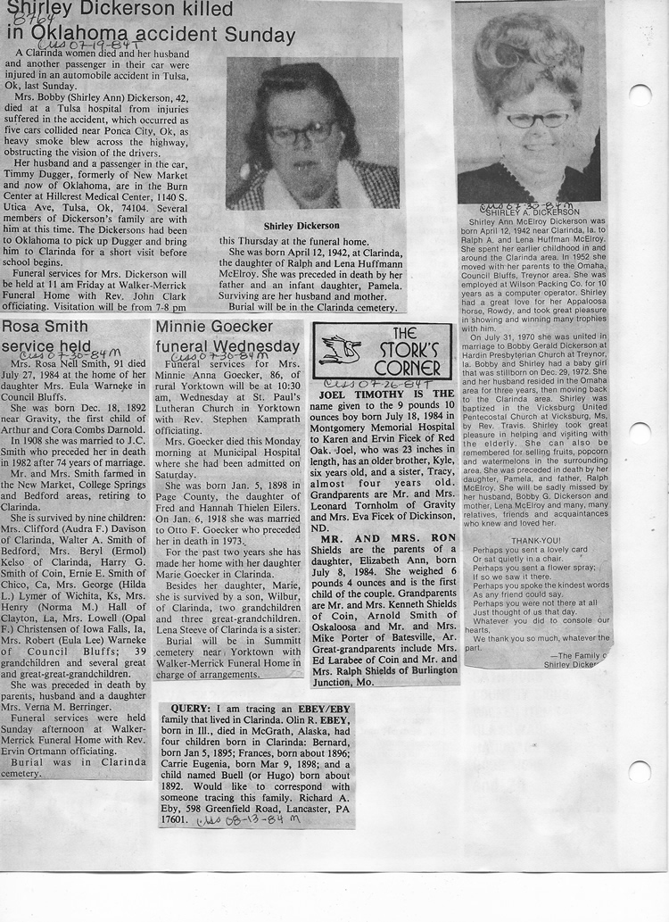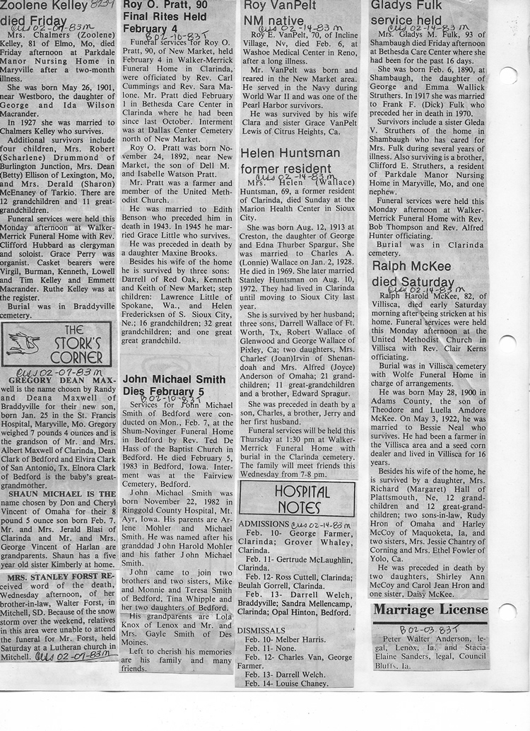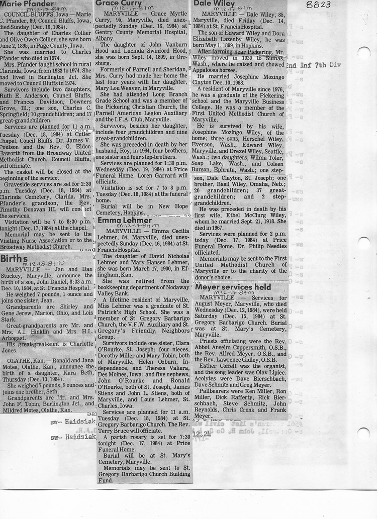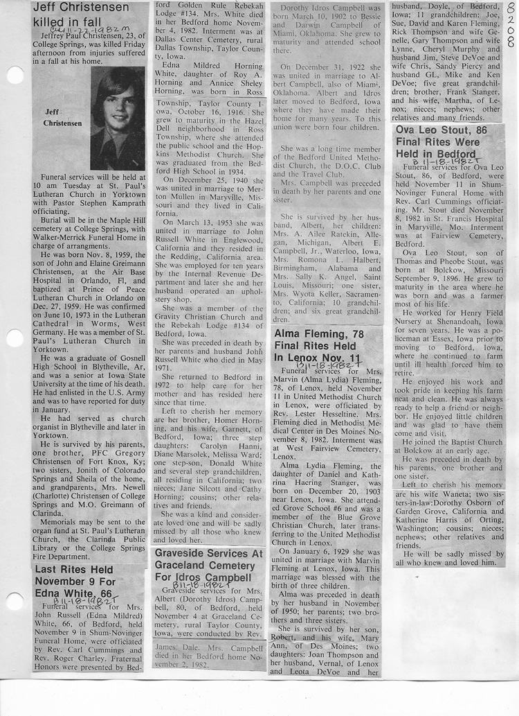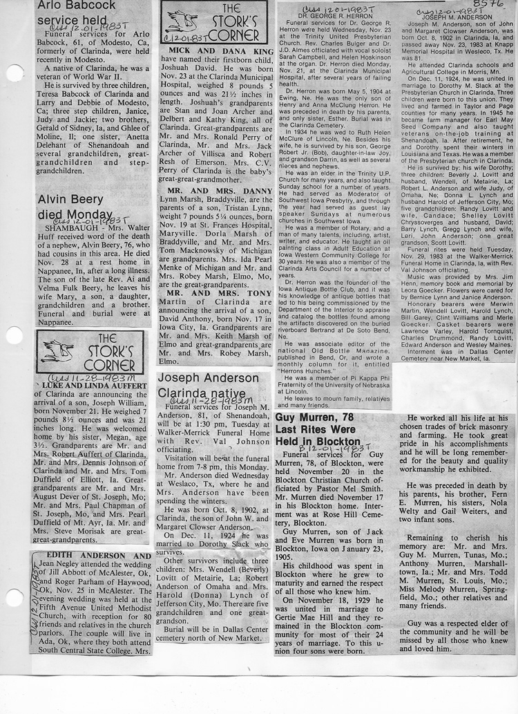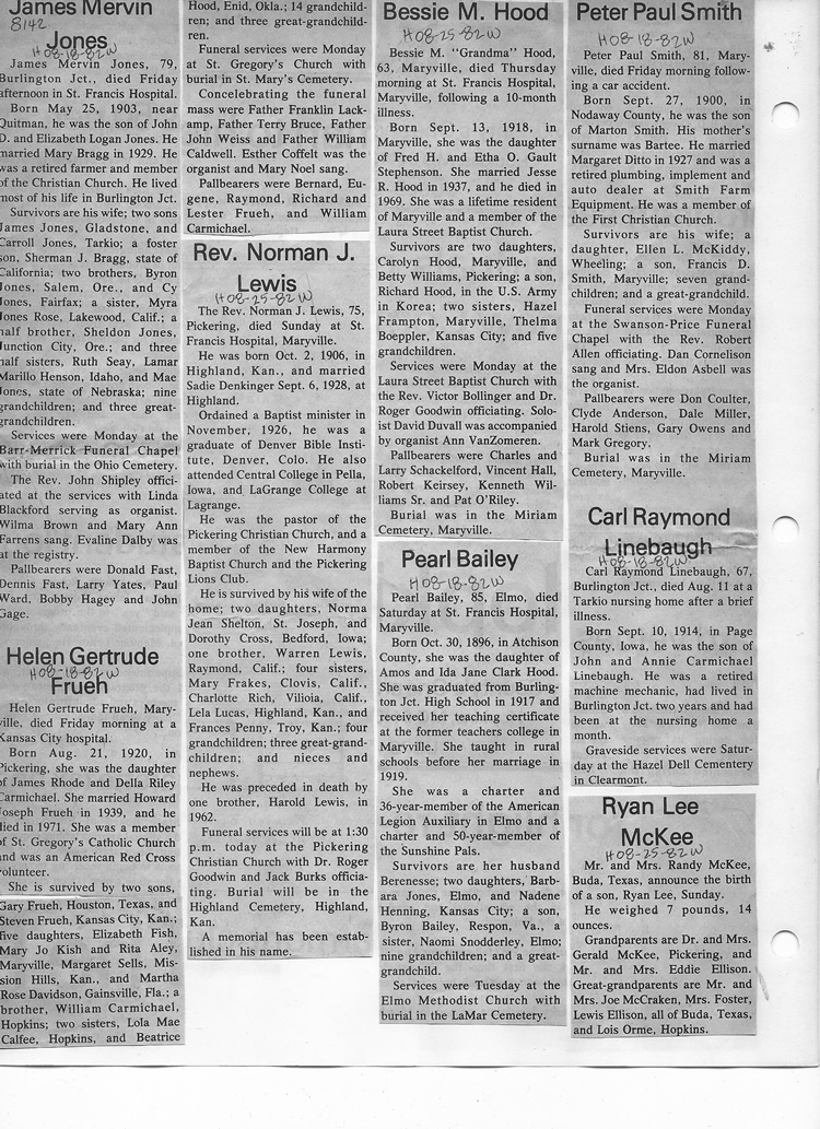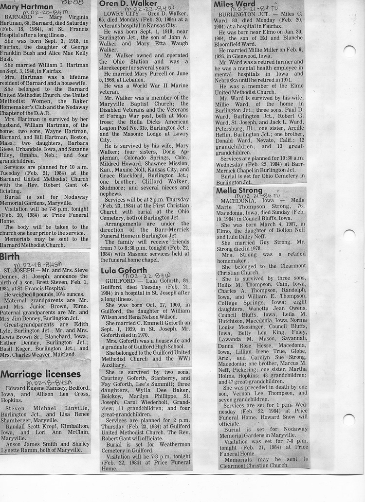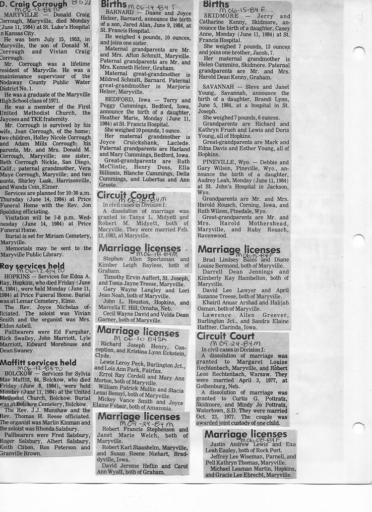 O'Dell's Abstracted Newspaper Index - Clippings - #8000's