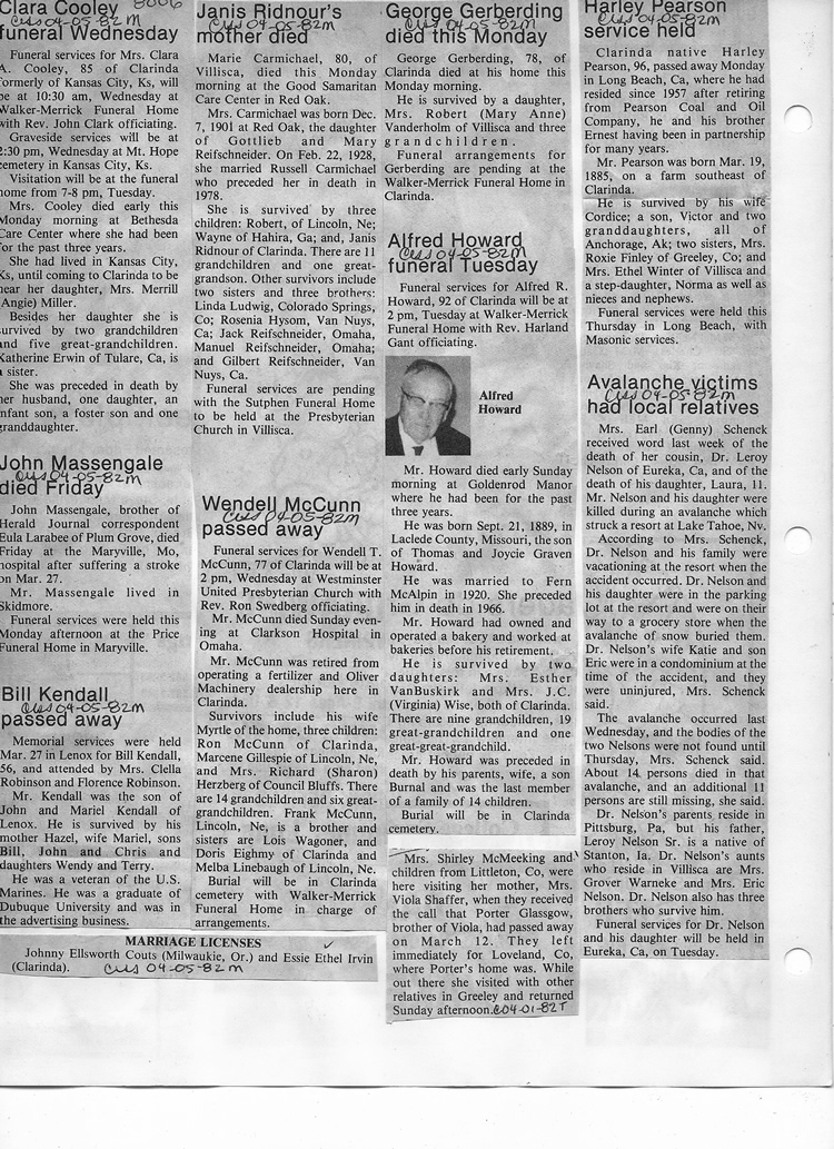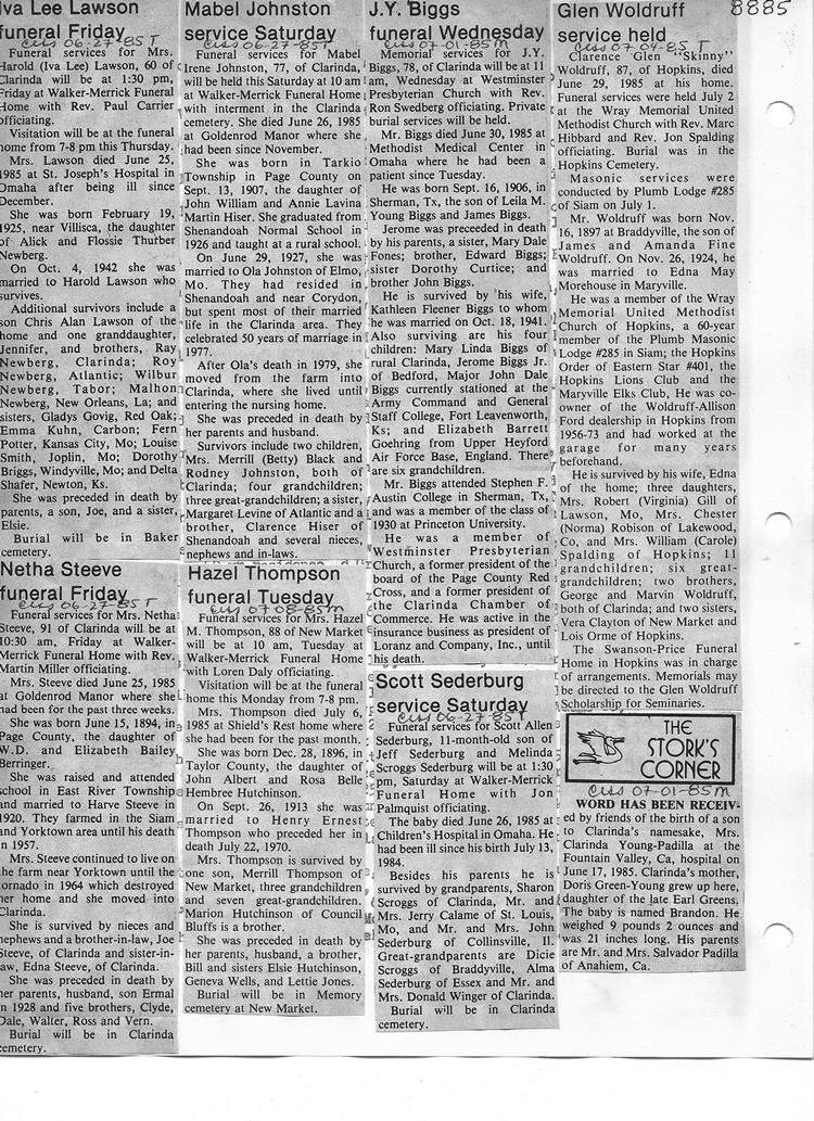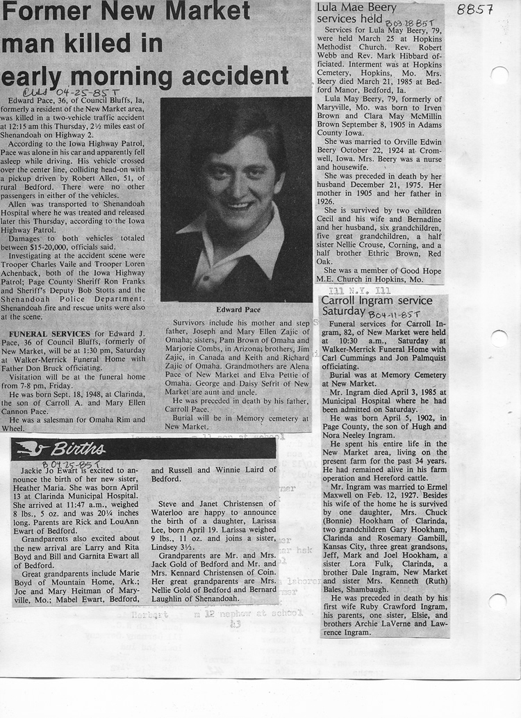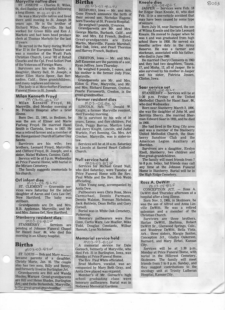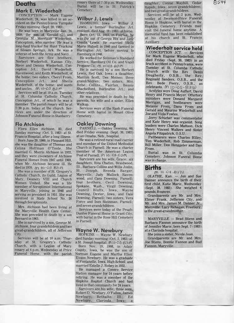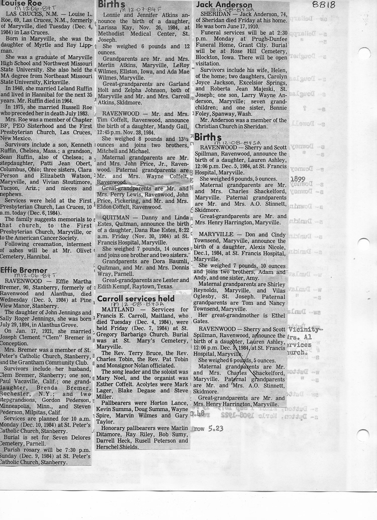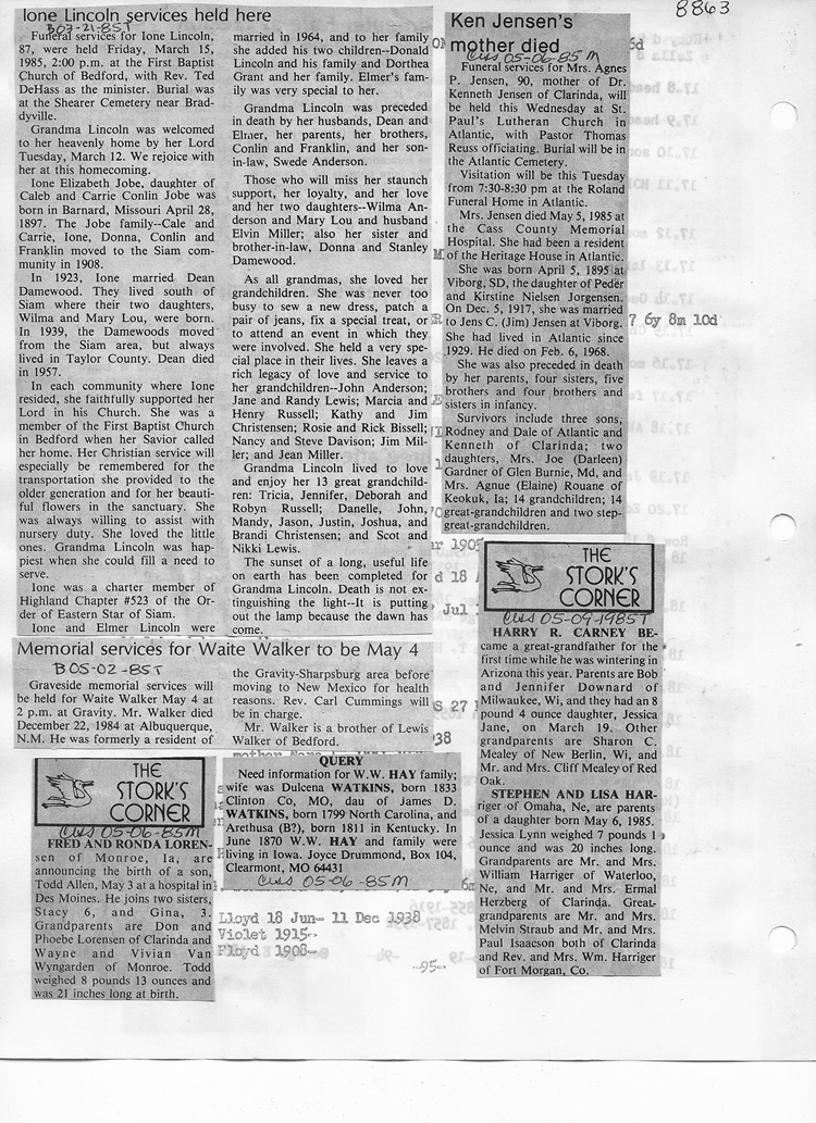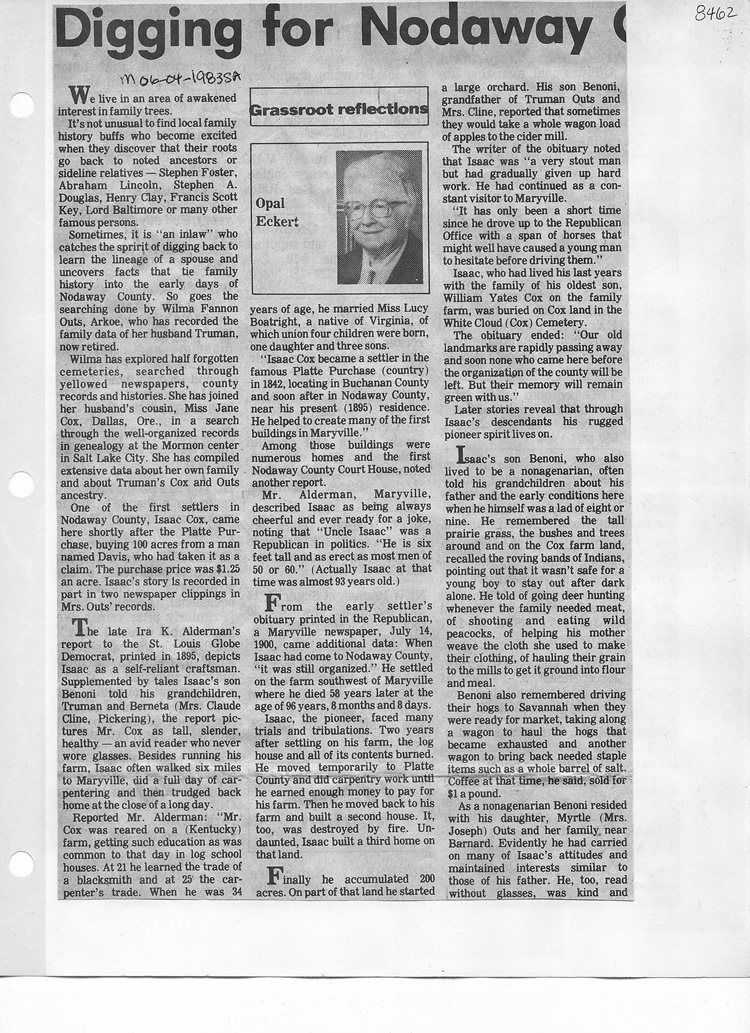 O'Dell's Abstracted Newspaper Index - Clippings - #8000's