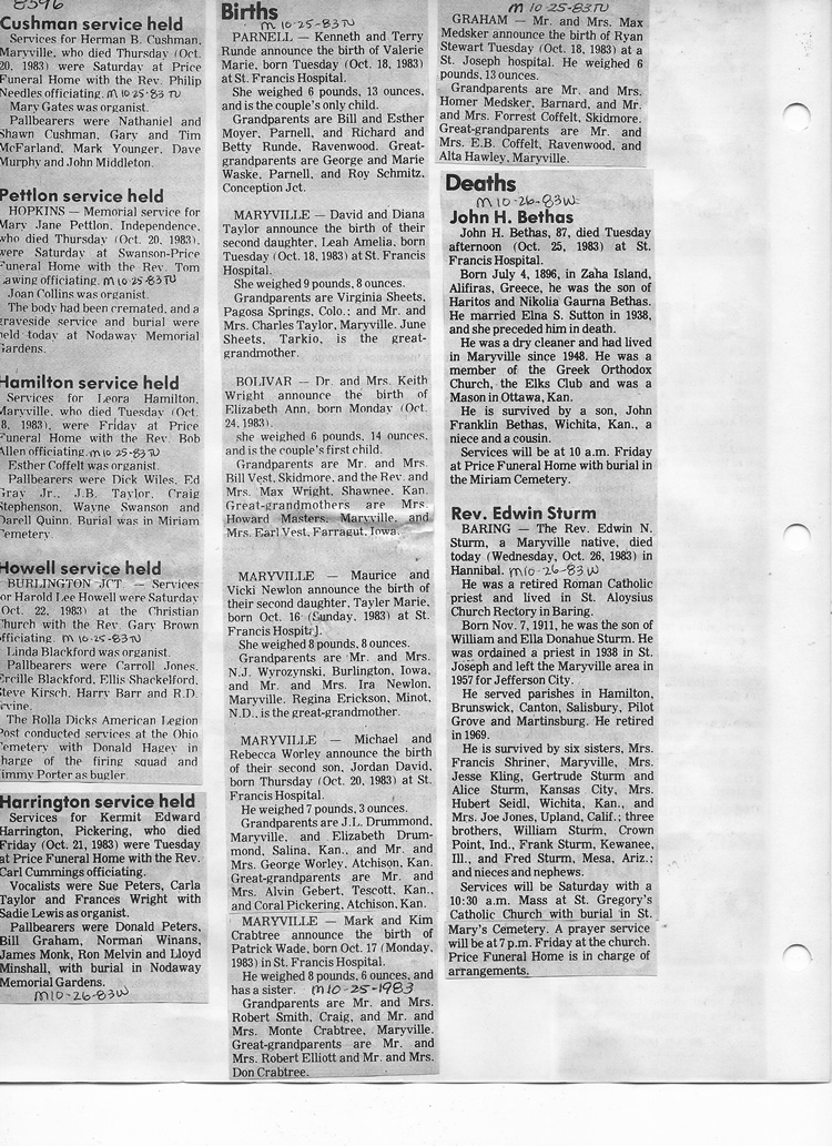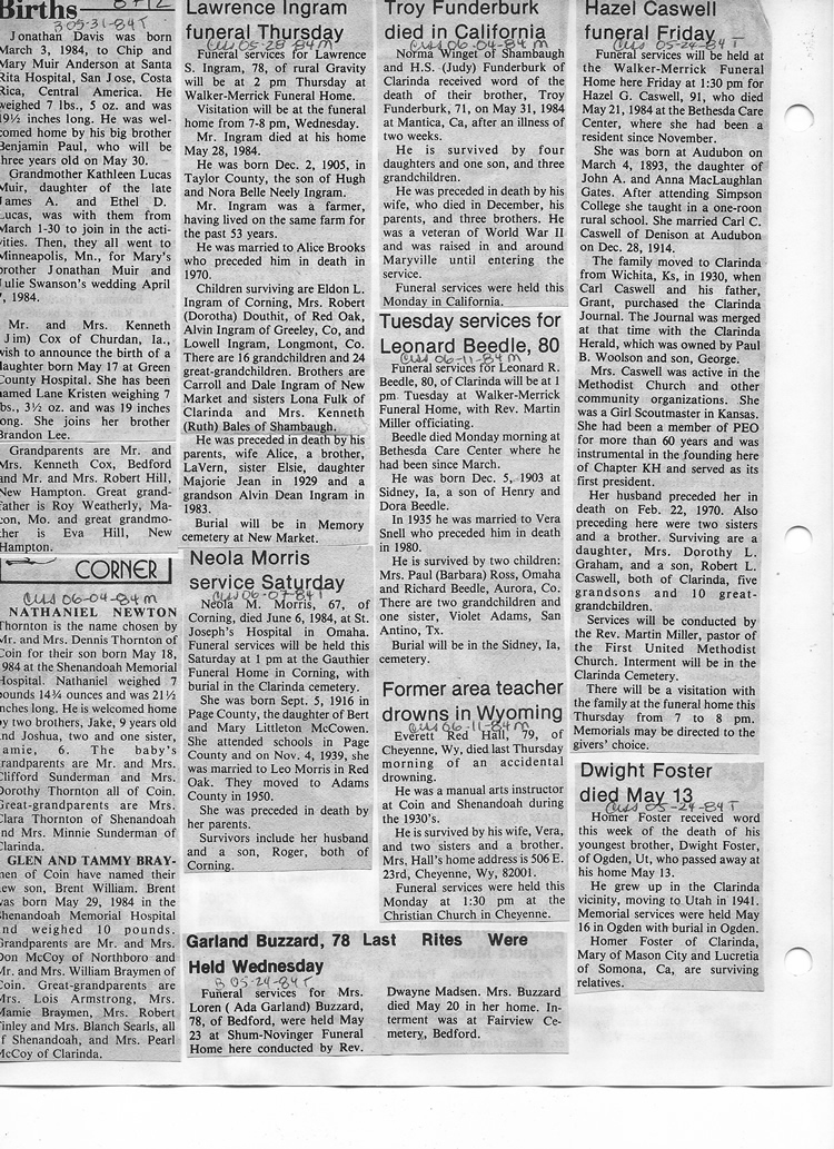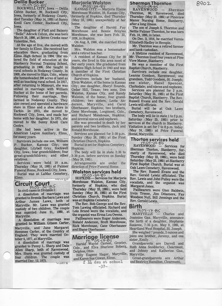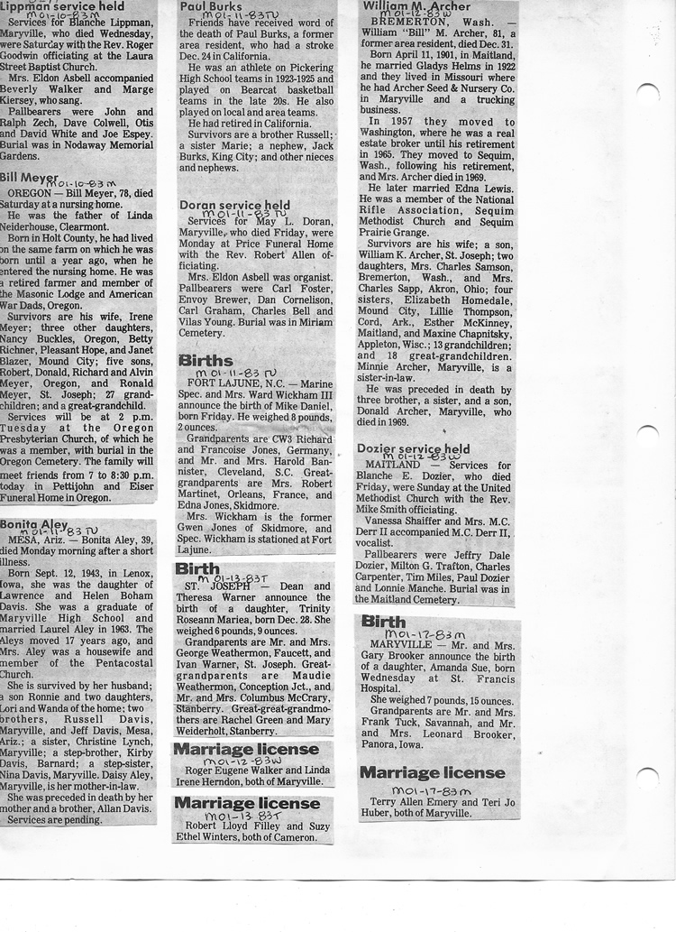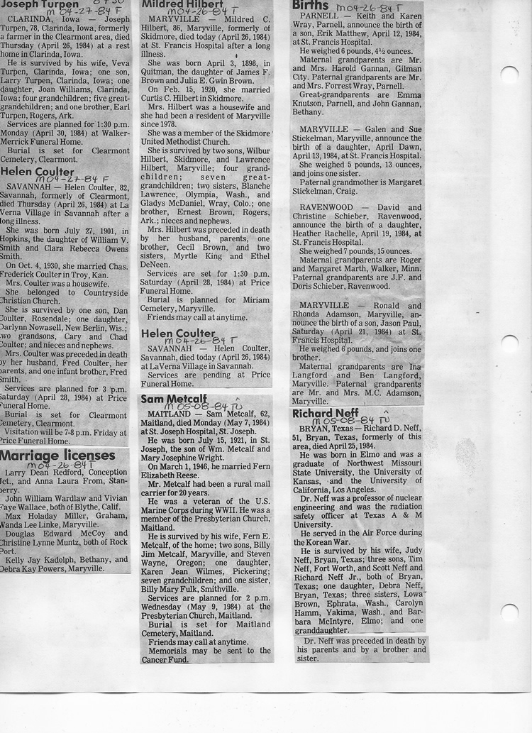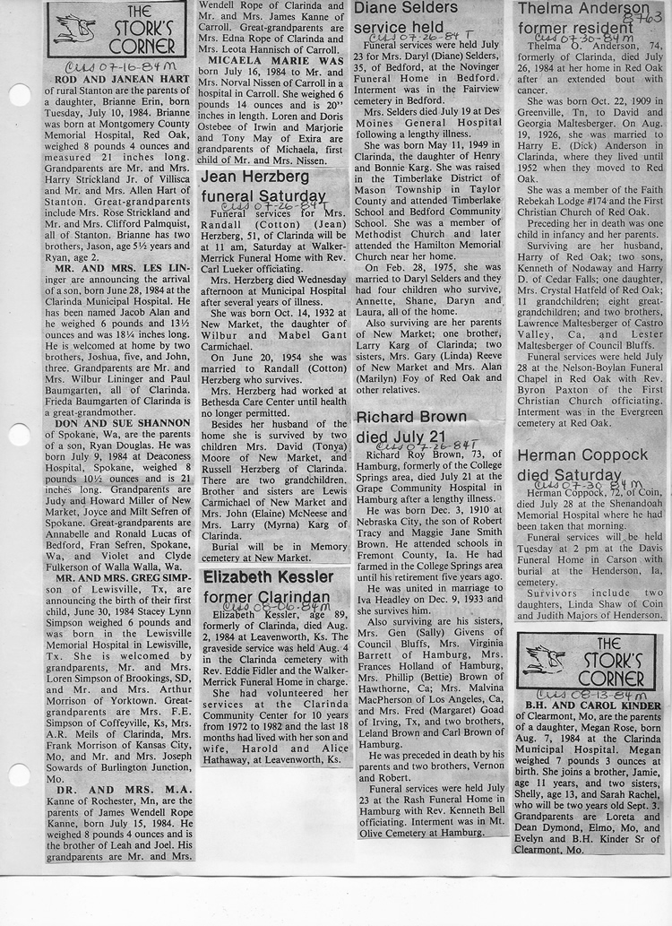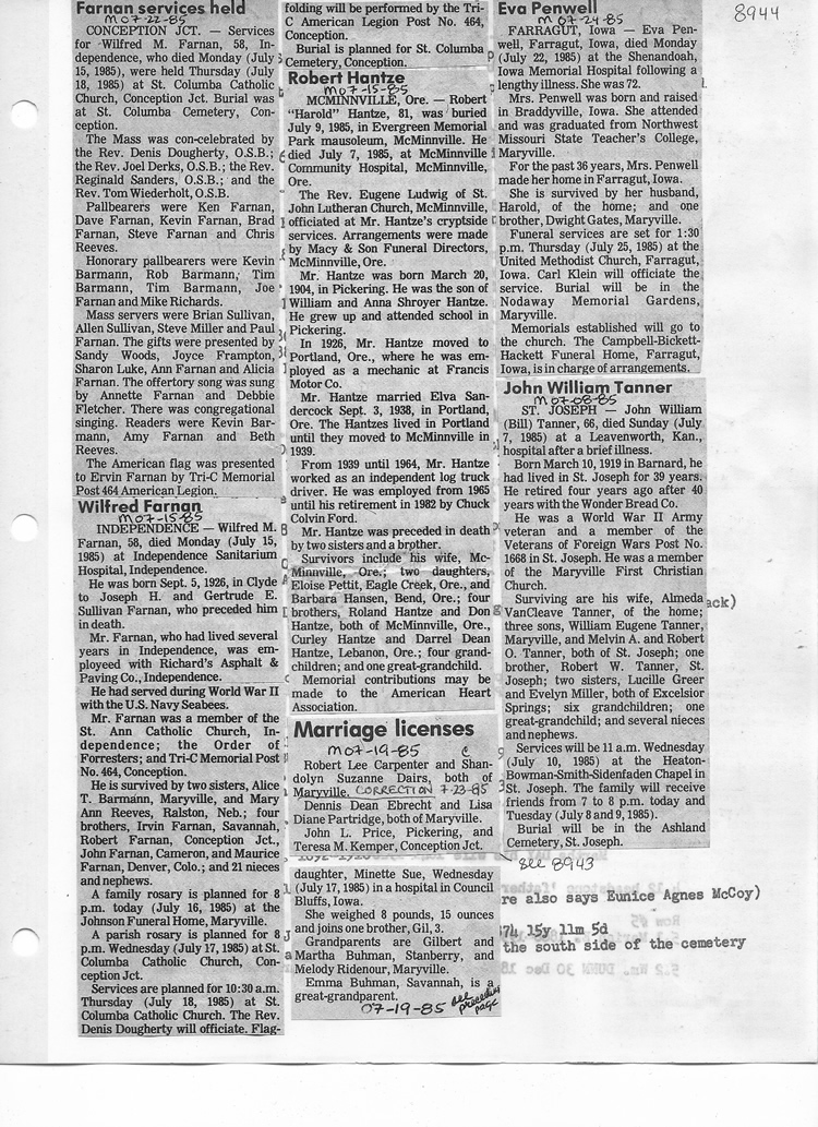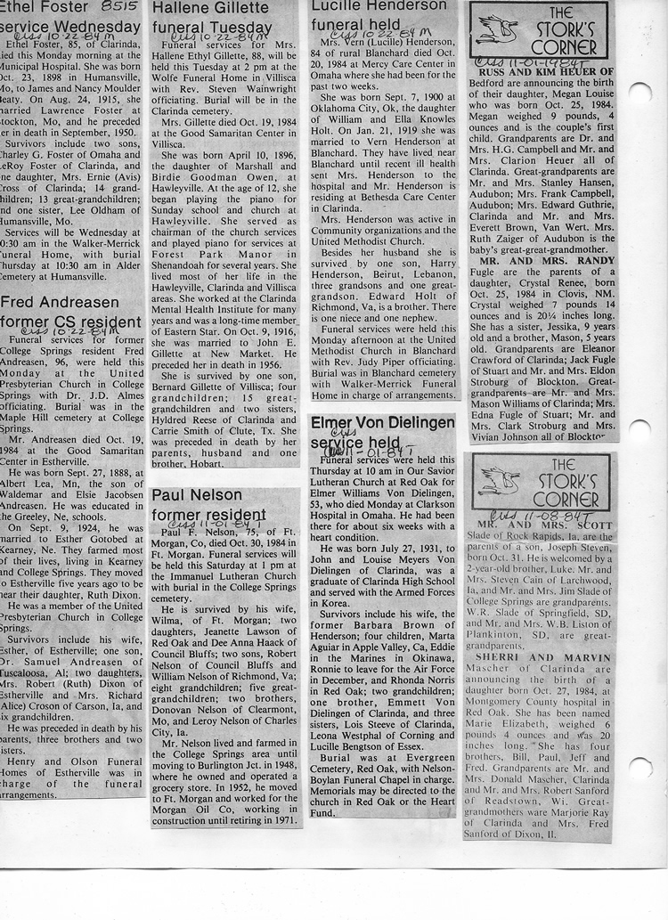 O'Dell's Abstracted Newspaper Index - Clippings - #8000's