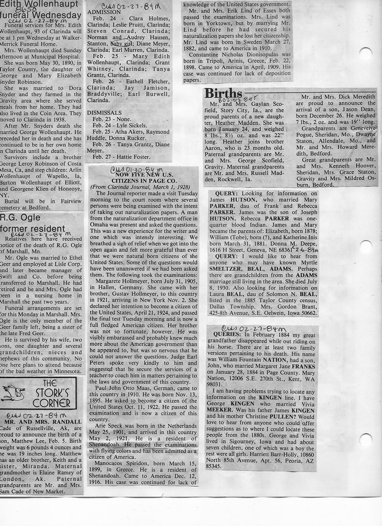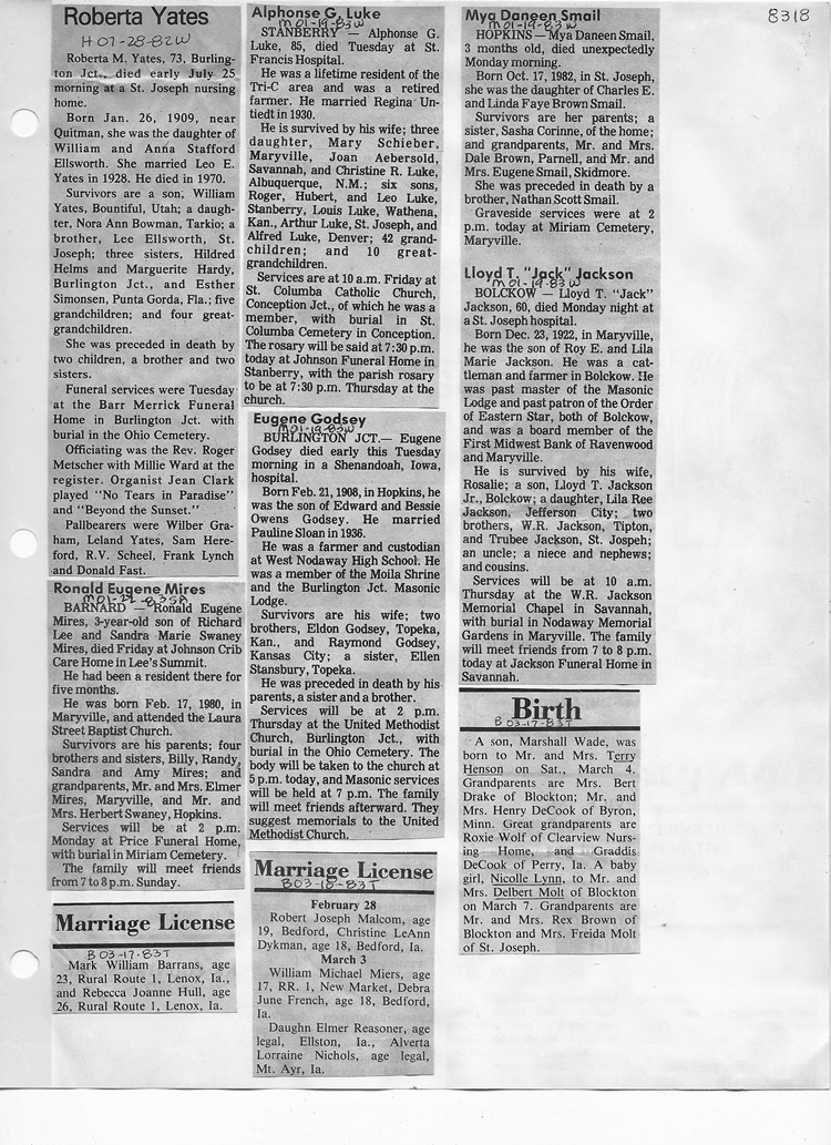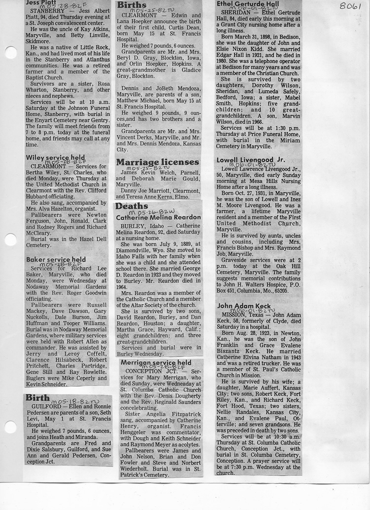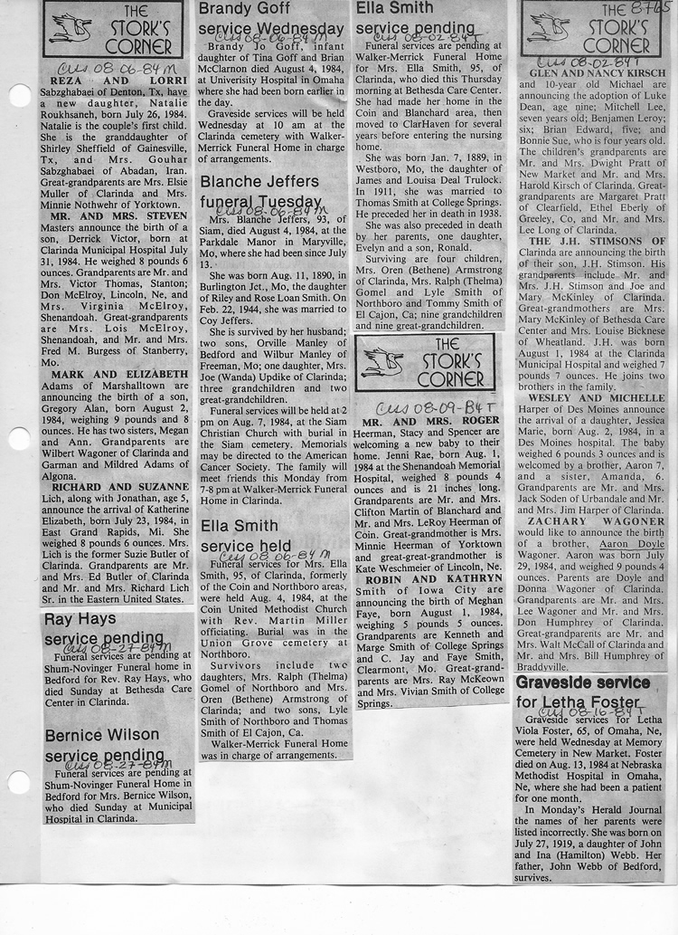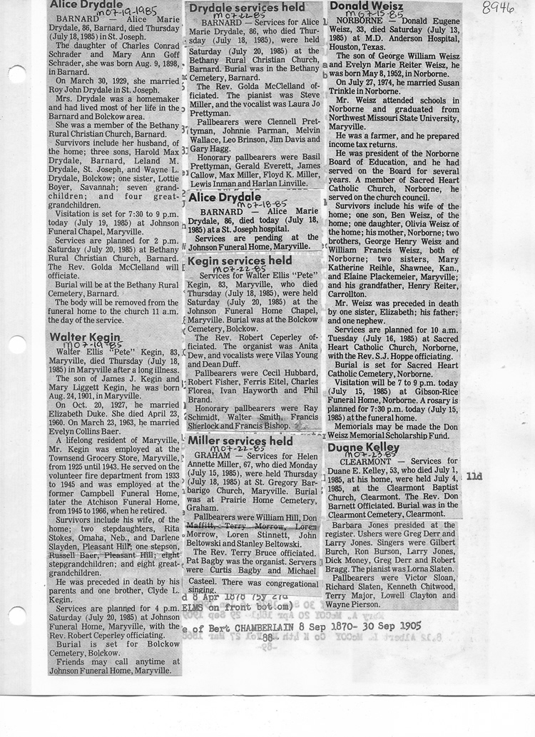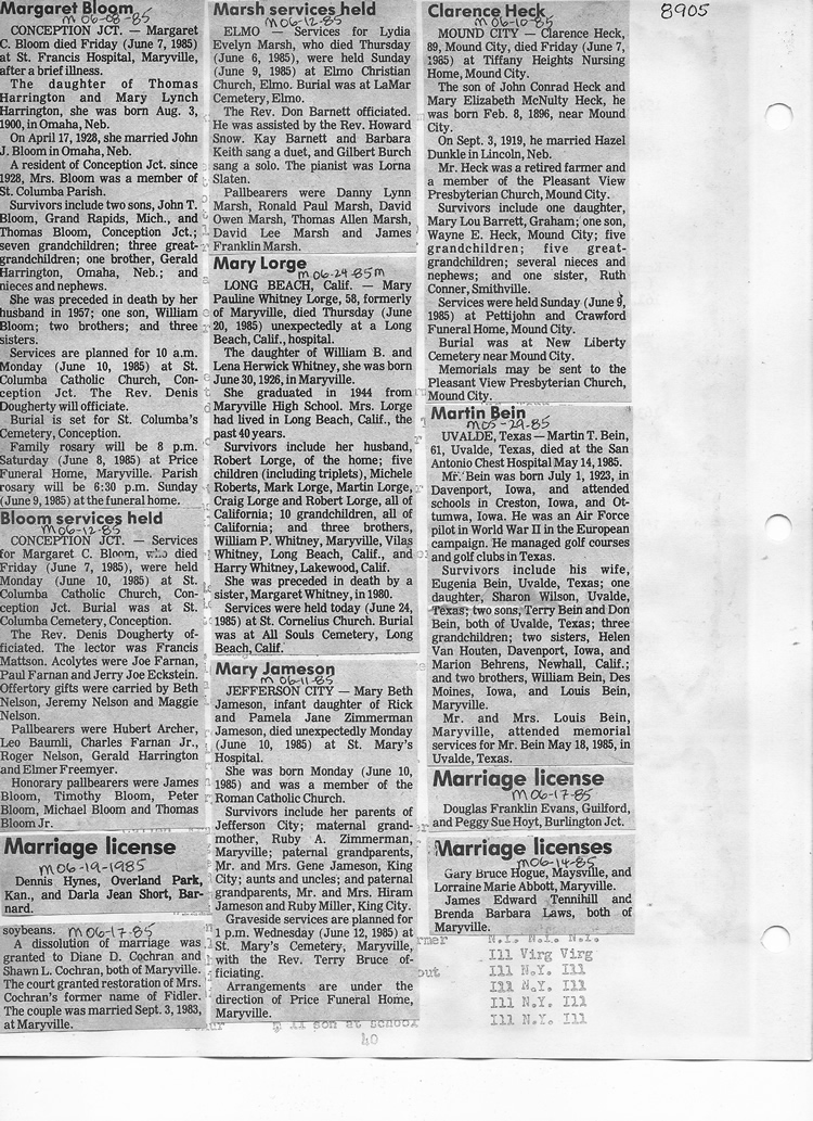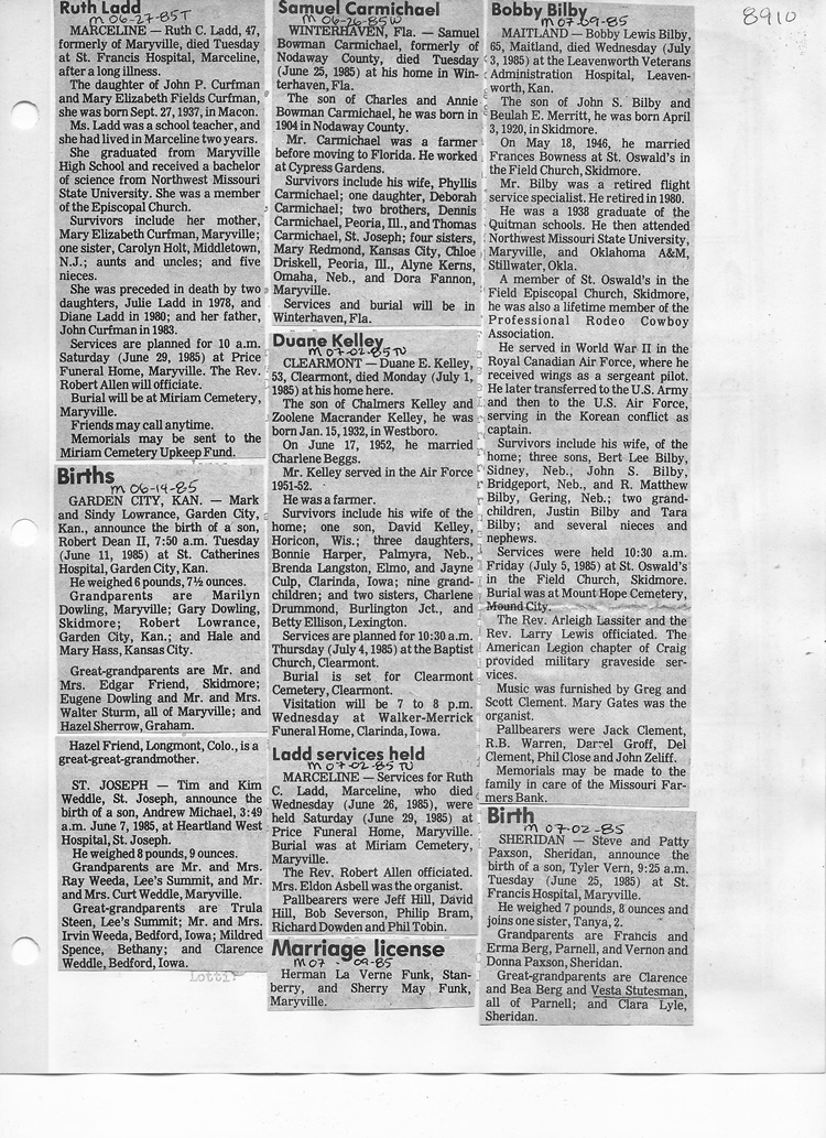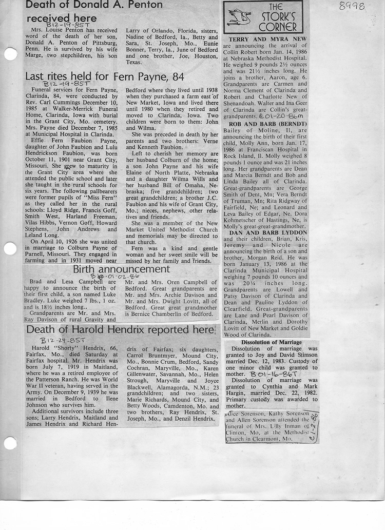 O'Dell's Abstracted Newspaper Index - Clippings - #8000's