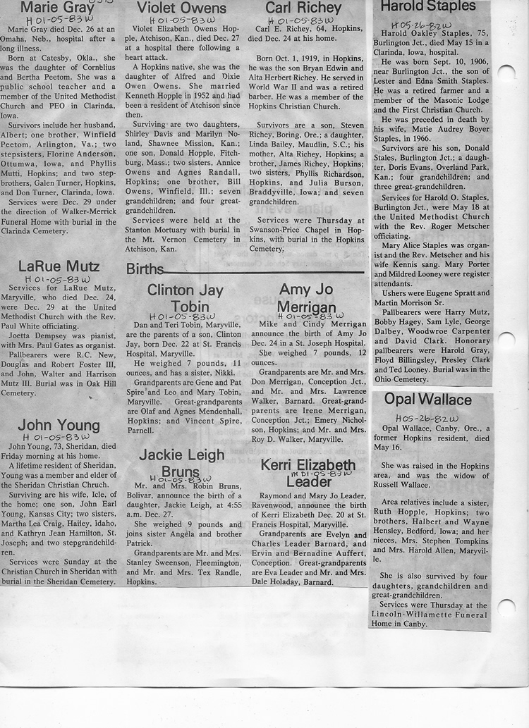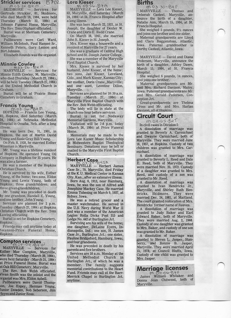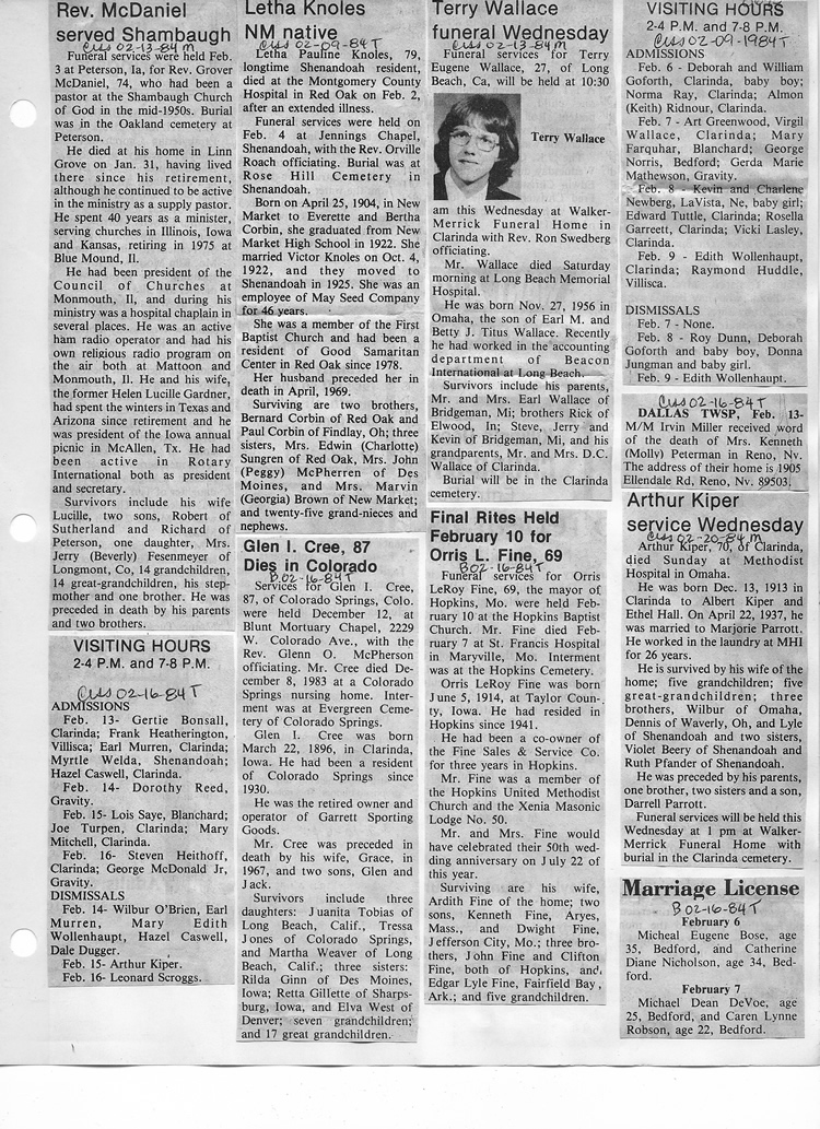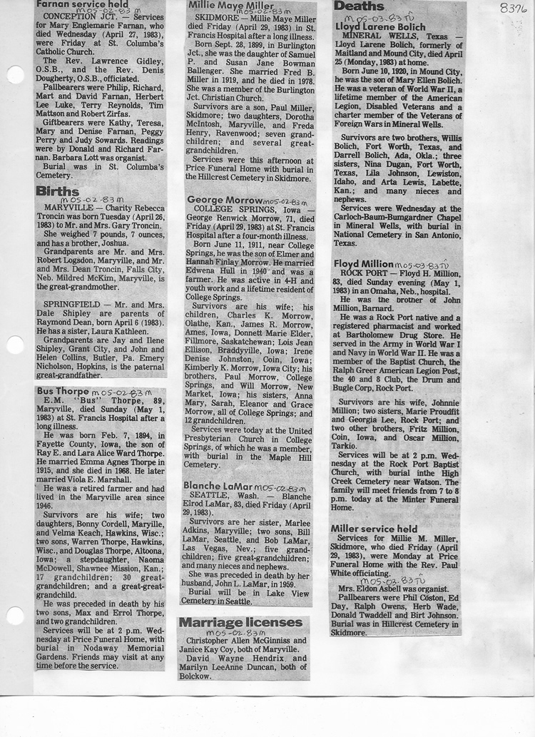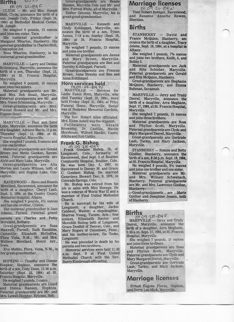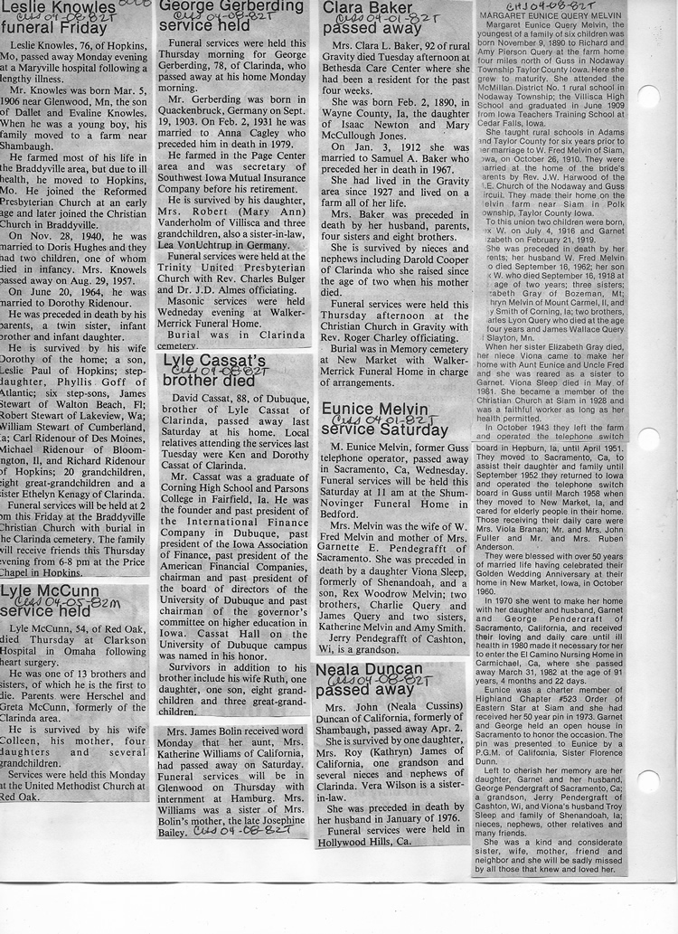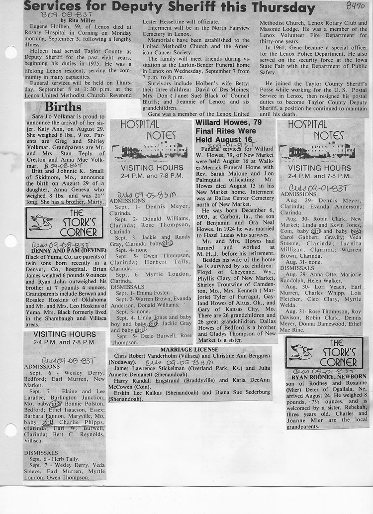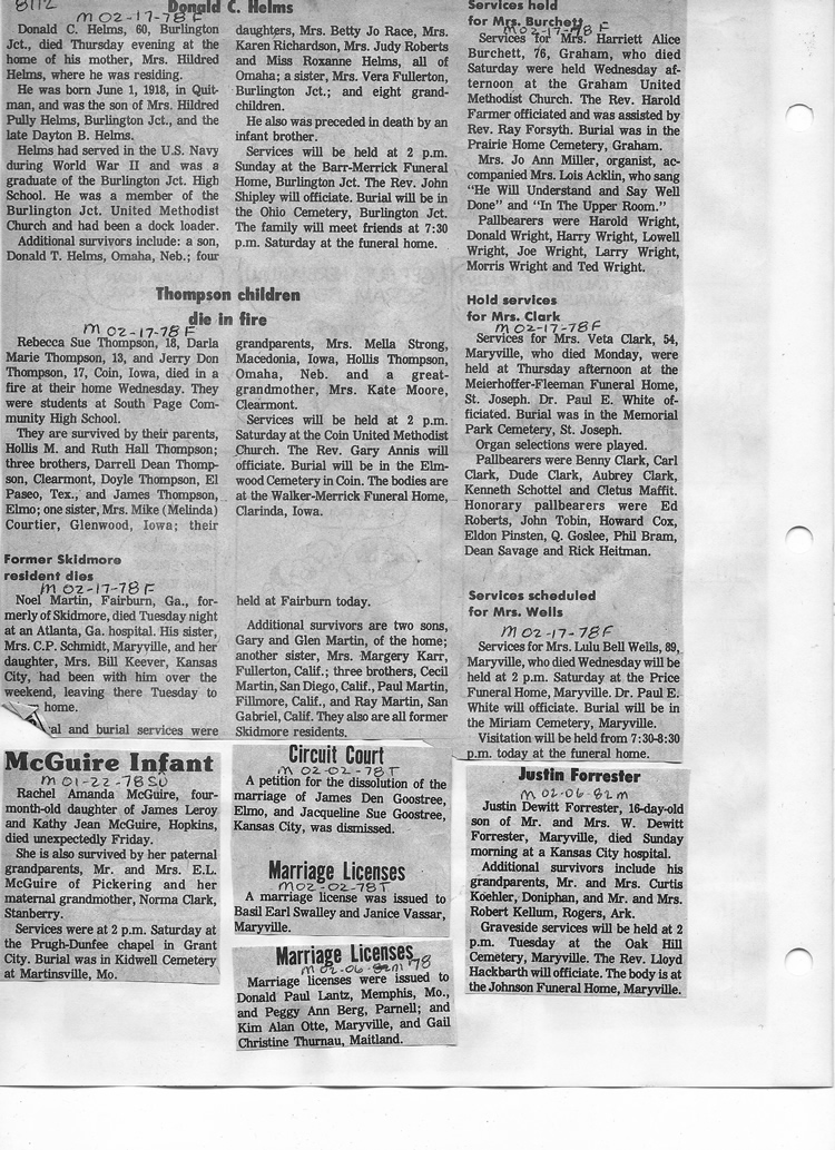 O'Dell's Abstracted Newspaper Index - Clippings - #8000's