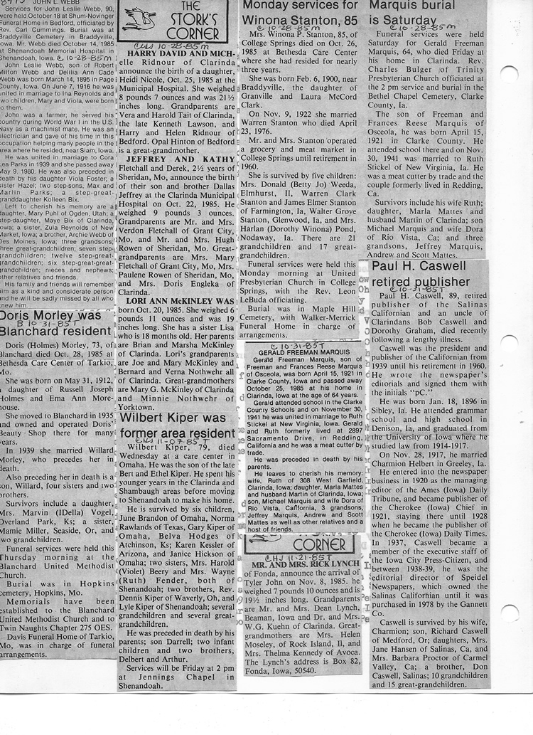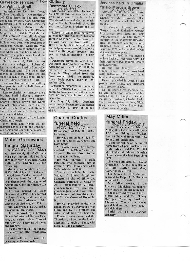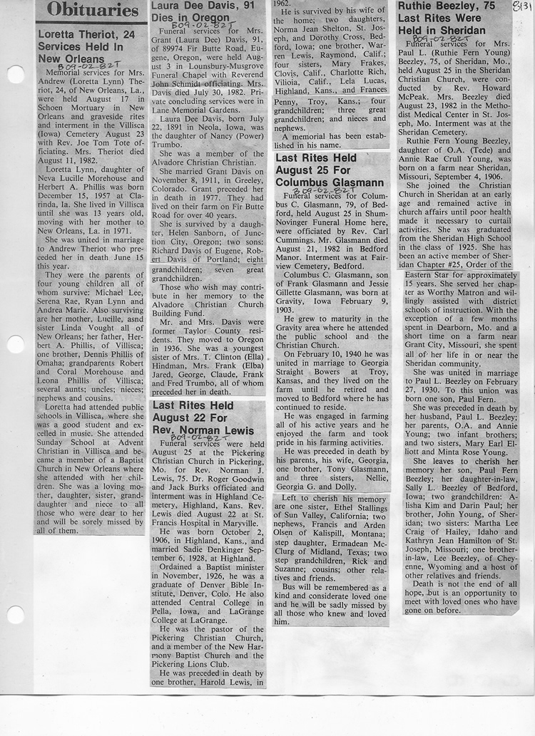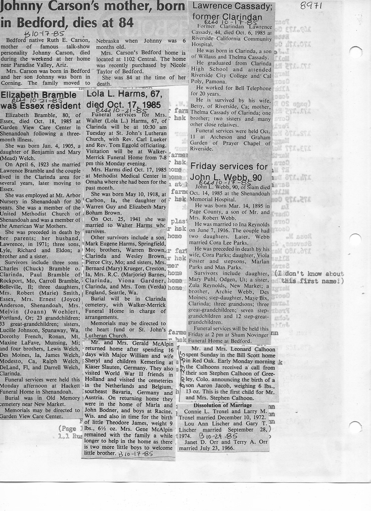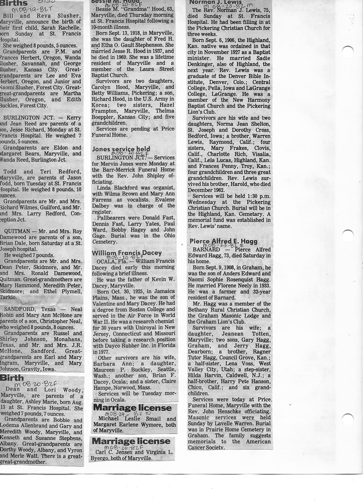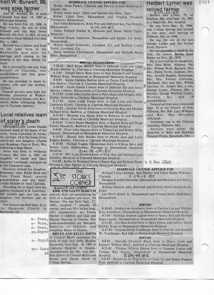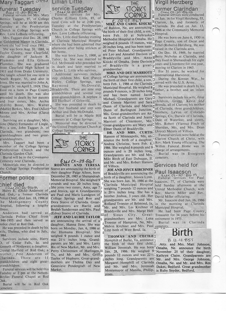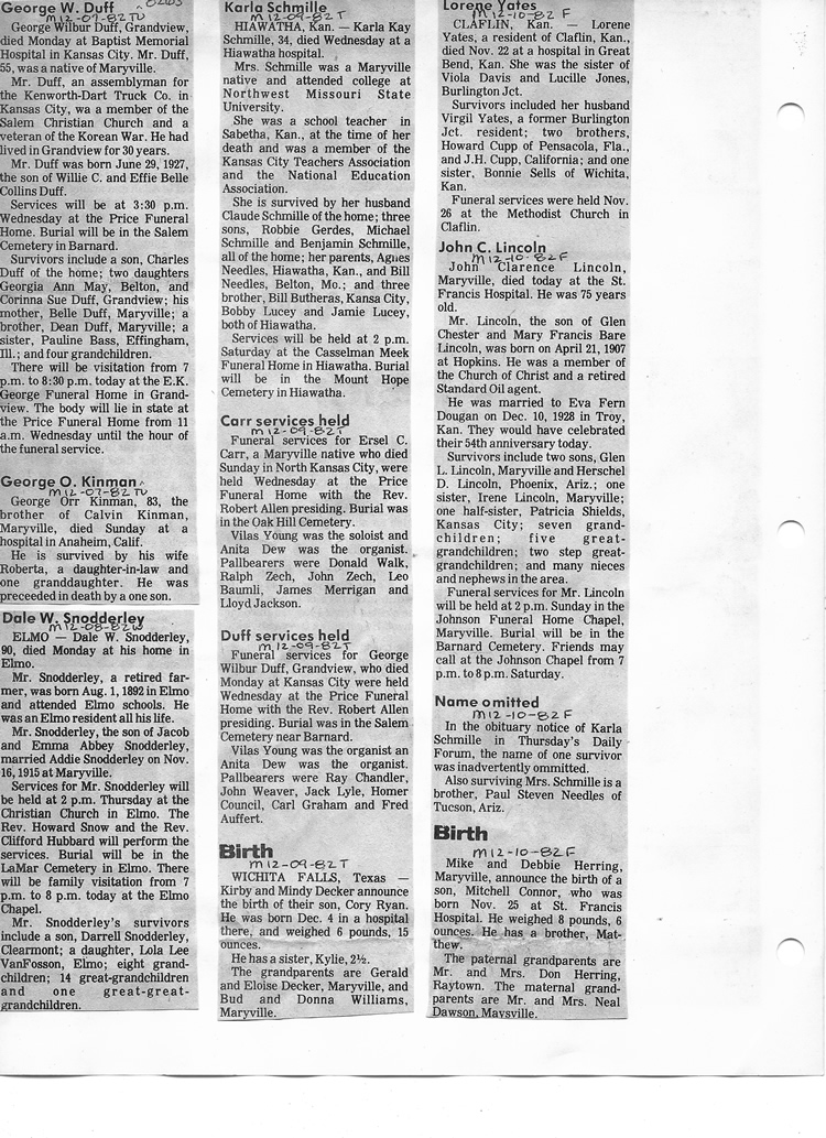 O'Dell's Abstracted Newspaper Index - Clippings - #8000's