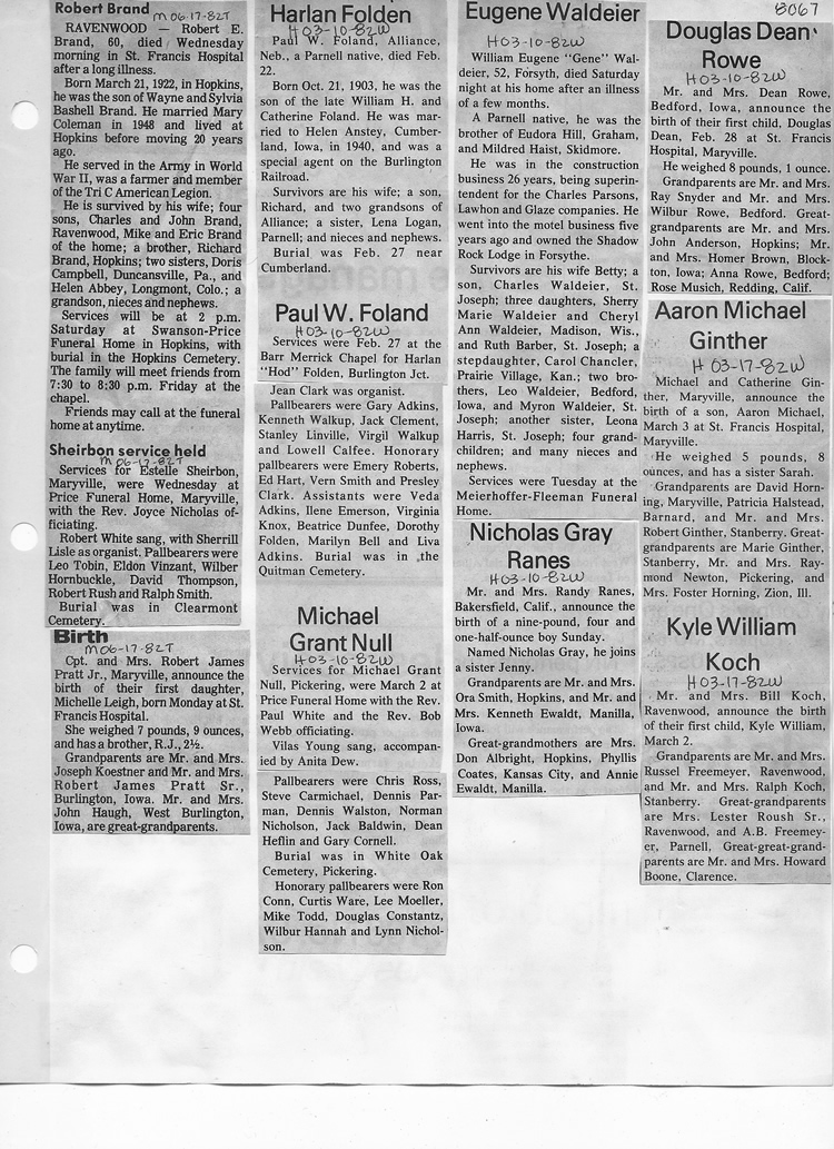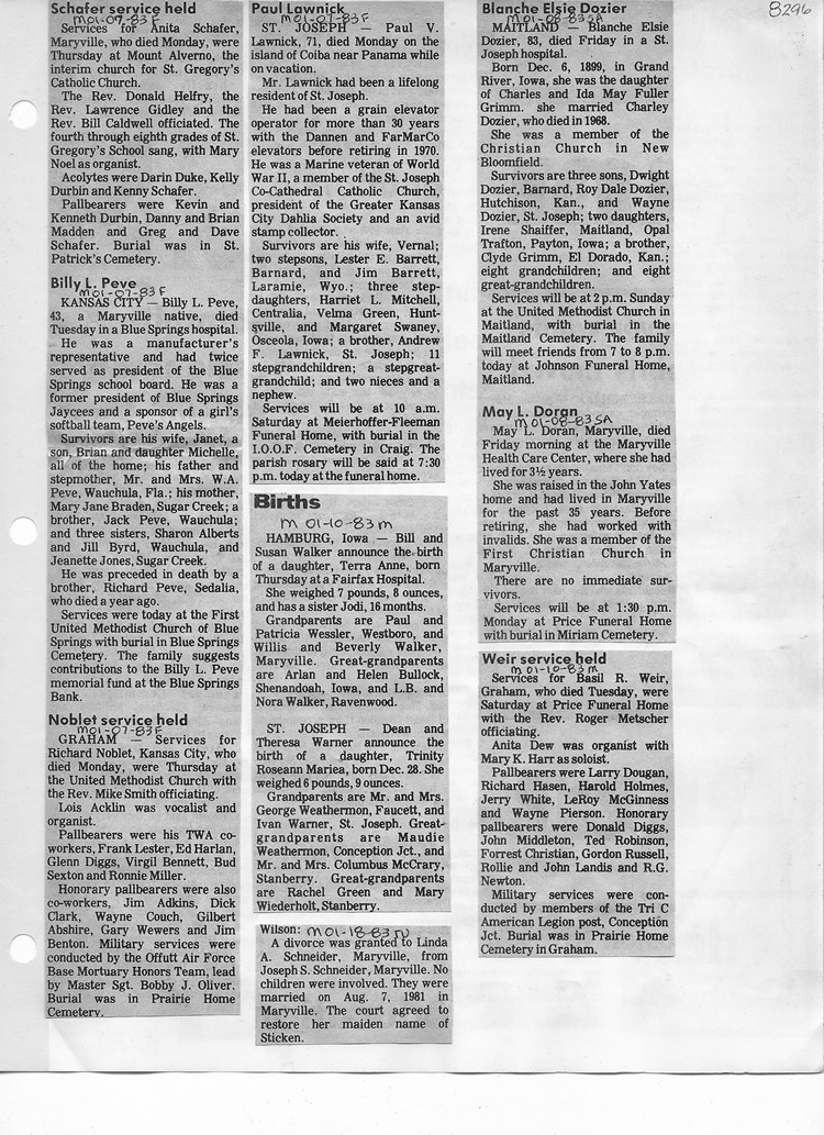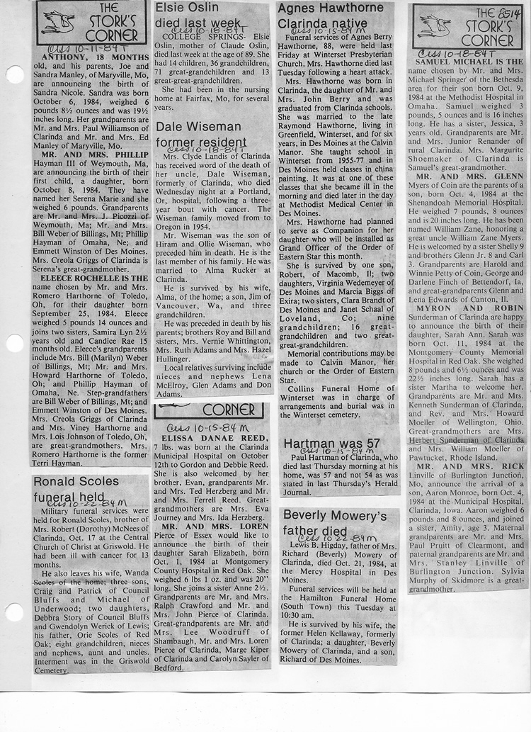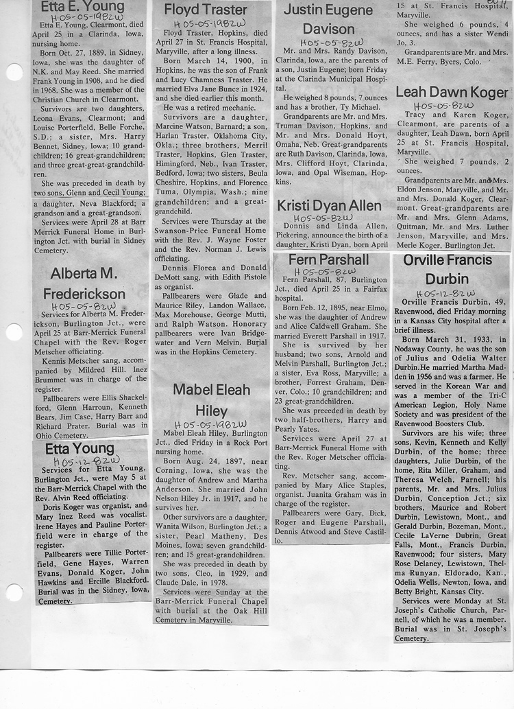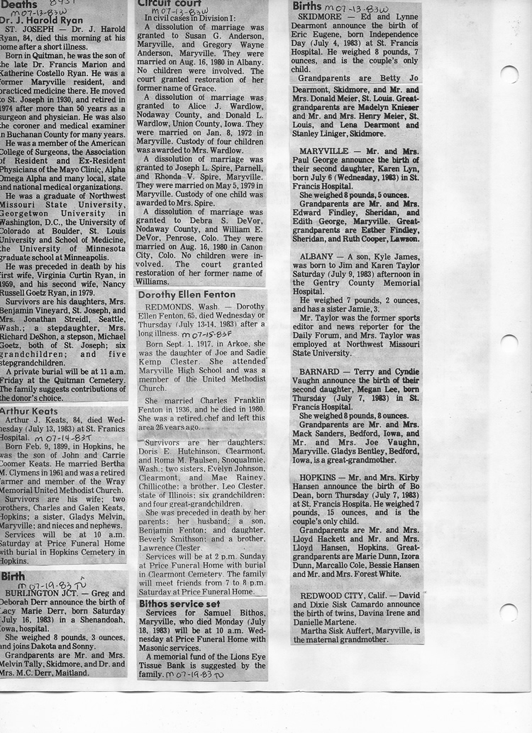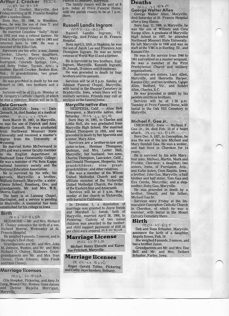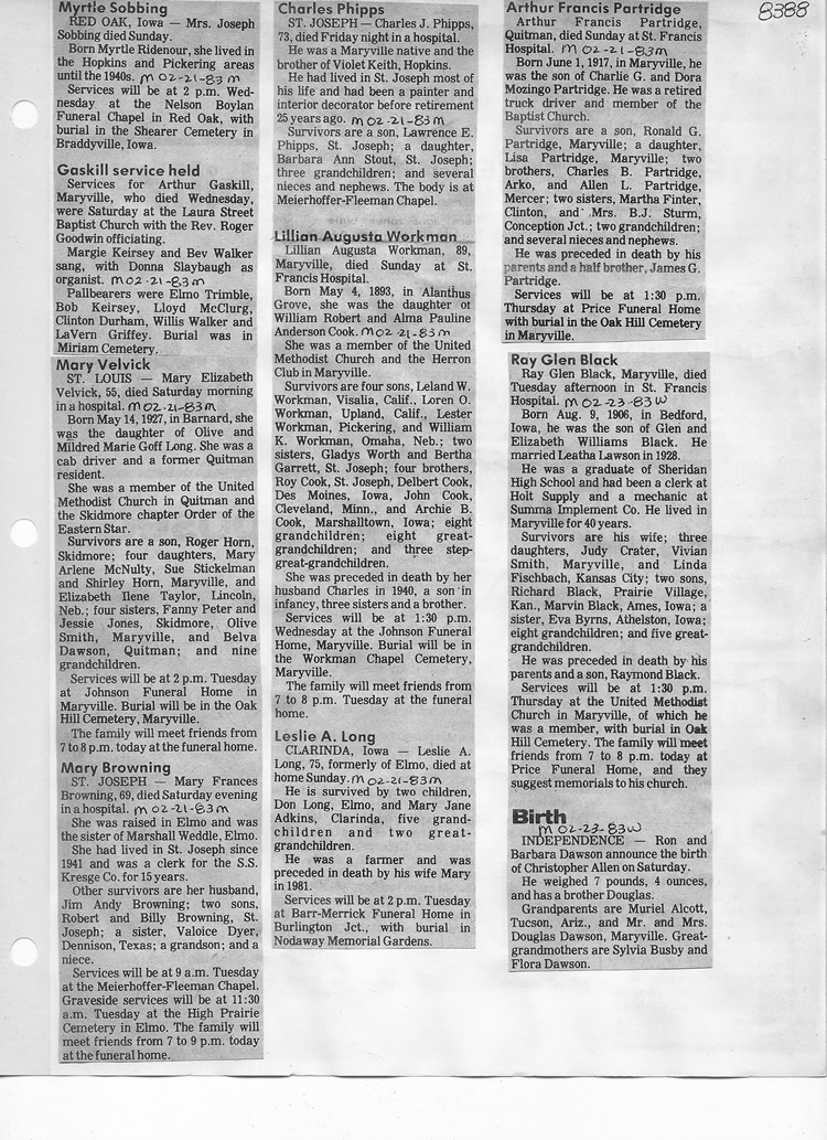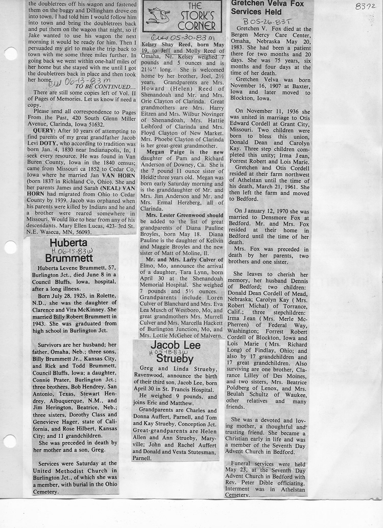 O'Dell's Abstracted Newspaper Index - Clippings - #8000's