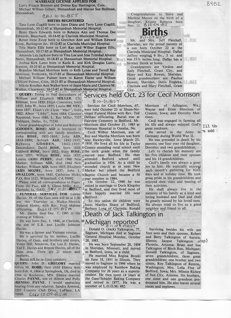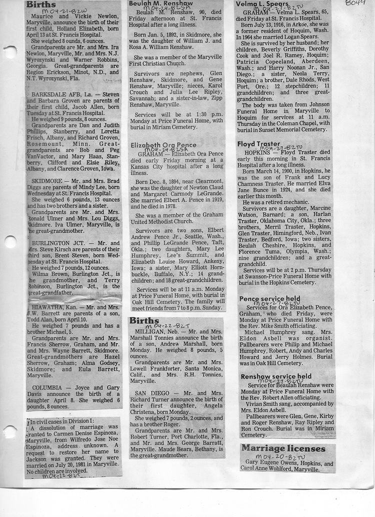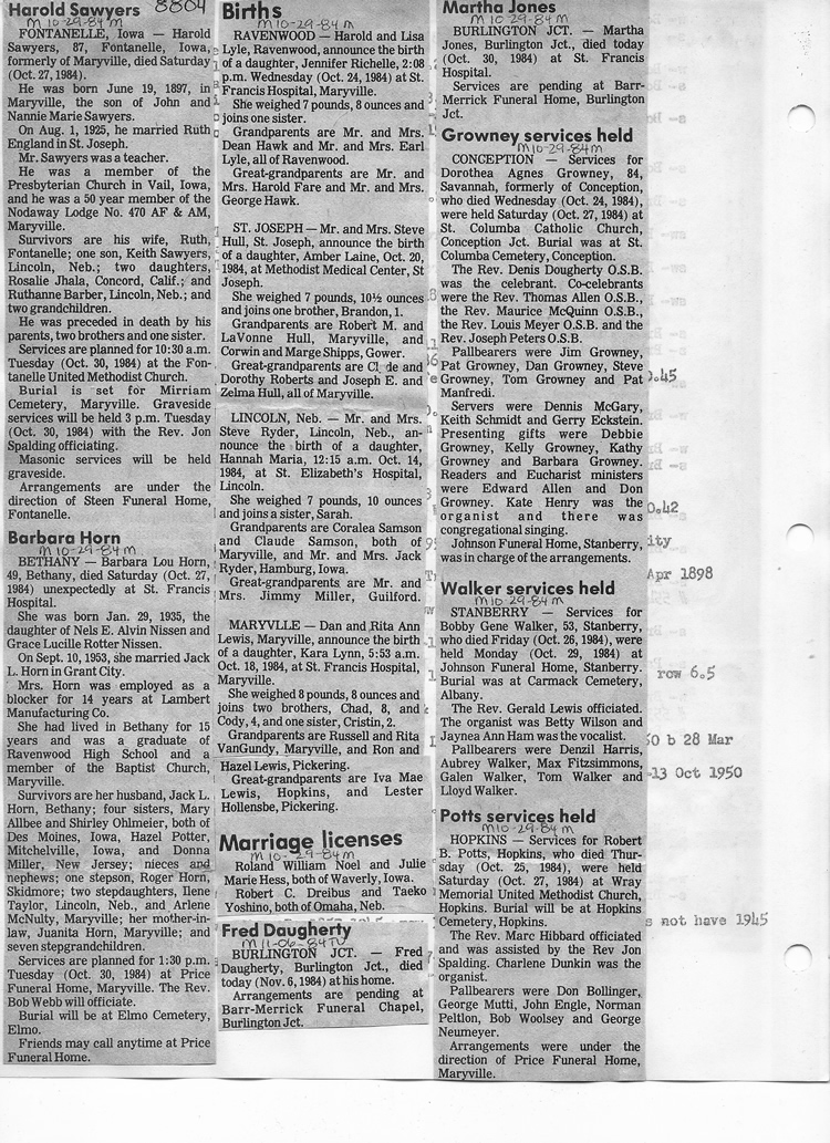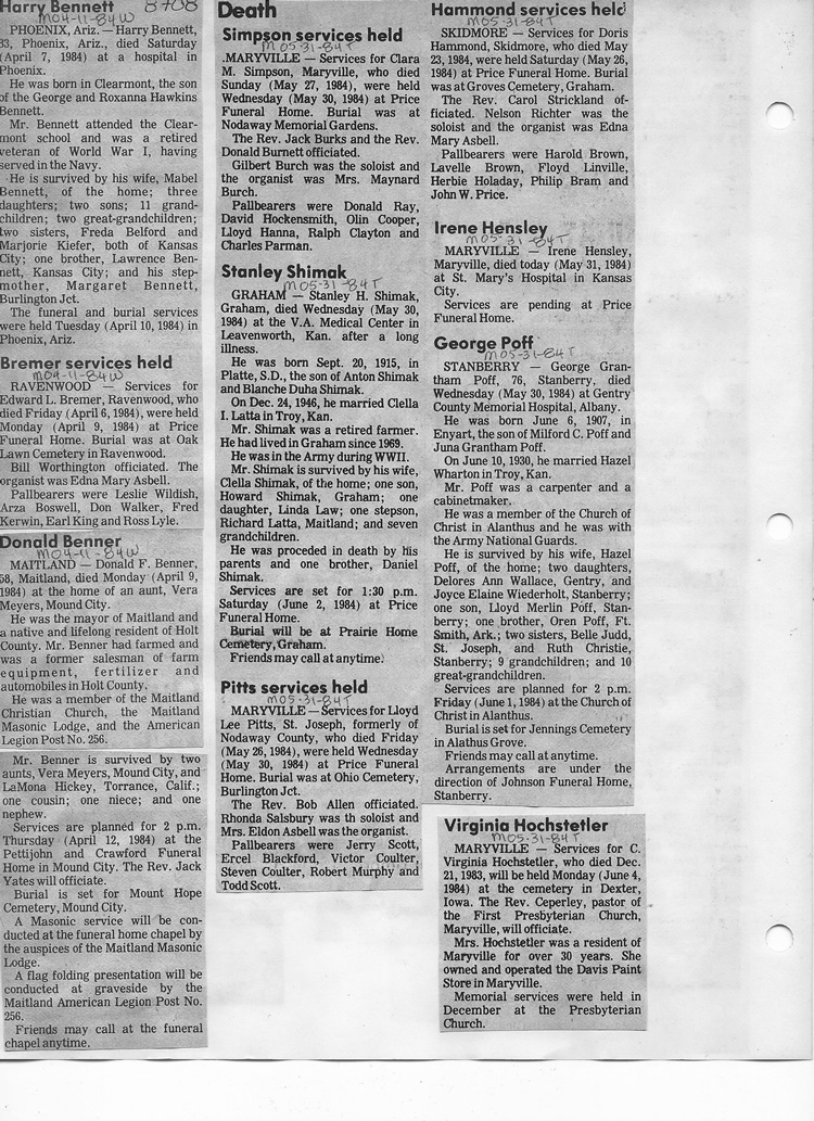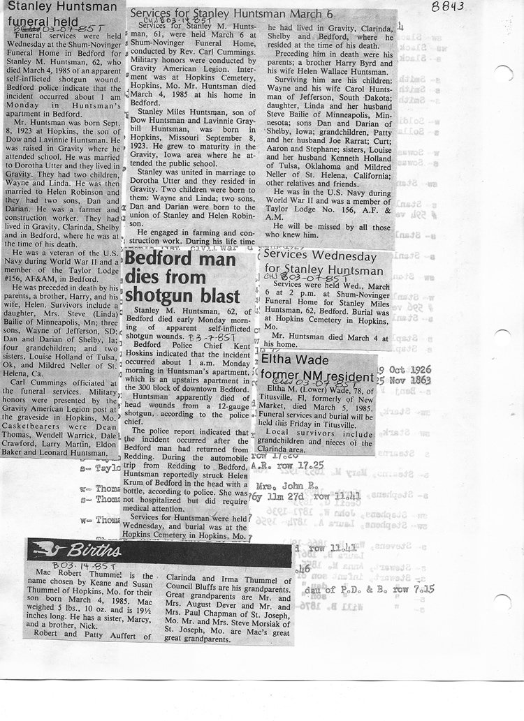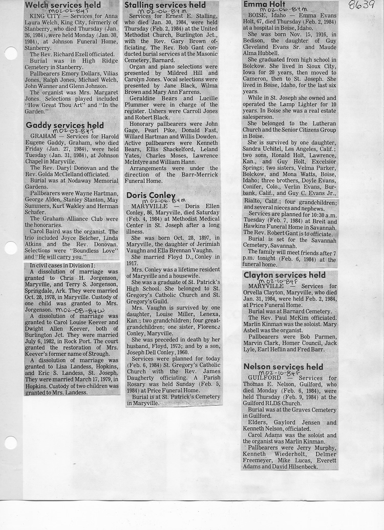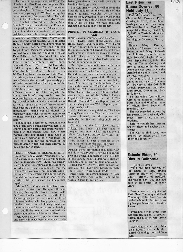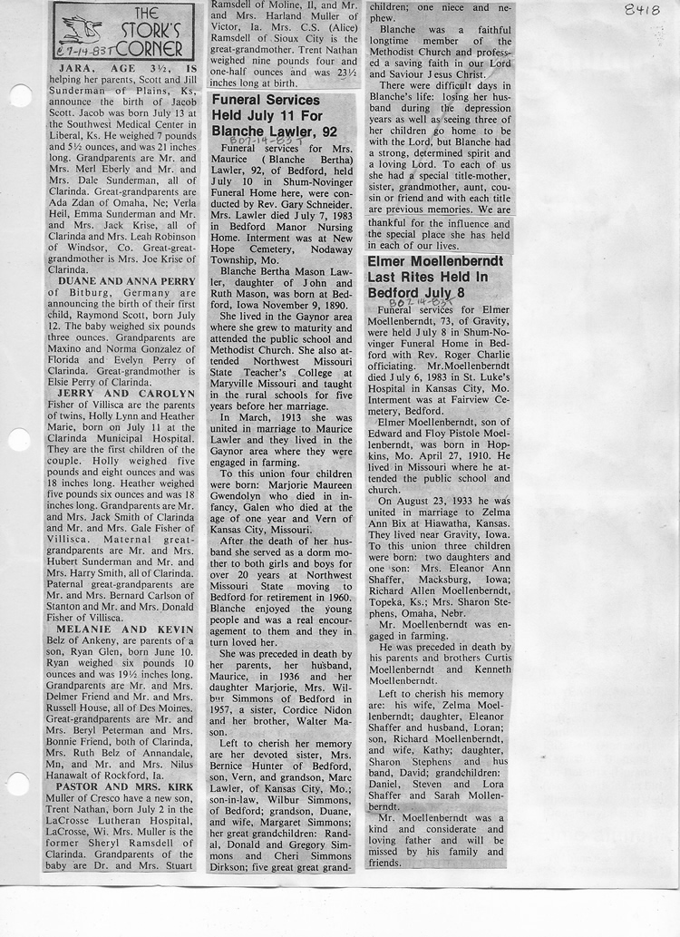 O'Dell's Abstracted Newspaper Index - Clippings - #8000's