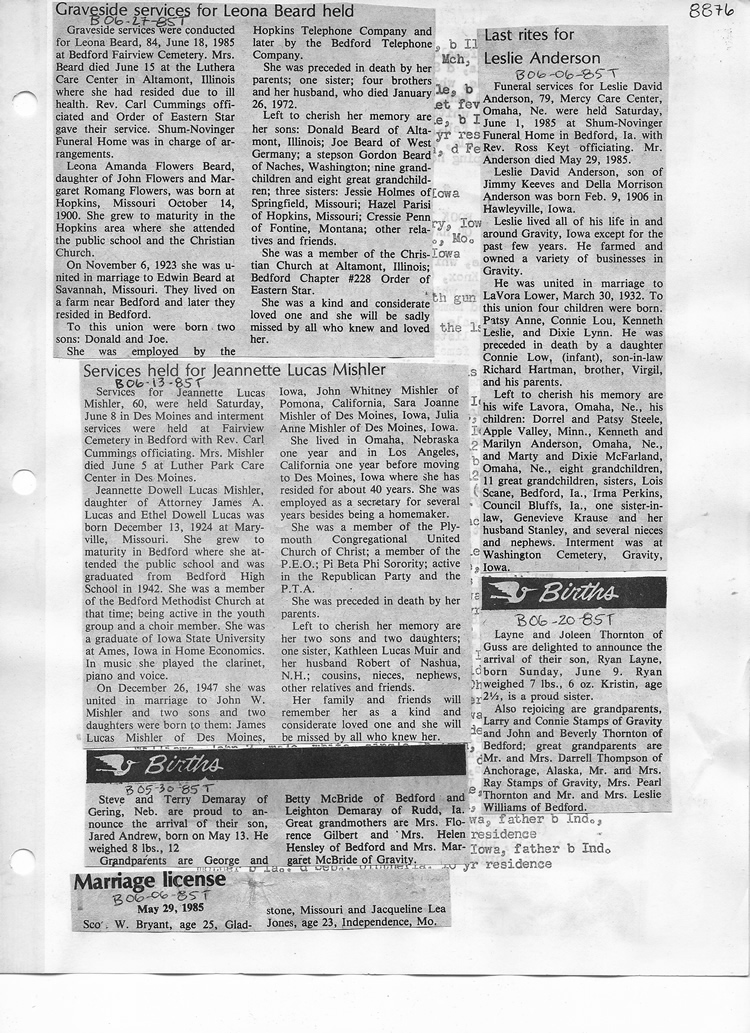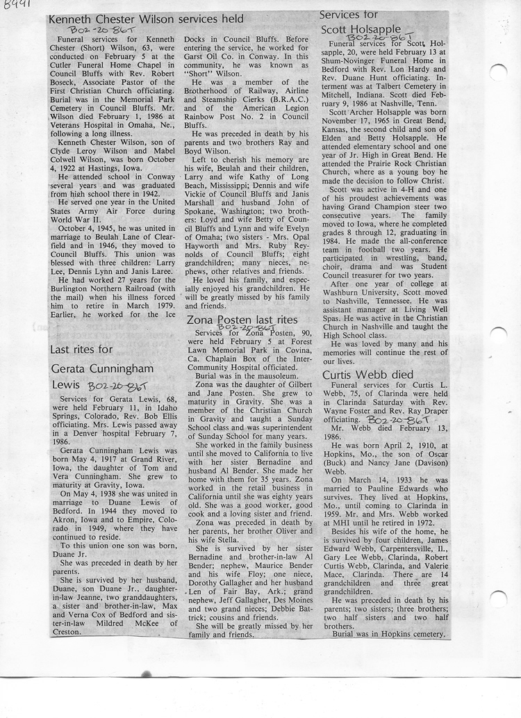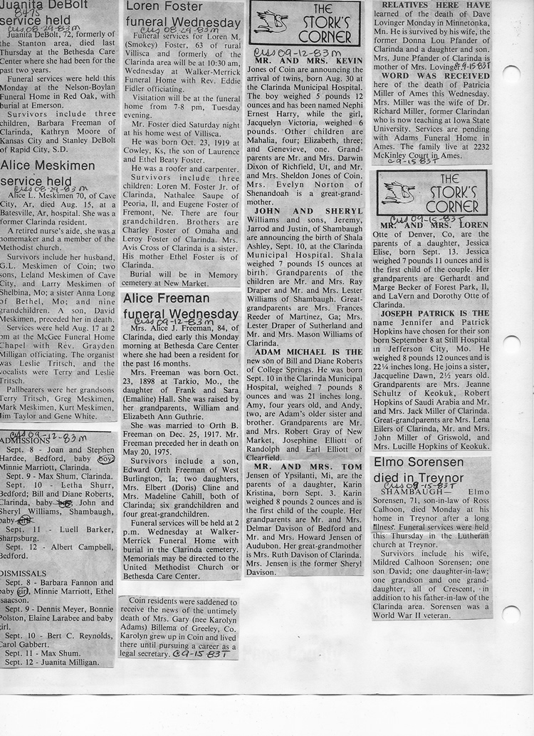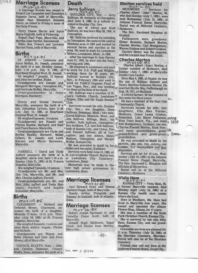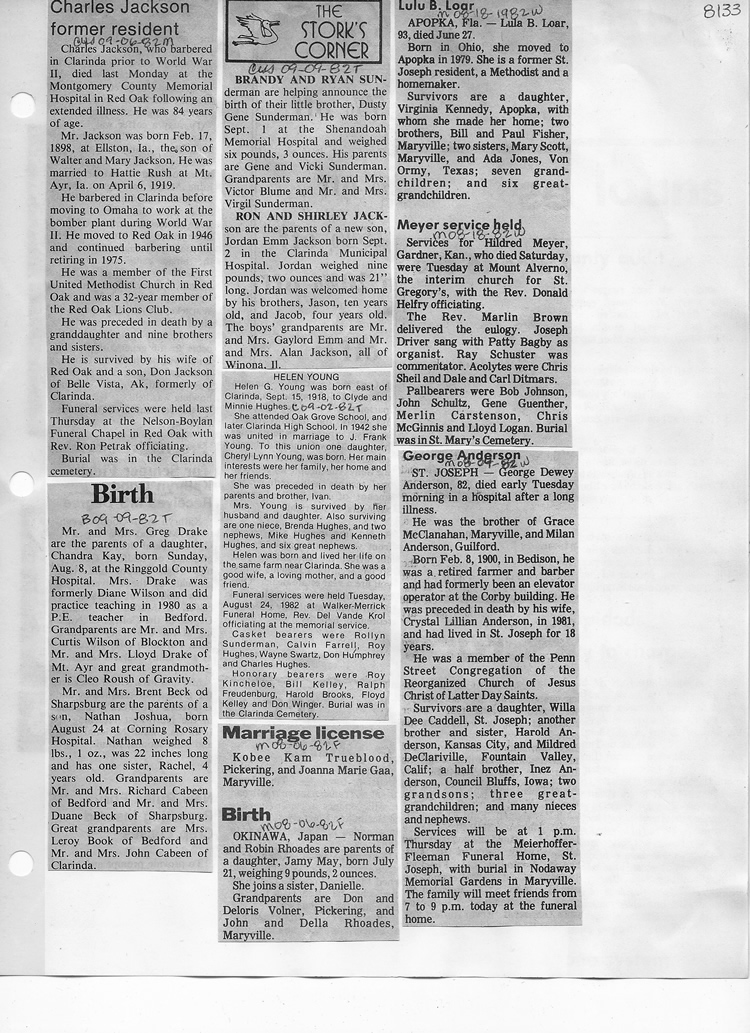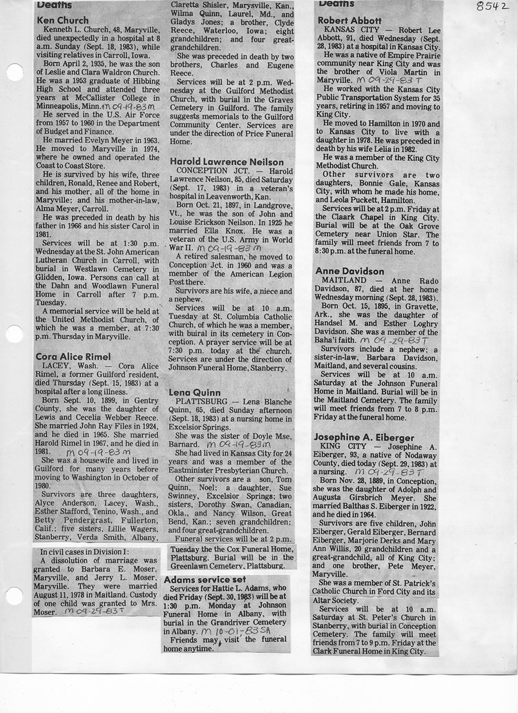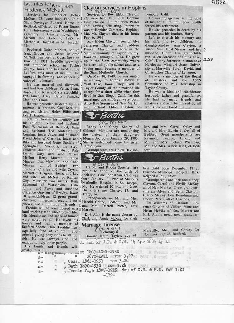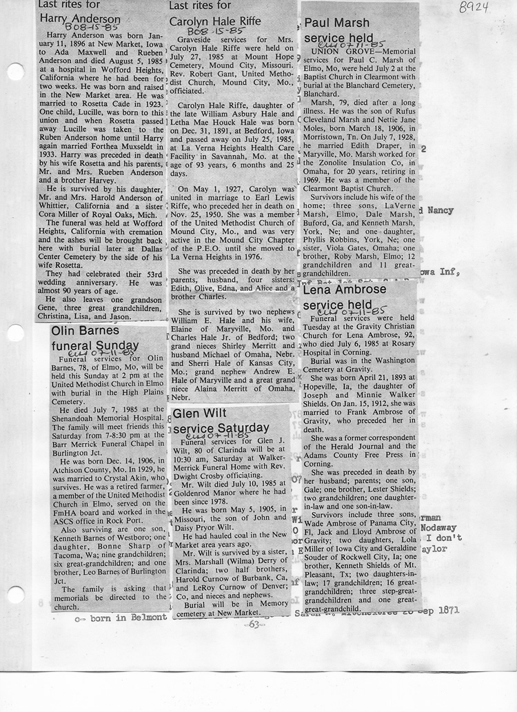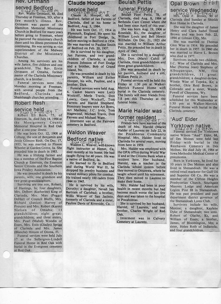 O'Dell's Abstracted Newspaper Index - Clippings - #8000's