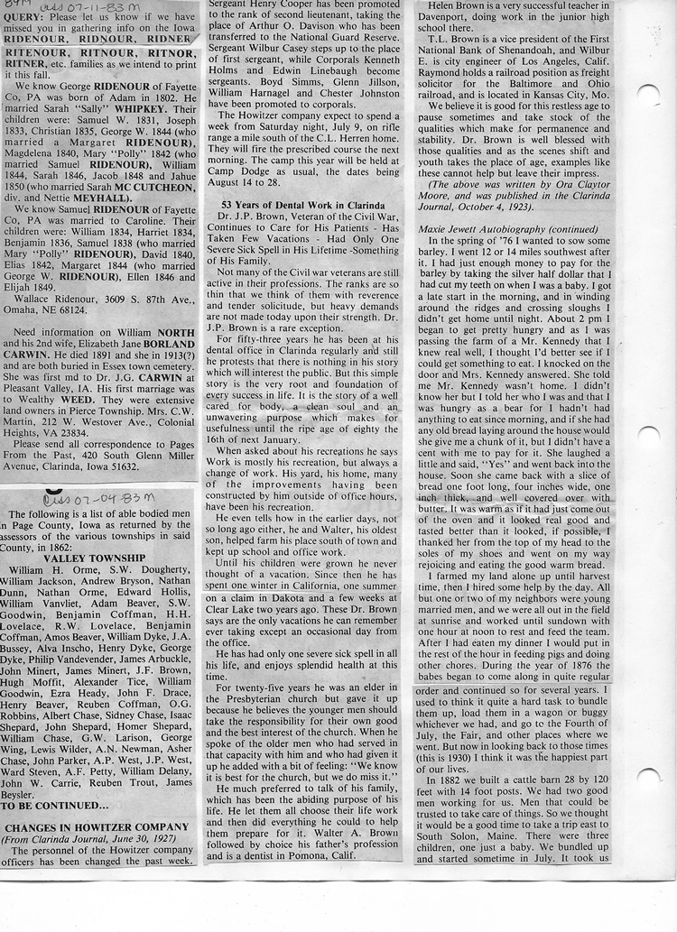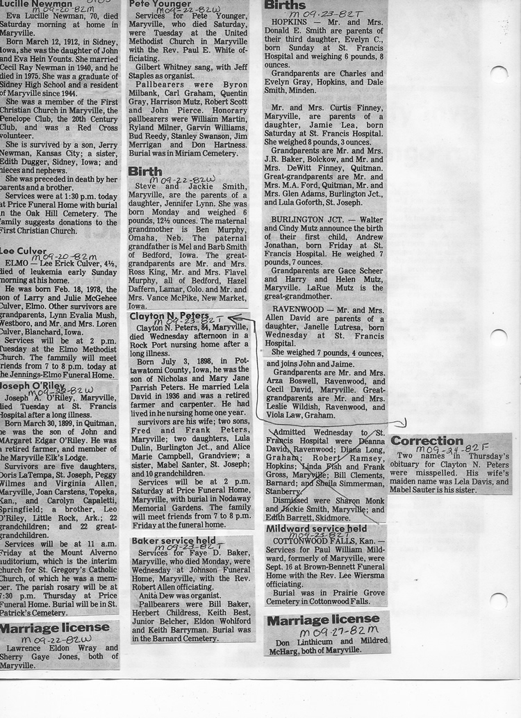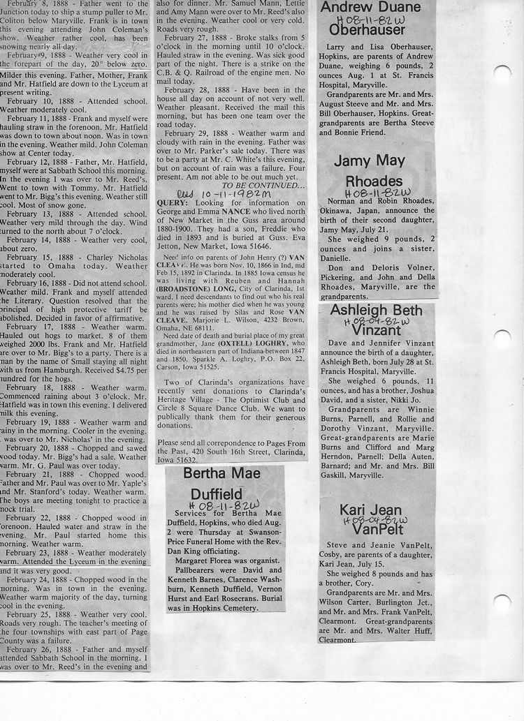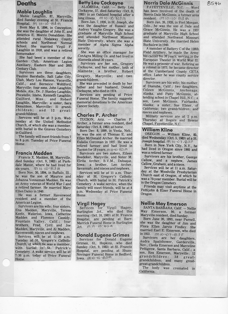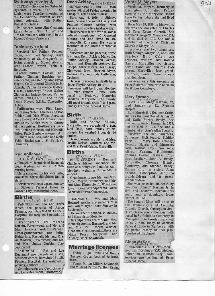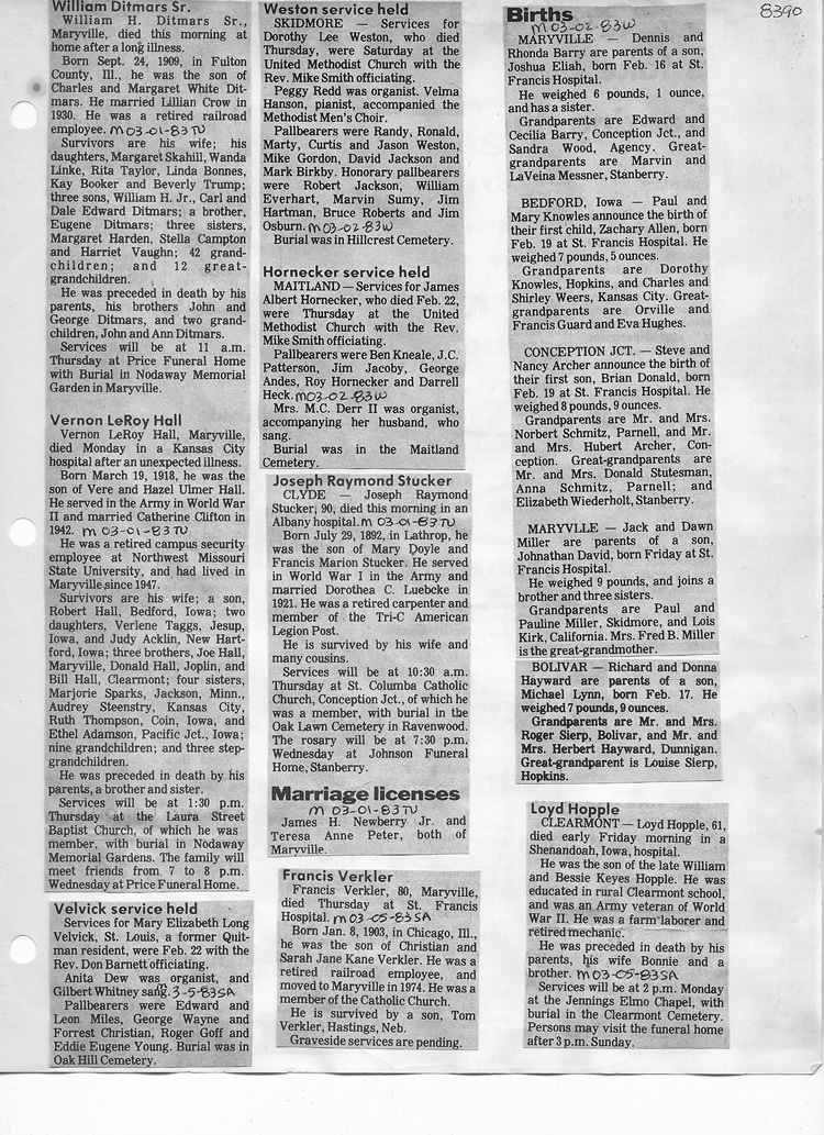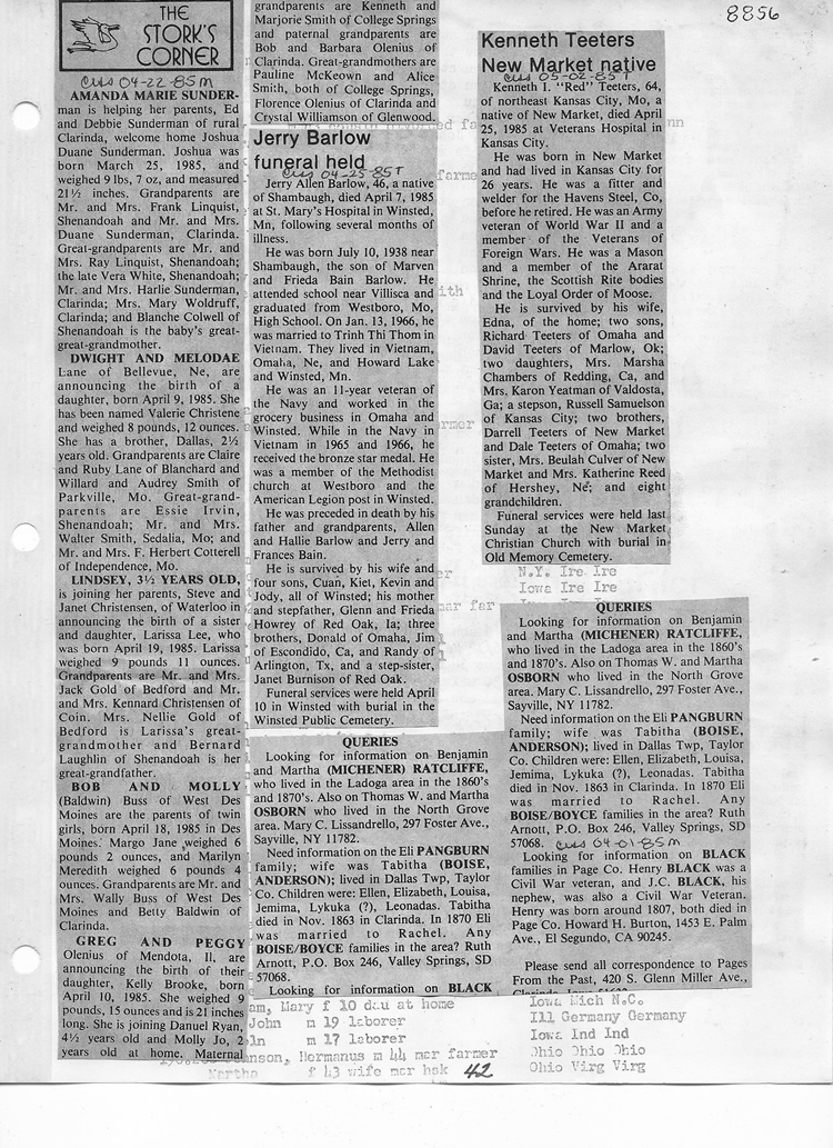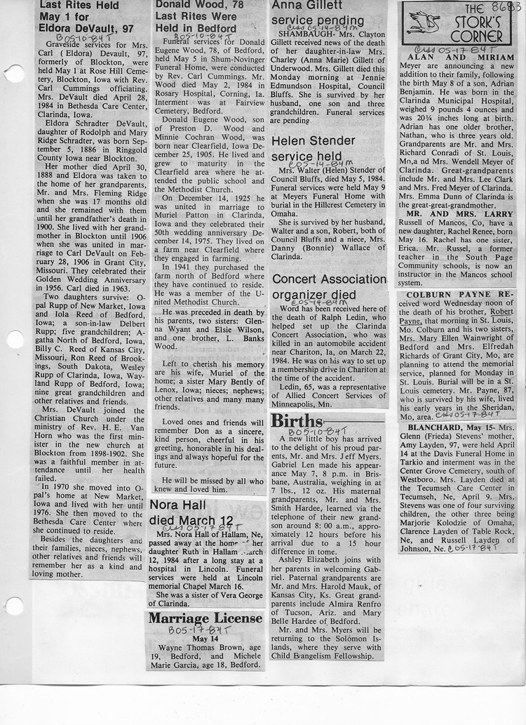 O'Dell's Abstracted Newspaper Index - Clippings - #8000's