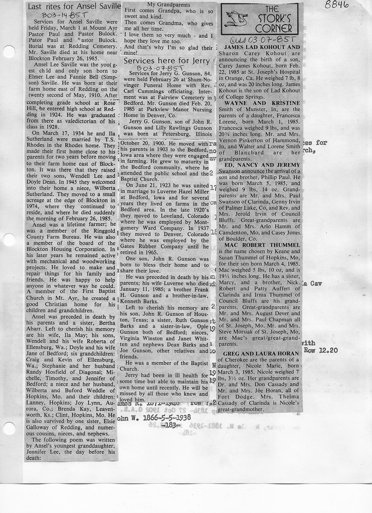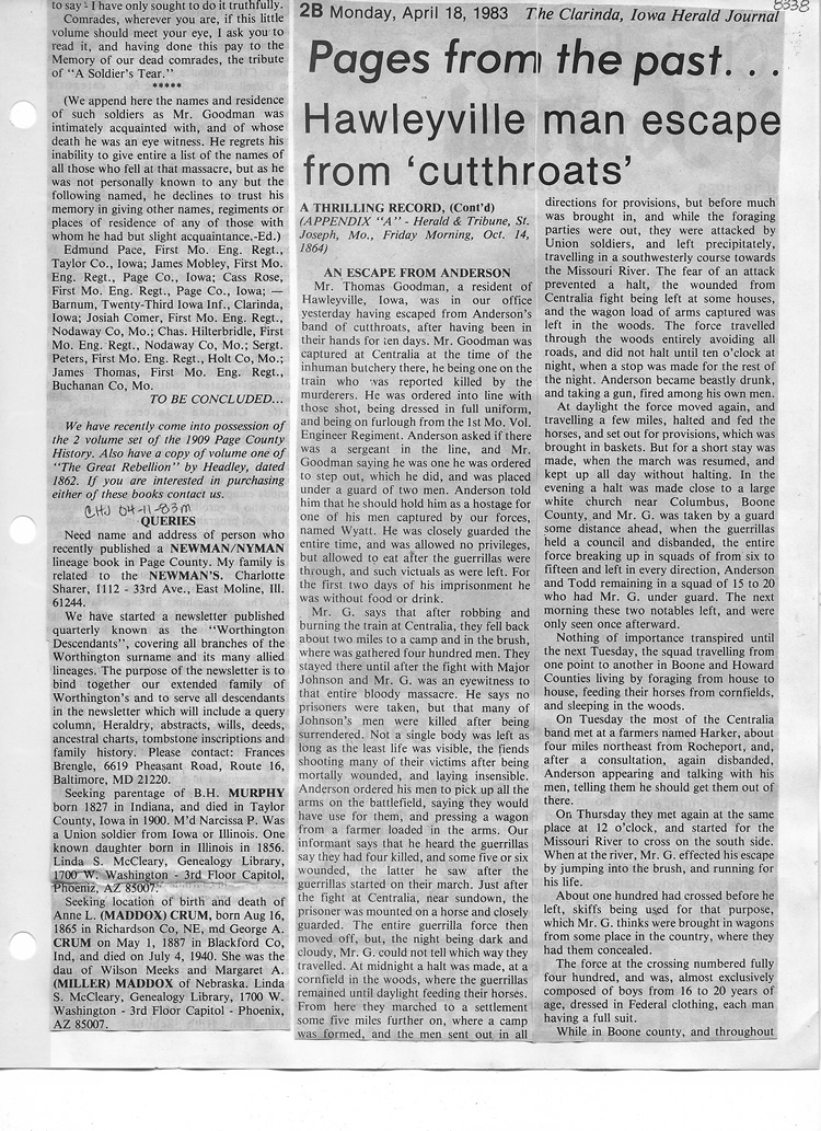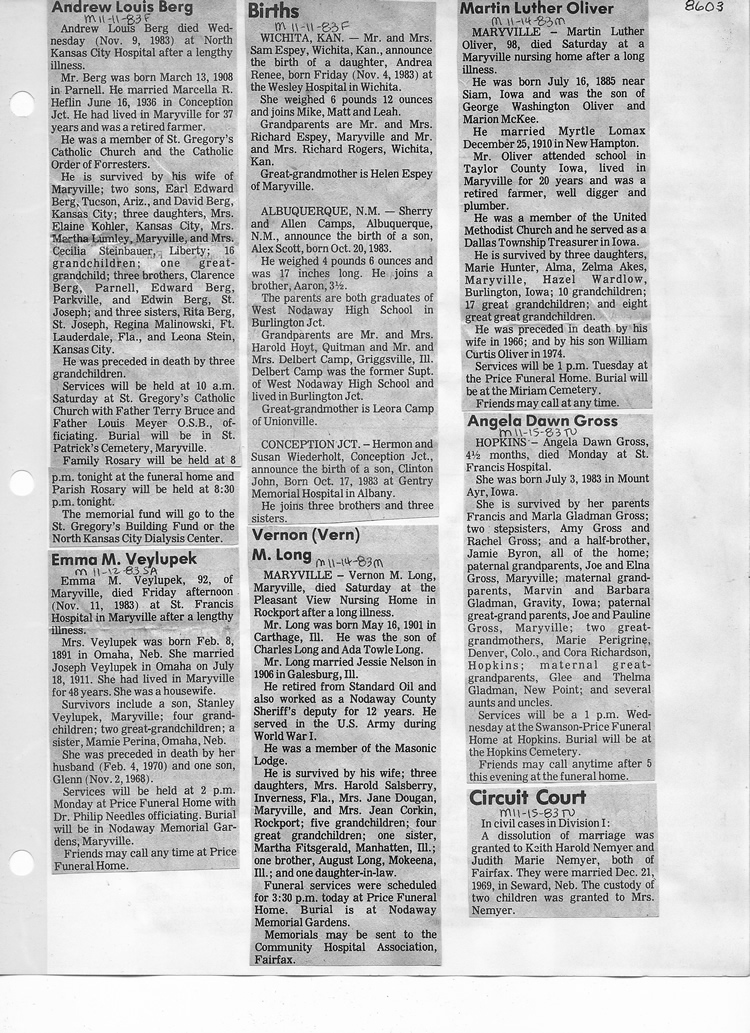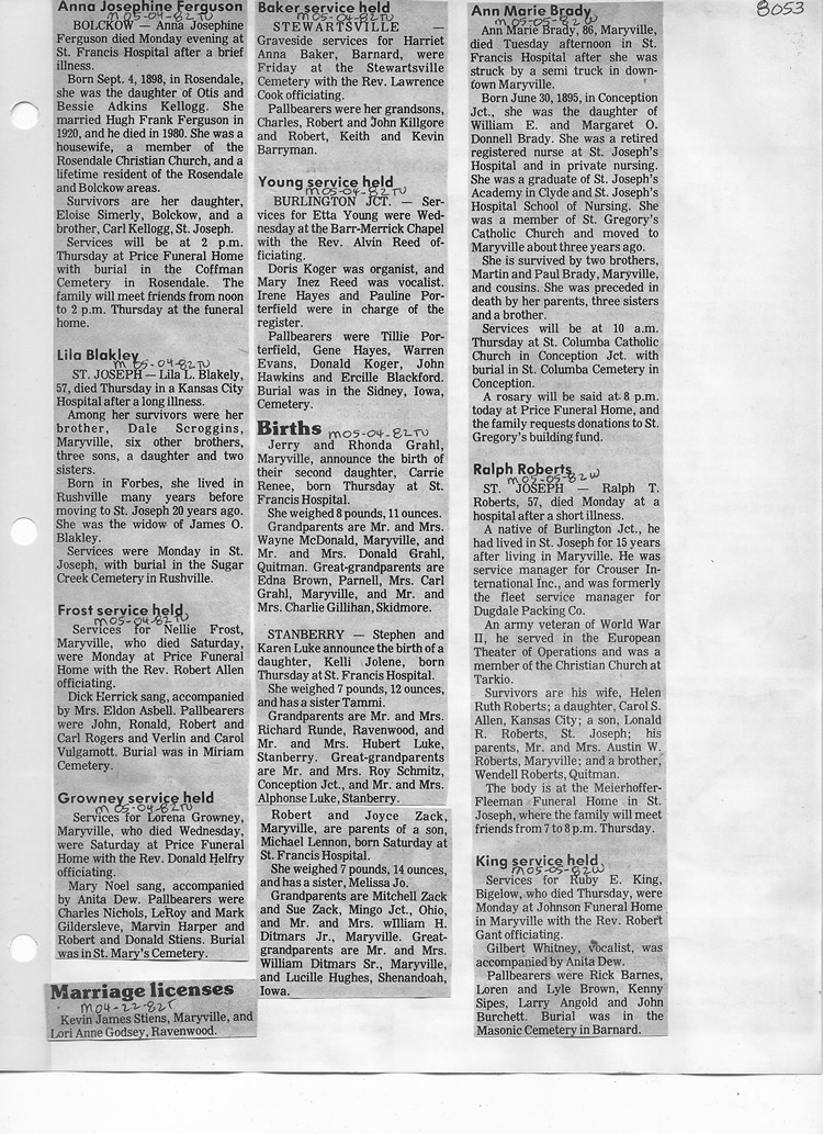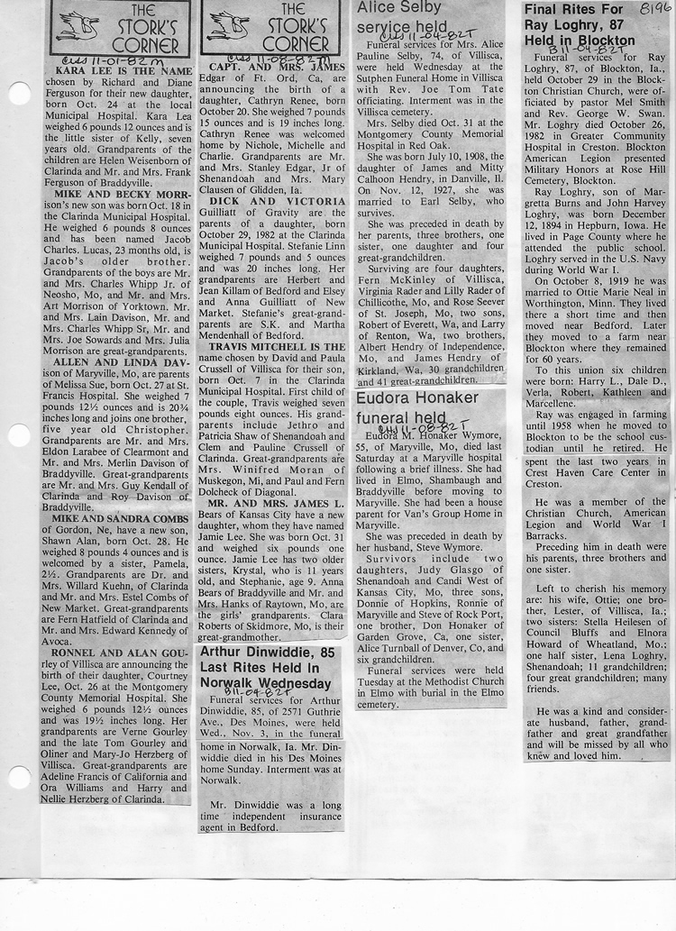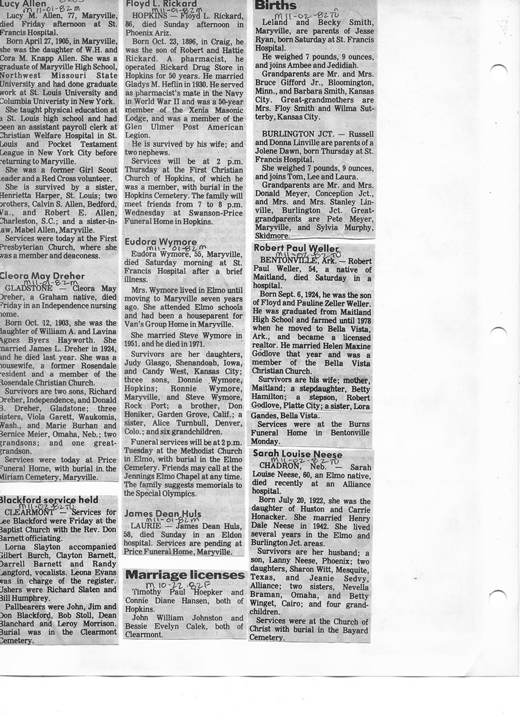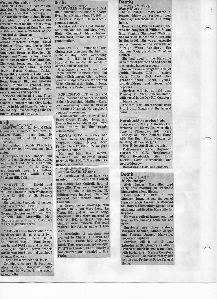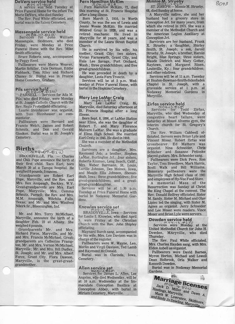 O'Dell's Abstracted Newspaper Index - Clippings - #8000's
