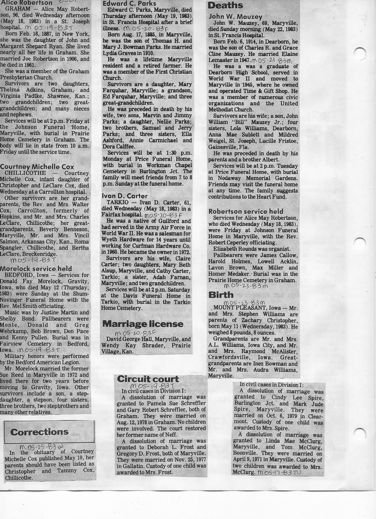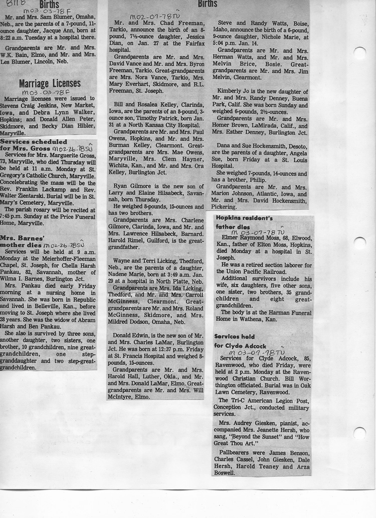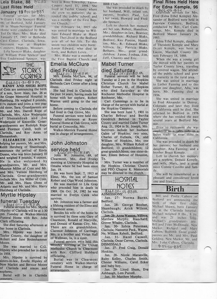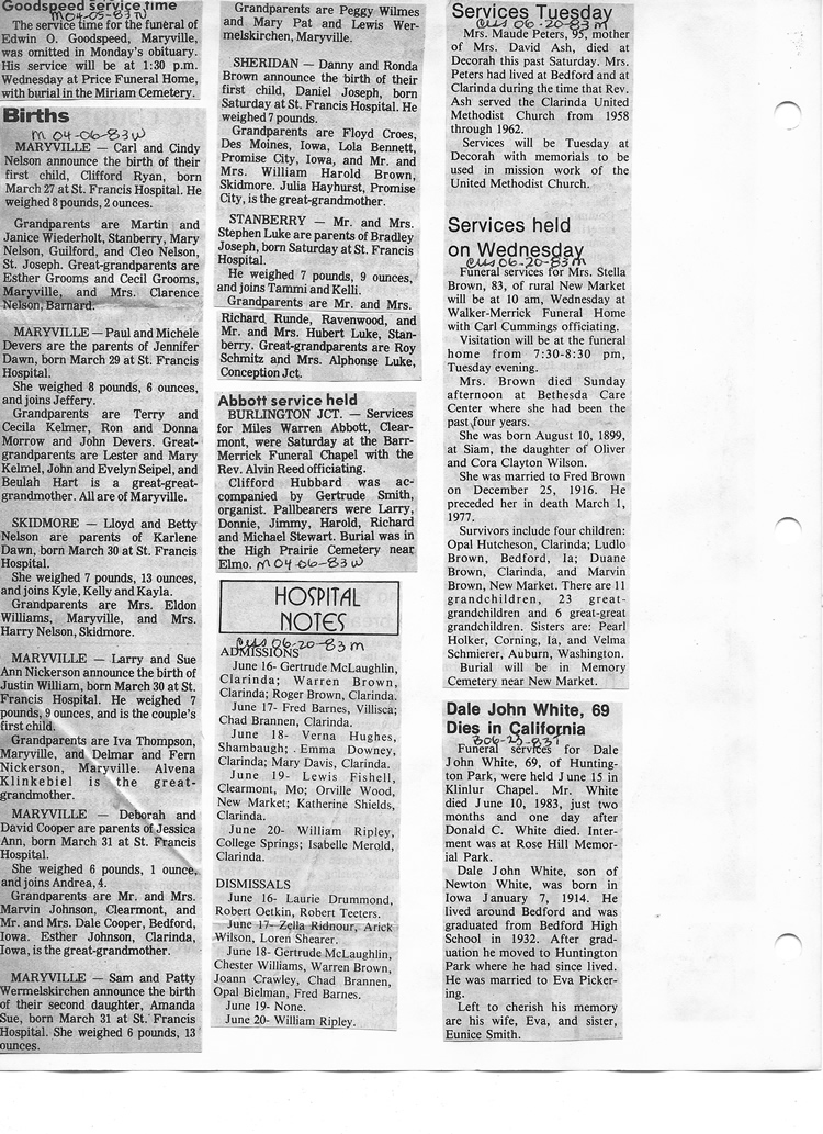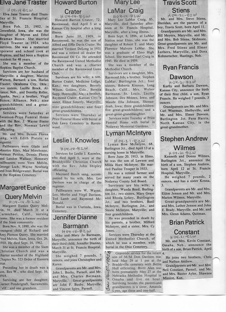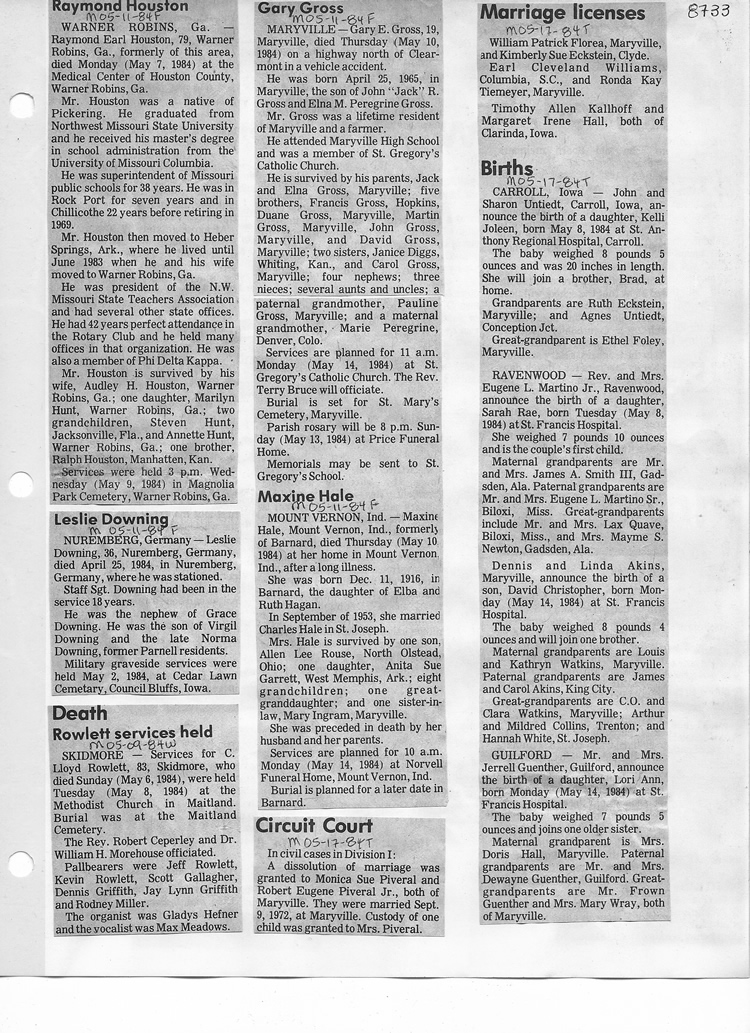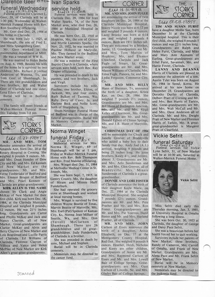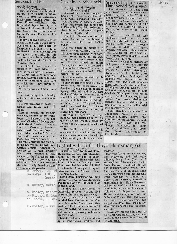 O'Dell's Abstracted Newspaper Index - Clippings - #8000's