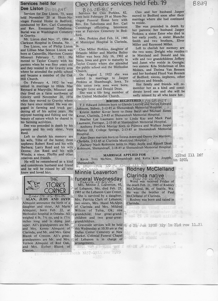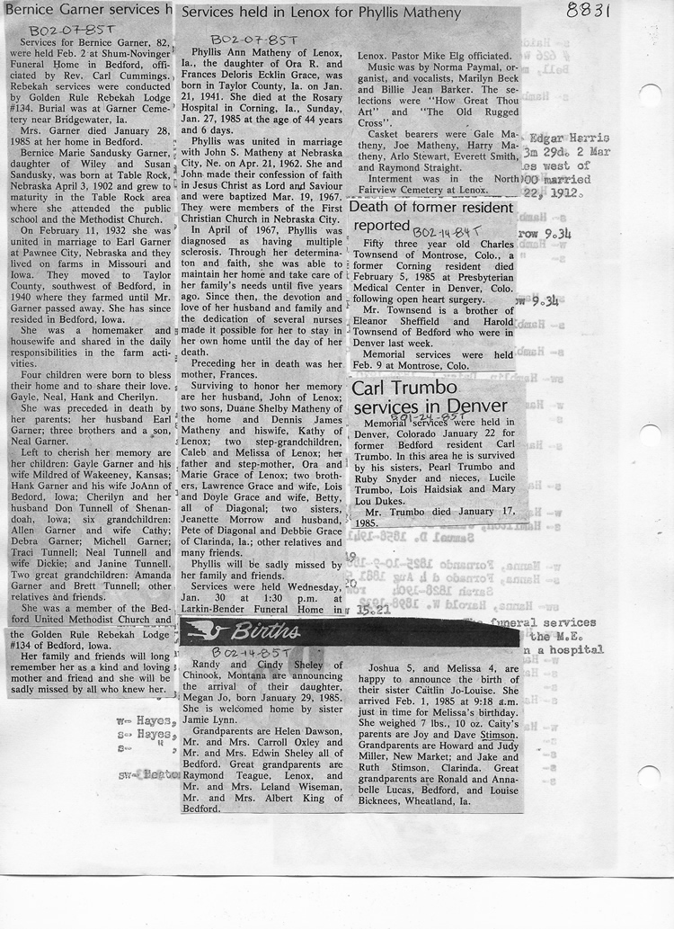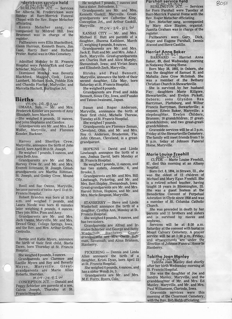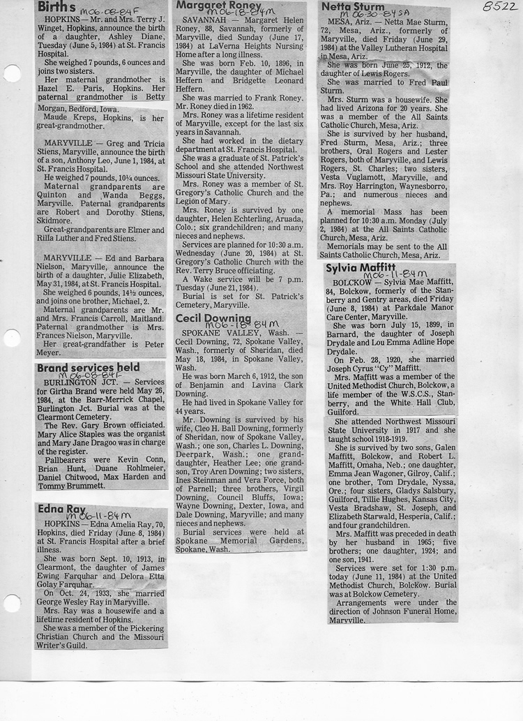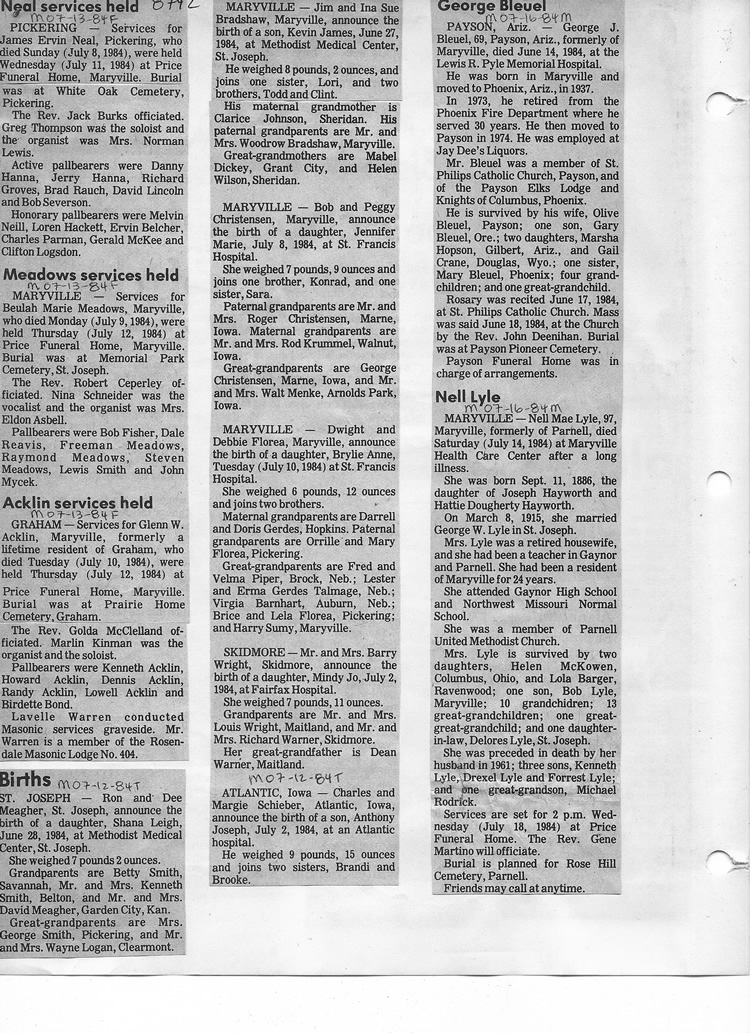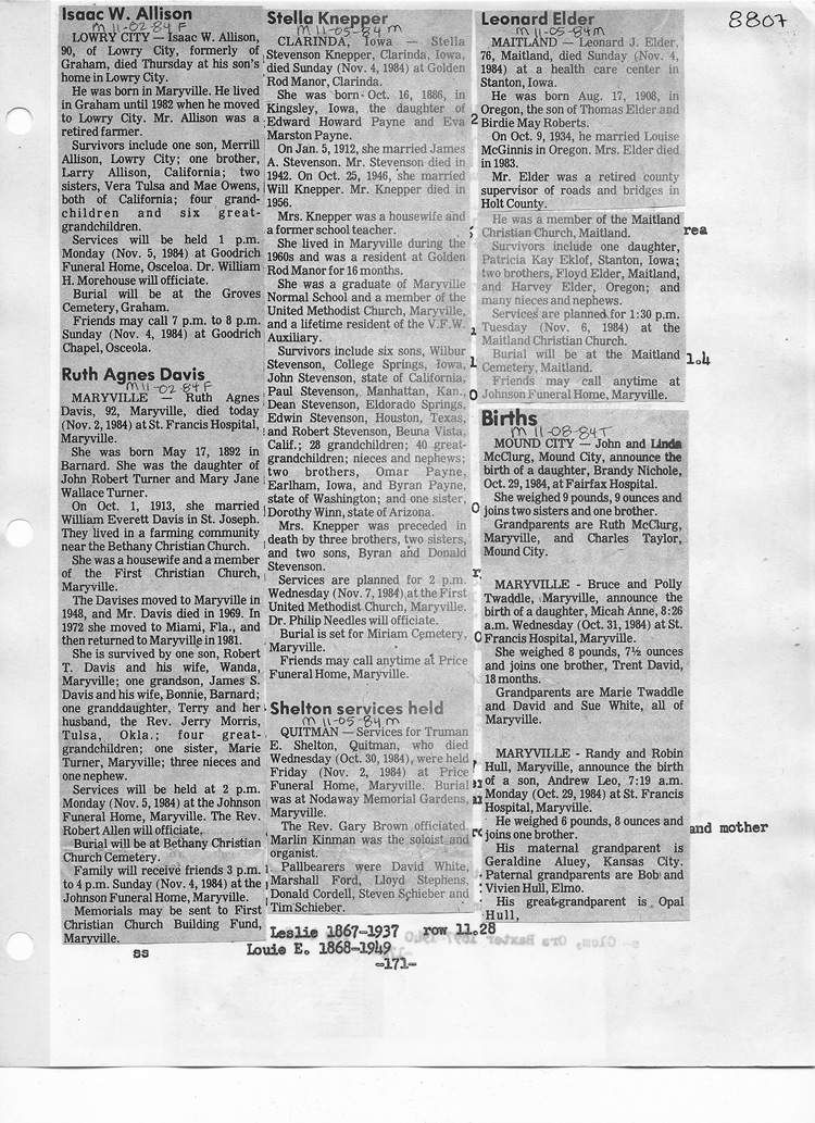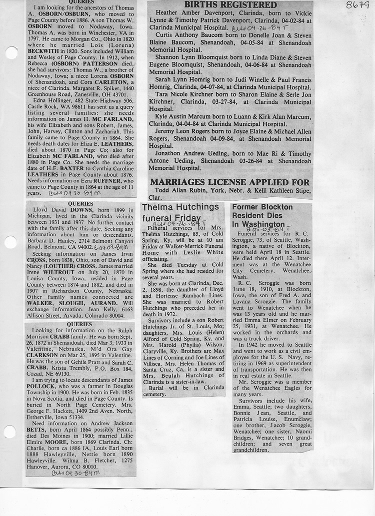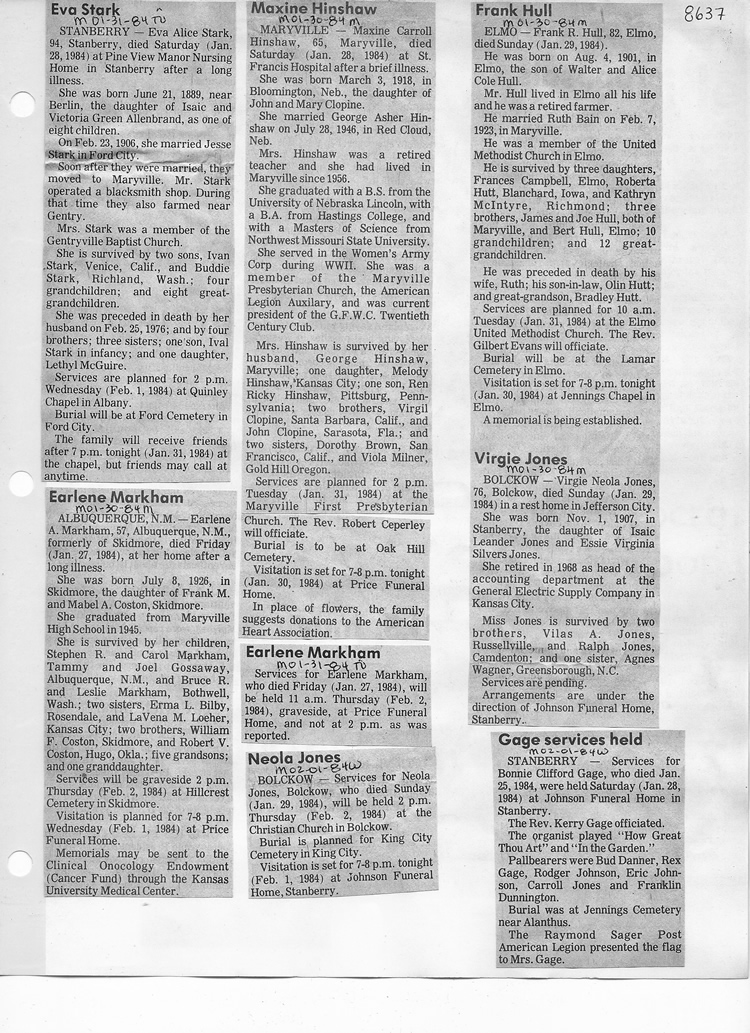 O'Dell's Abstracted Newspaper Index - Clippings - #8000's