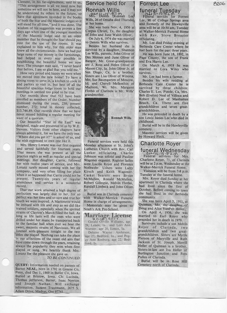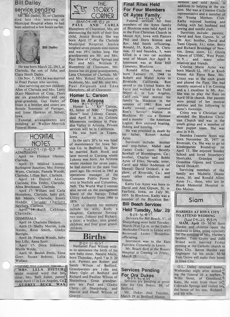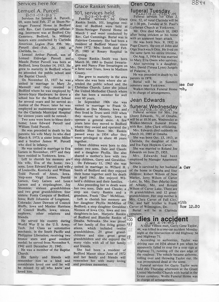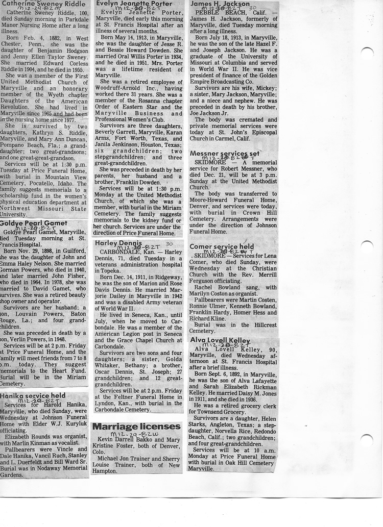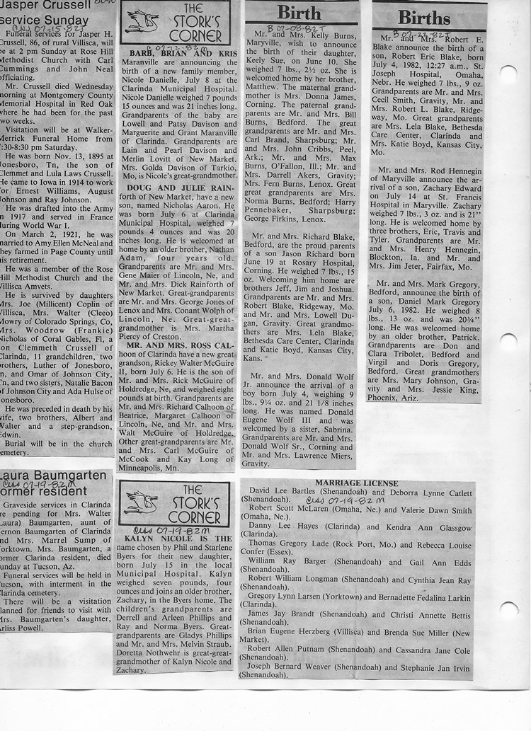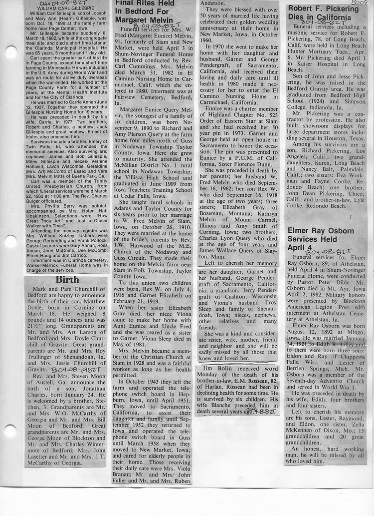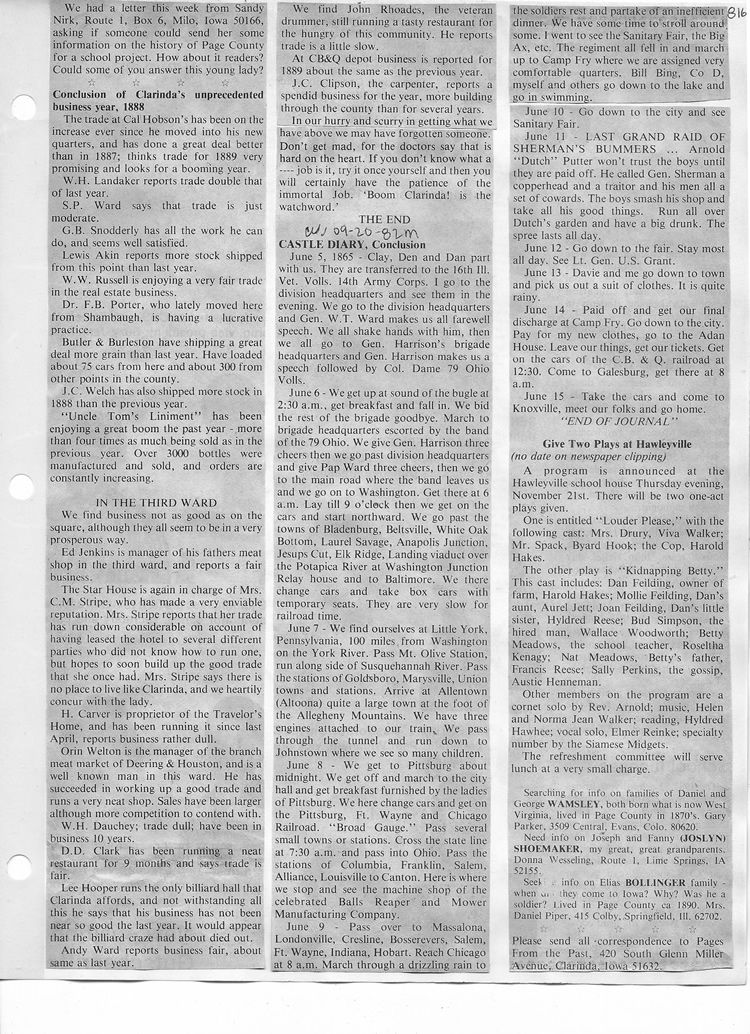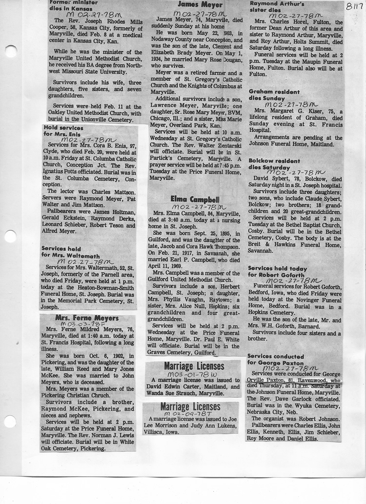 O'Dell's Abstracted Newspaper Index - Clippings - #8000's