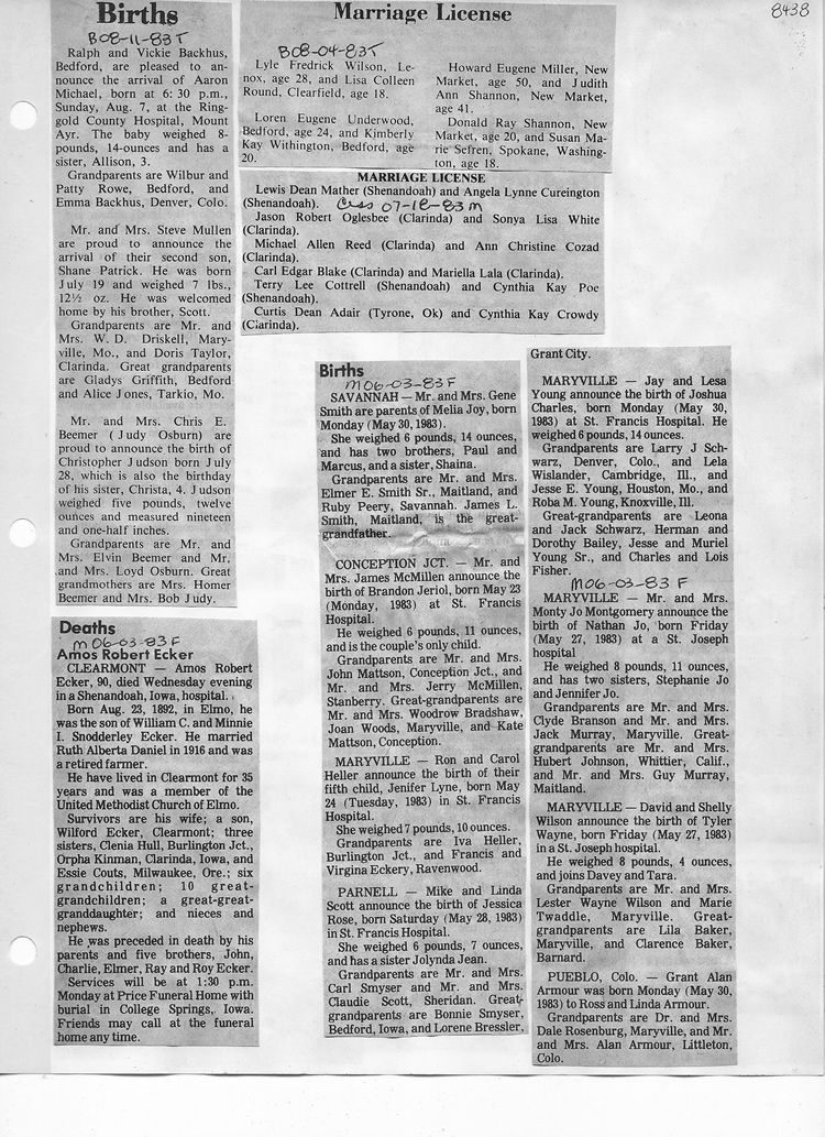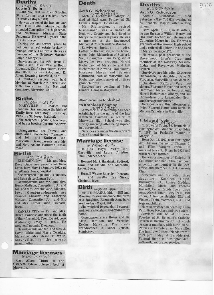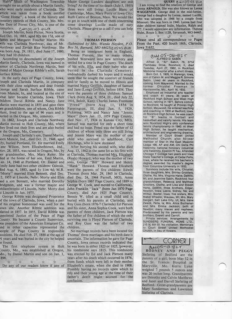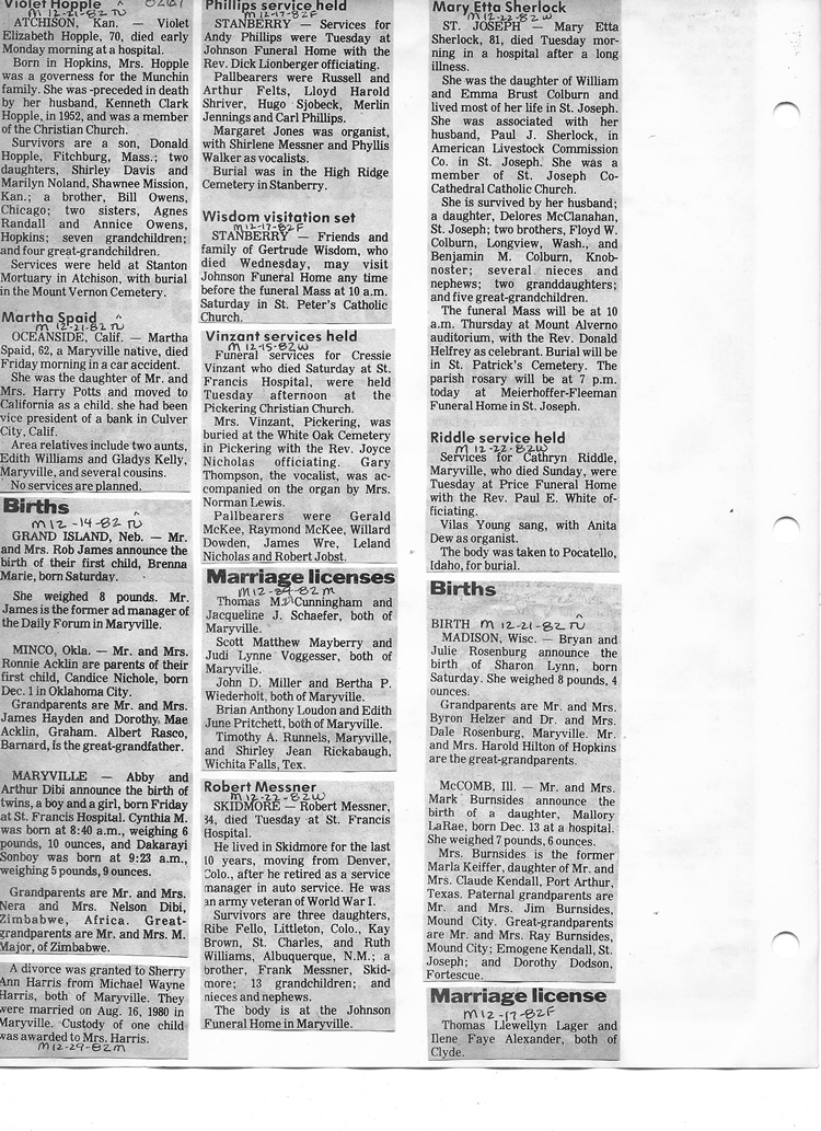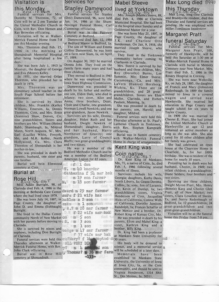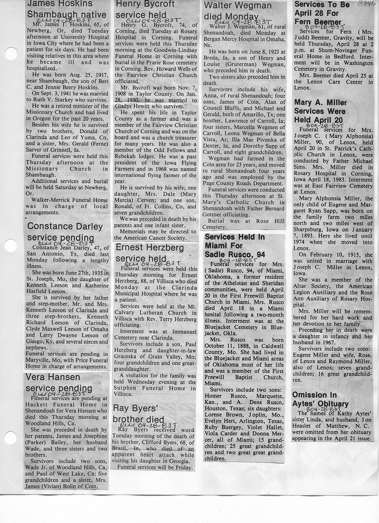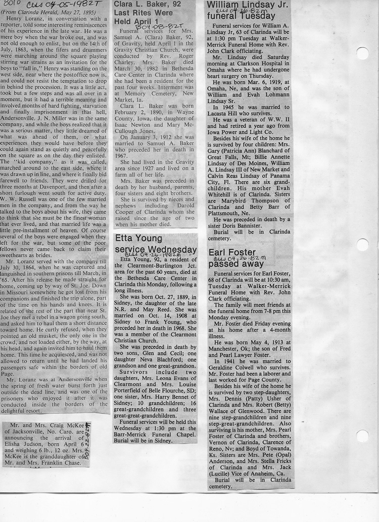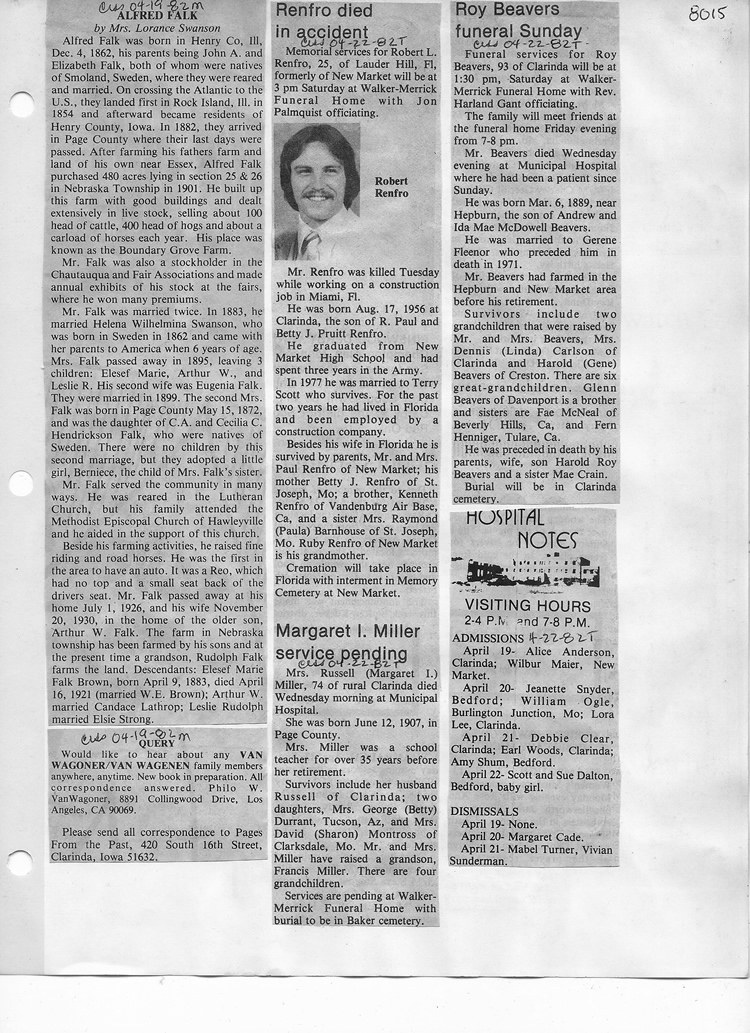 O'Dell's Abstracted Newspaper Index - Clippings - #8000's