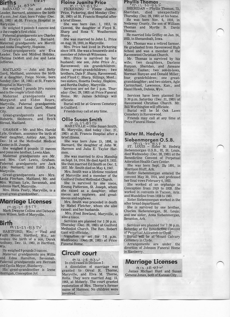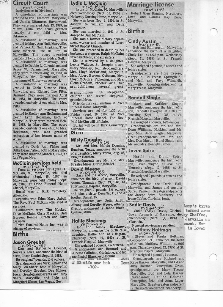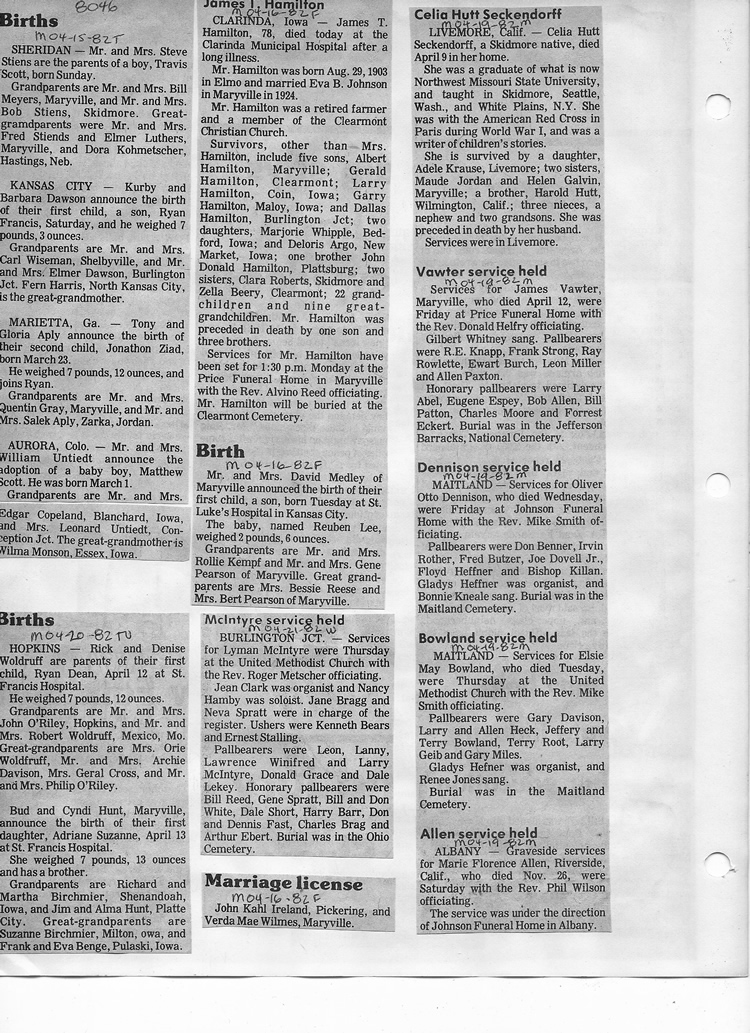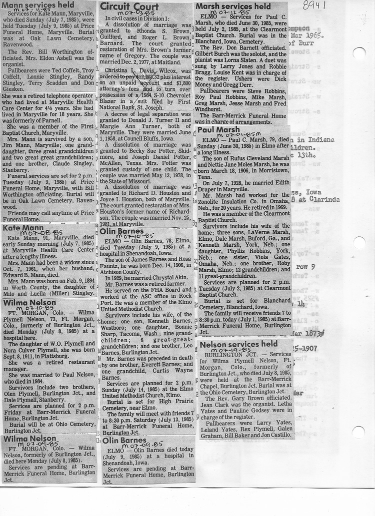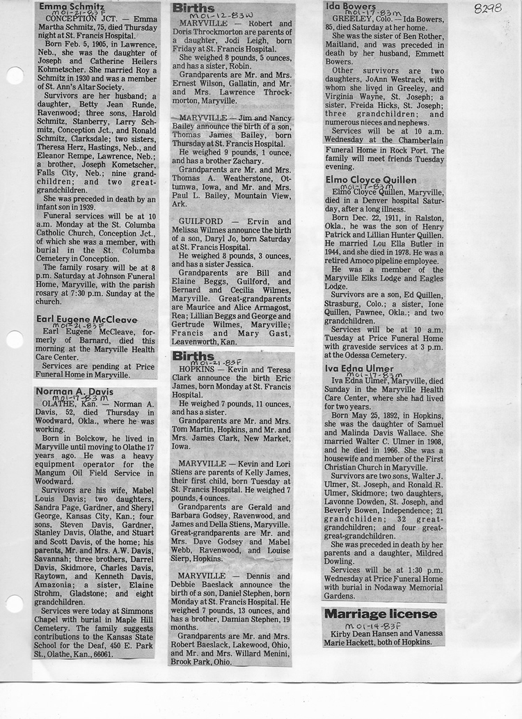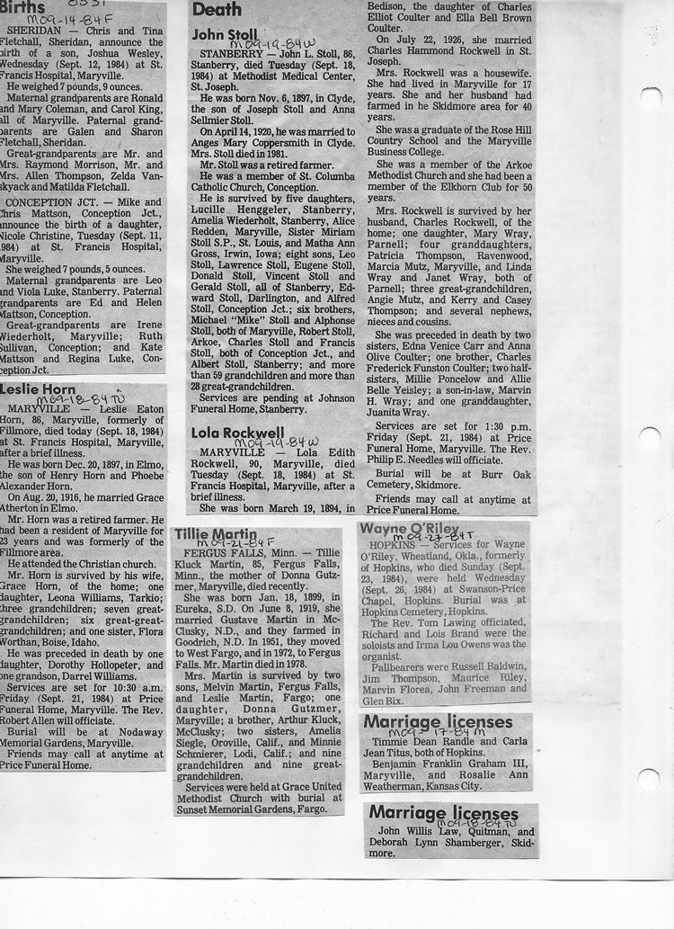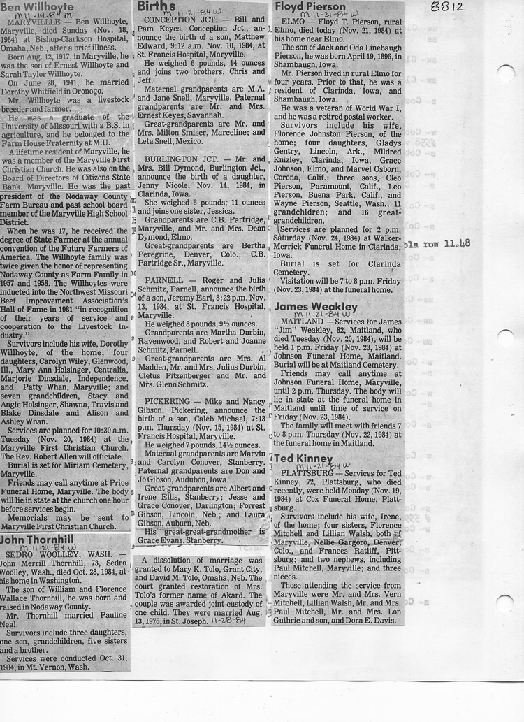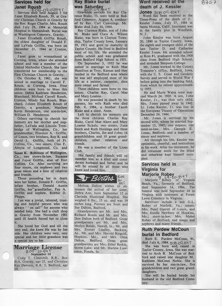 O'Dell's Abstracted Newspaper Index - Clippings - #8000's