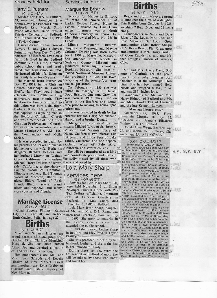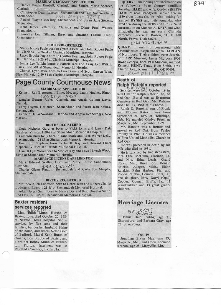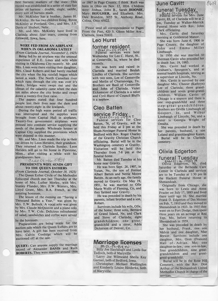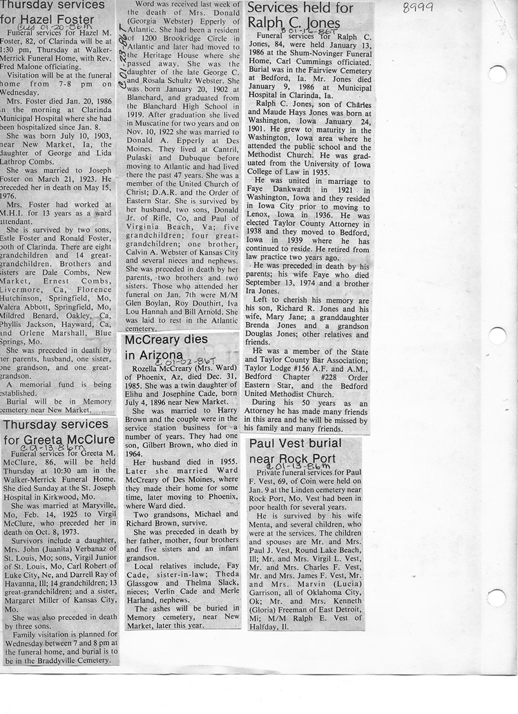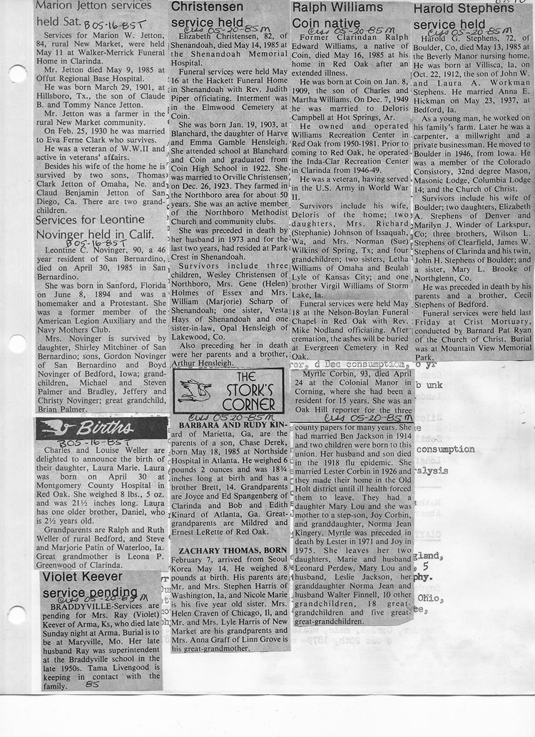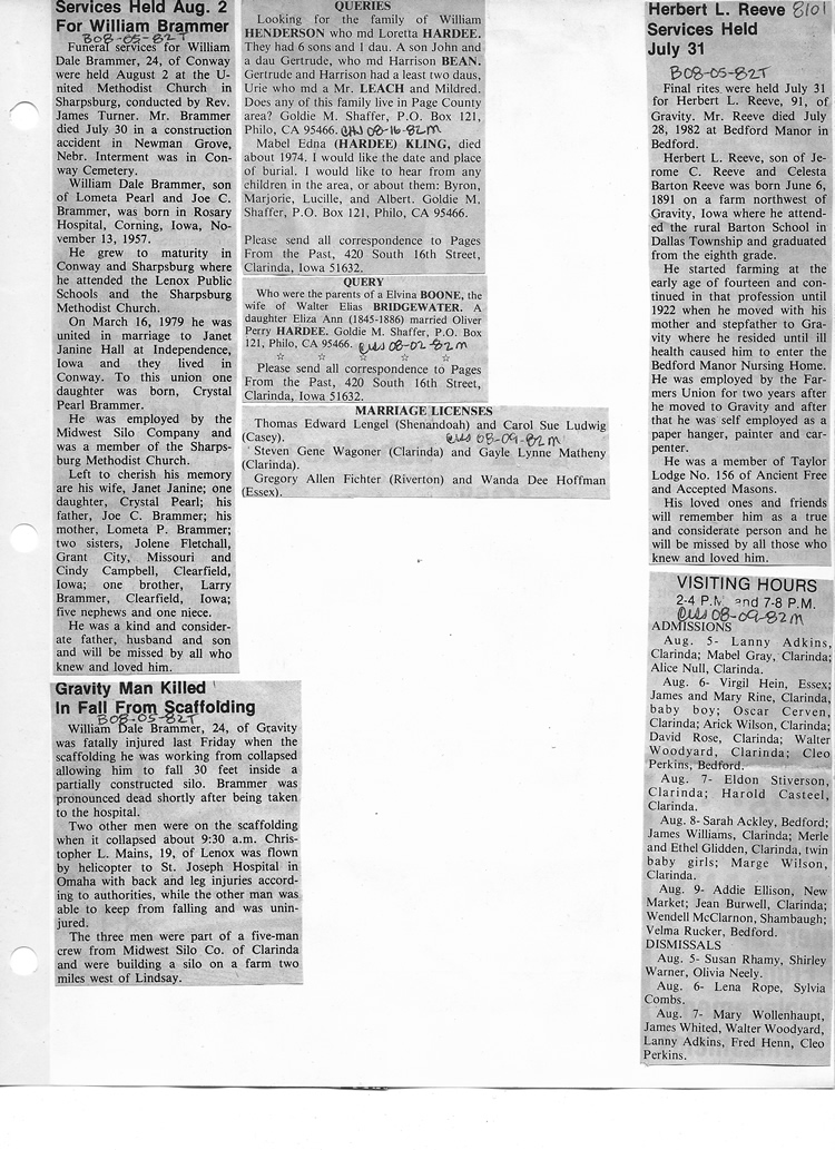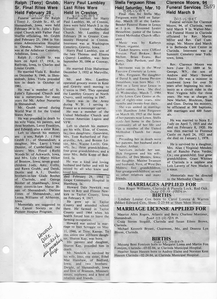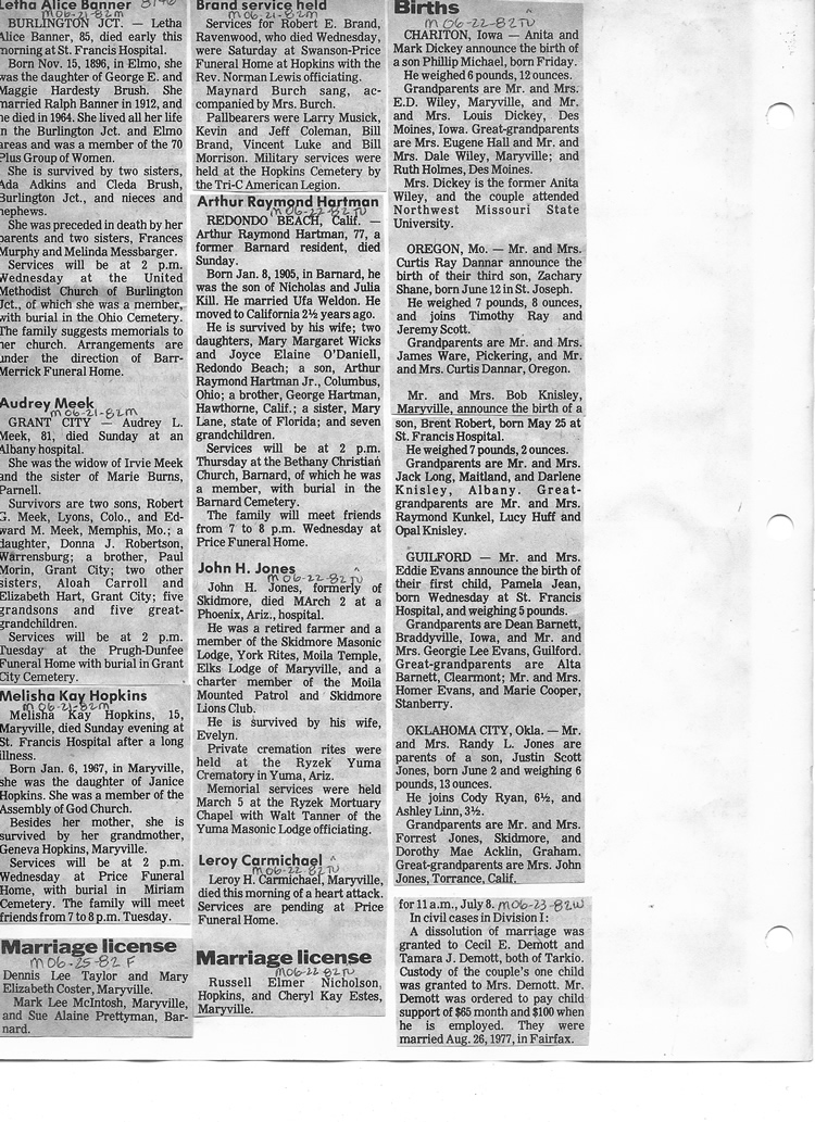 O'Dell's Abstracted Newspaper Index - Clippings - #8000's