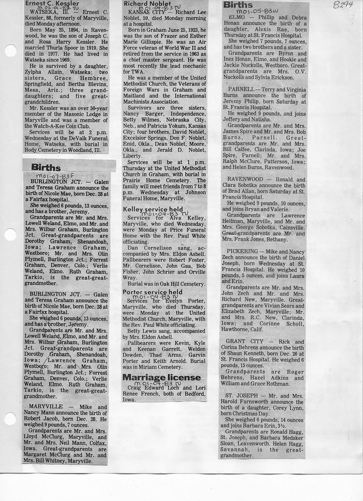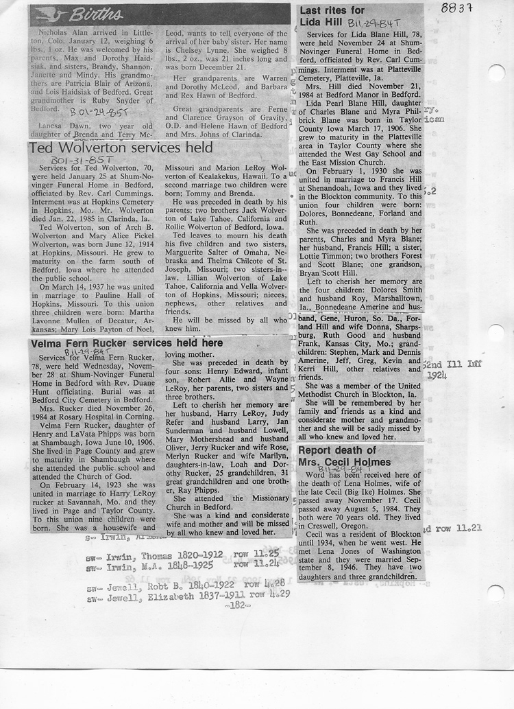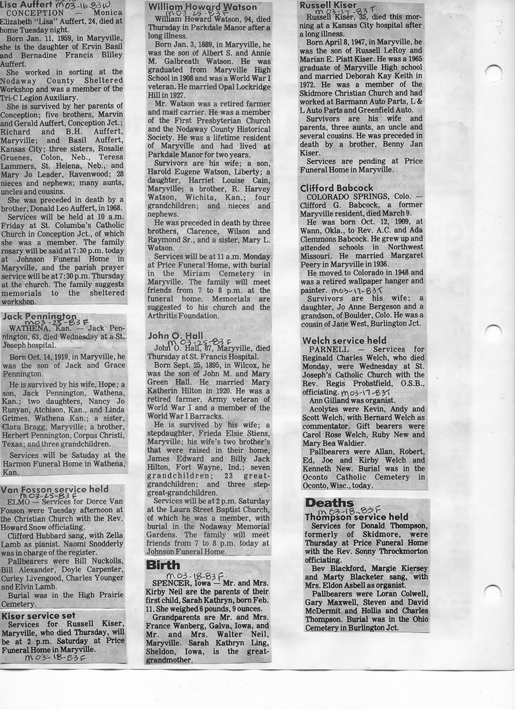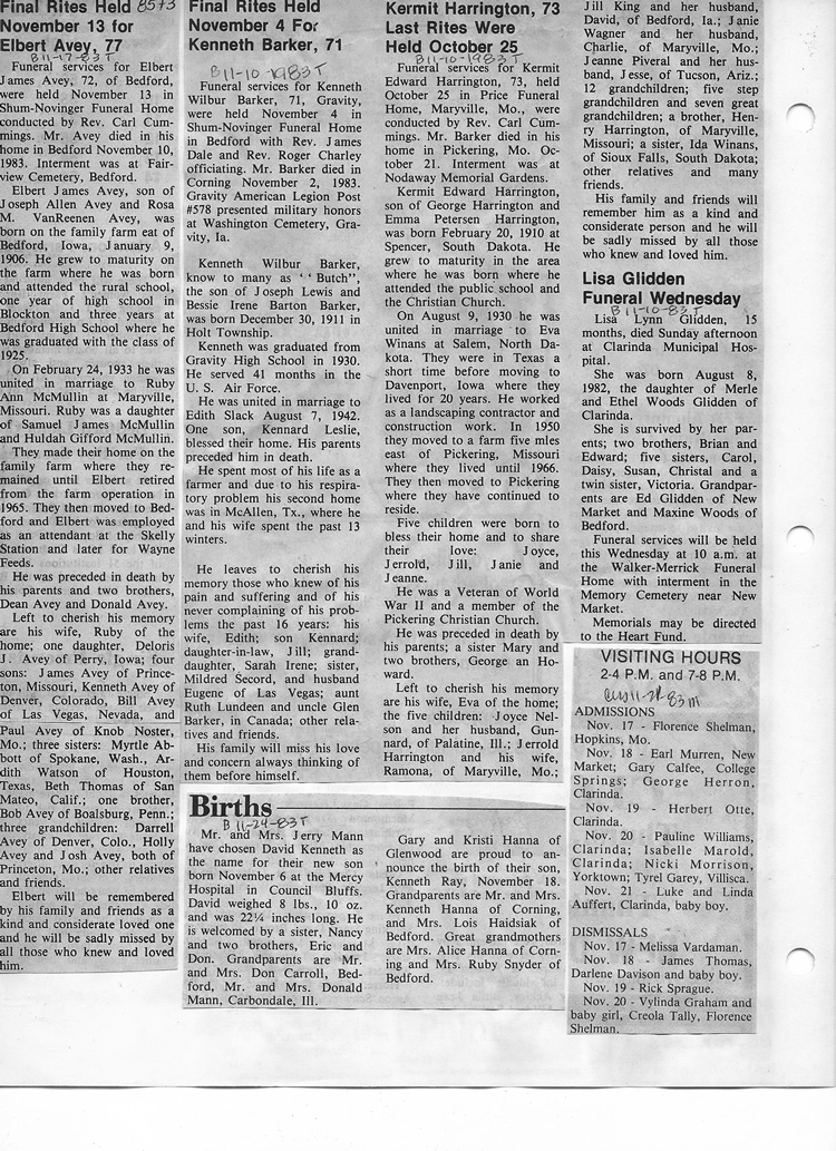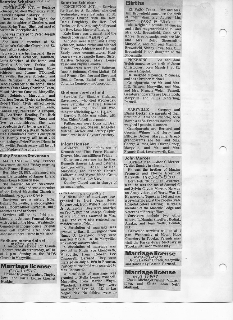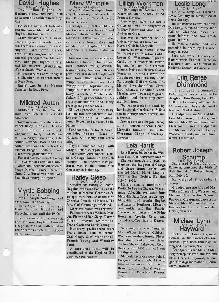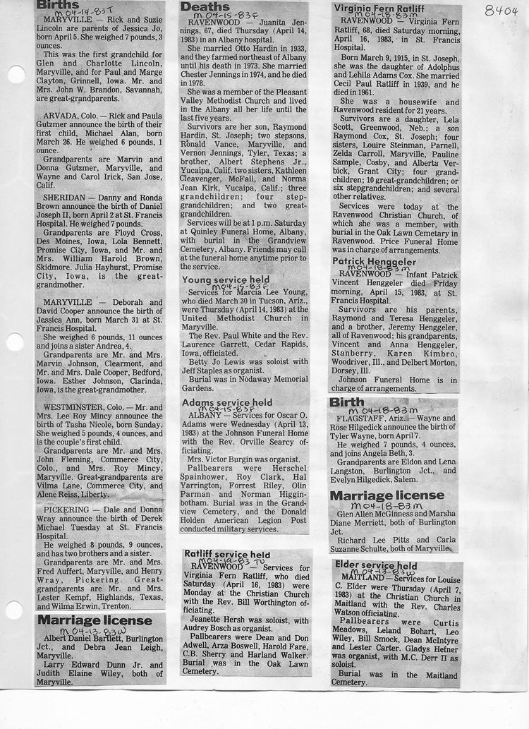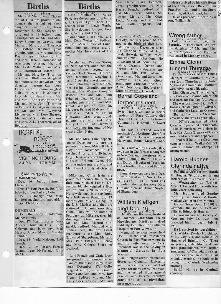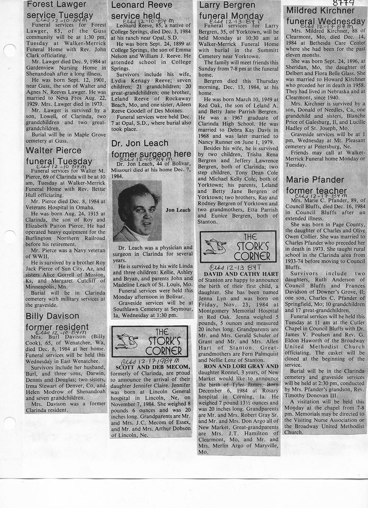 O'Dell's Abstracted Newspaper Index - Clippings - #8000's