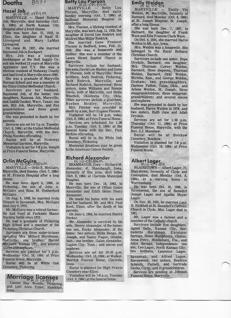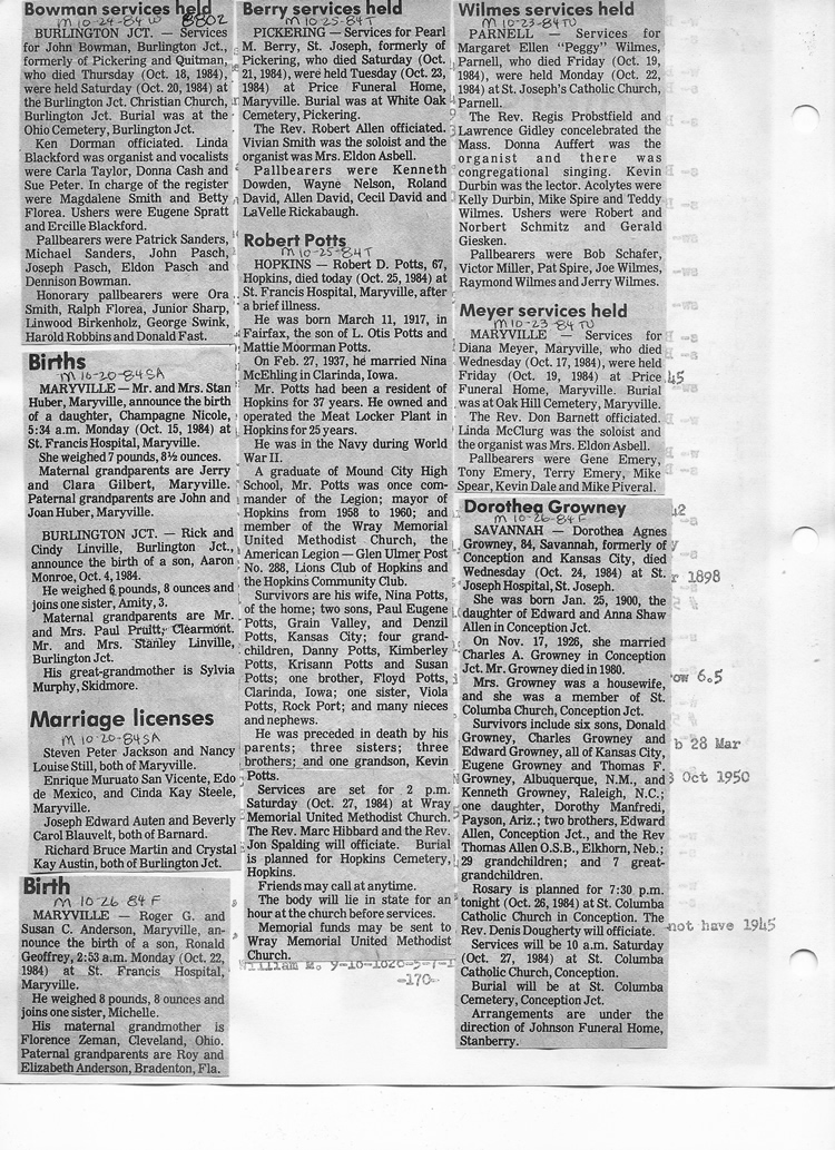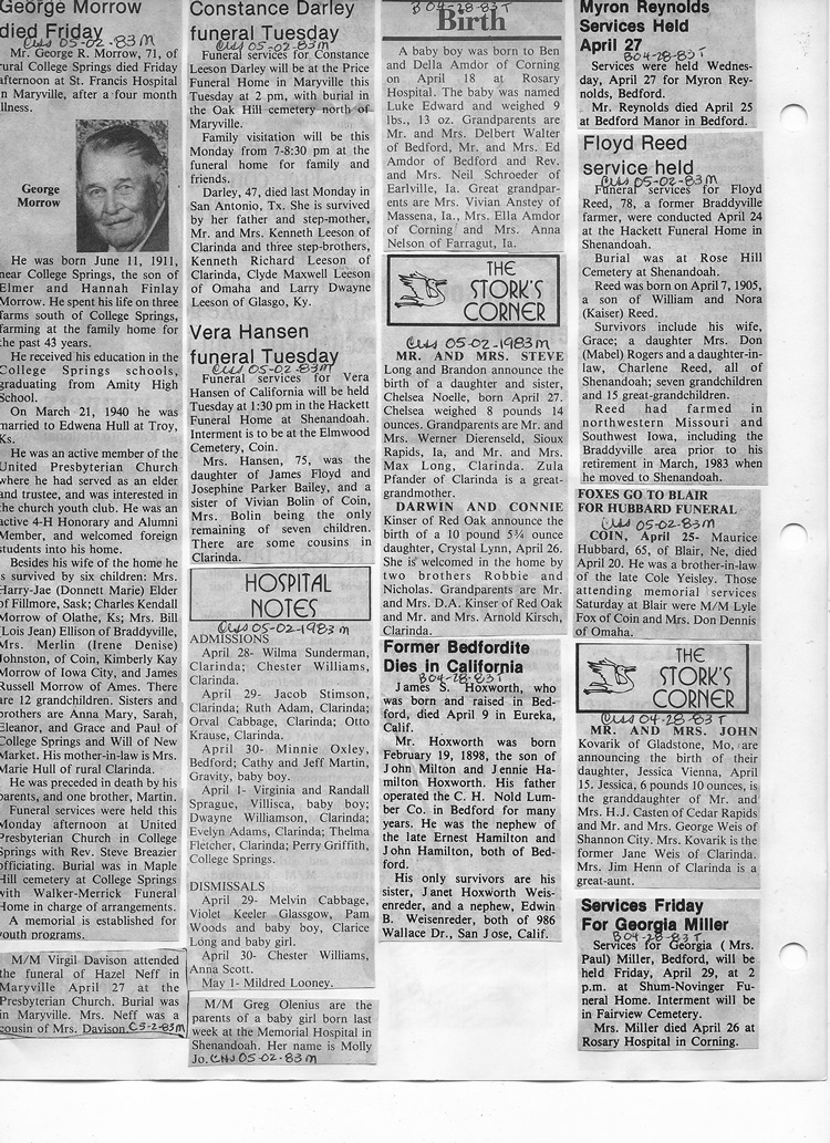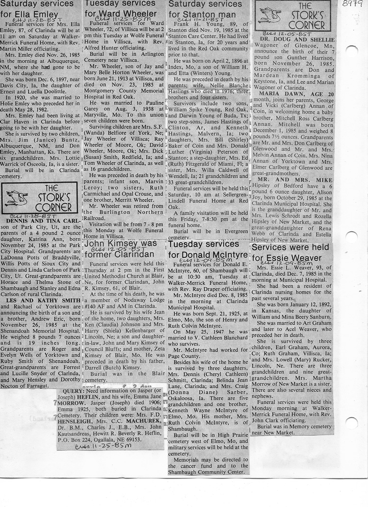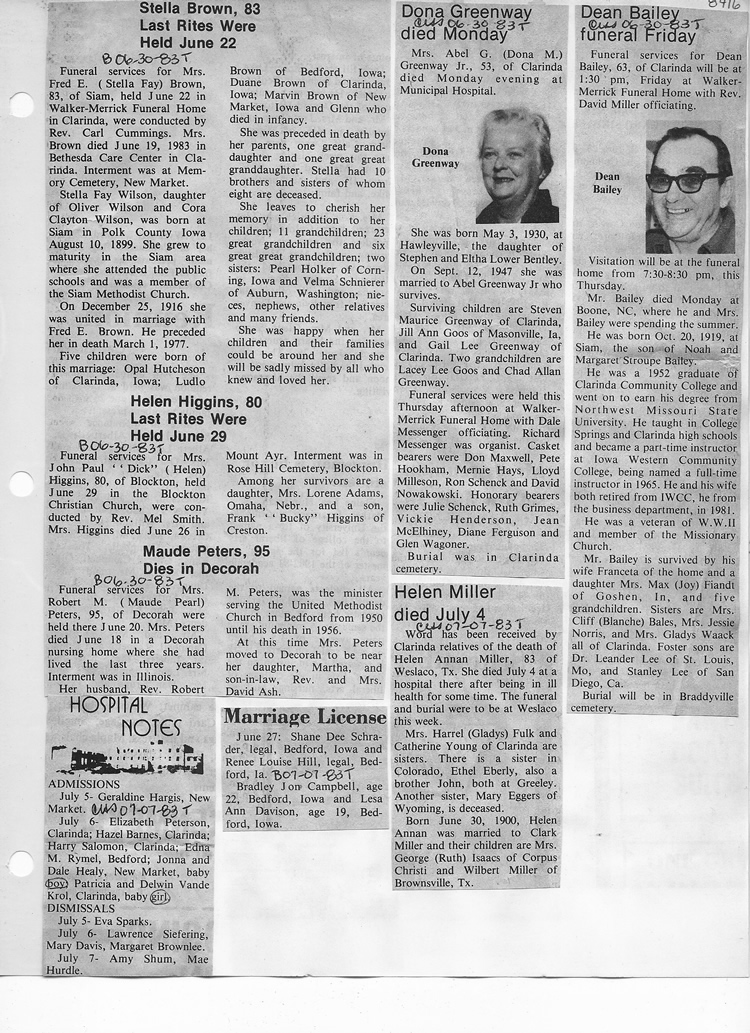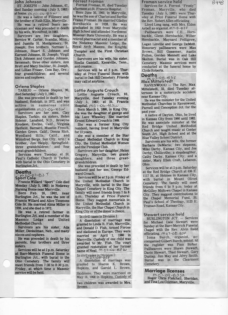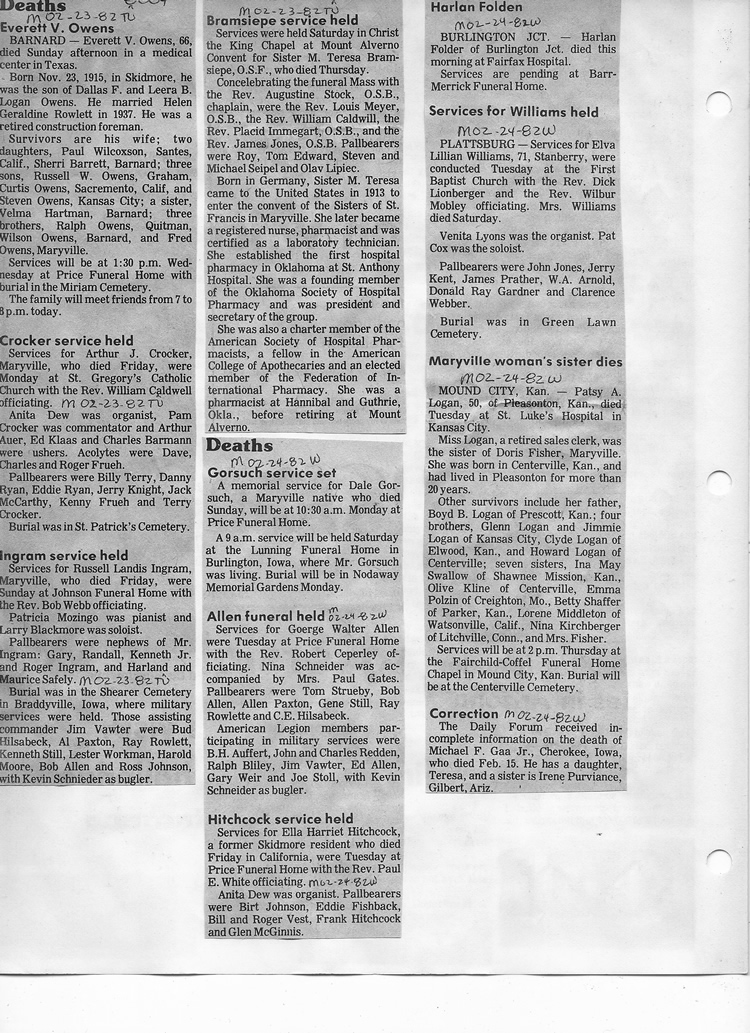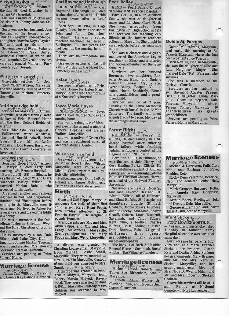 O'Dell's Abstracted Newspaper Index - Clippings - #8000's