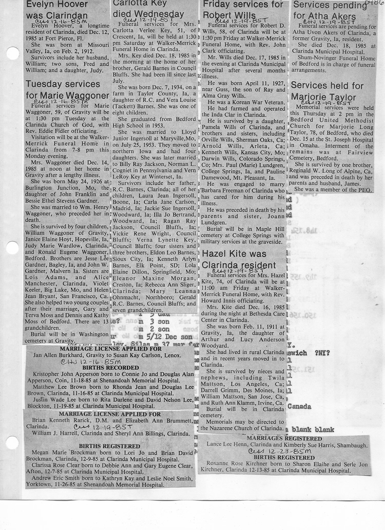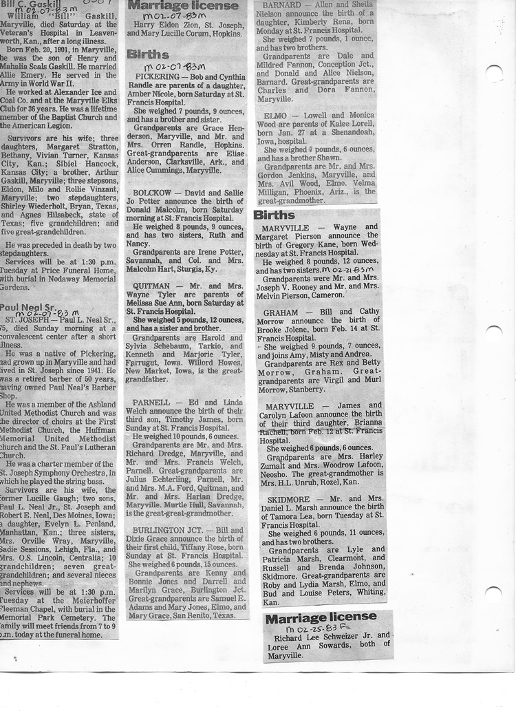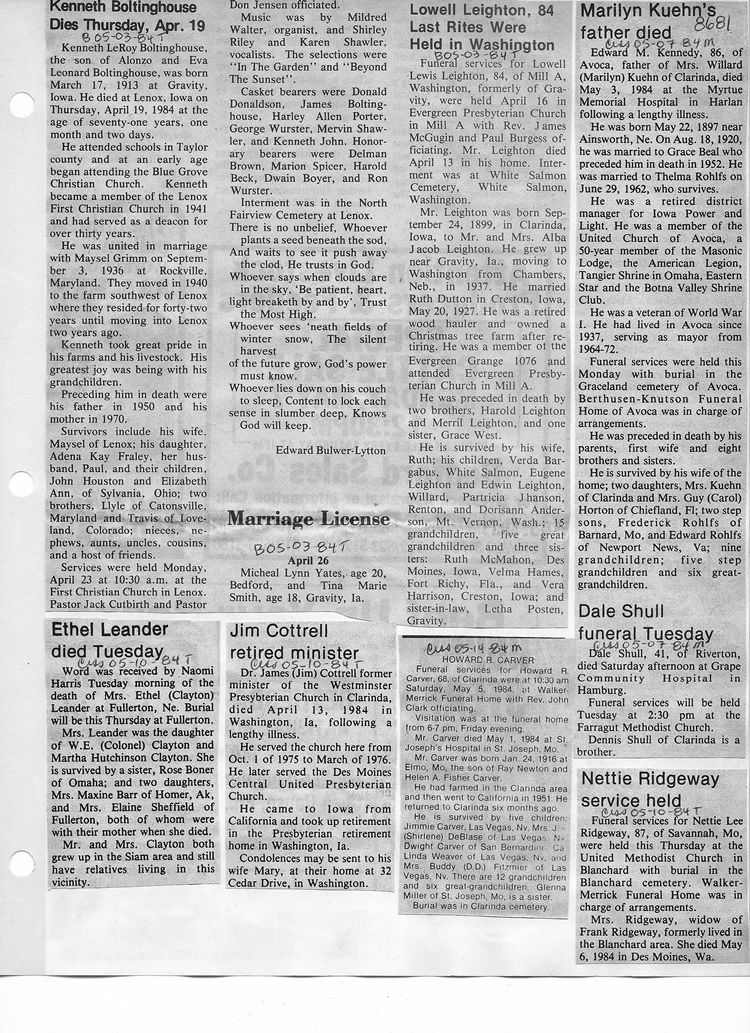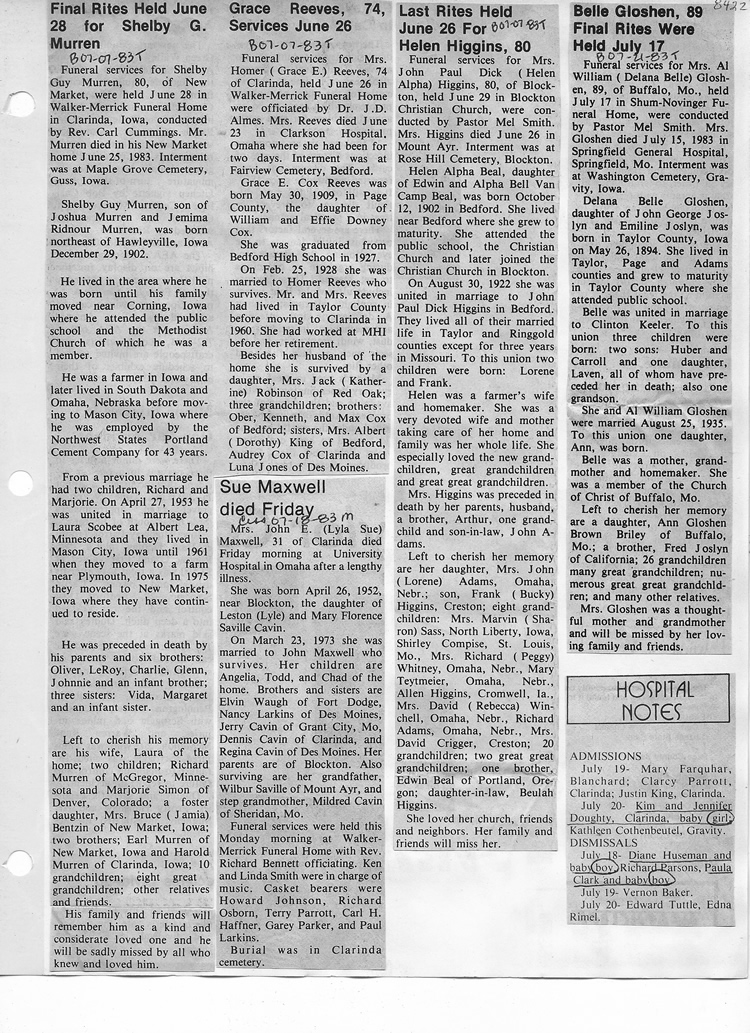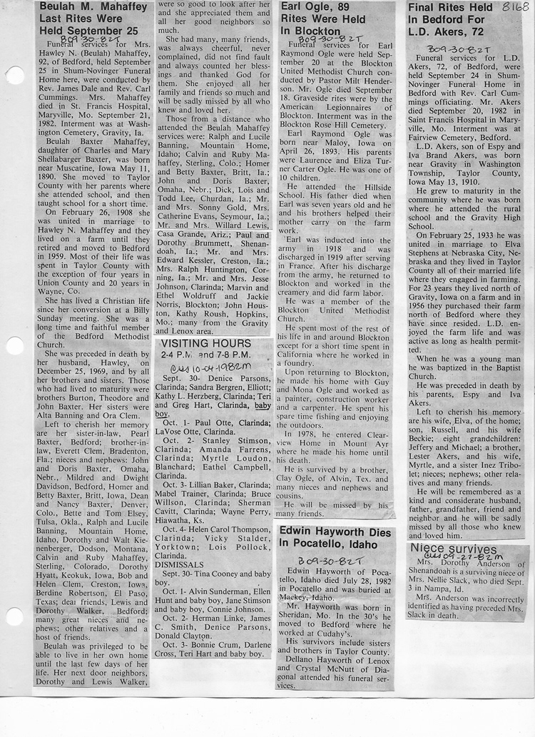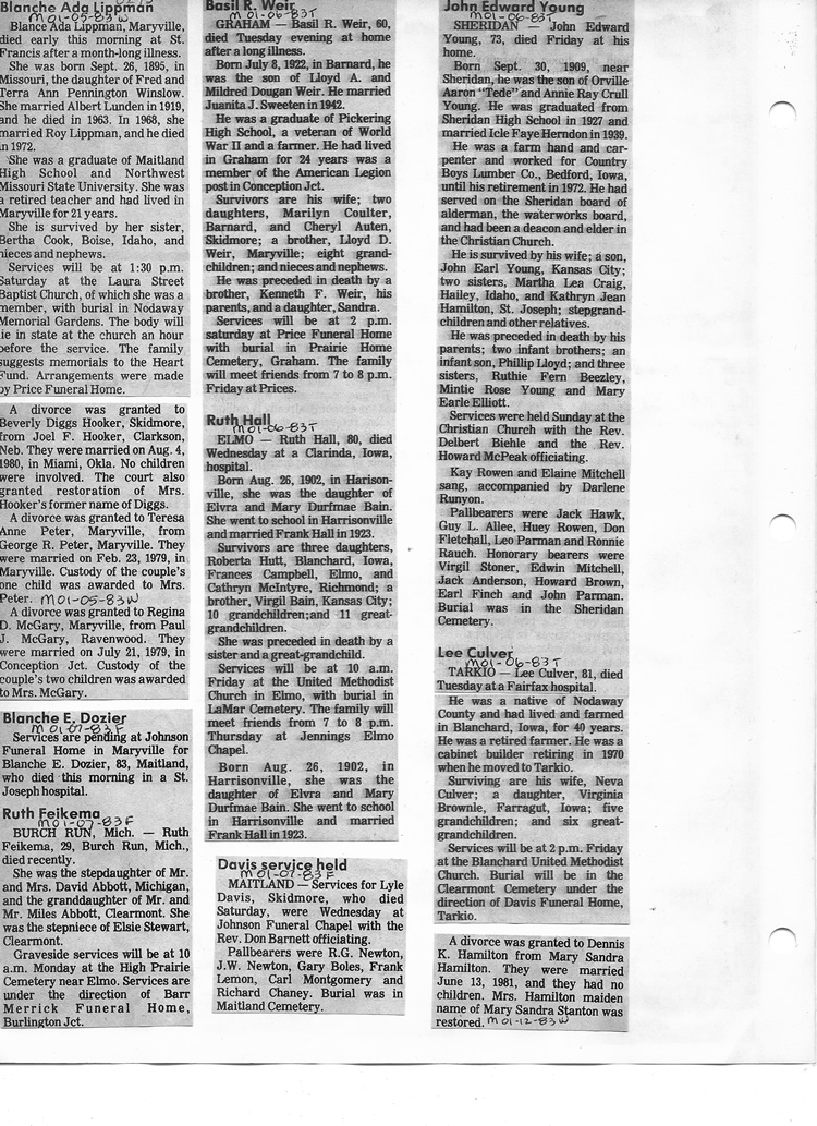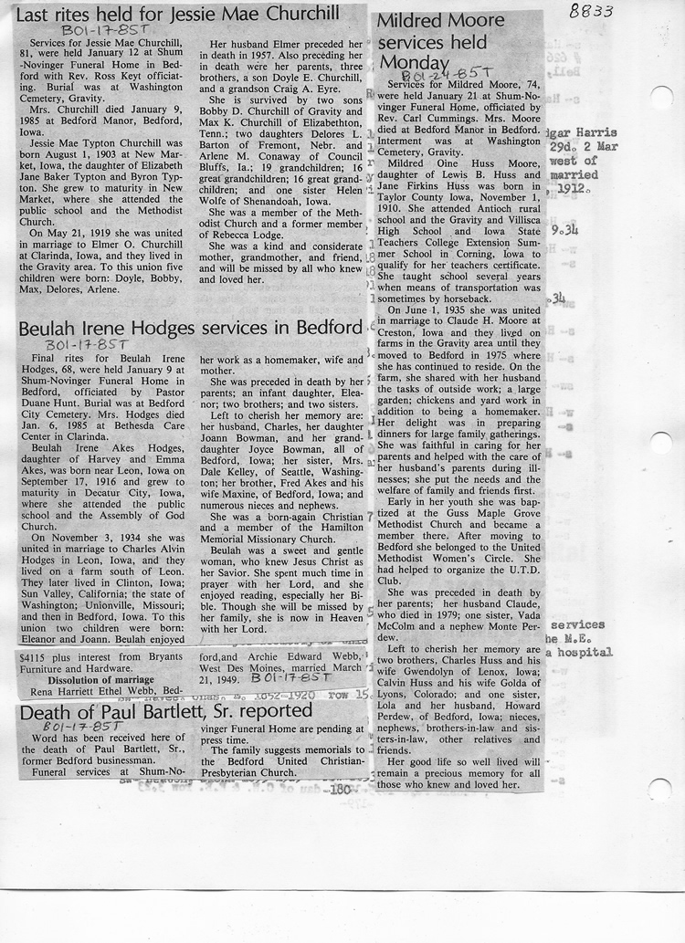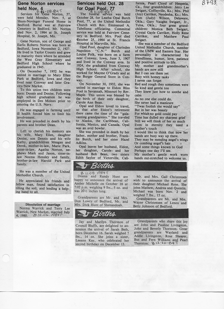 O'Dell's Abstracted Newspaper Index - Clippings - #8000's