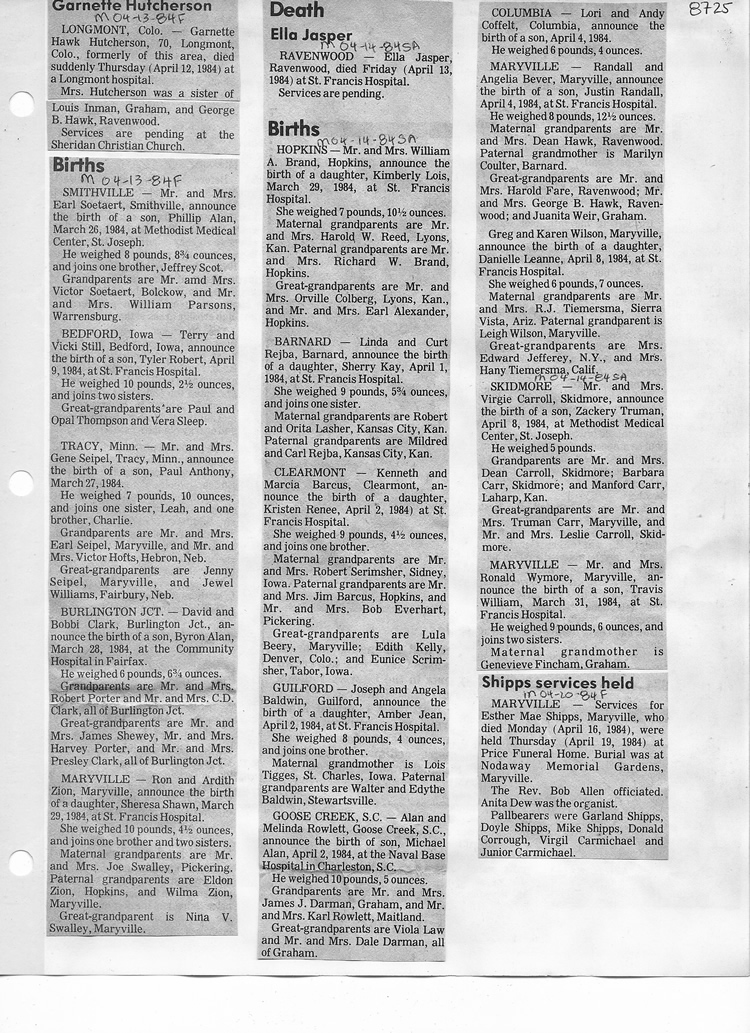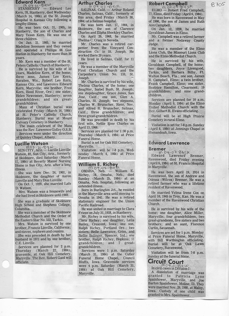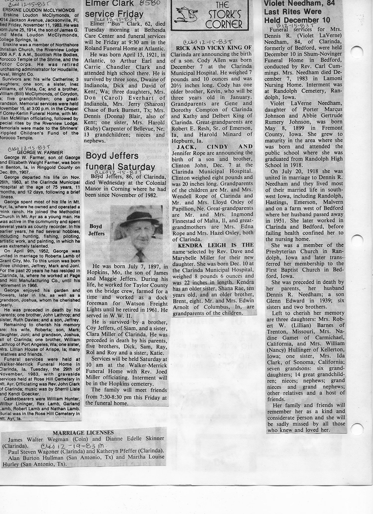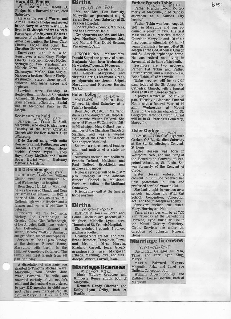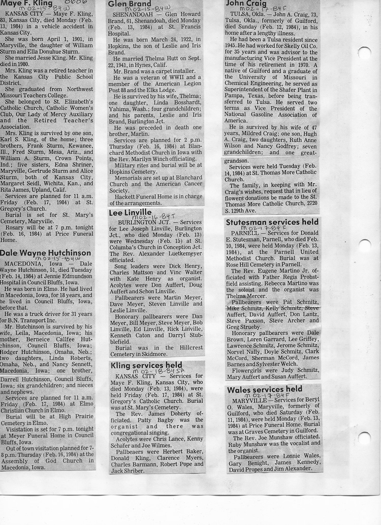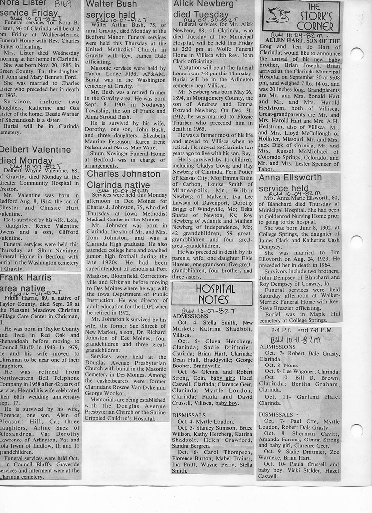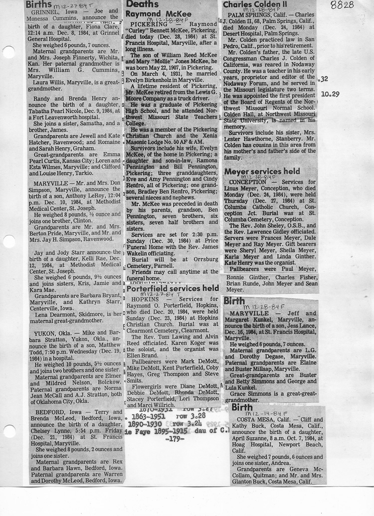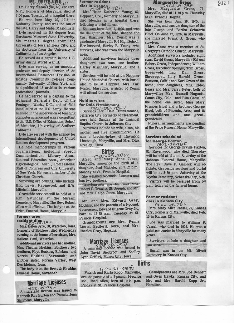 O'Dell's Abstracted Newspaper Index - Clippings - #8000's