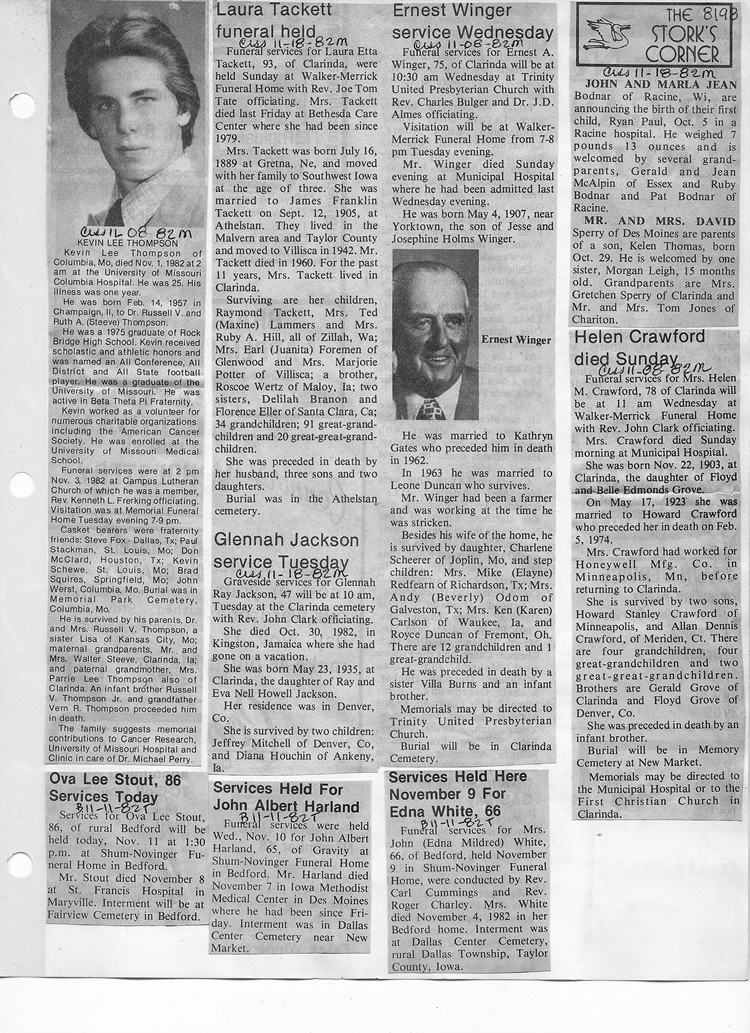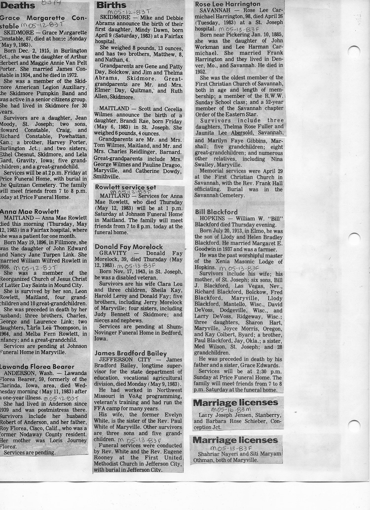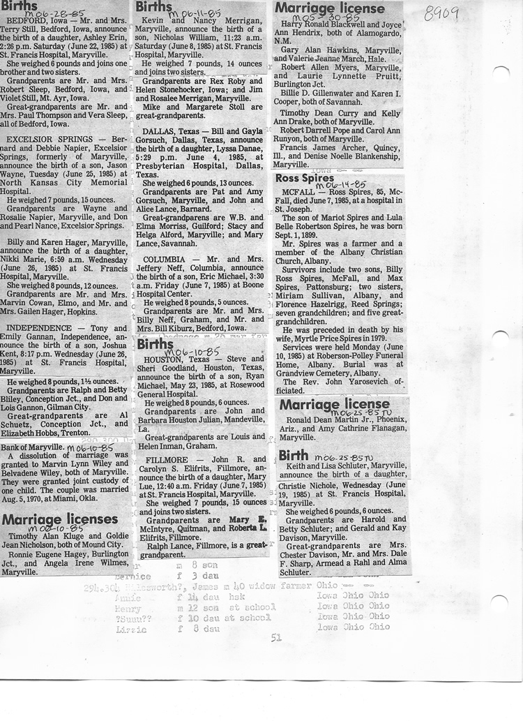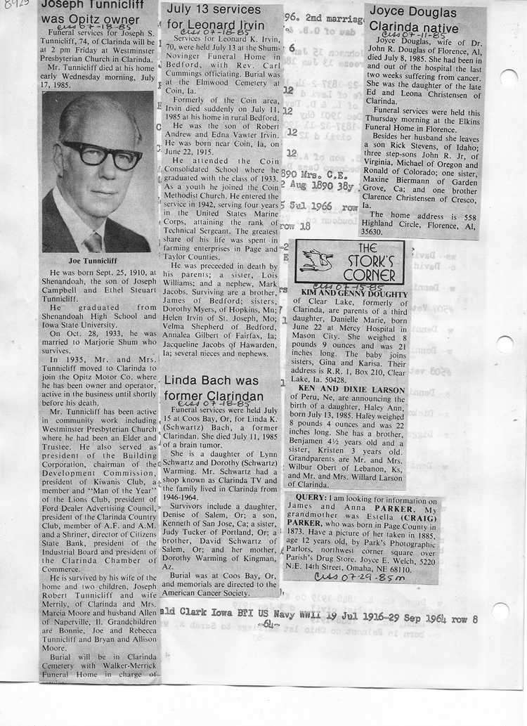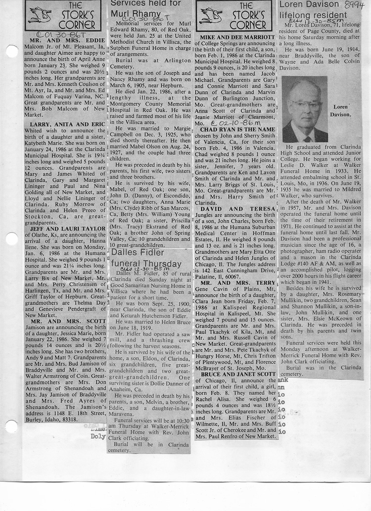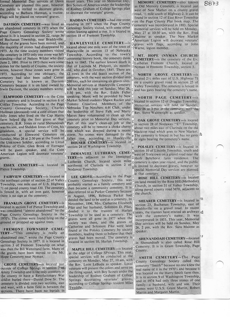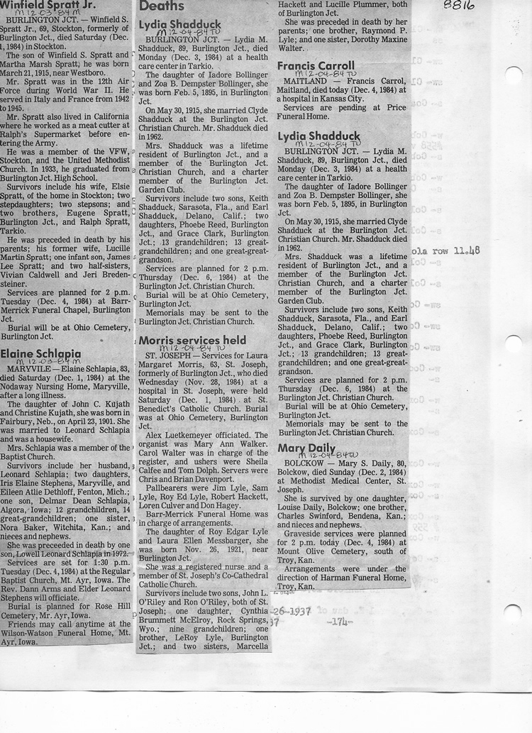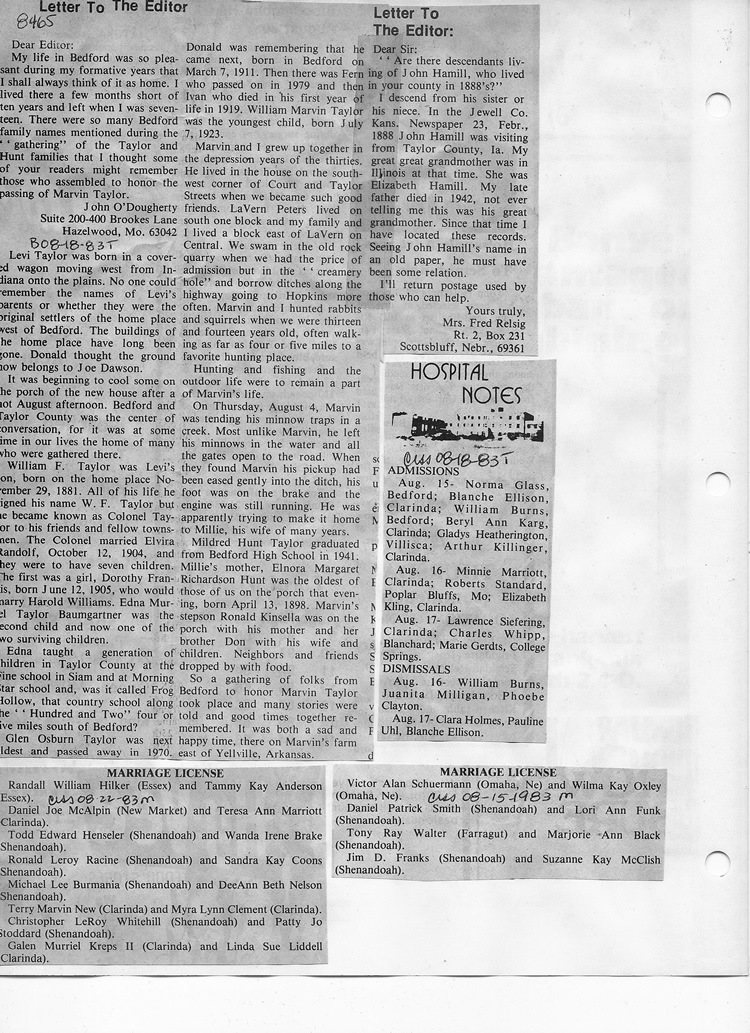 O'Dell's Abstracted Newspaper Index - Clippings - #8000's