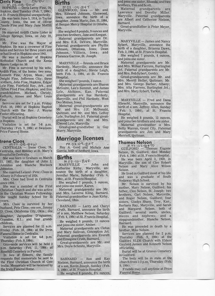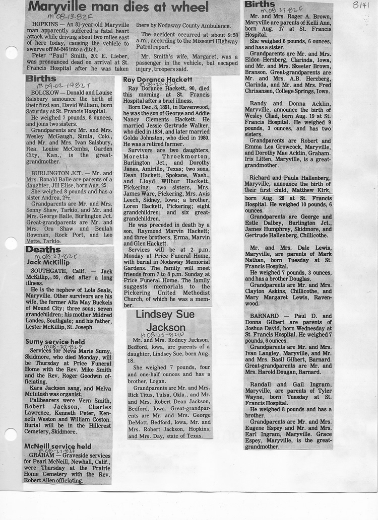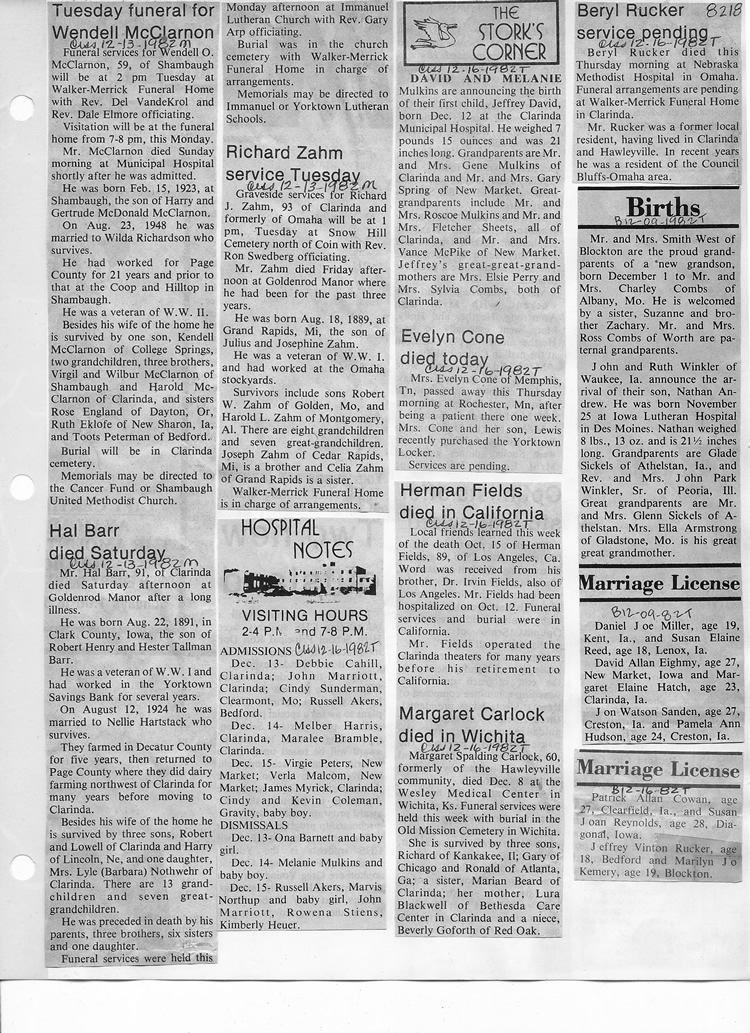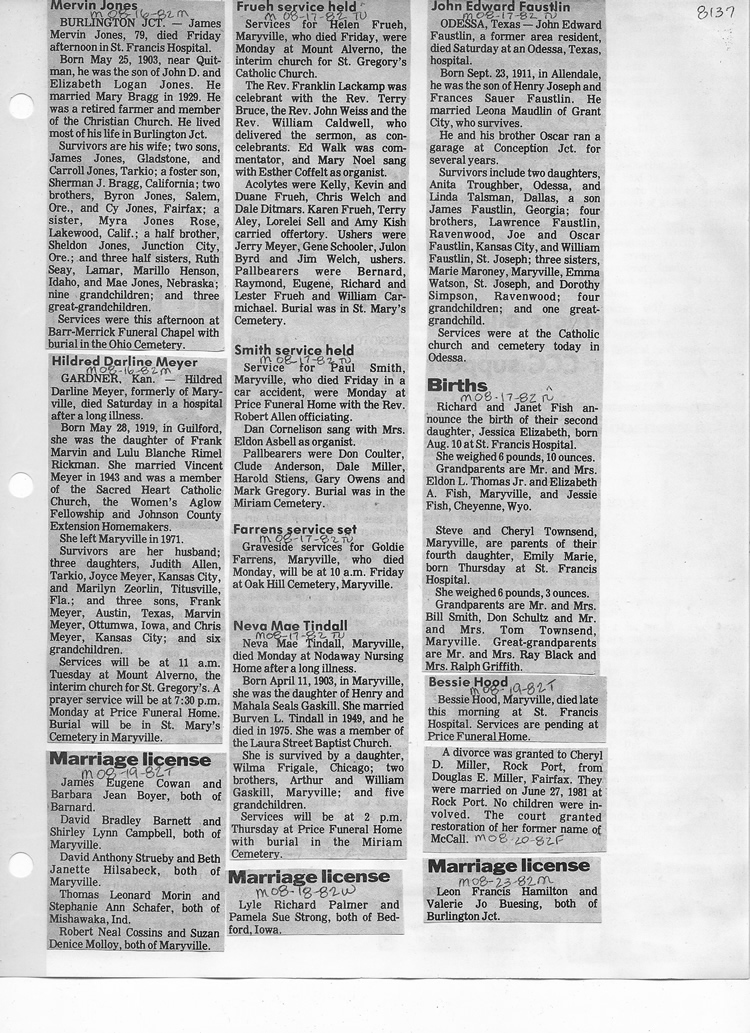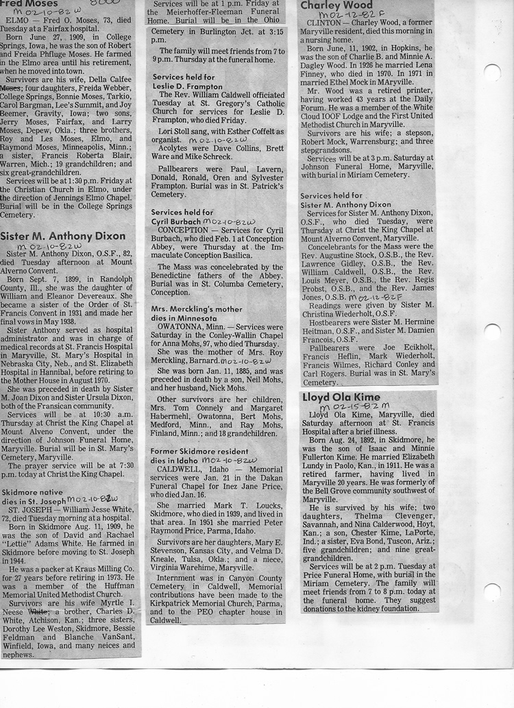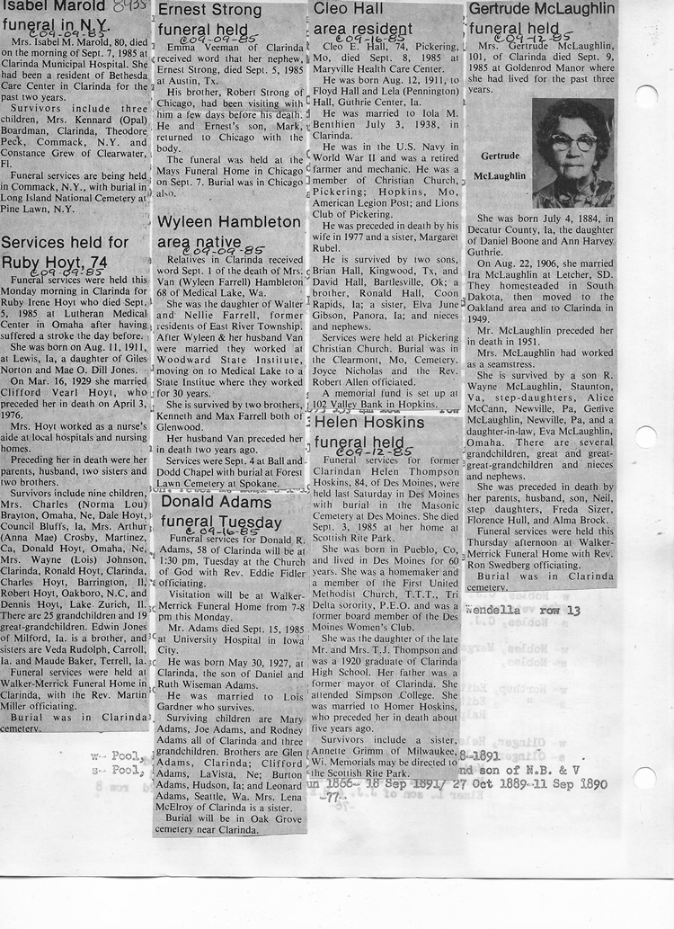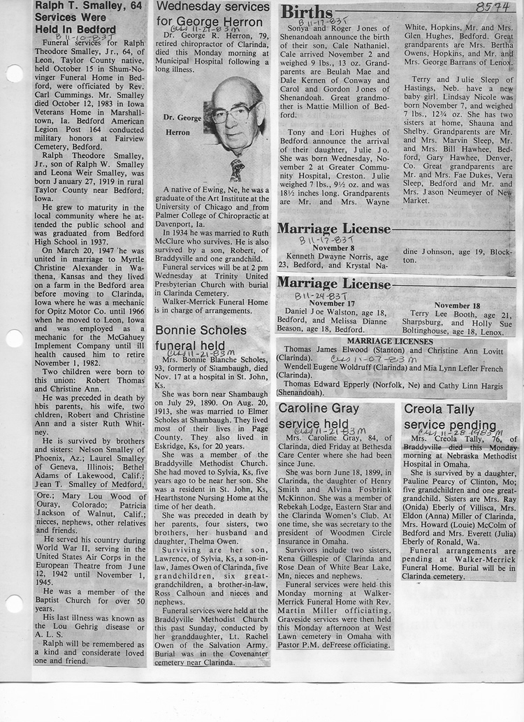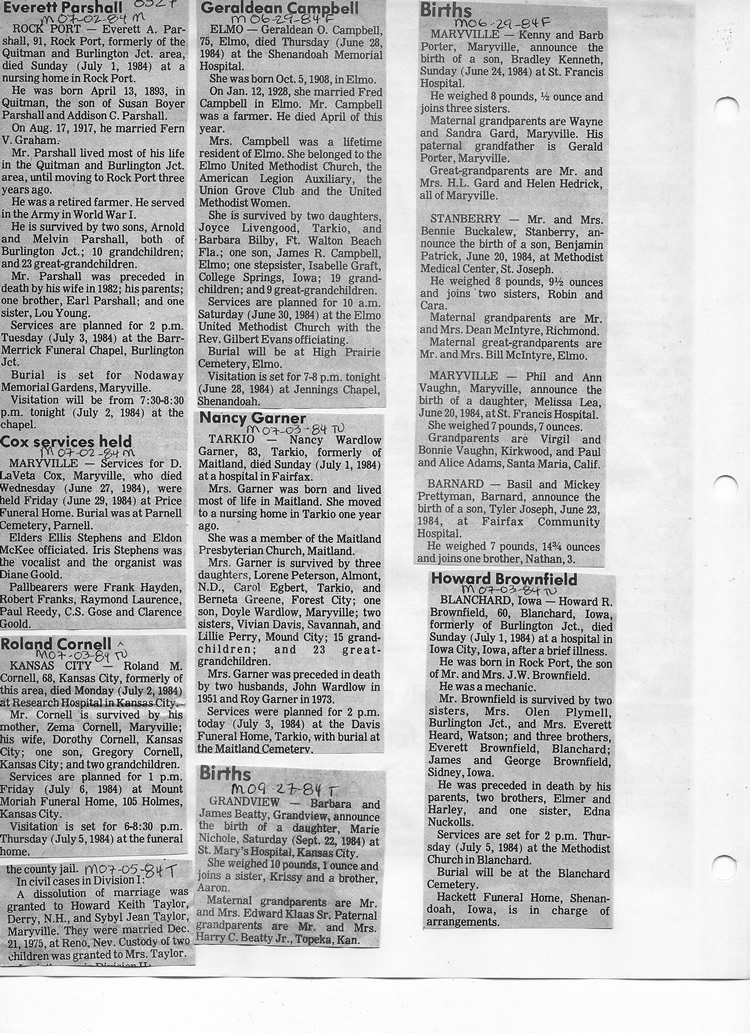 O'Dell's Abstracted Newspaper Index - Clippings - #8000's
