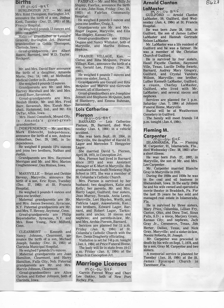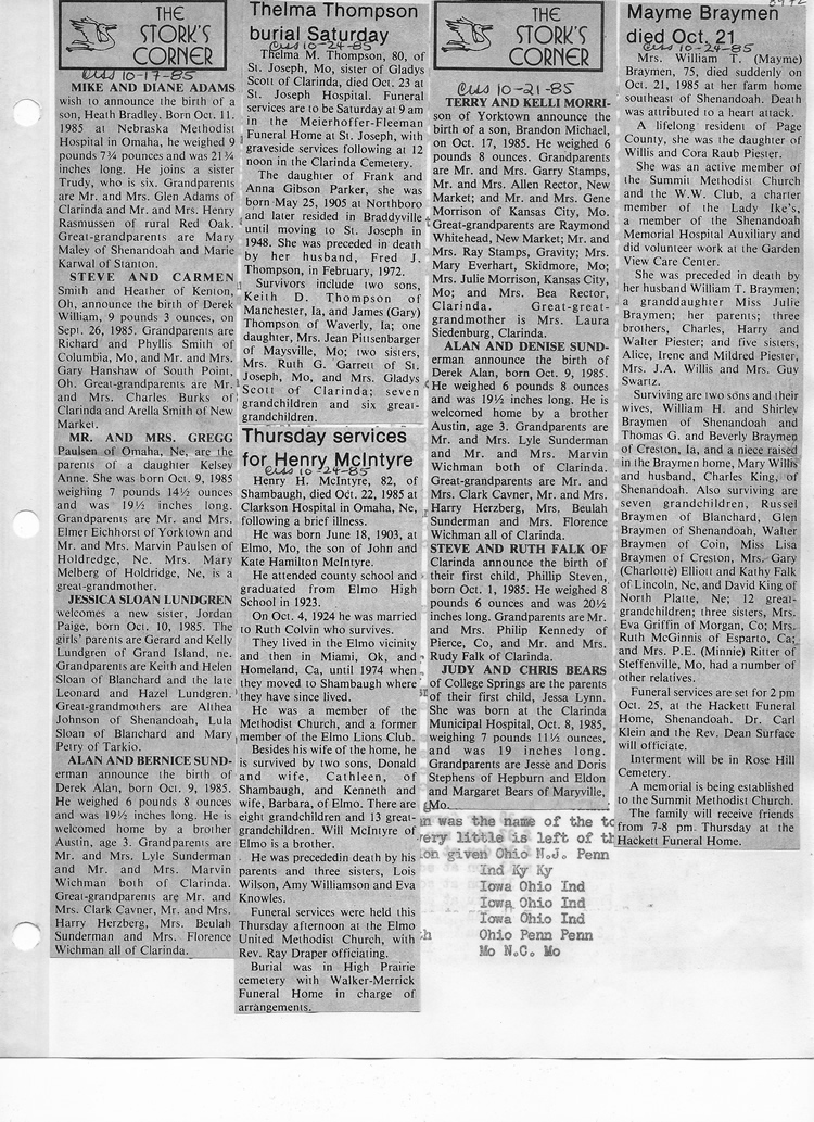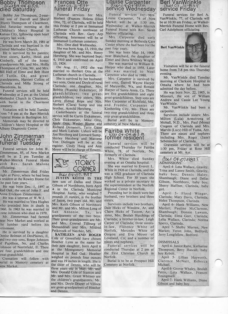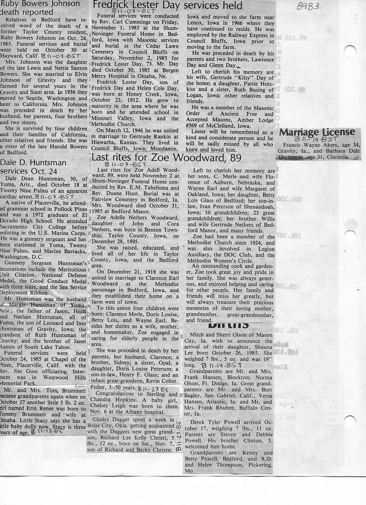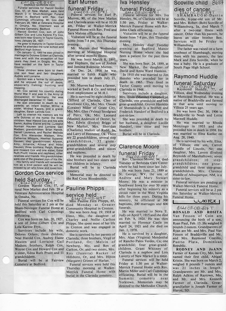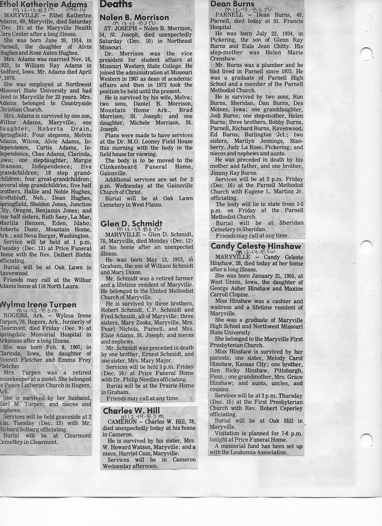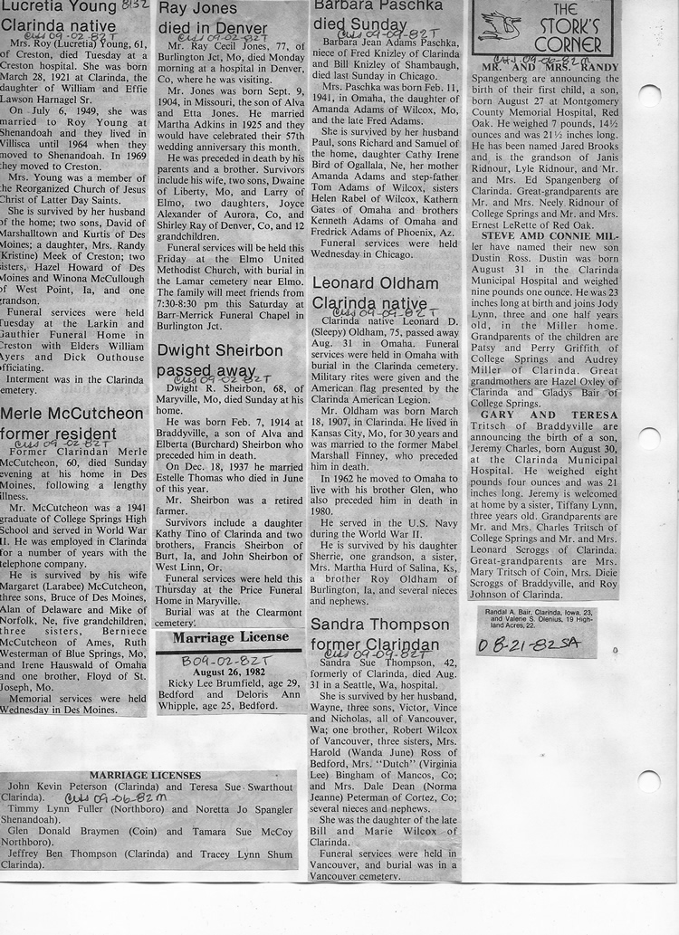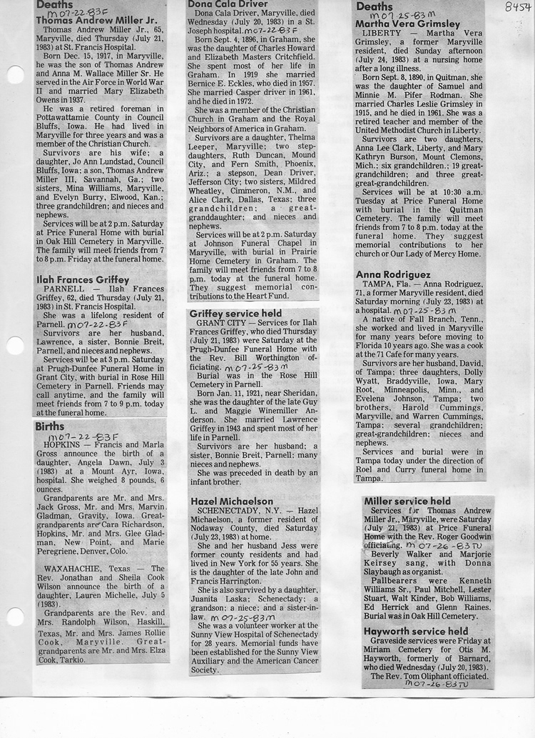 O'Dell's Abstracted Newspaper Index - Clippings - #8000's