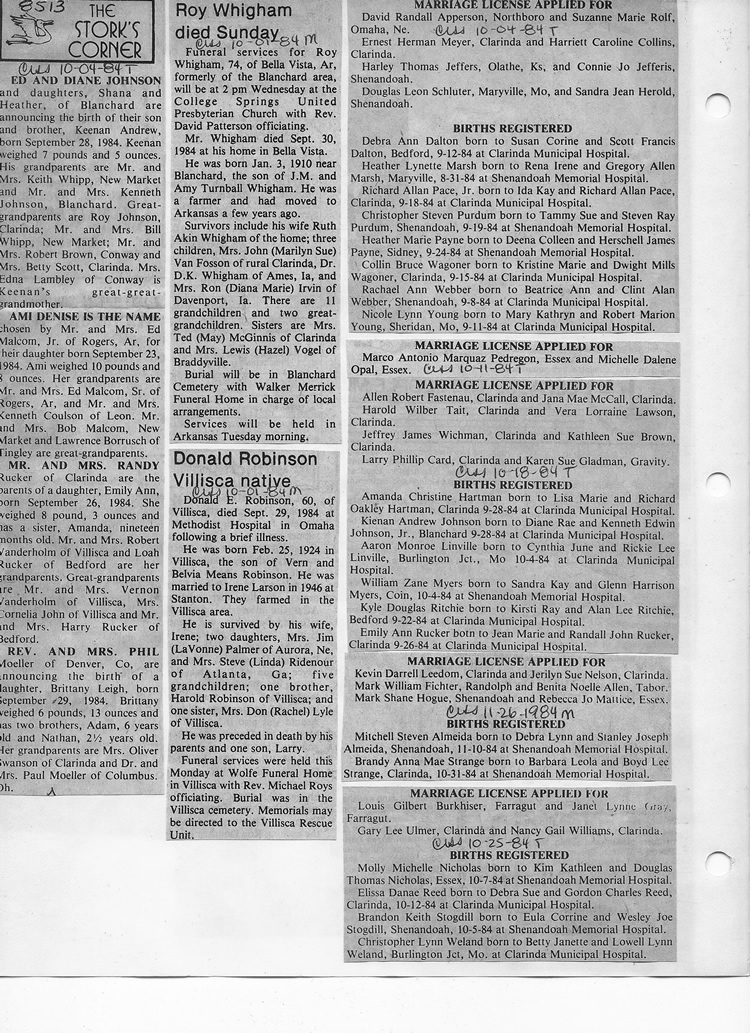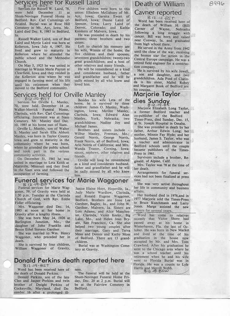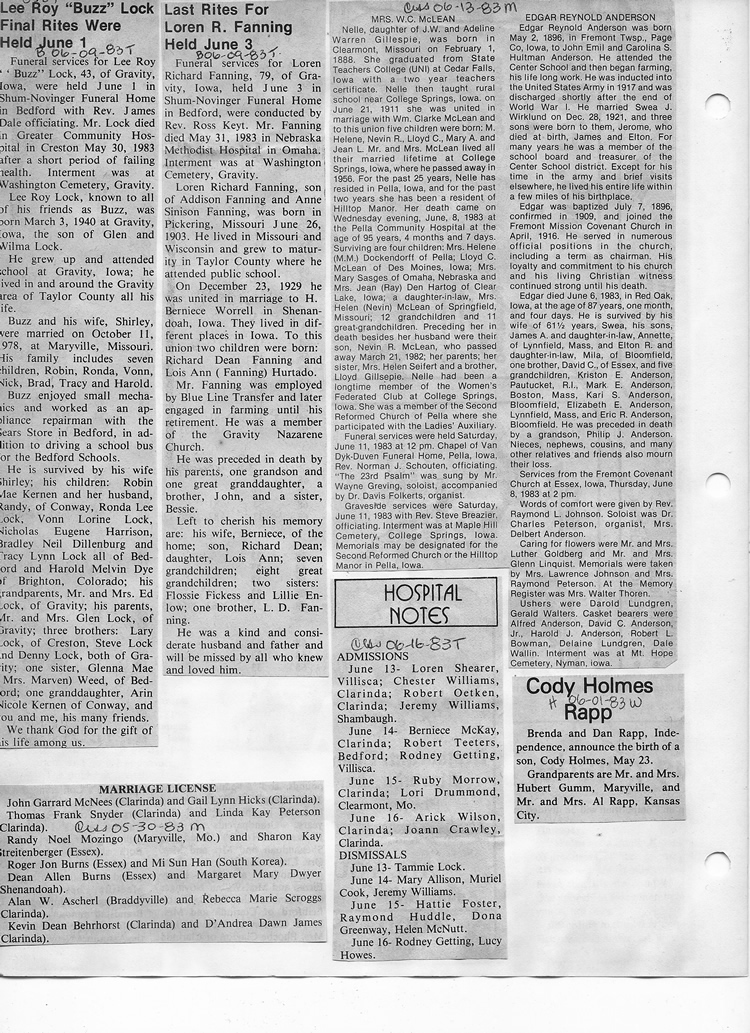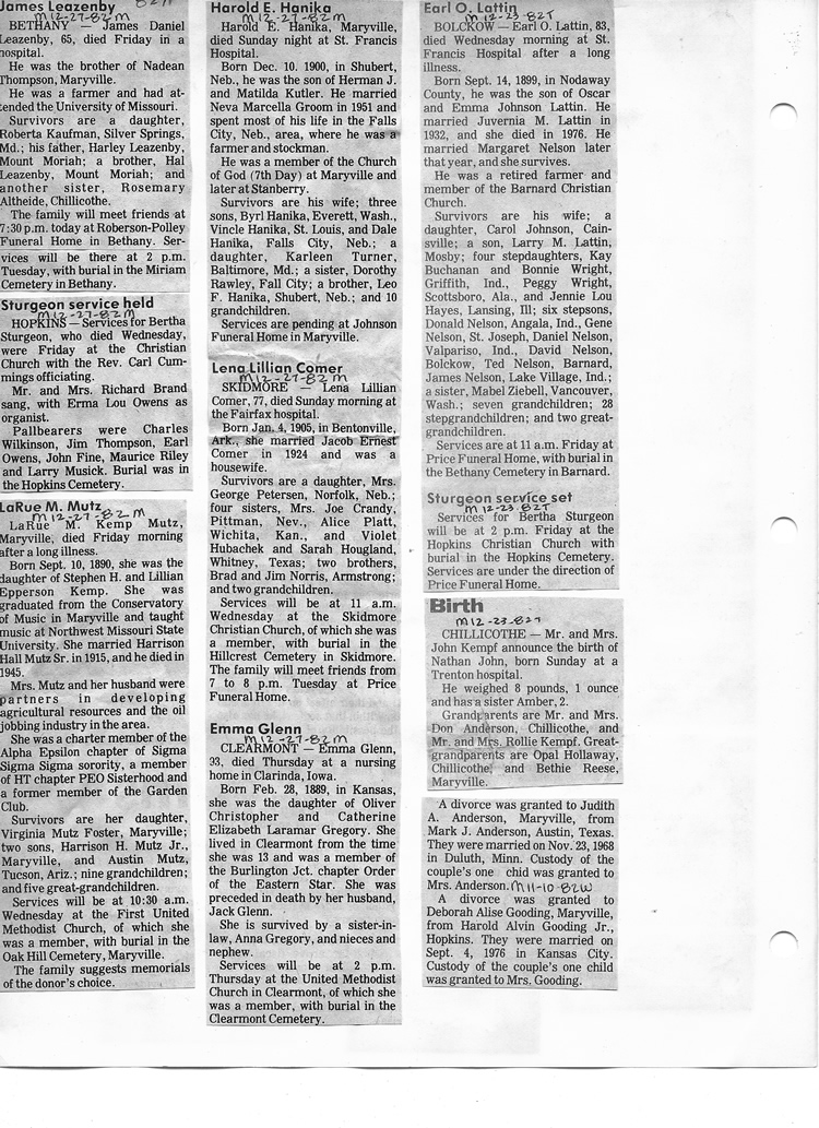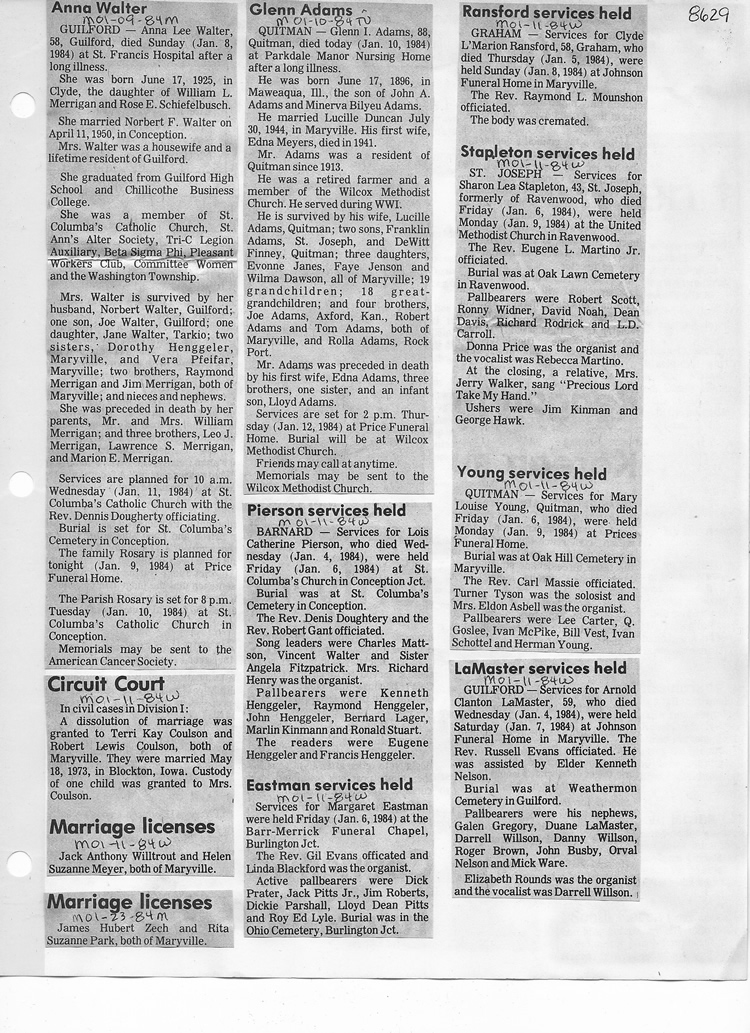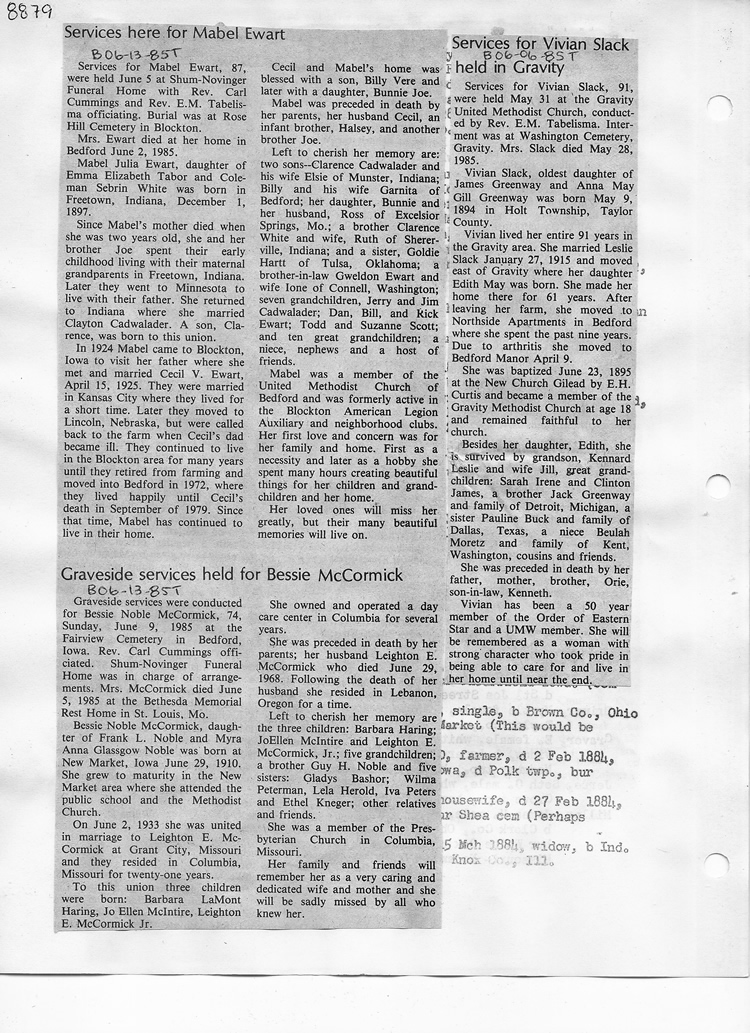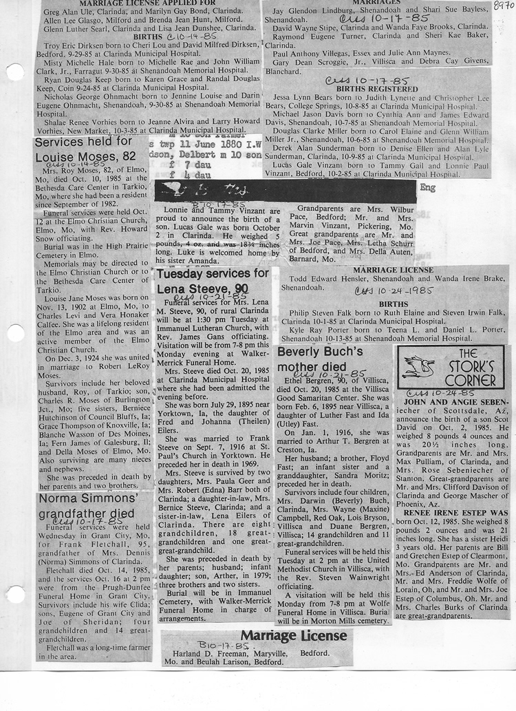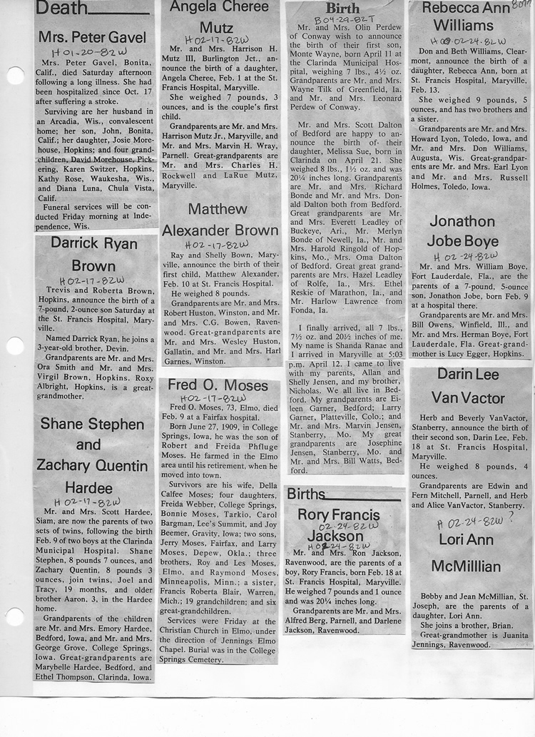 O'Dell's Abstracted Newspaper Index - Clippings - #8000's