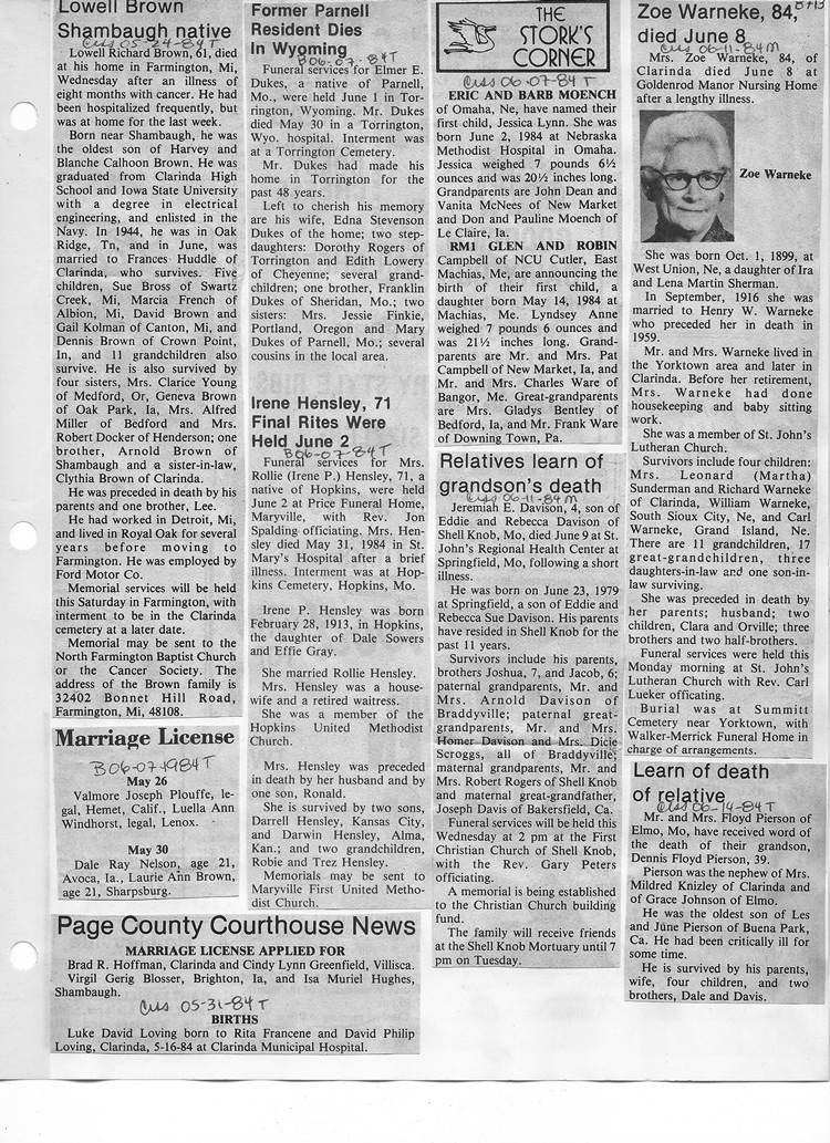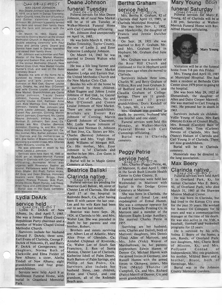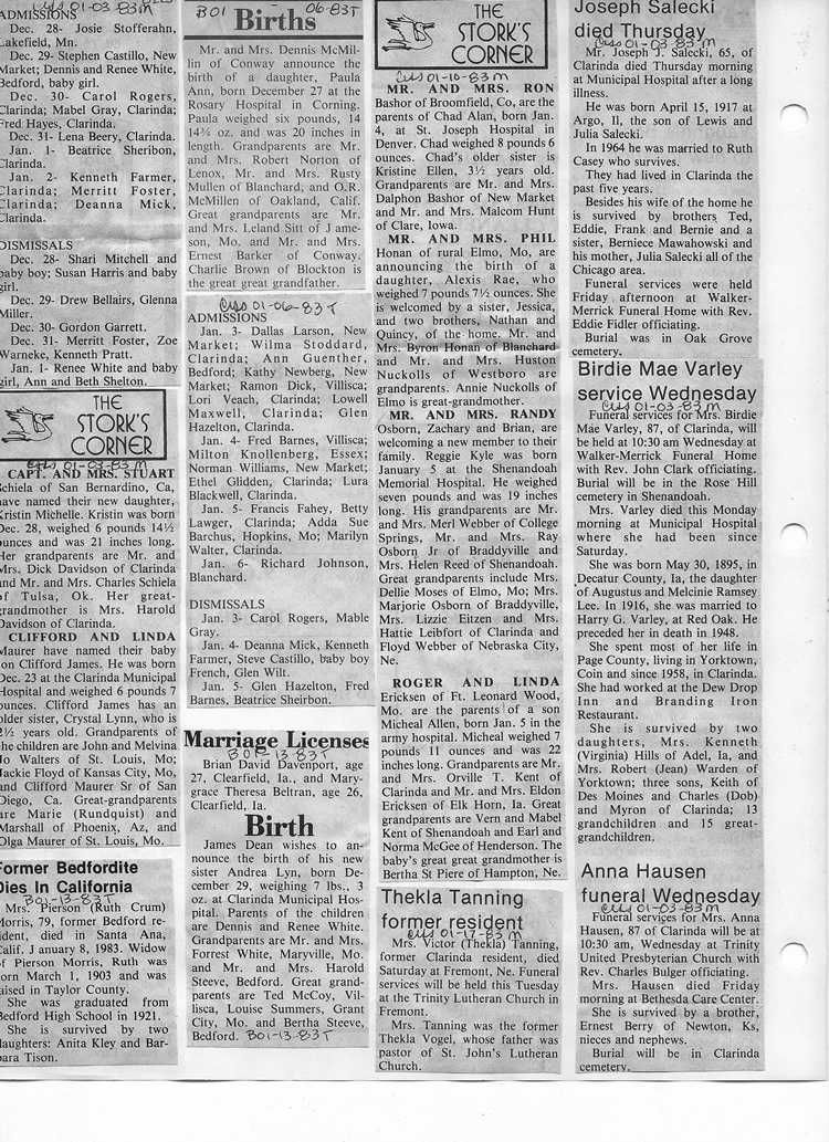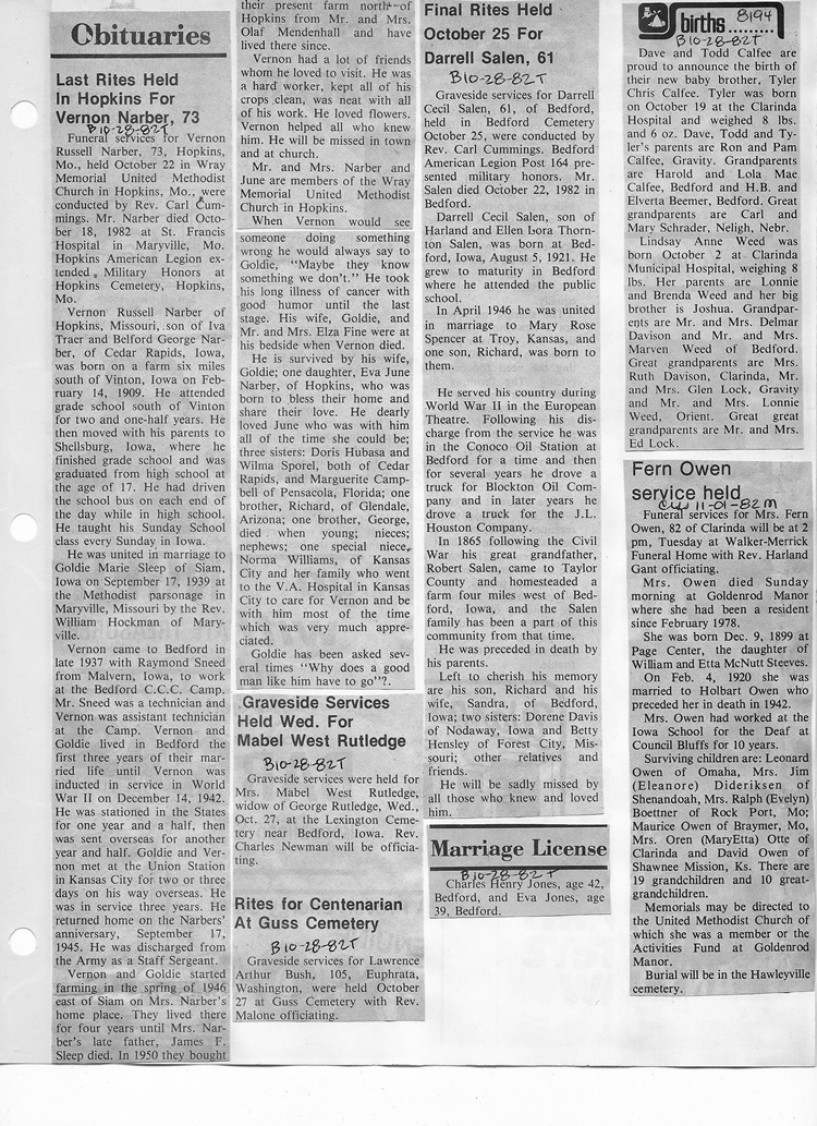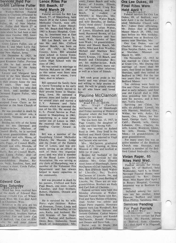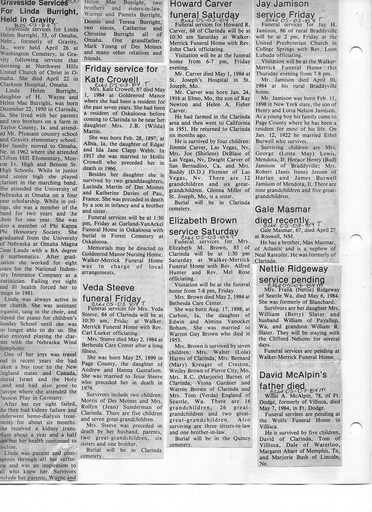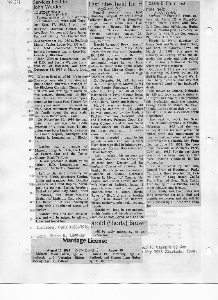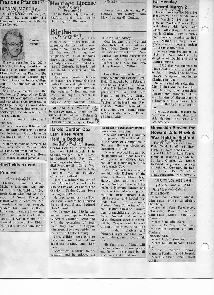 O'Dell's Abstracted Newspaper Index - Clippings - #8000's