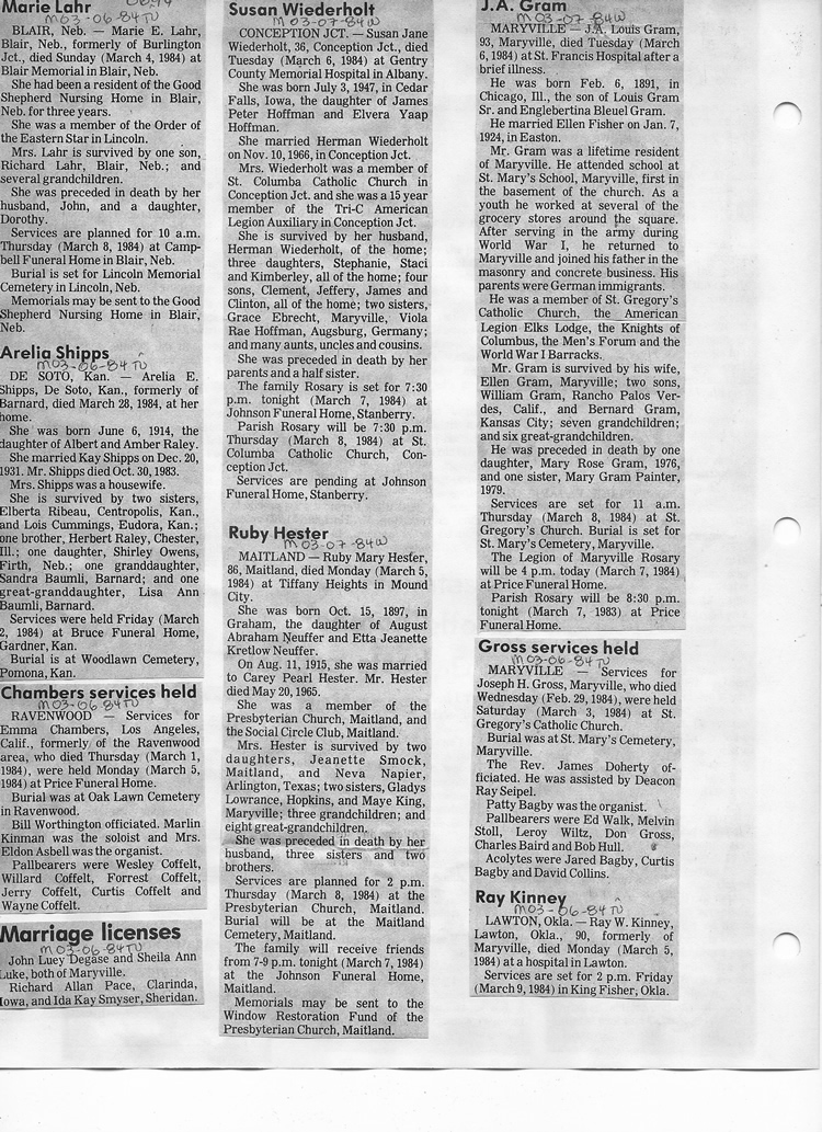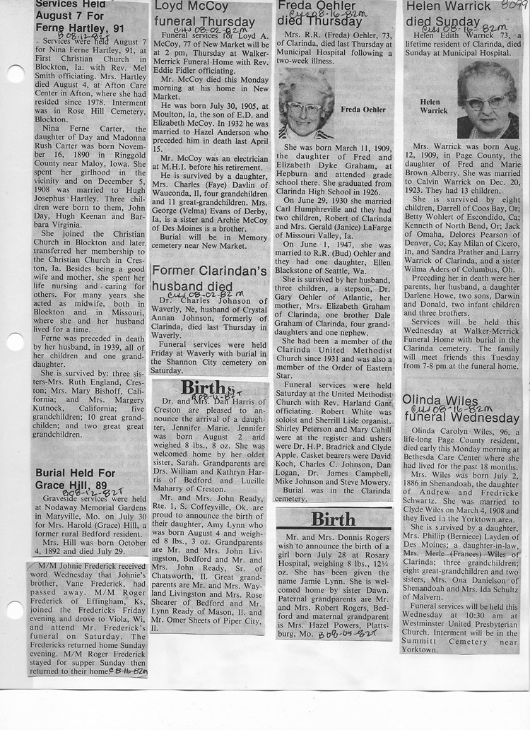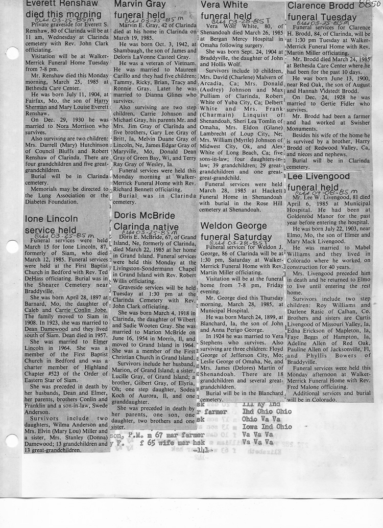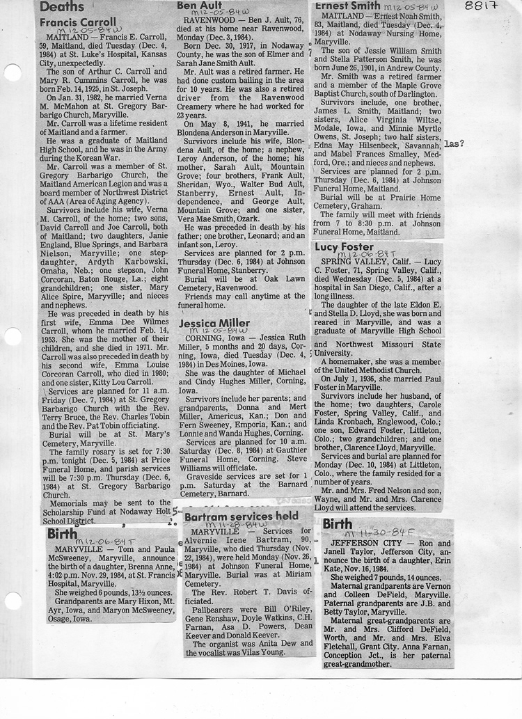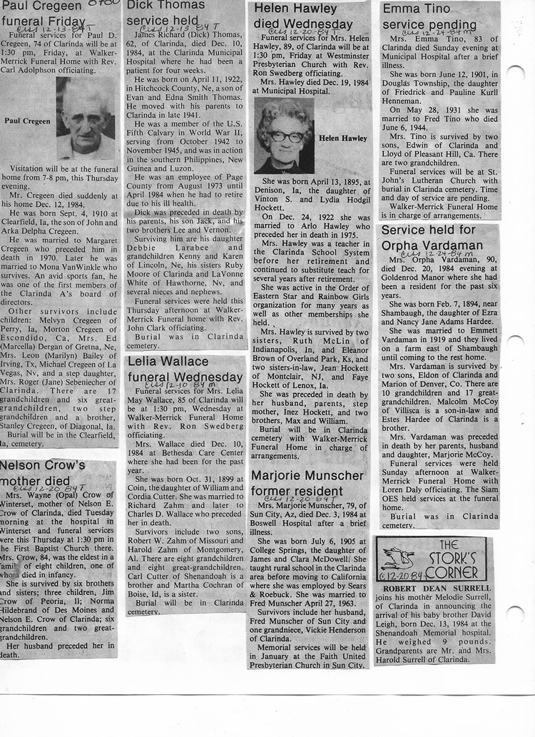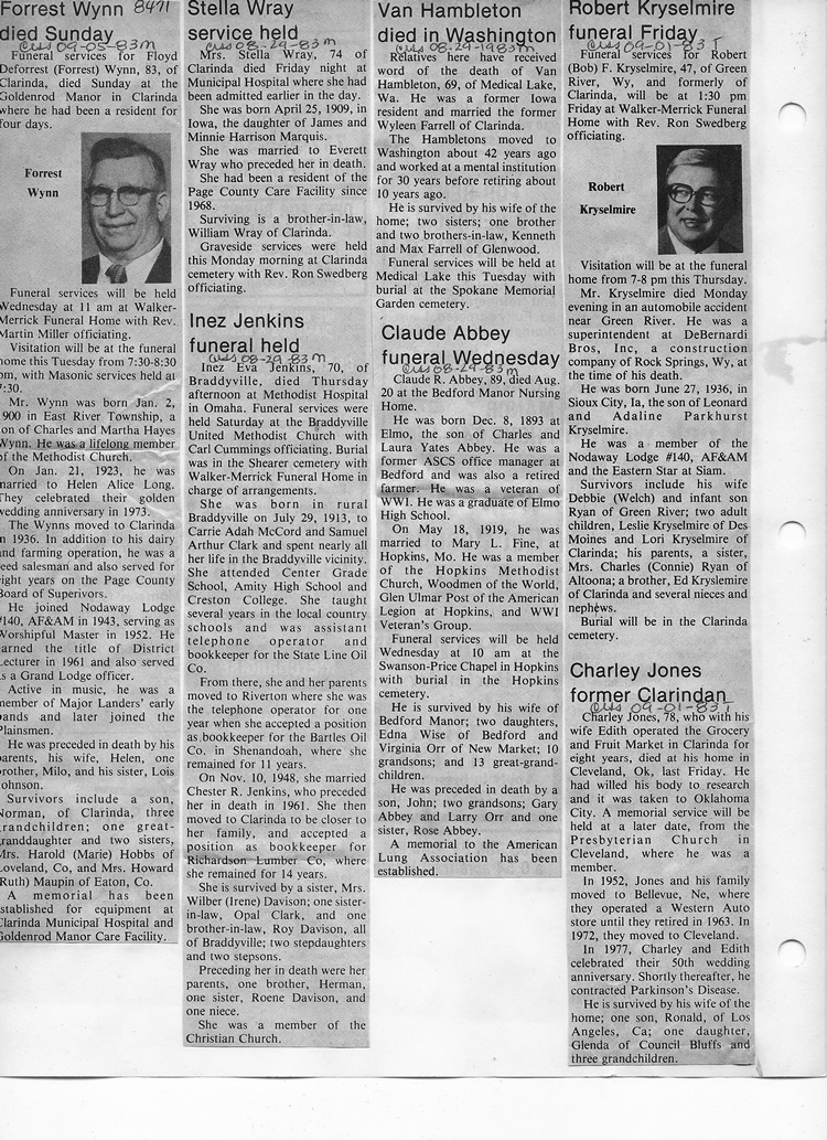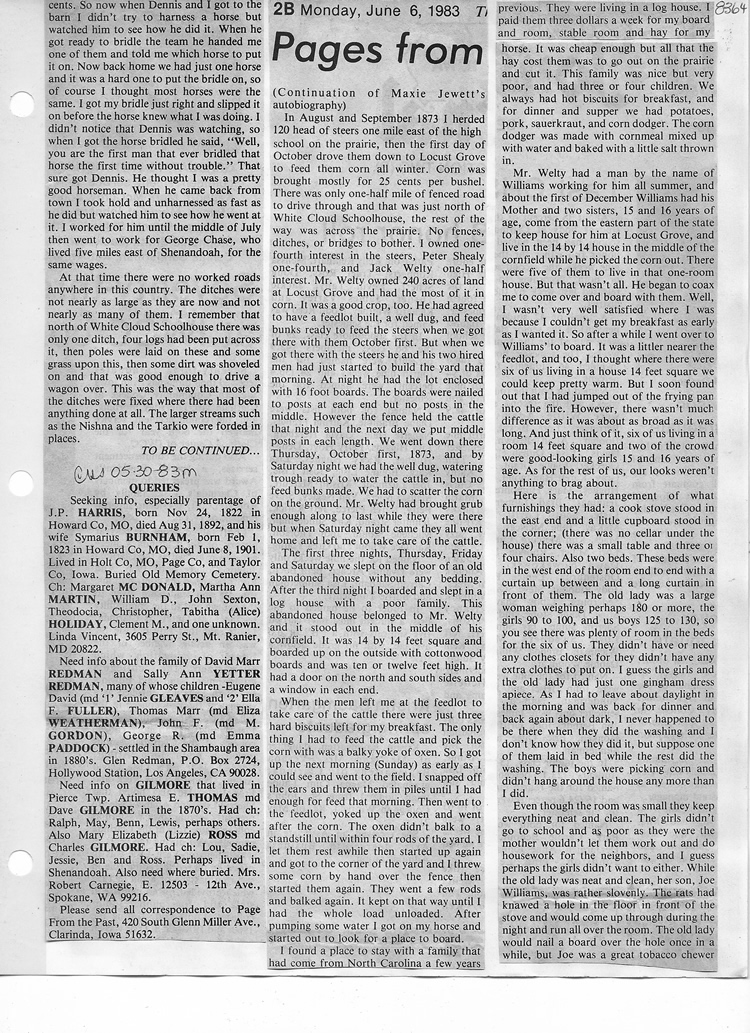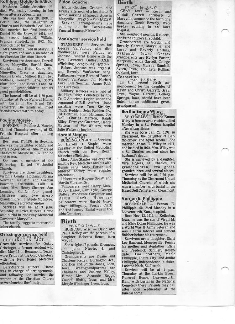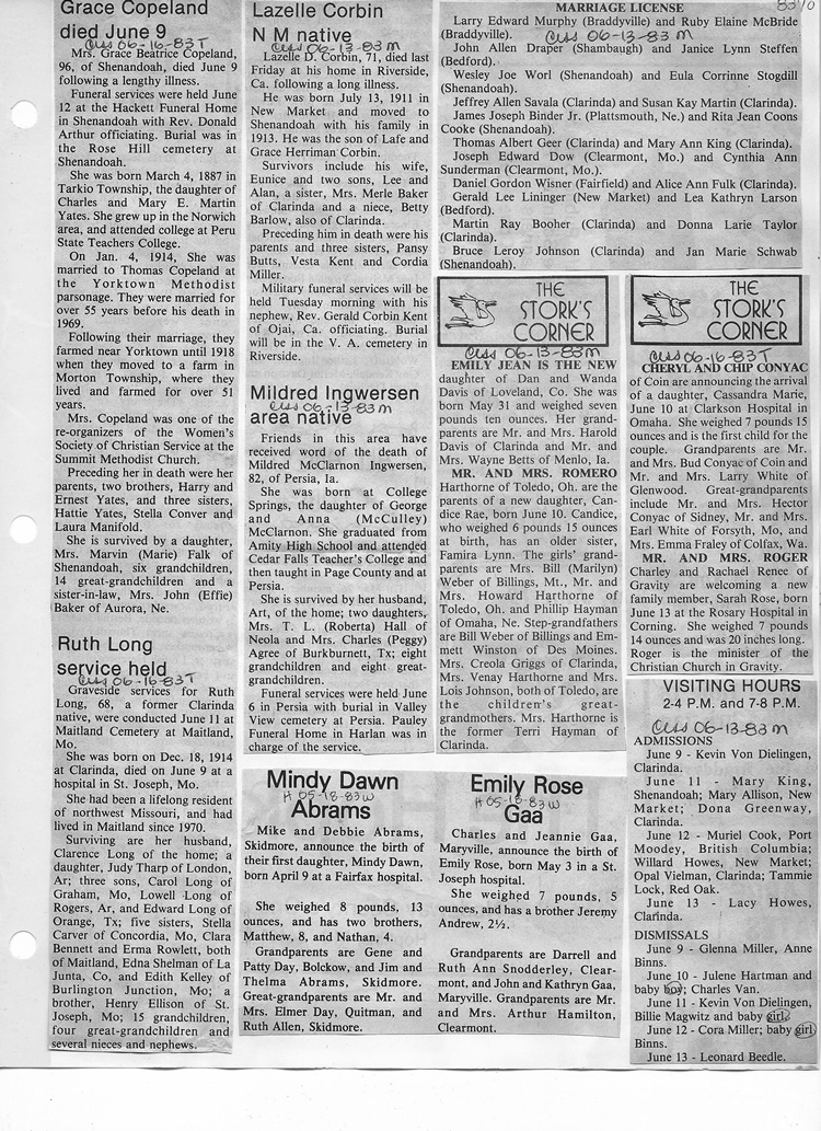 O'Dell's Abstracted Newspaper Index - Clippings - #8000's