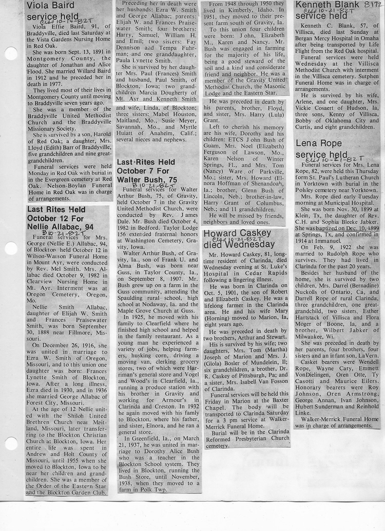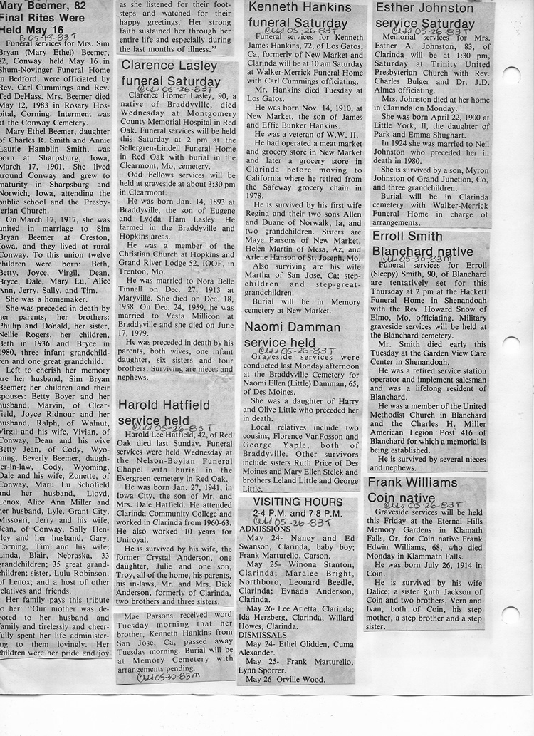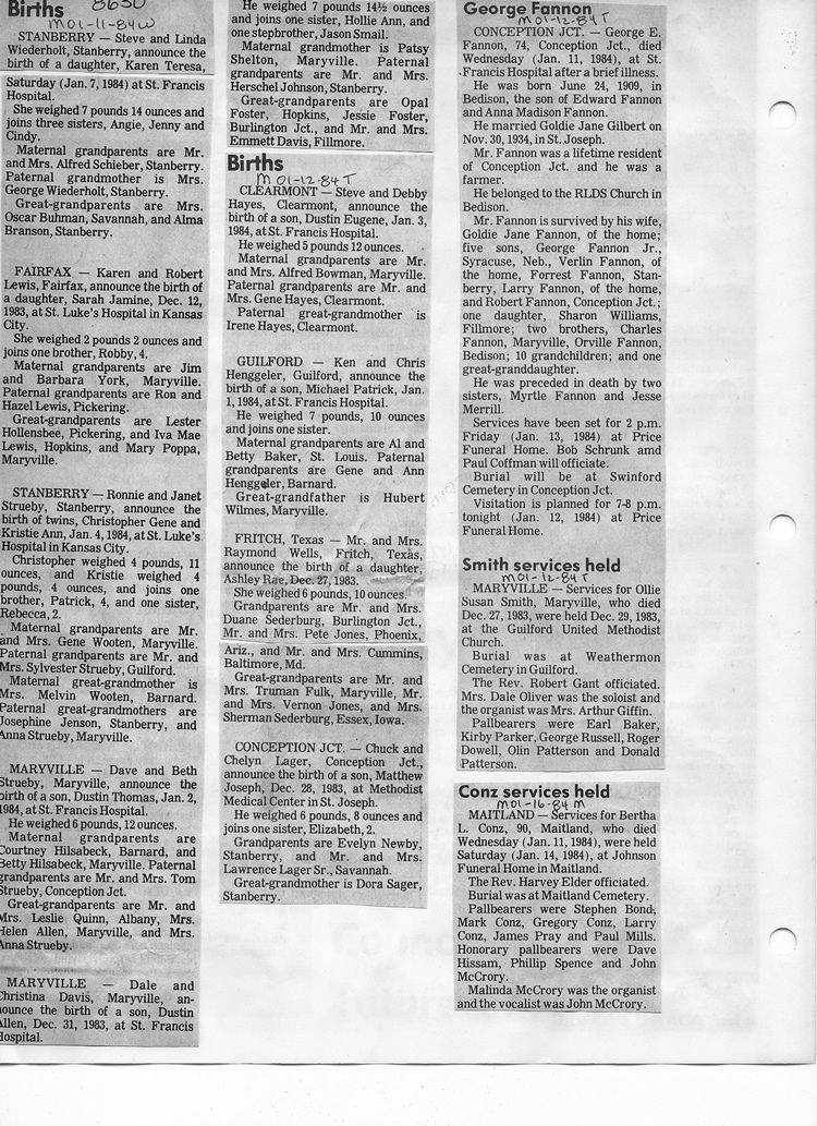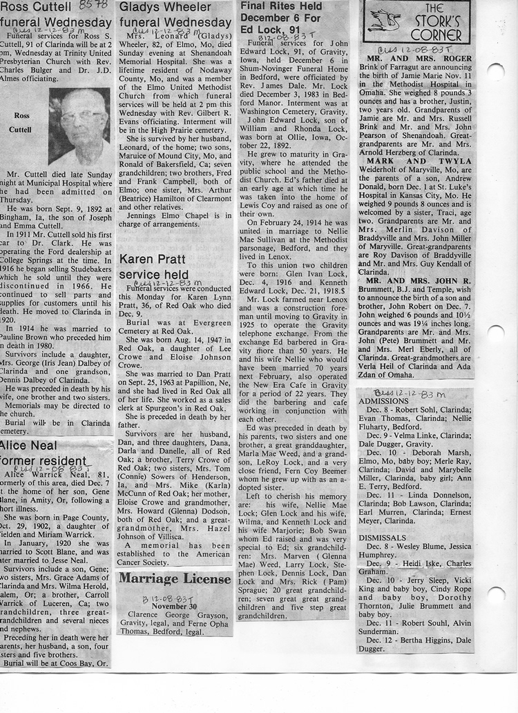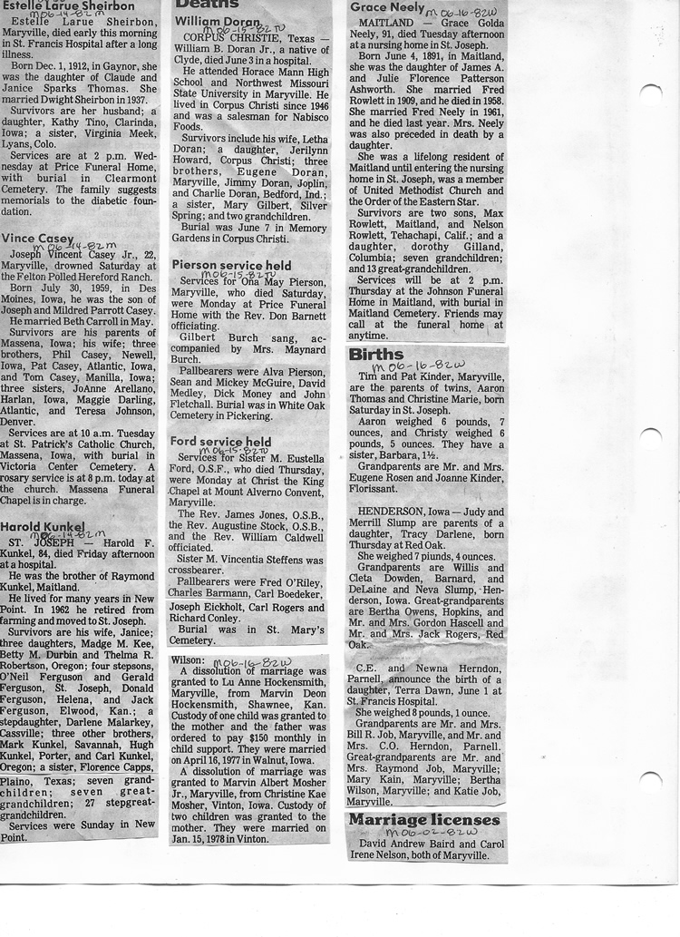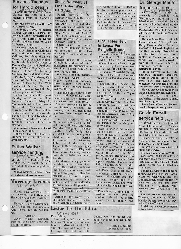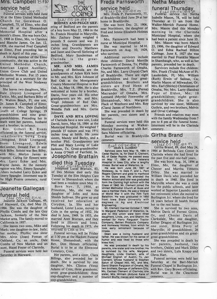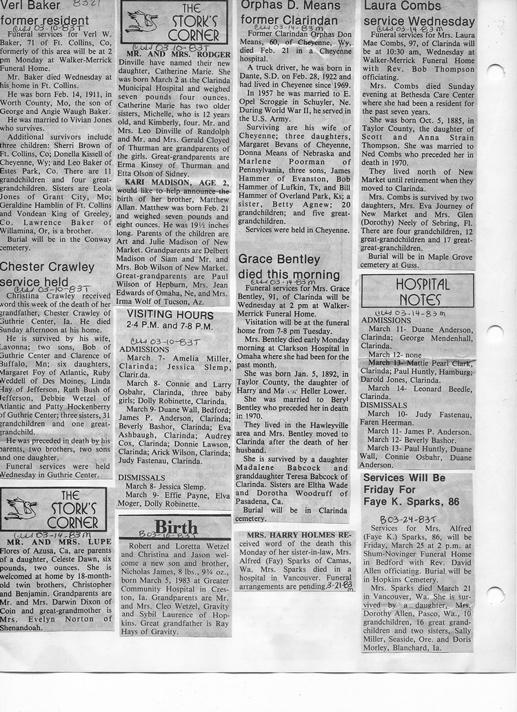 O'Dell's Abstracted Newspaper Index - Clippings - #8000's