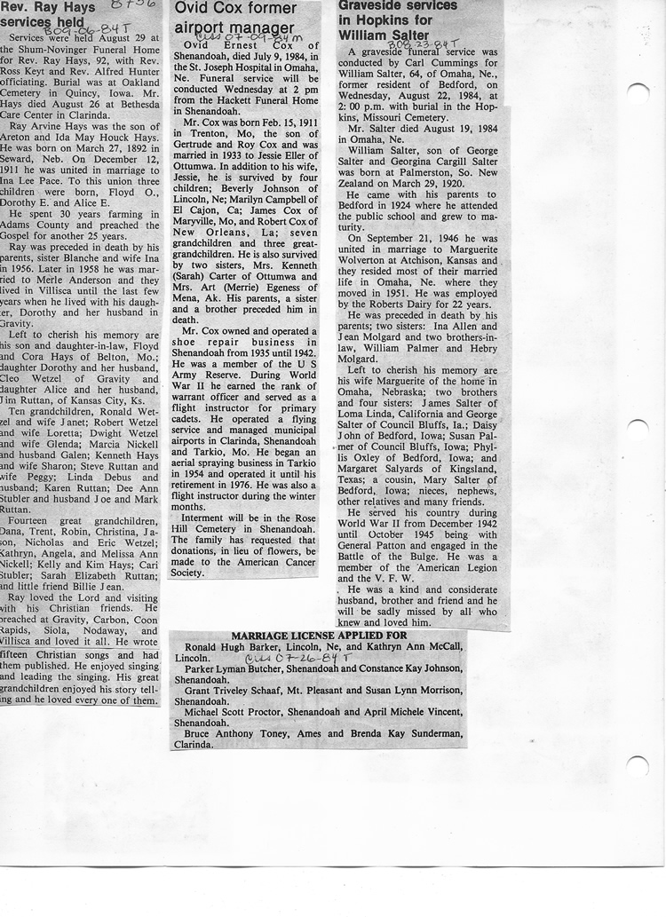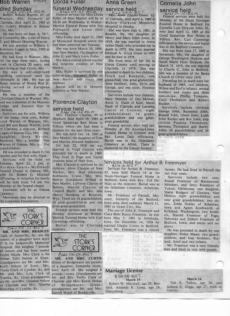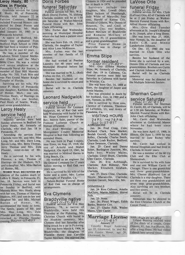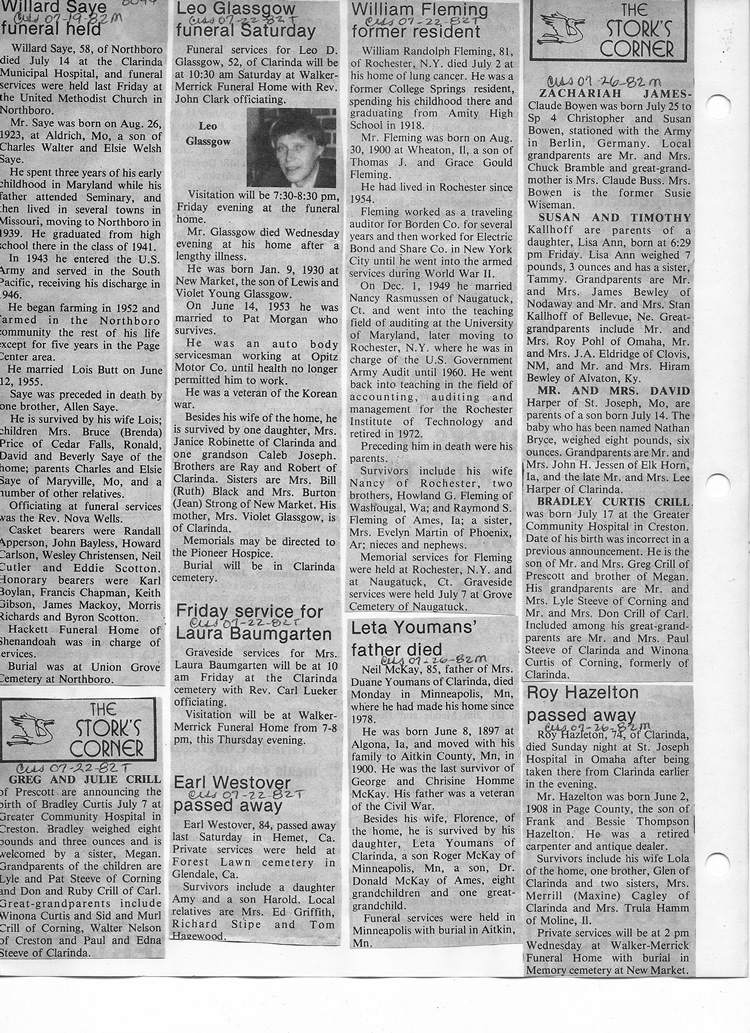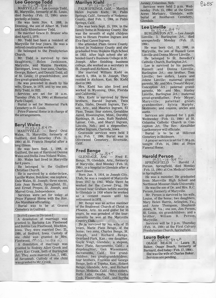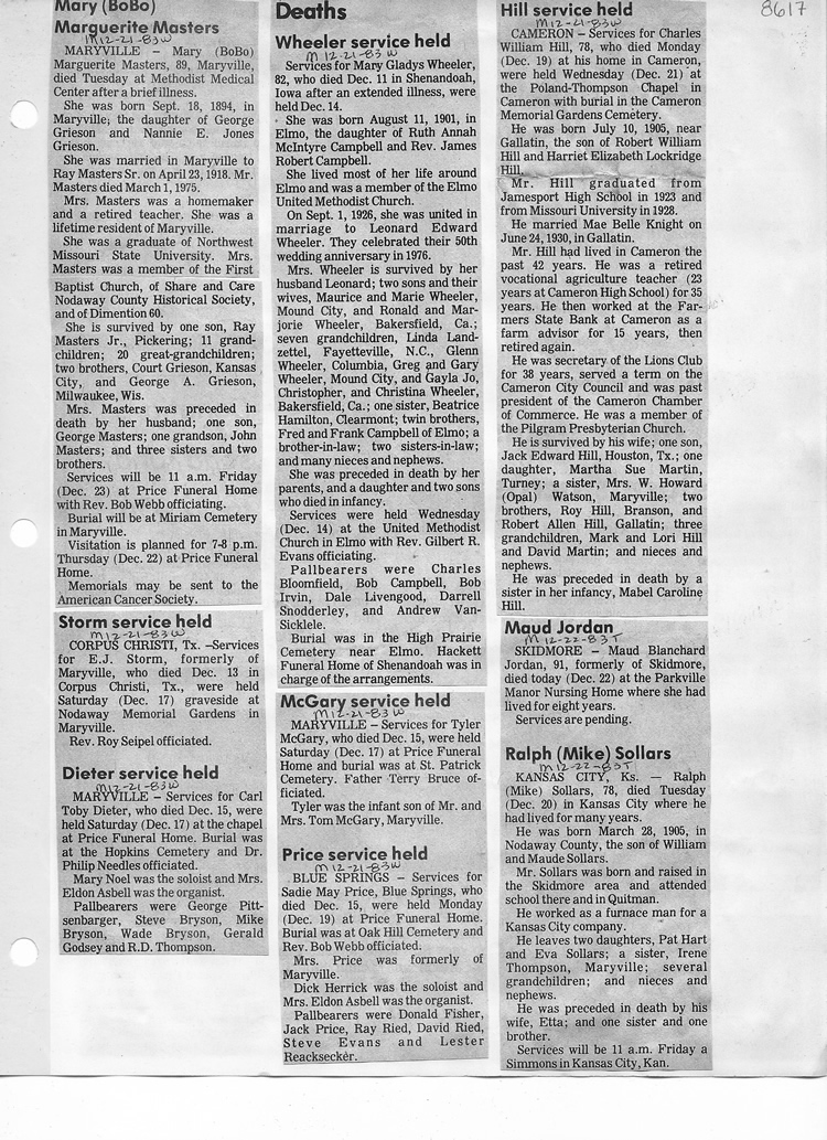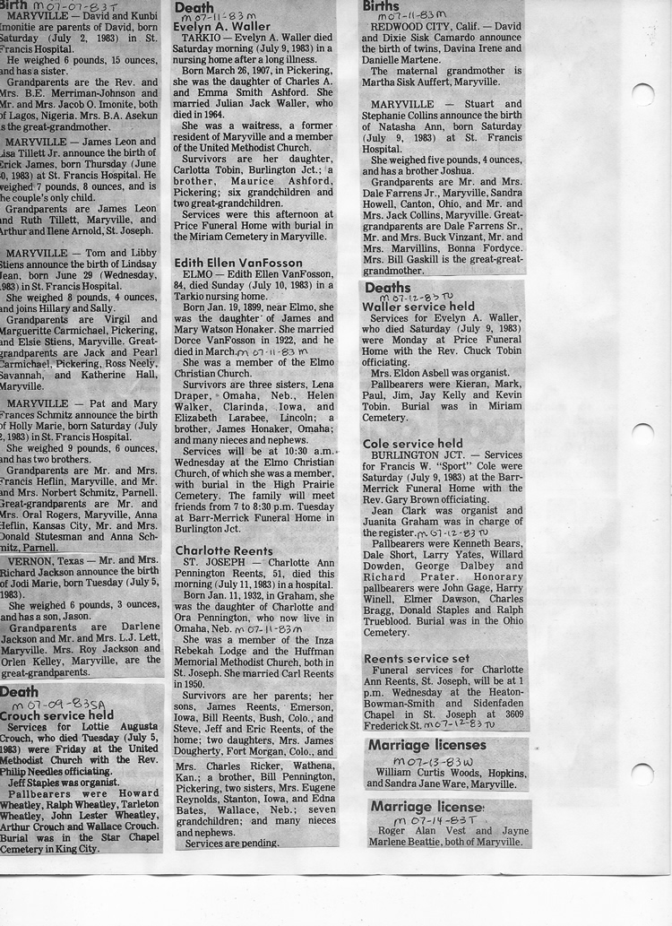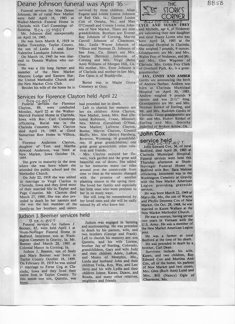 O'Dell's Abstracted Newspaper Index - Clippings - #8000's