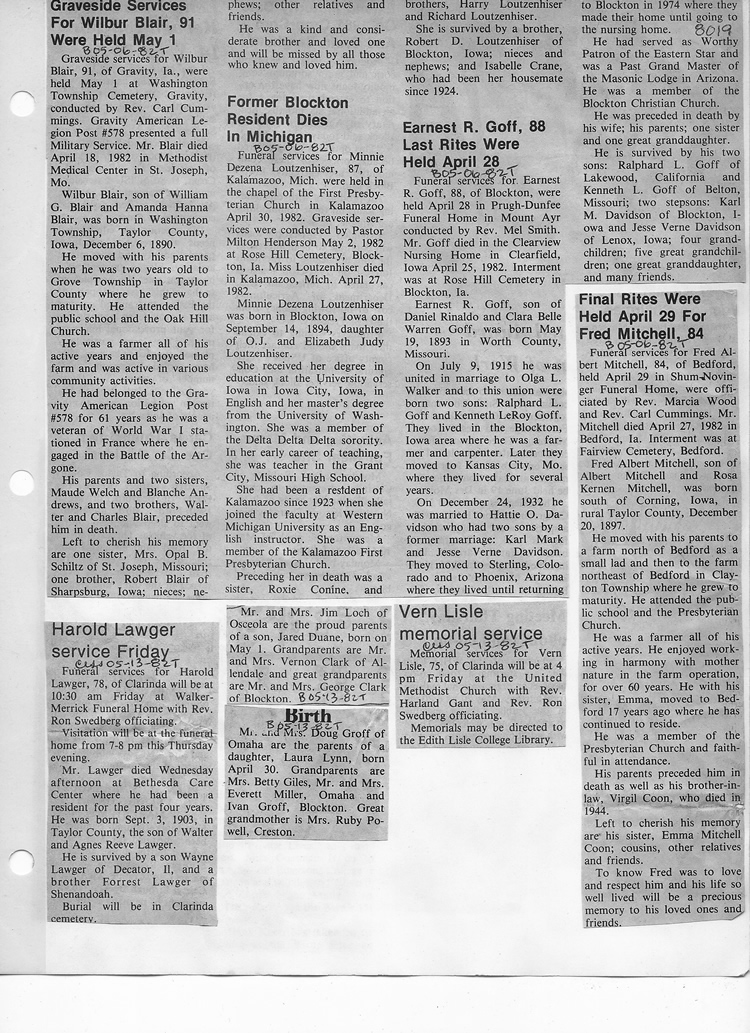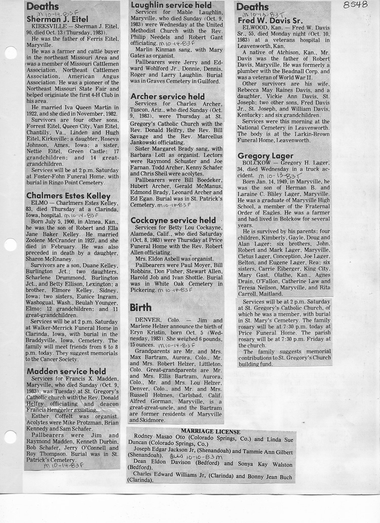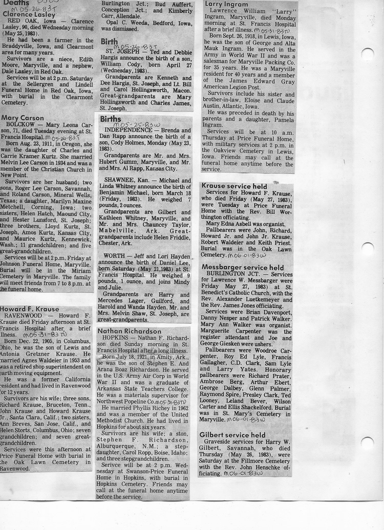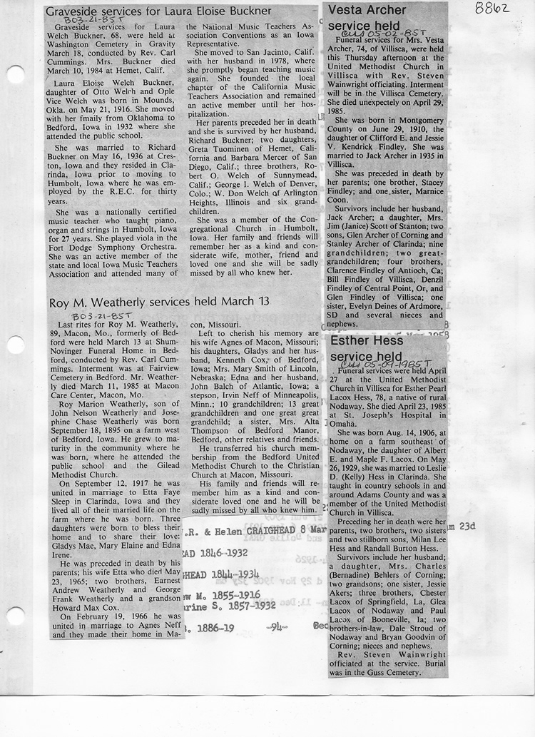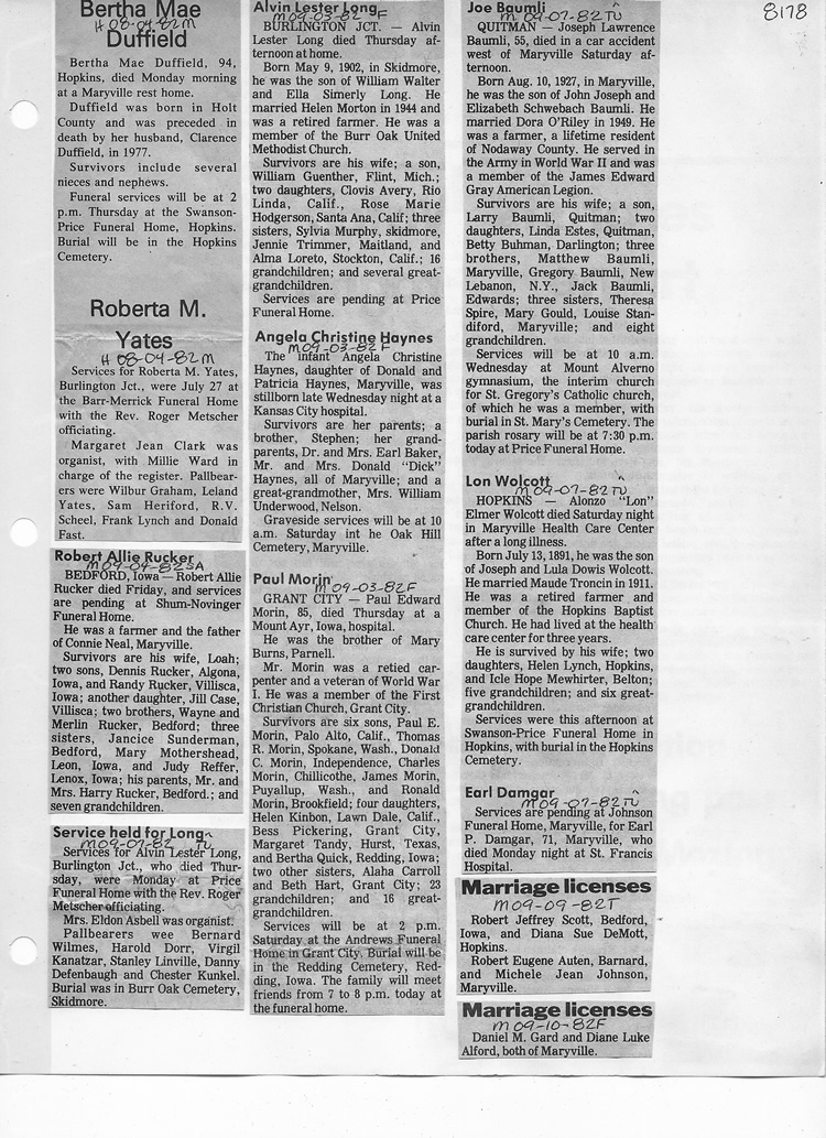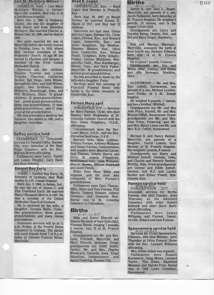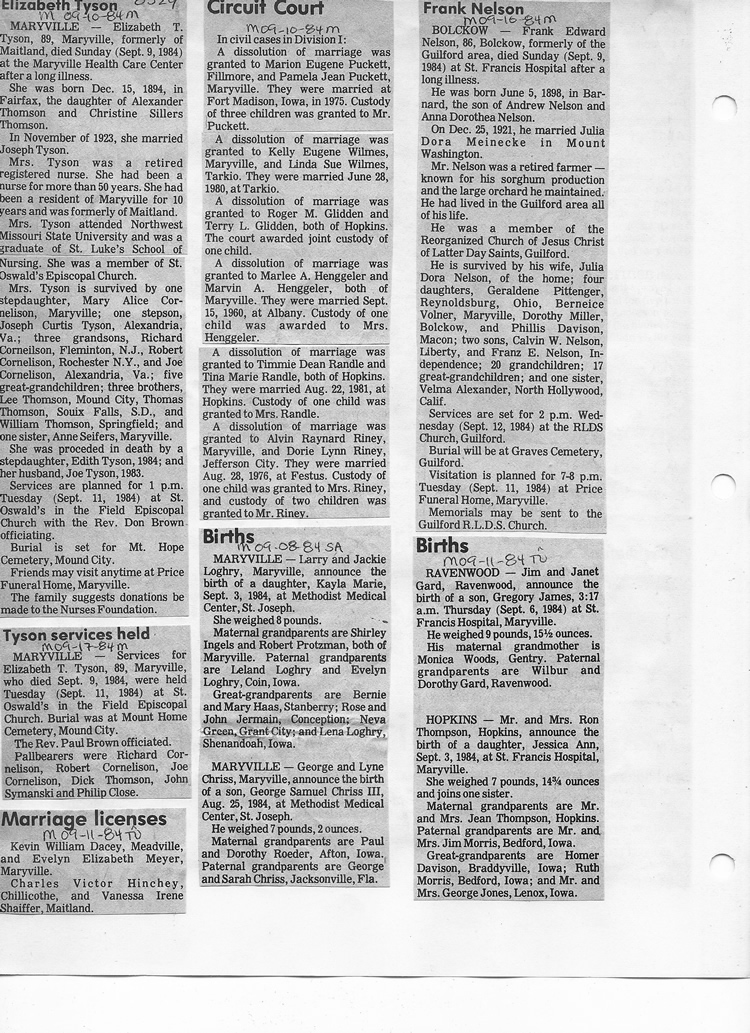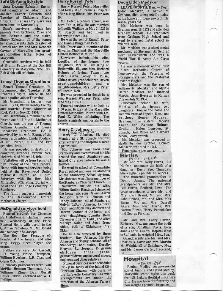 O'Dell's Abstracted Newspaper Index - Clippings - #8000's