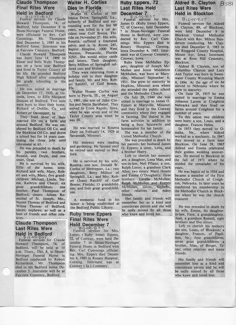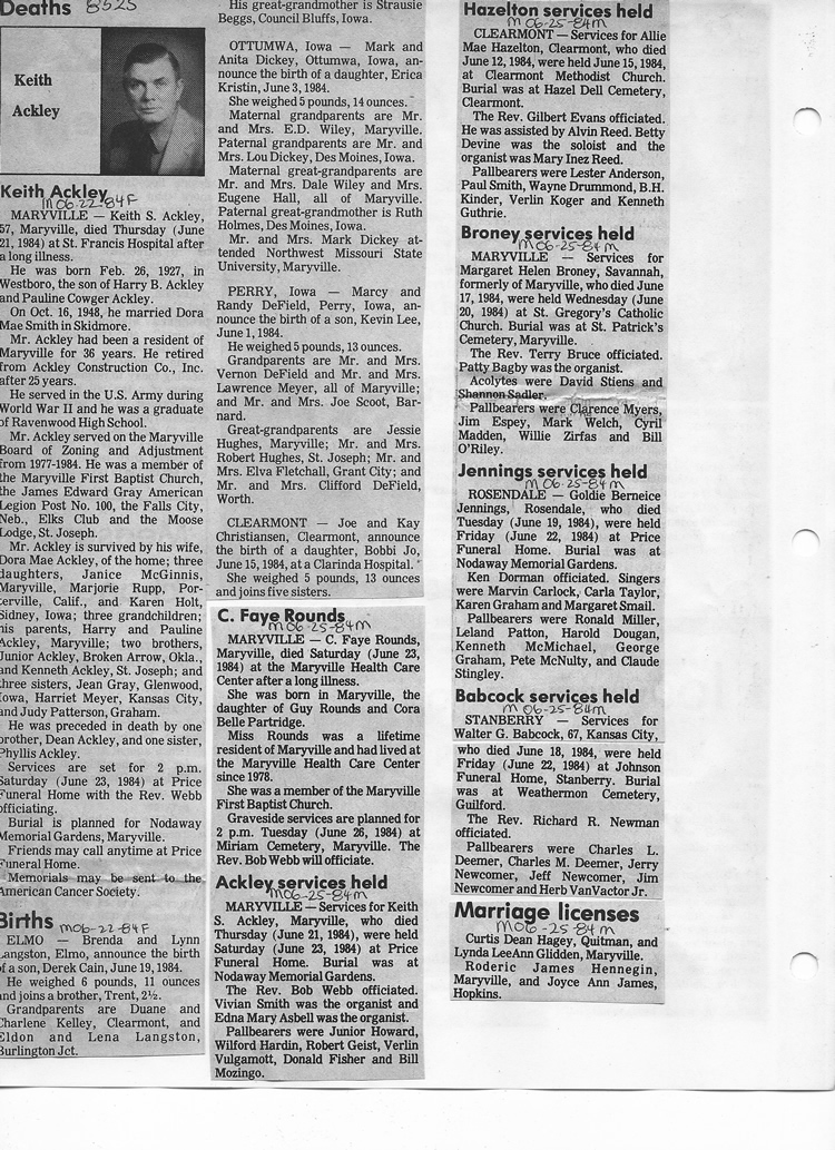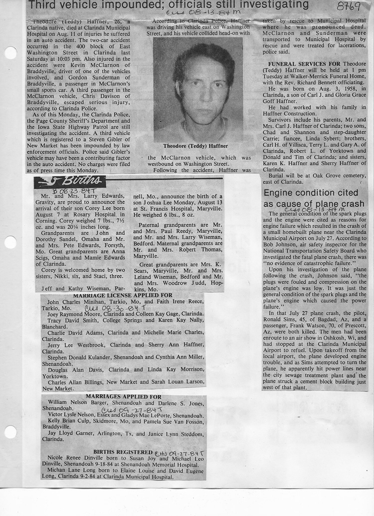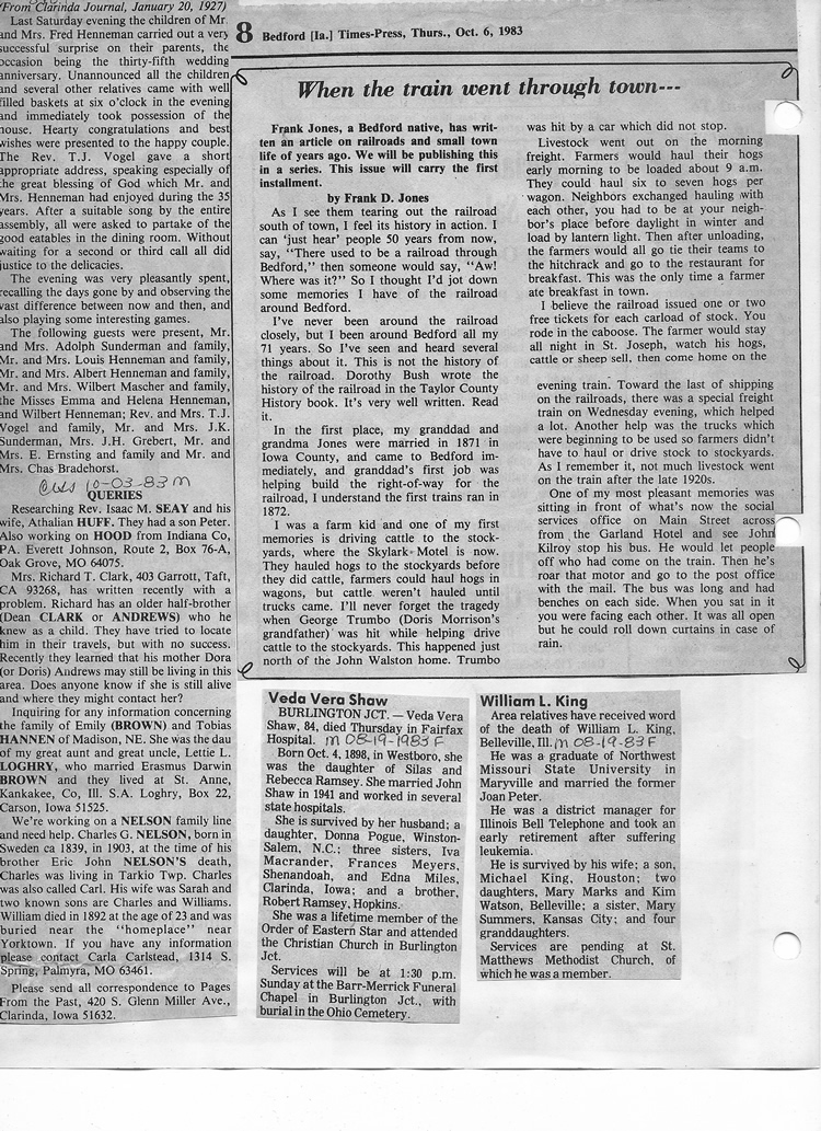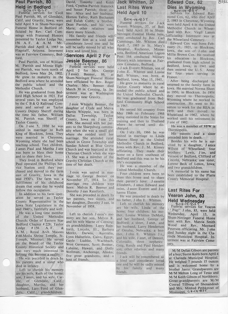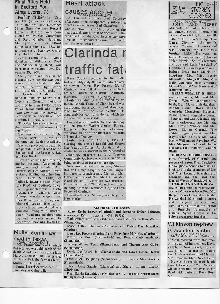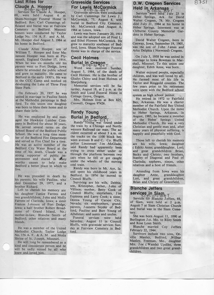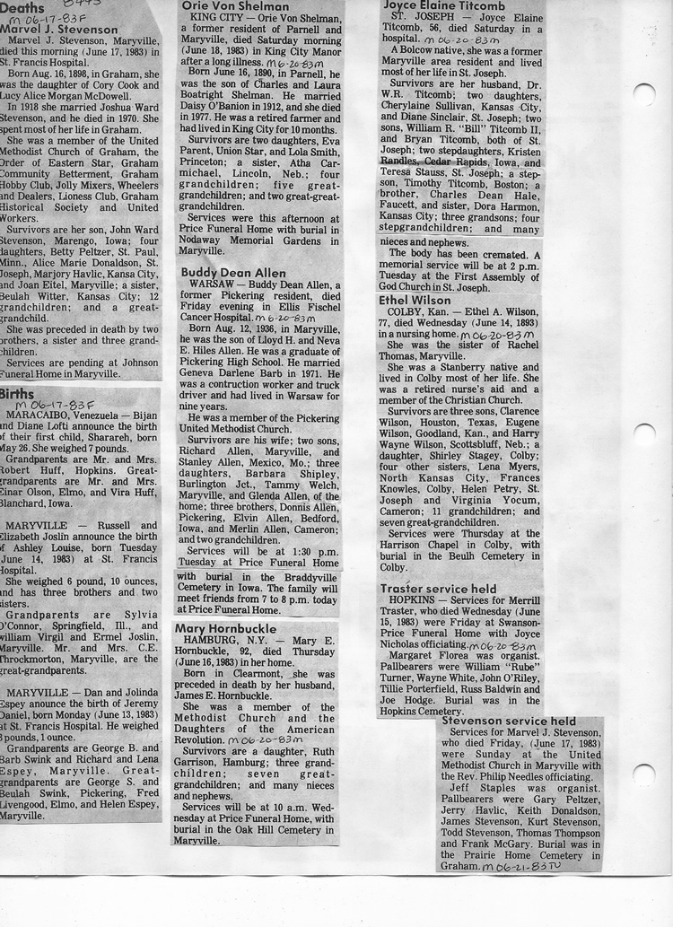 O'Dell's Abstracted Newspaper Index - Clippings - #8000's
