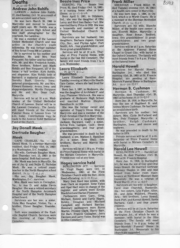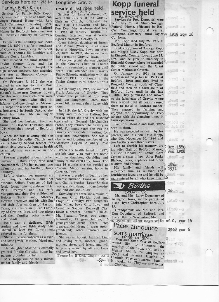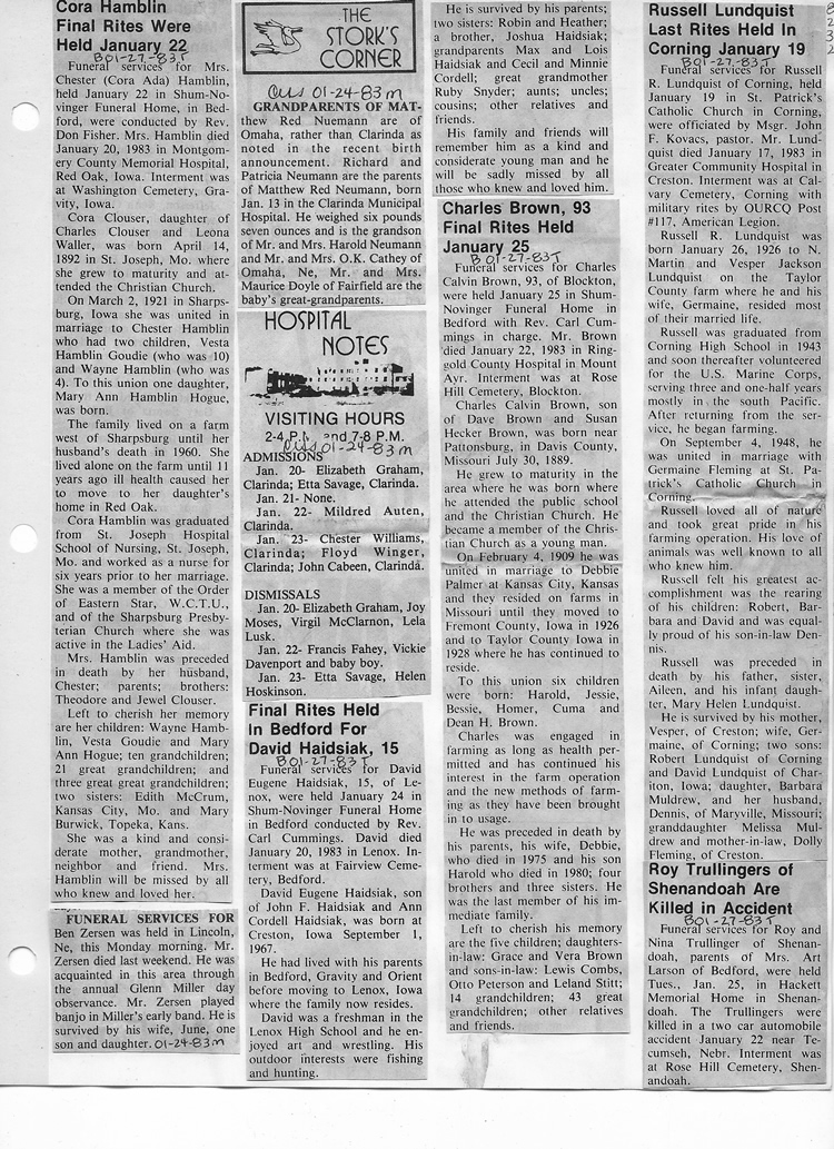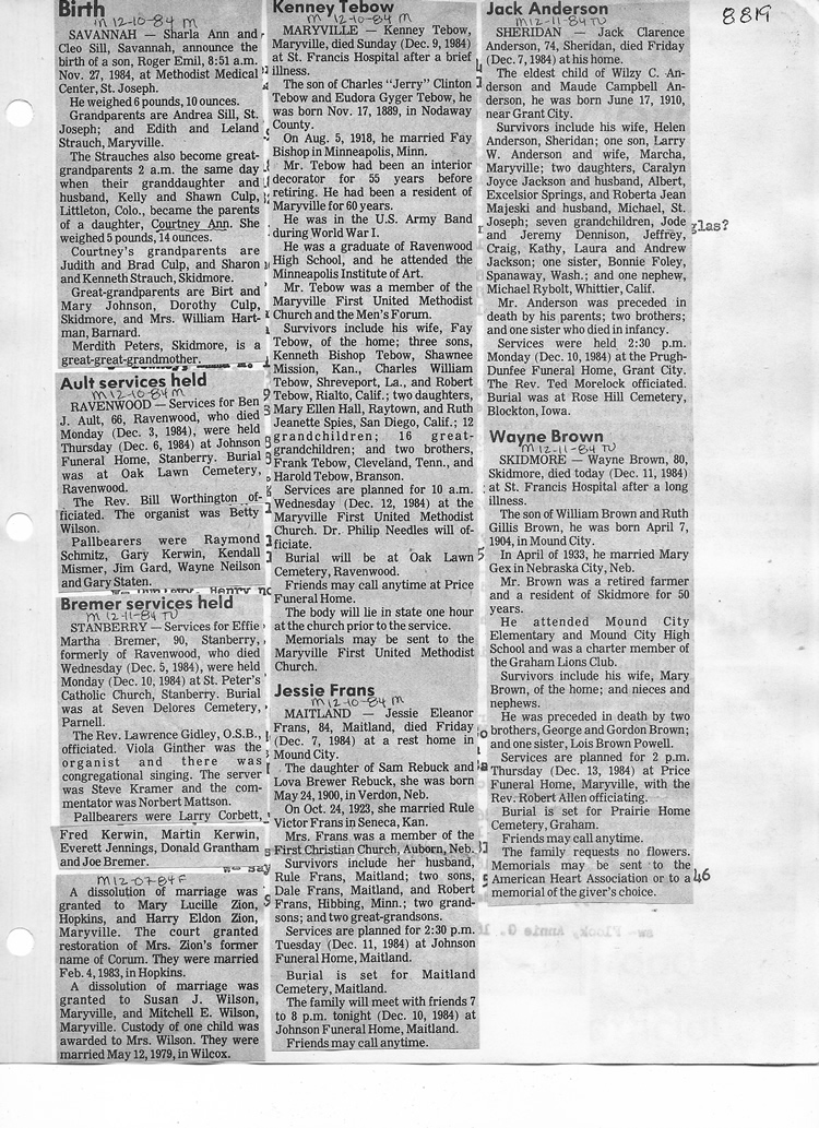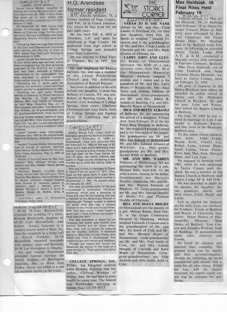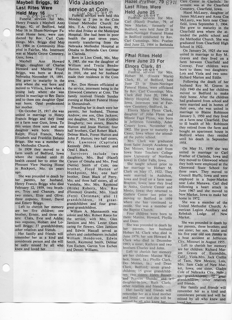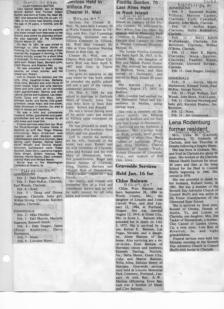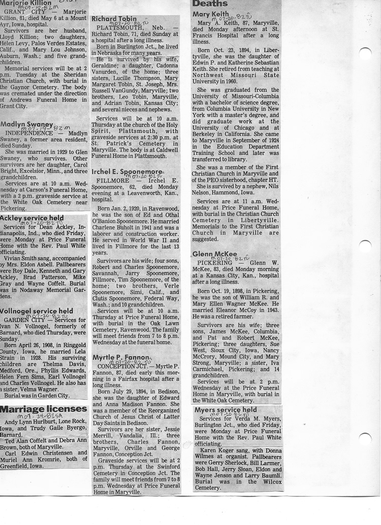 O'Dell's Abstracted Newspaper Index - Clippings - #8000's