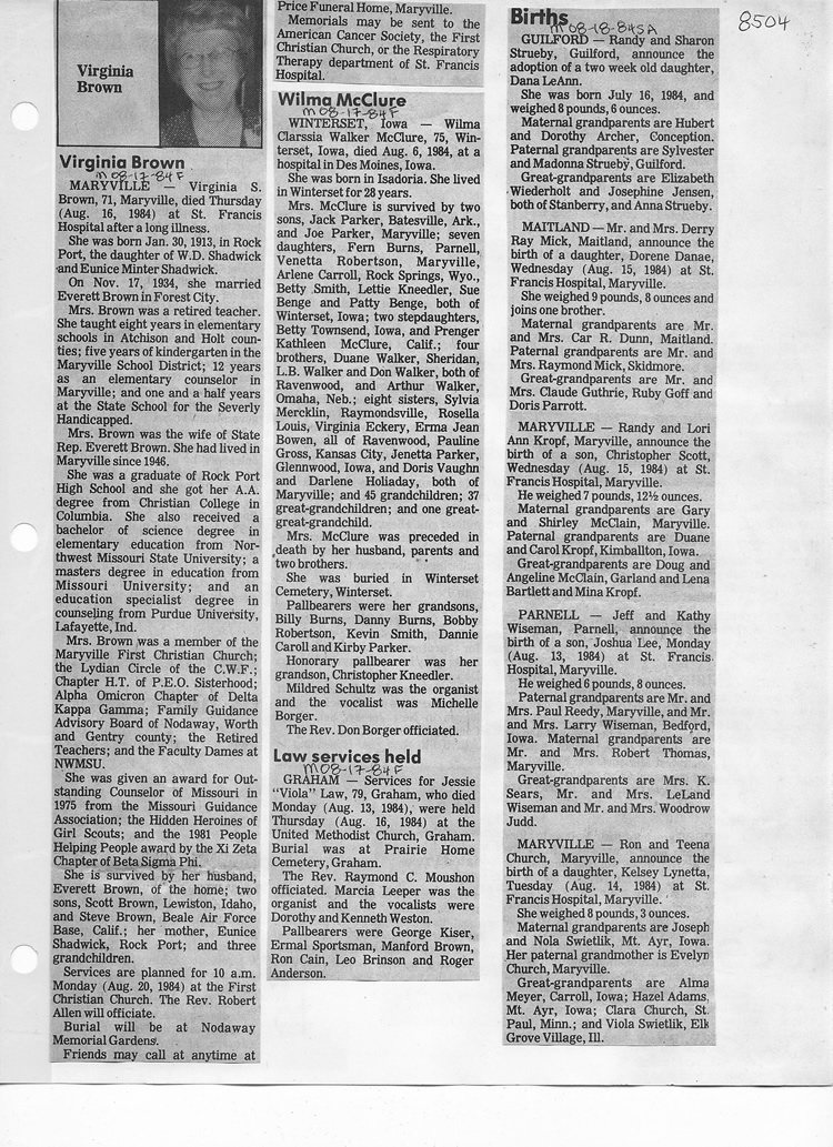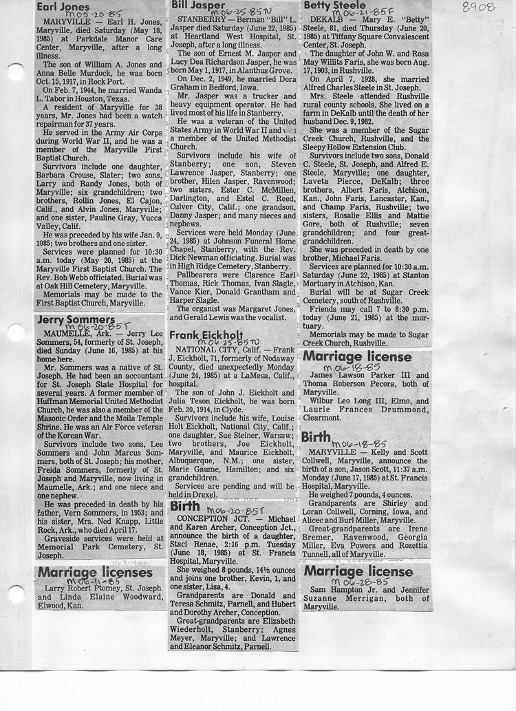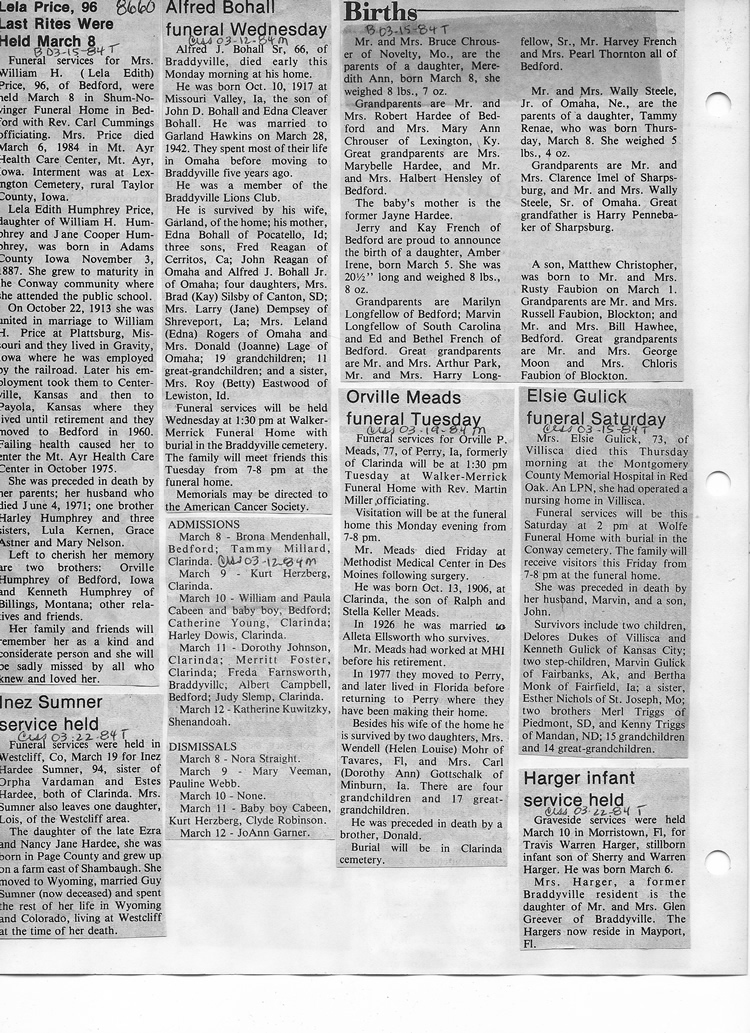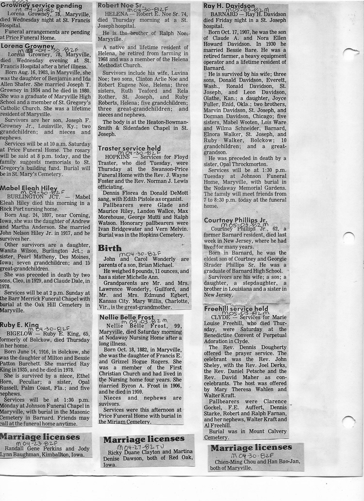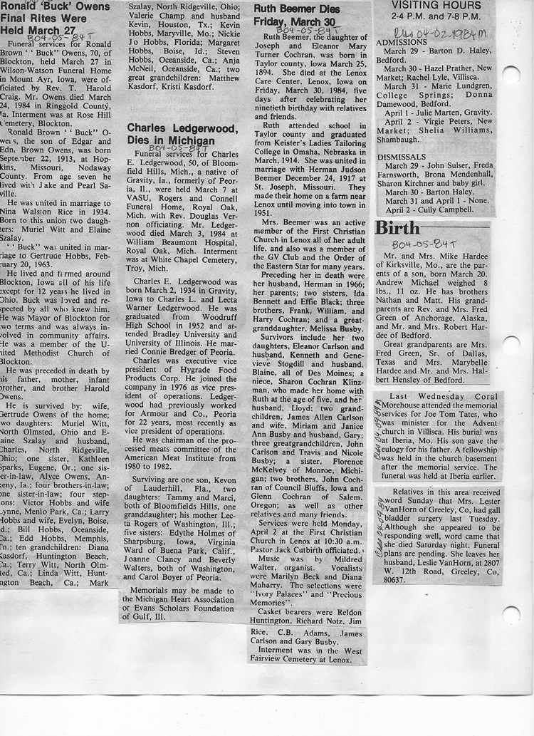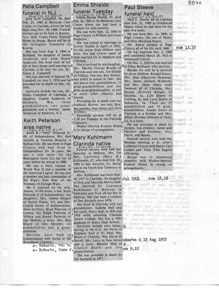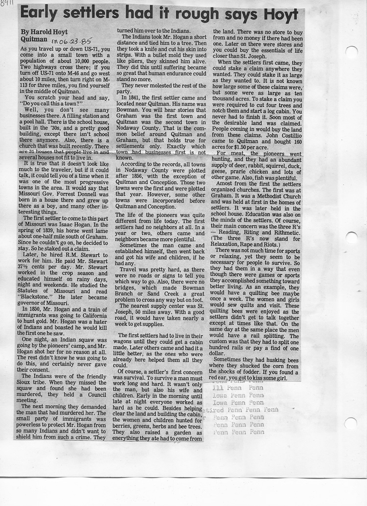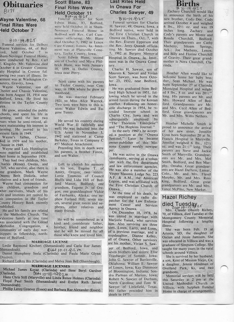 O'Dell's Abstracted Newspaper Index - Clippings - #8000's