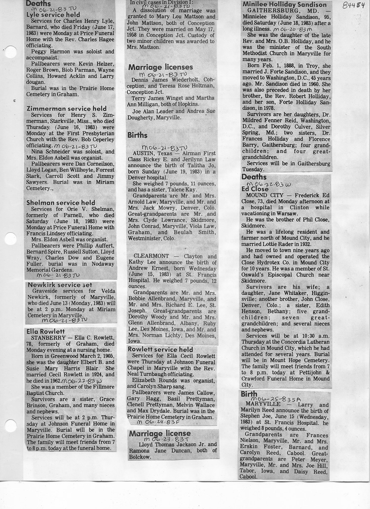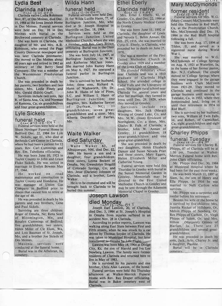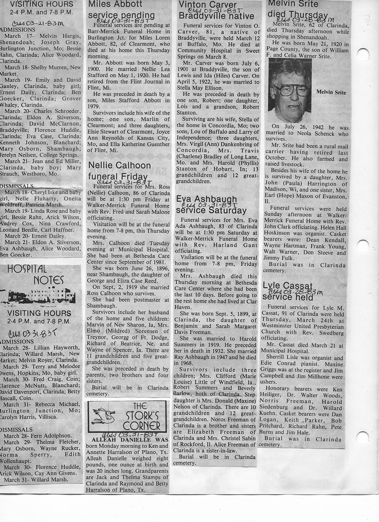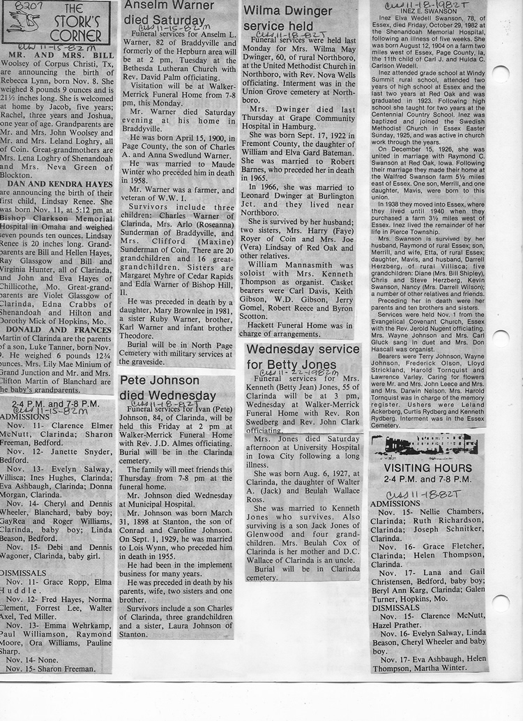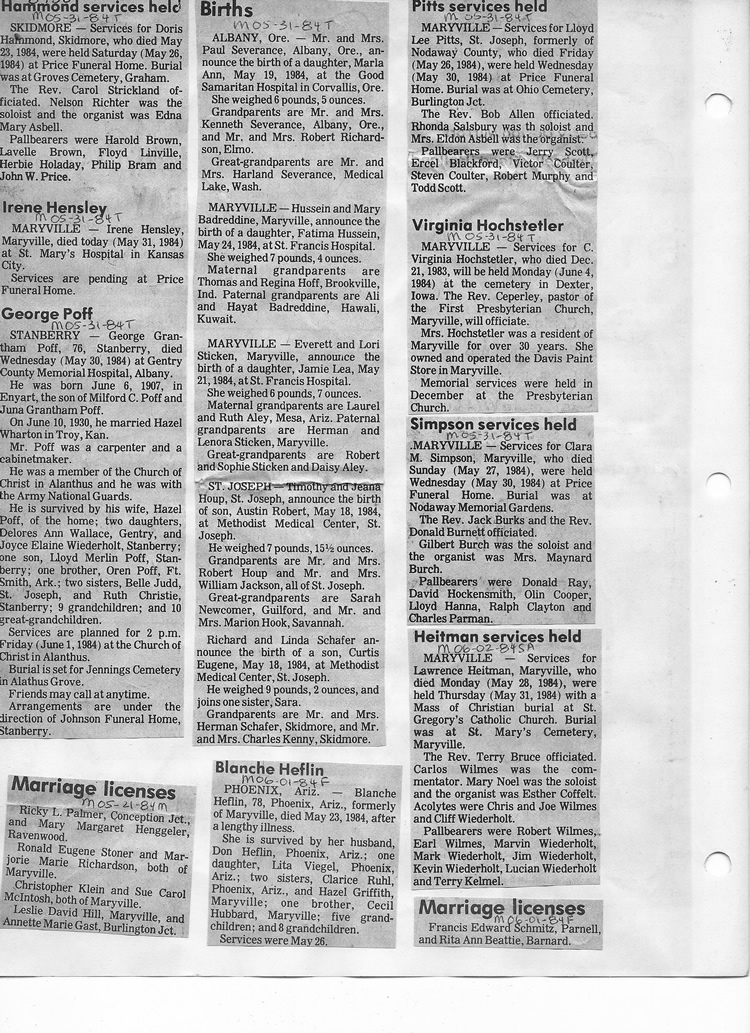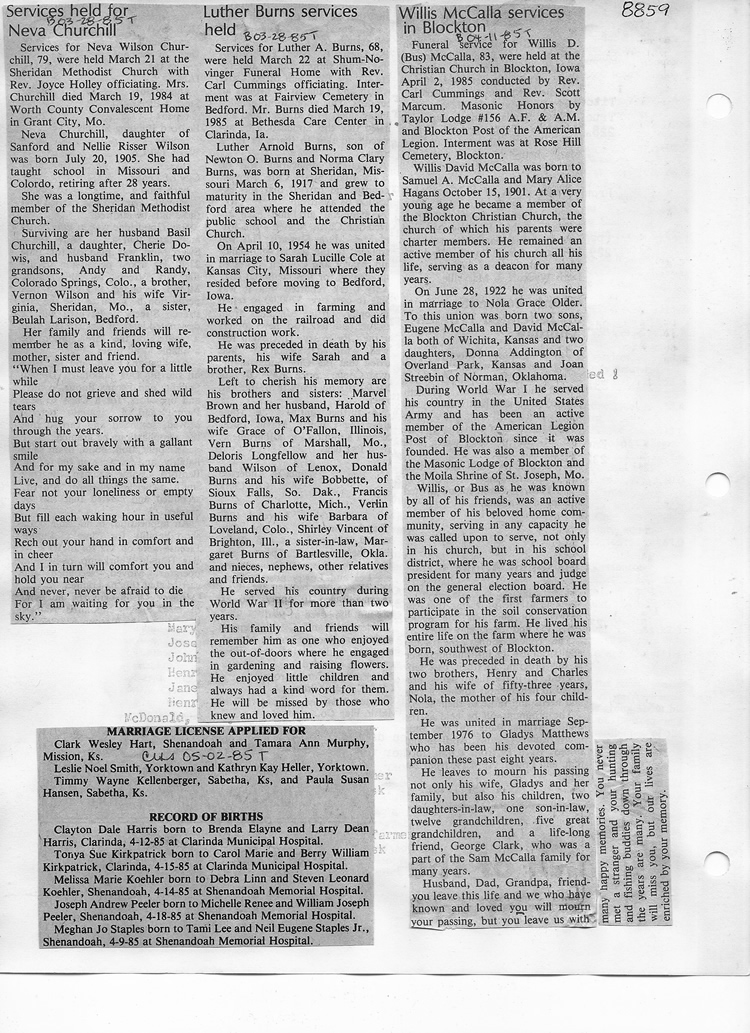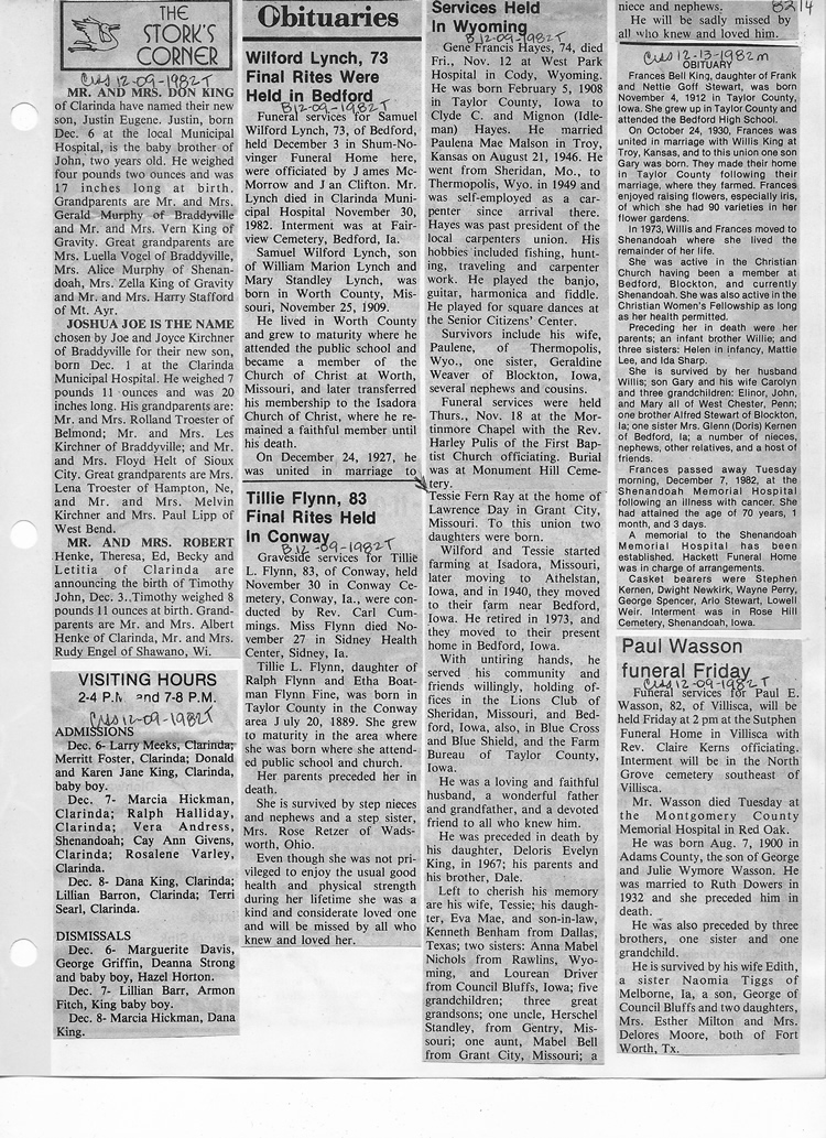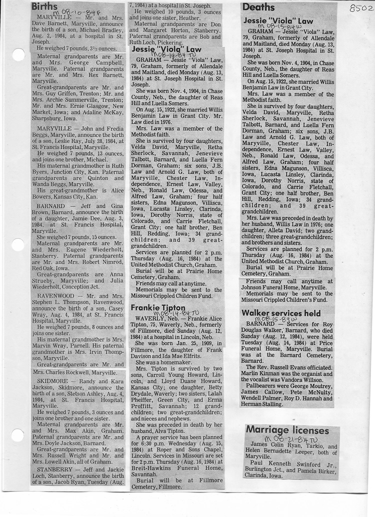 O'Dell's Abstracted Newspaper Index - Clippings - #8000's