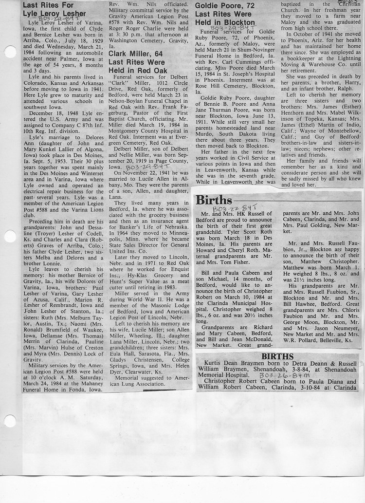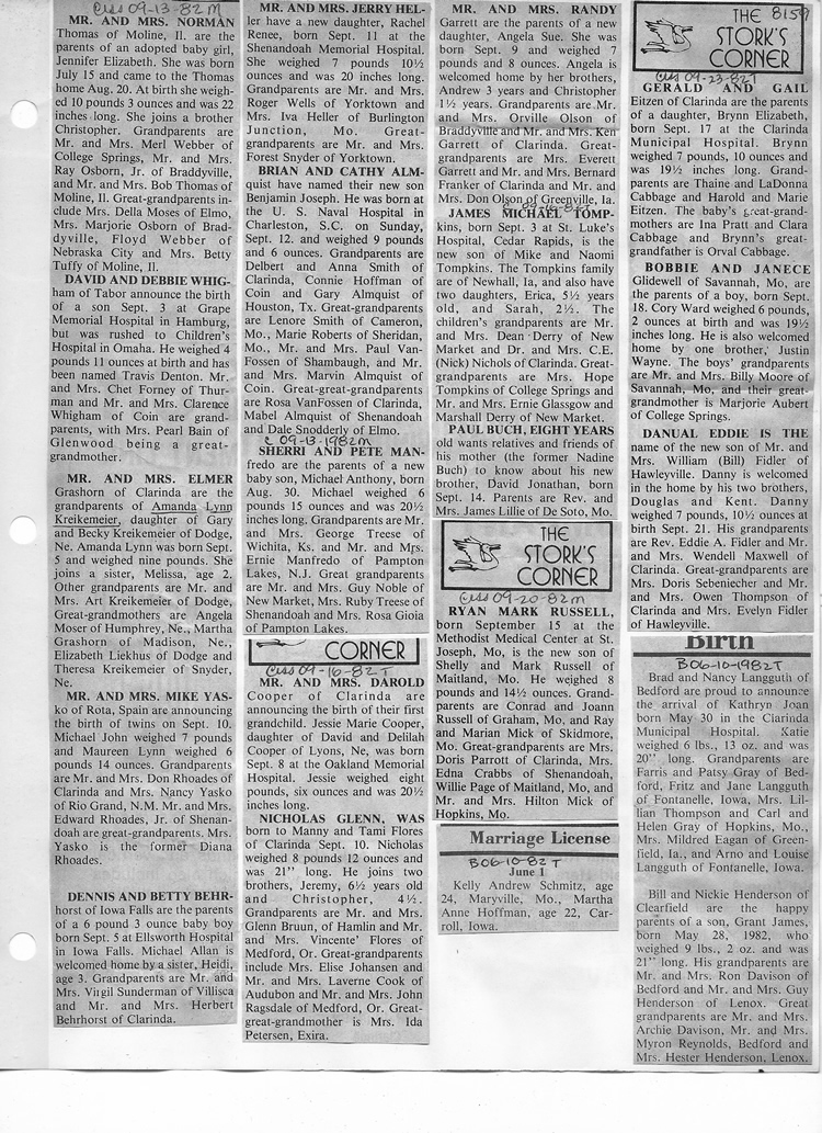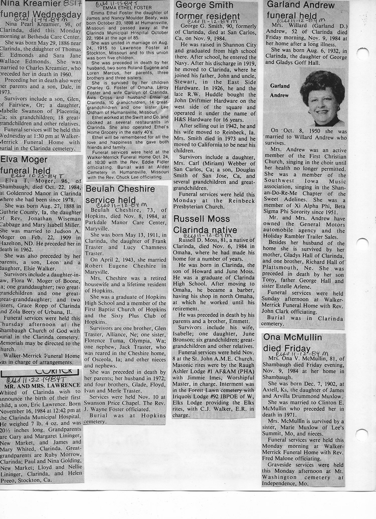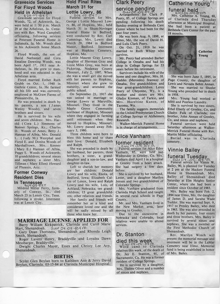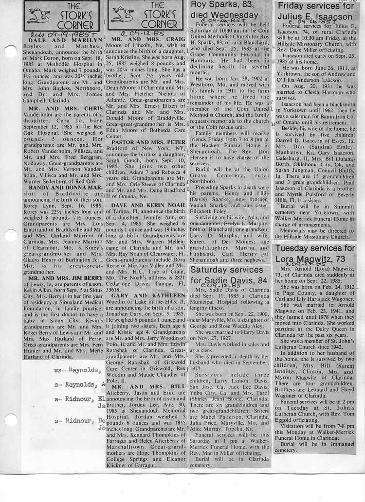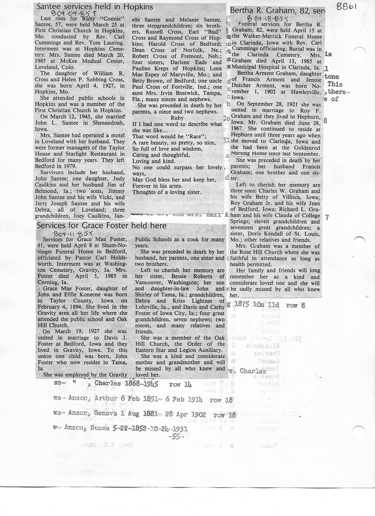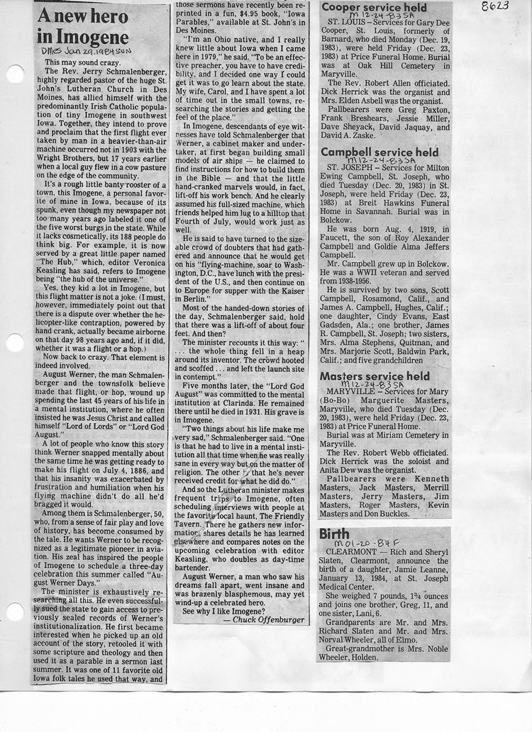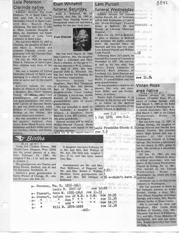 O'Dell's Abstracted Newspaper Index - Clippings - #8000's