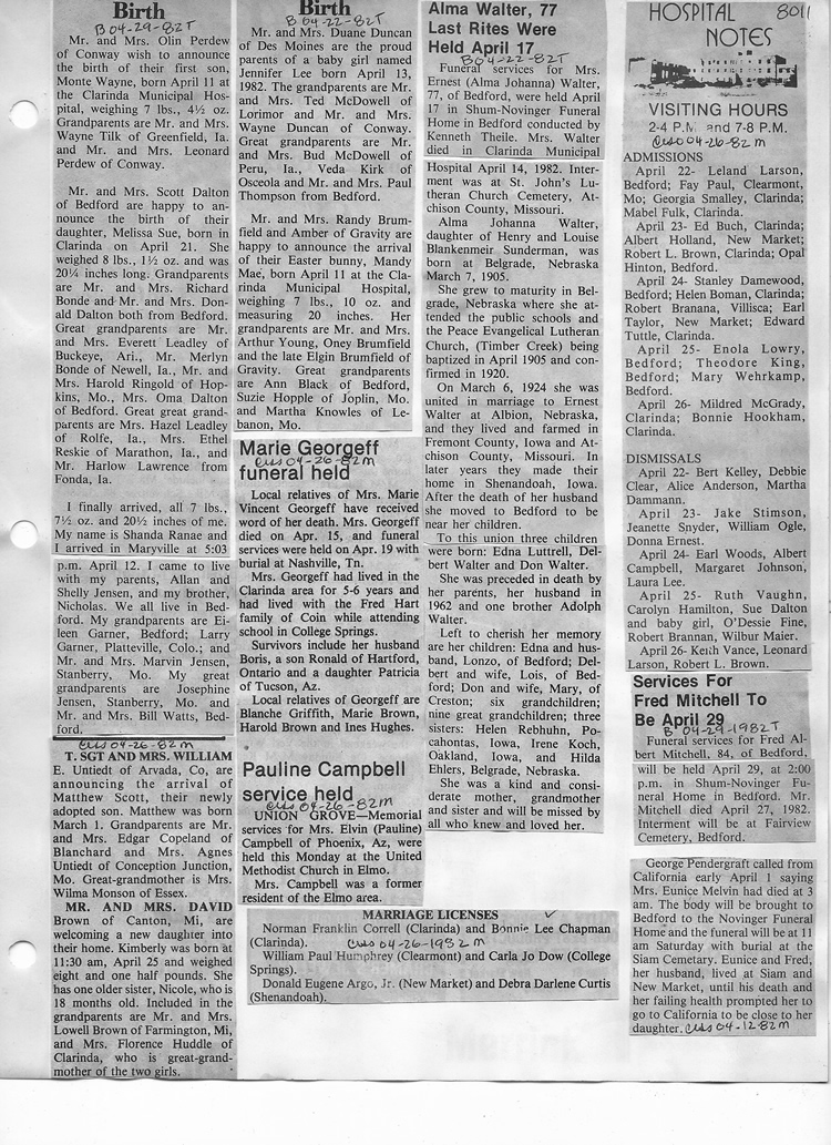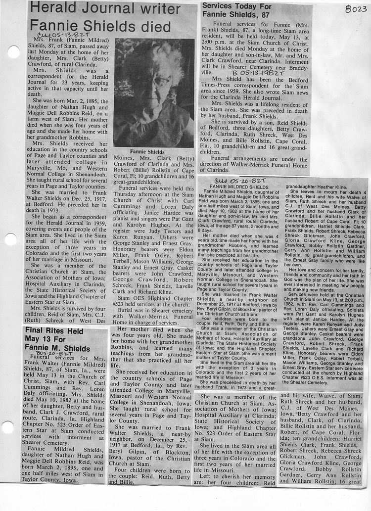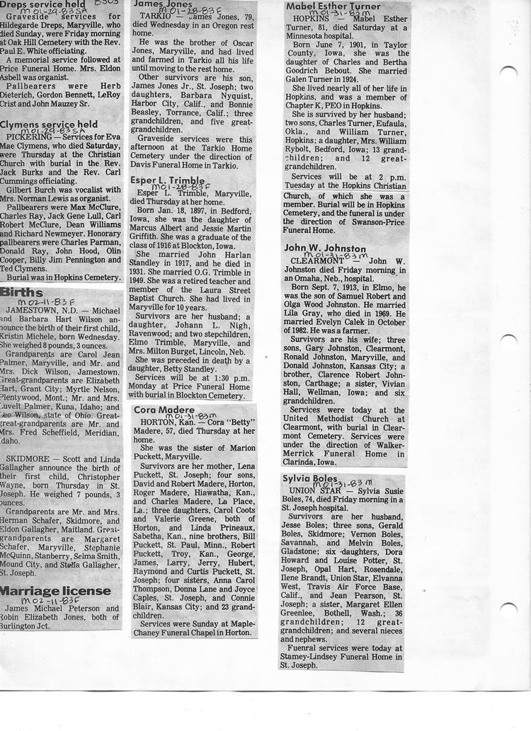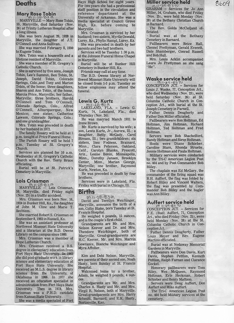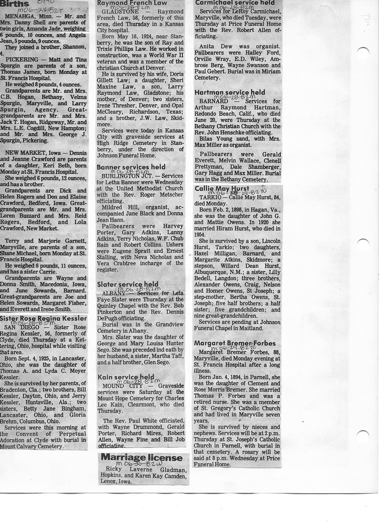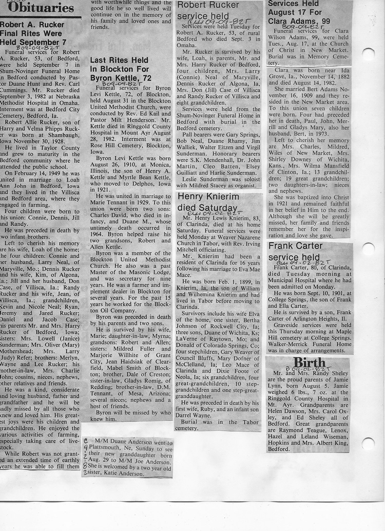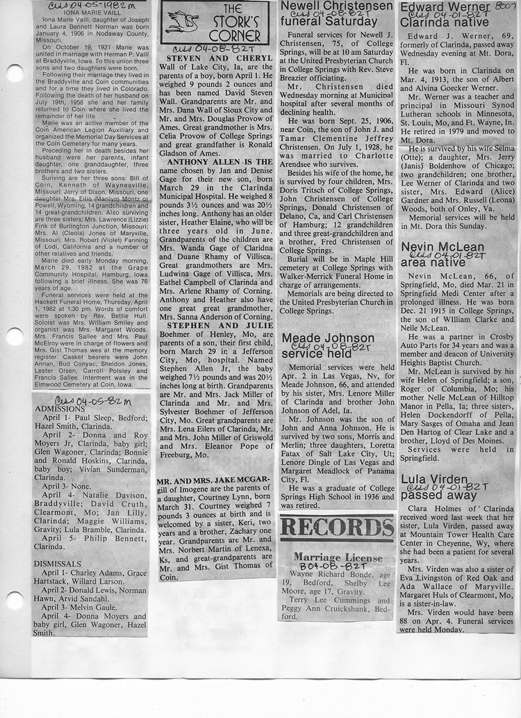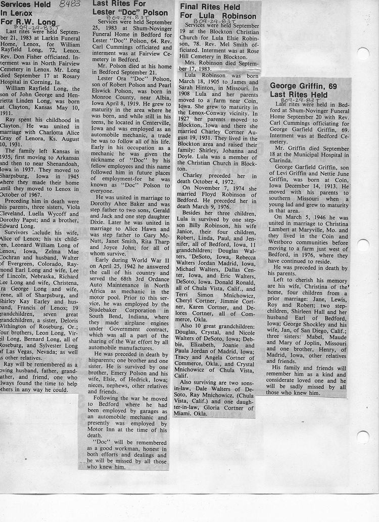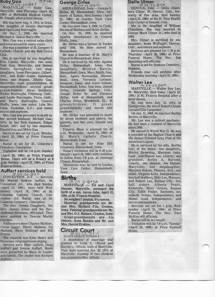 O'Dell's Abstracted Newspaper Index - Clippings - #8000's