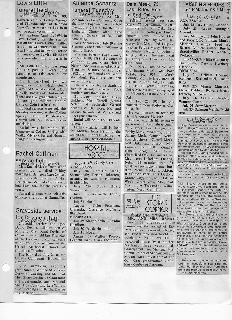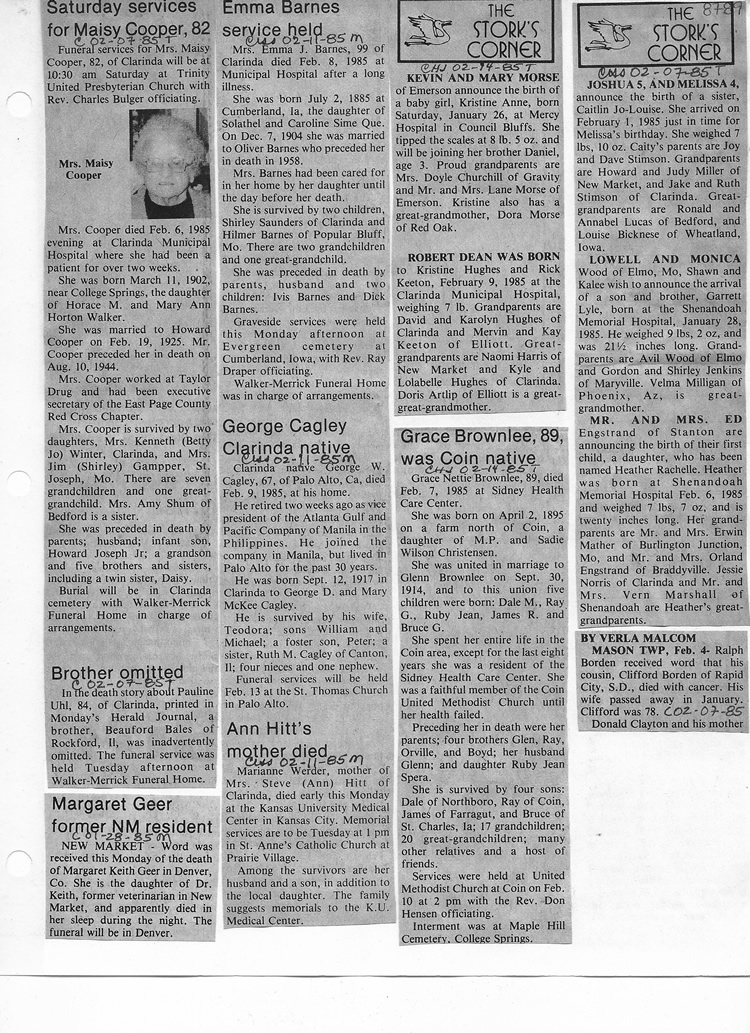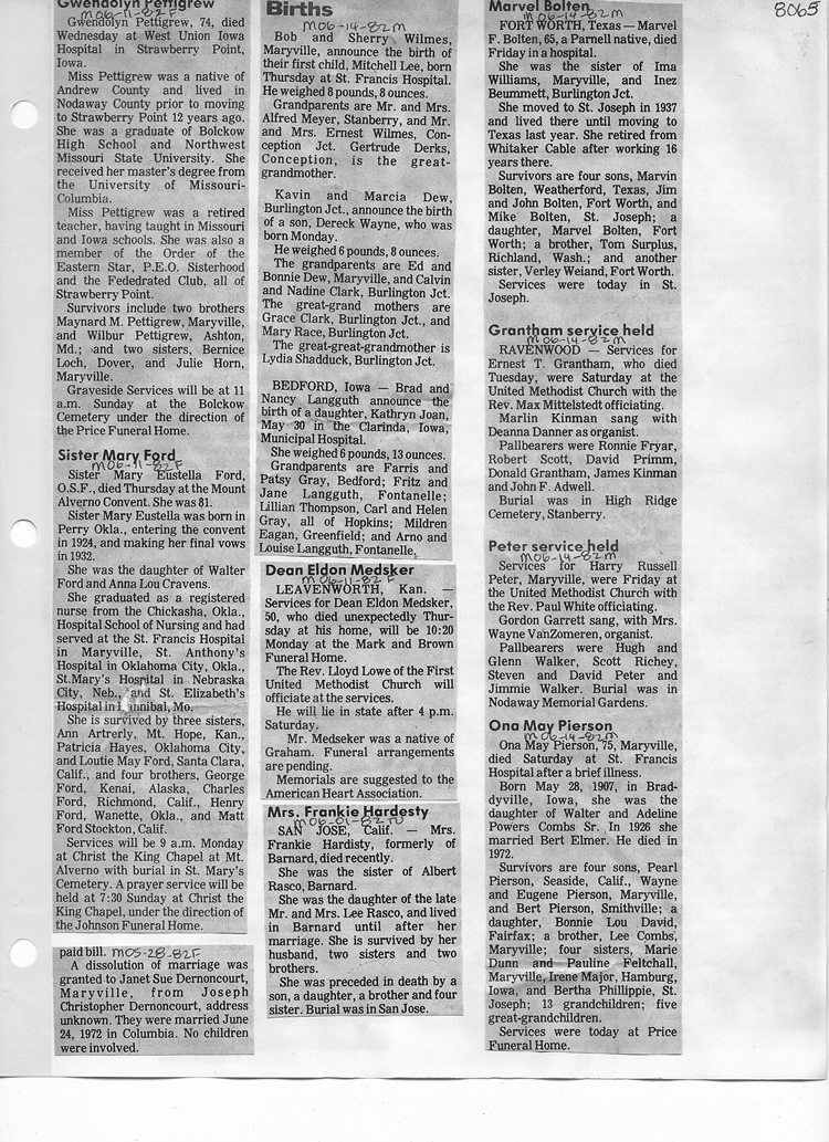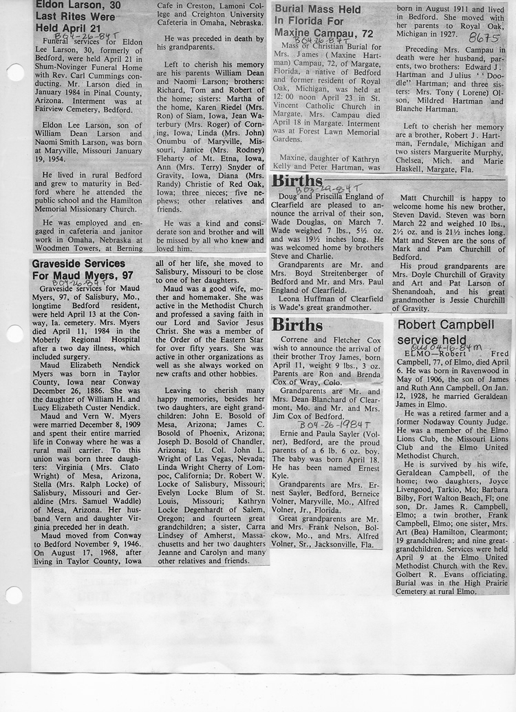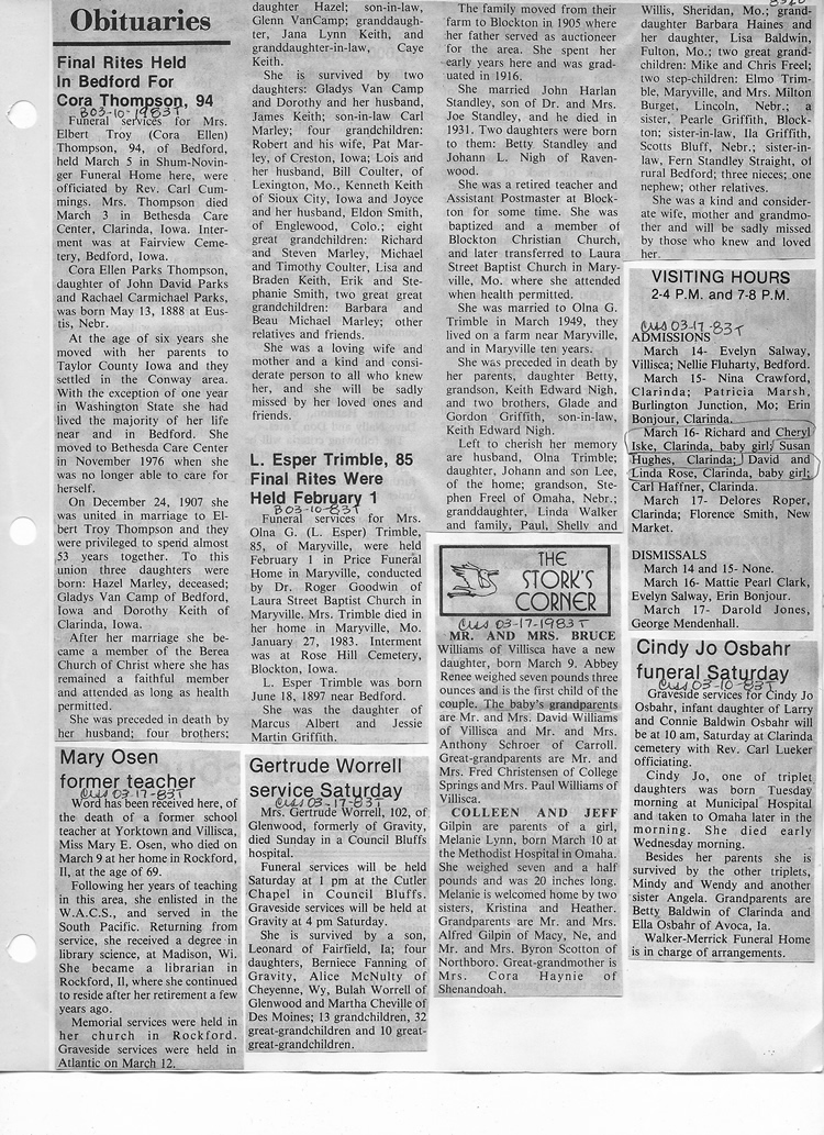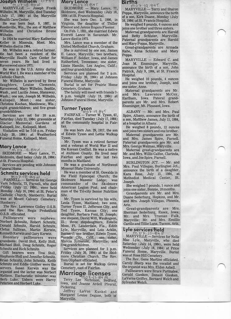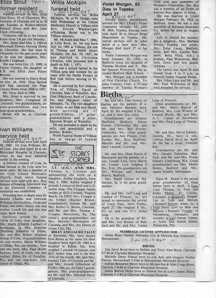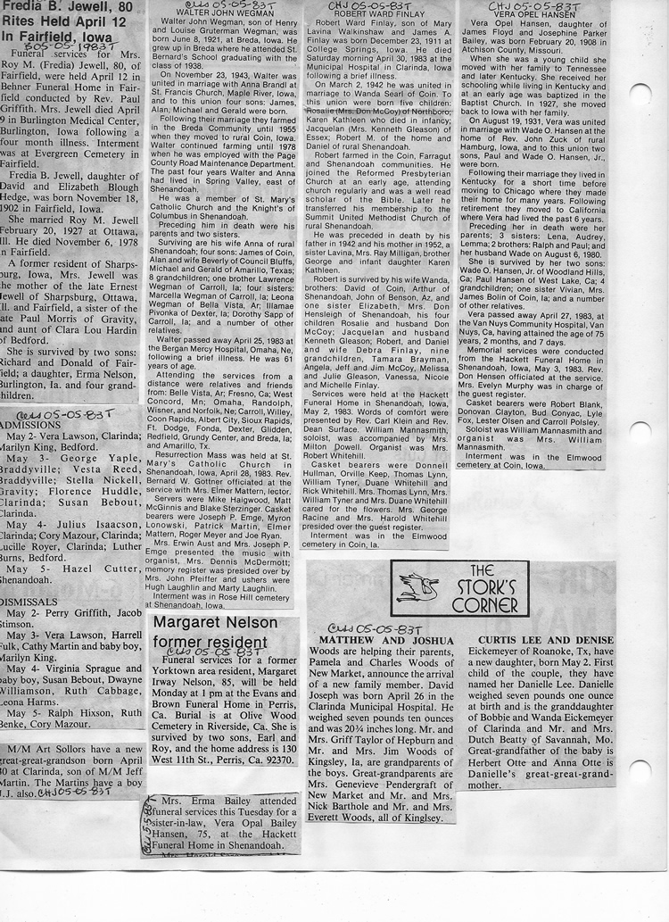 O'Dell's Abstracted Newspaper Index - Clippings - #8000's