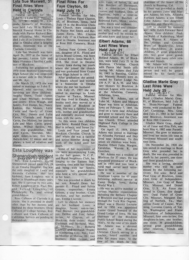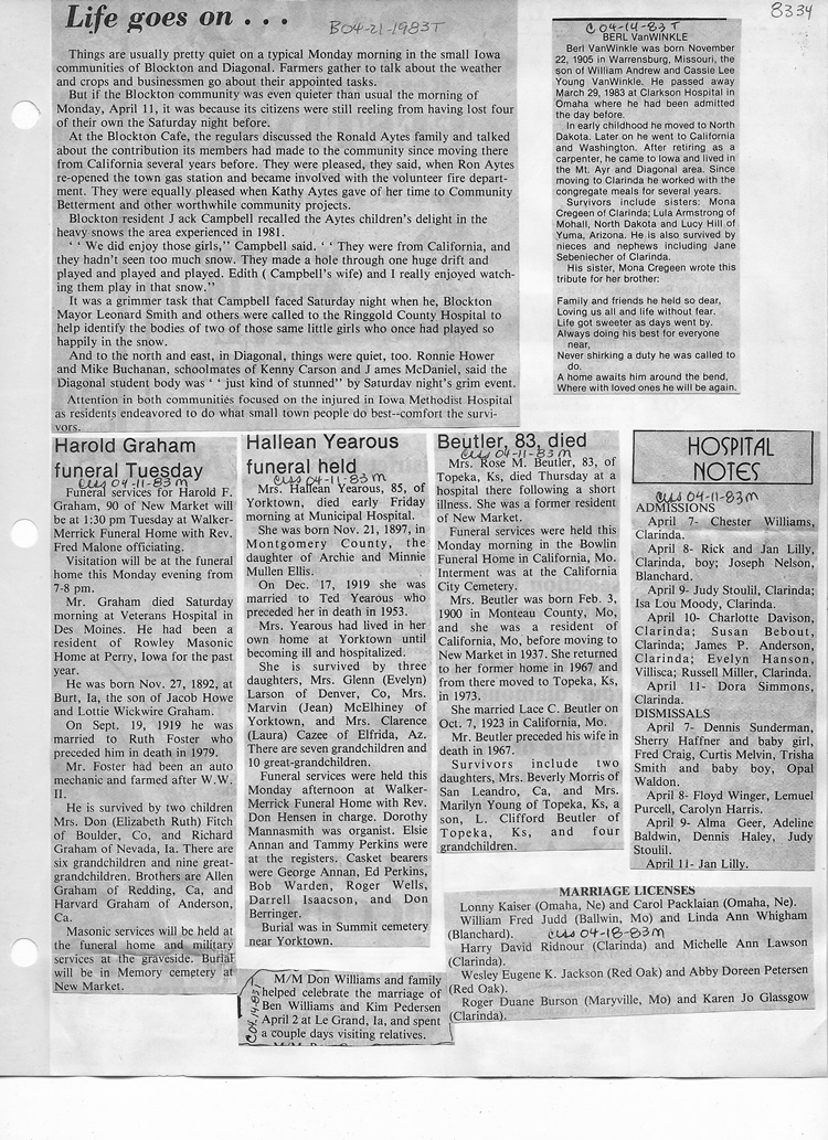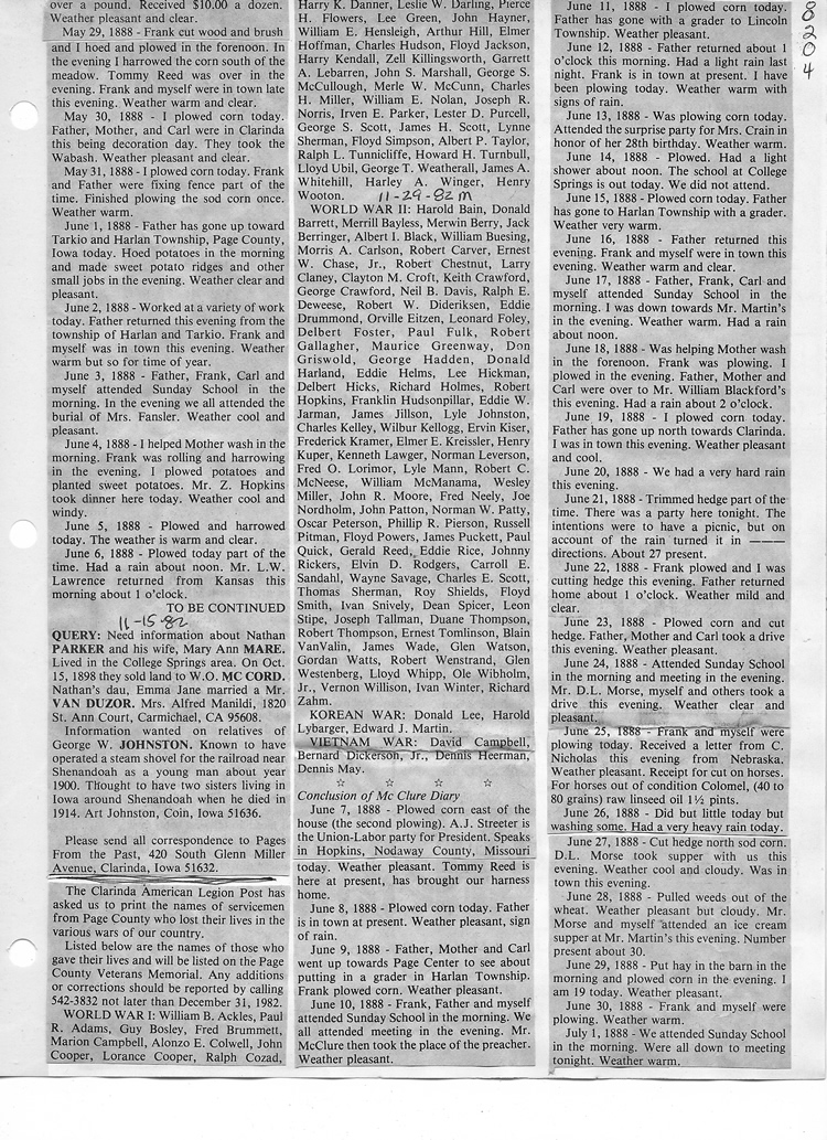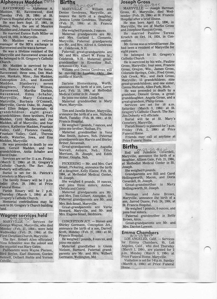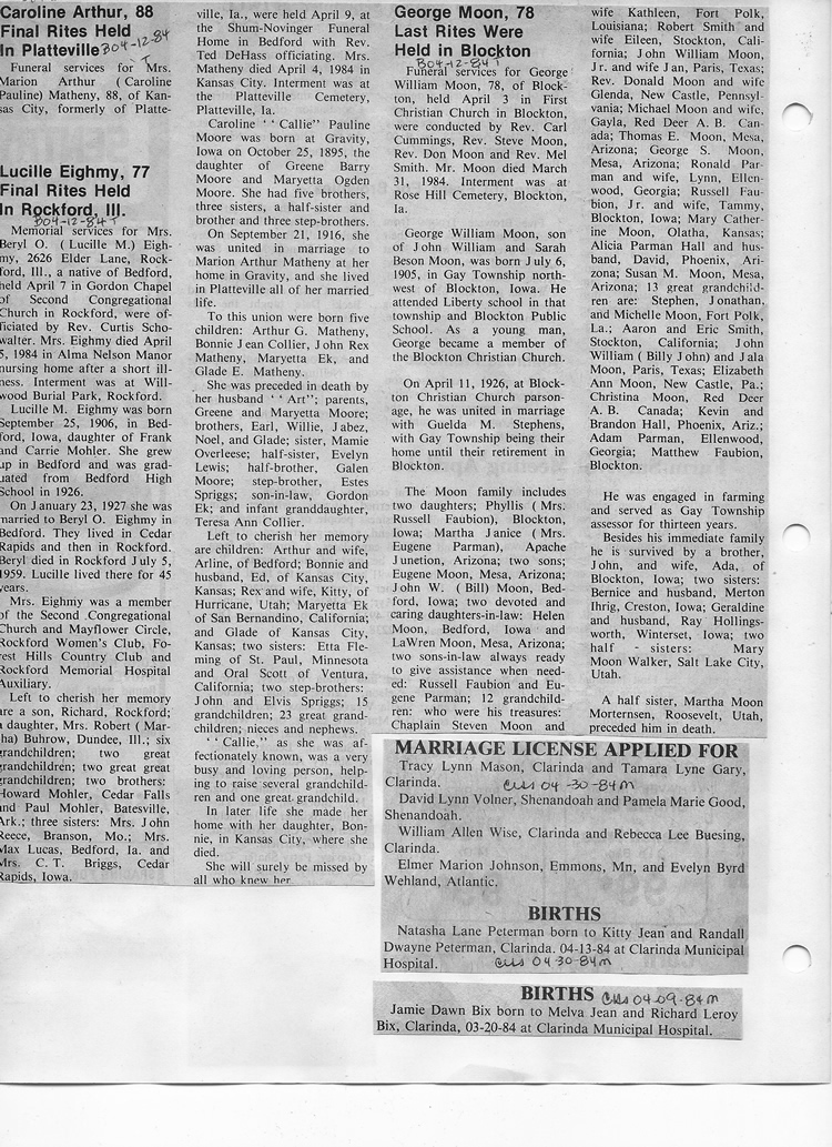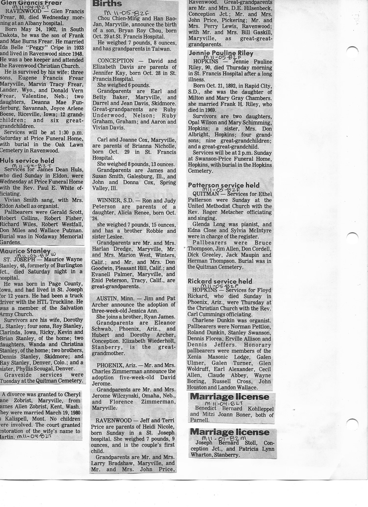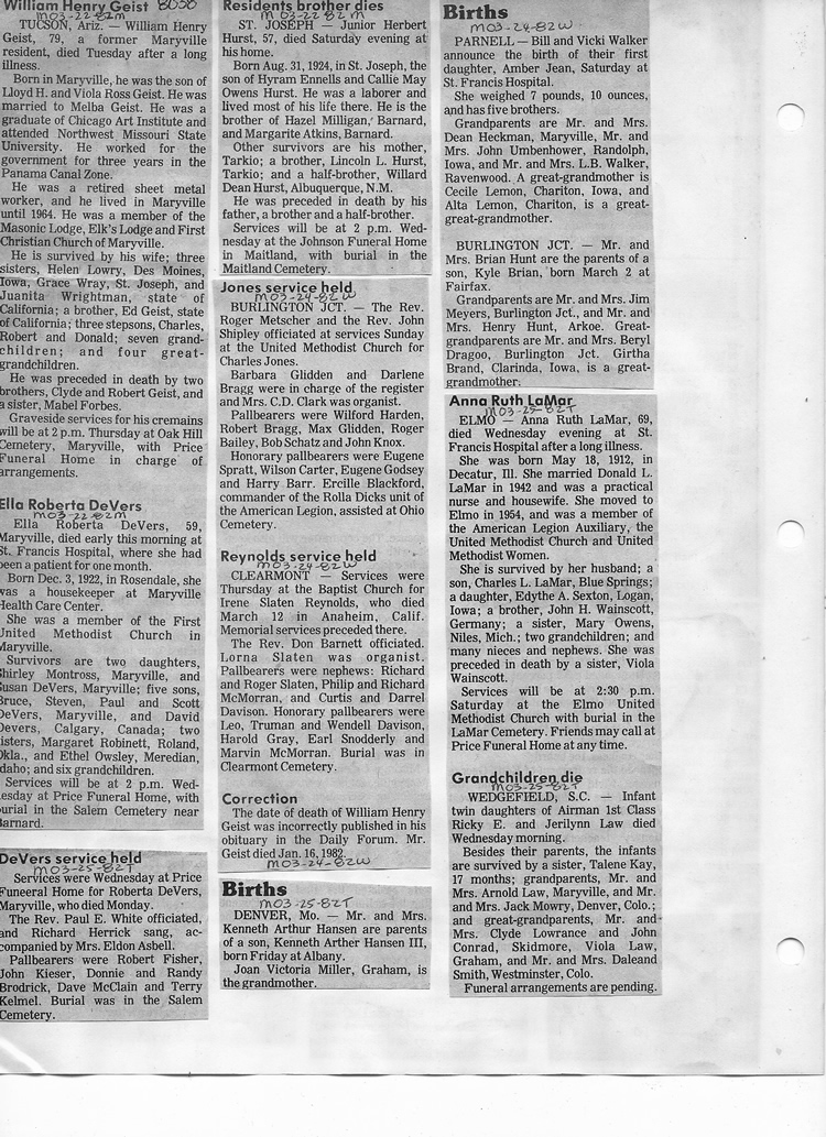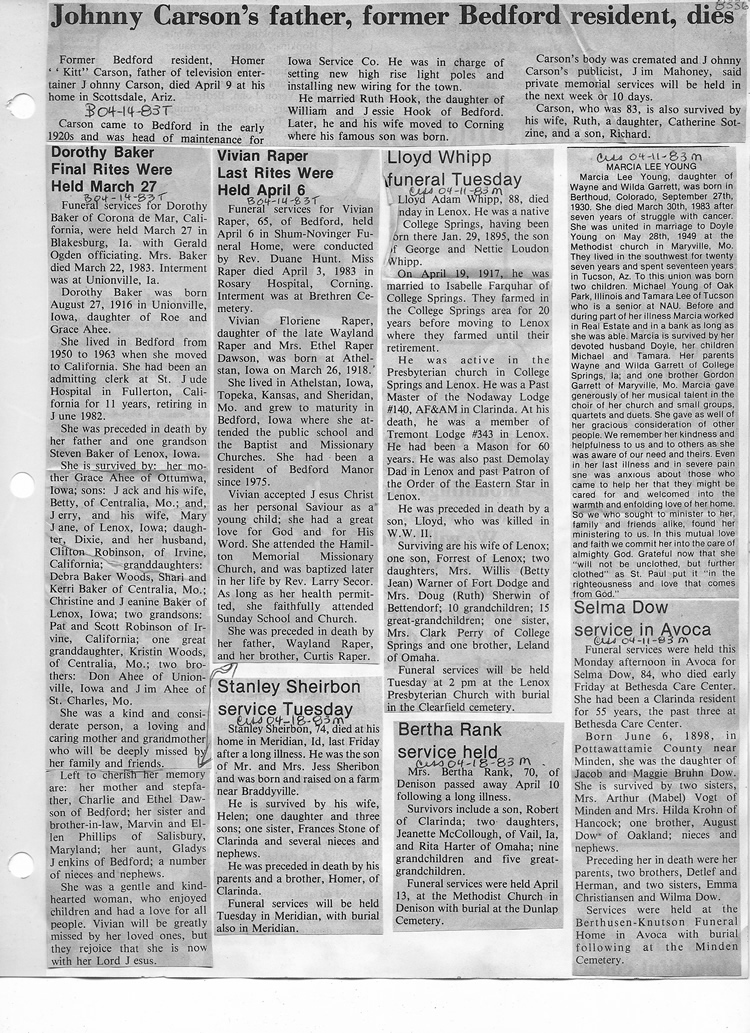 O'Dell's Abstracted Newspaper Index - Clippings - #8000's
