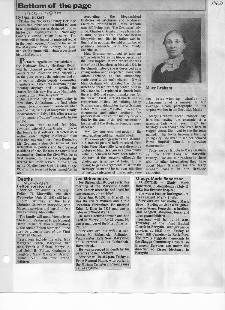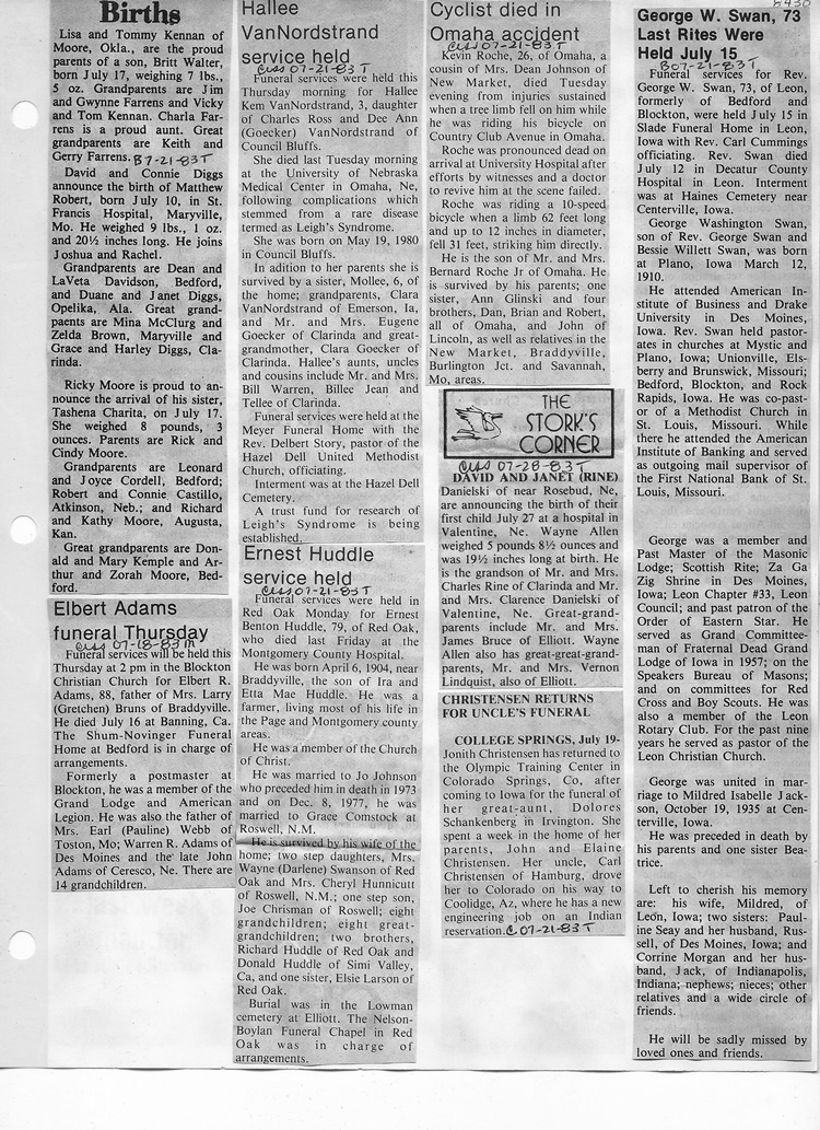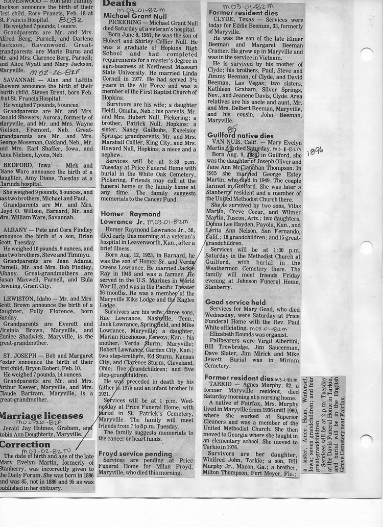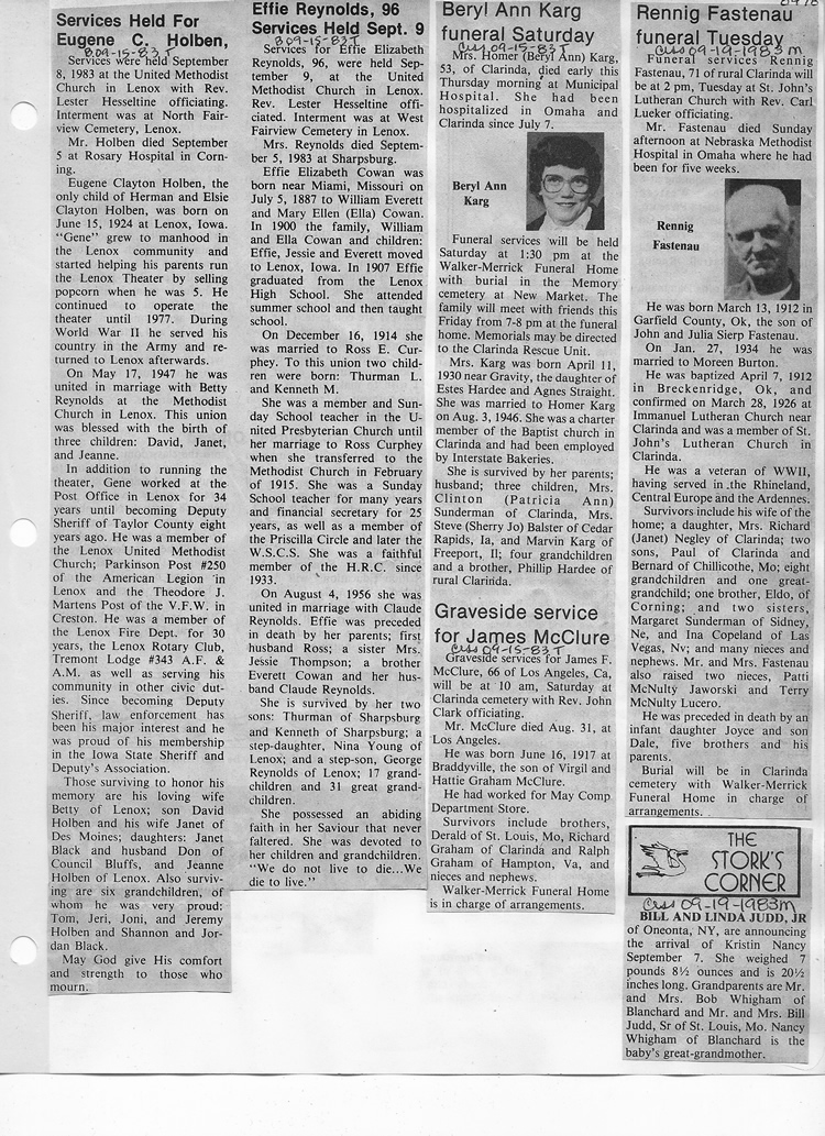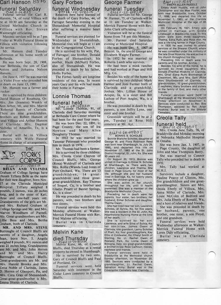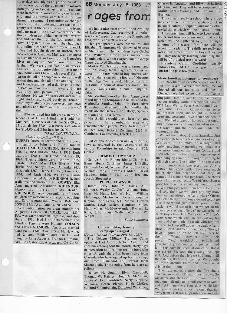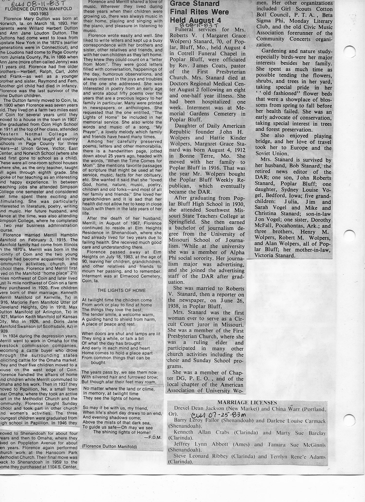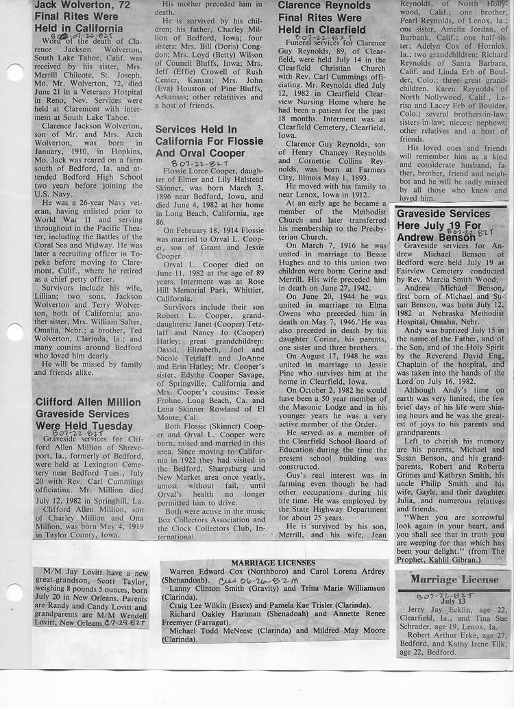 O'Dell's Abstracted Newspaper Index - Clippings - #8000's