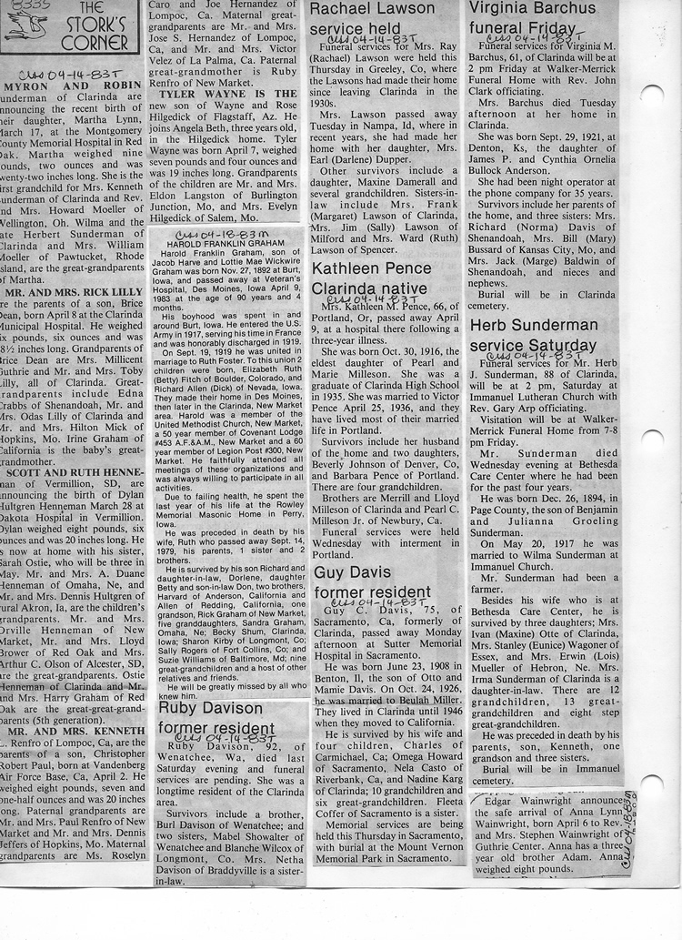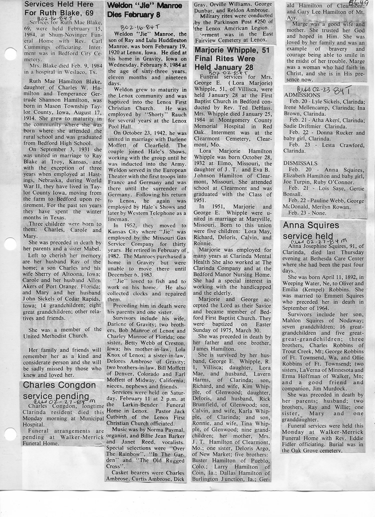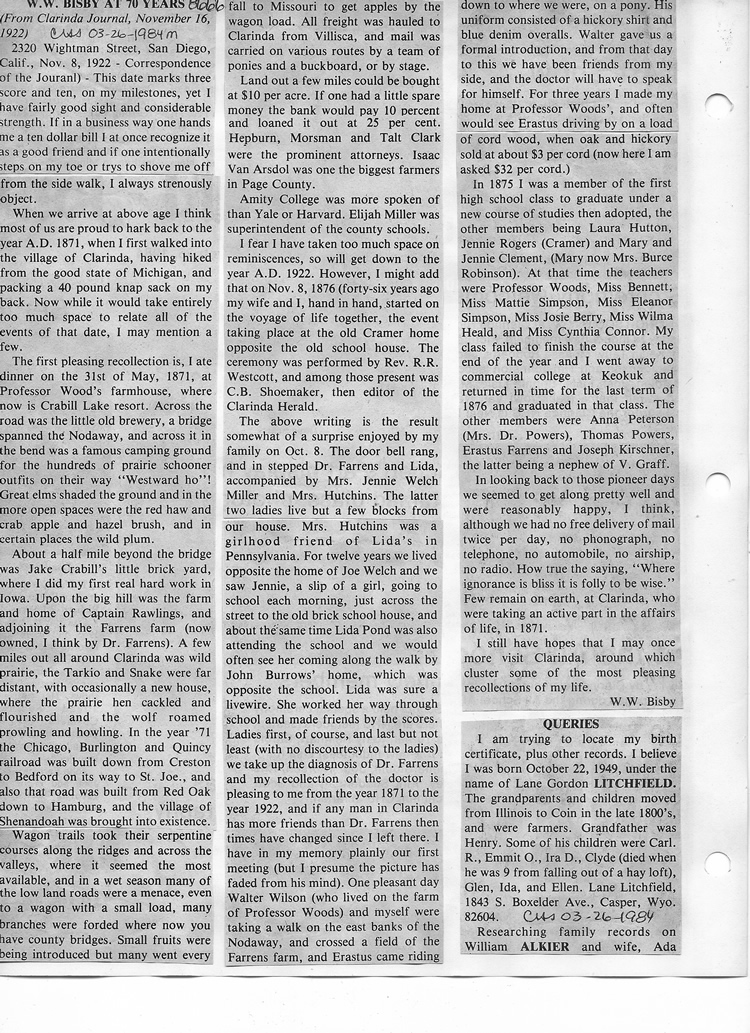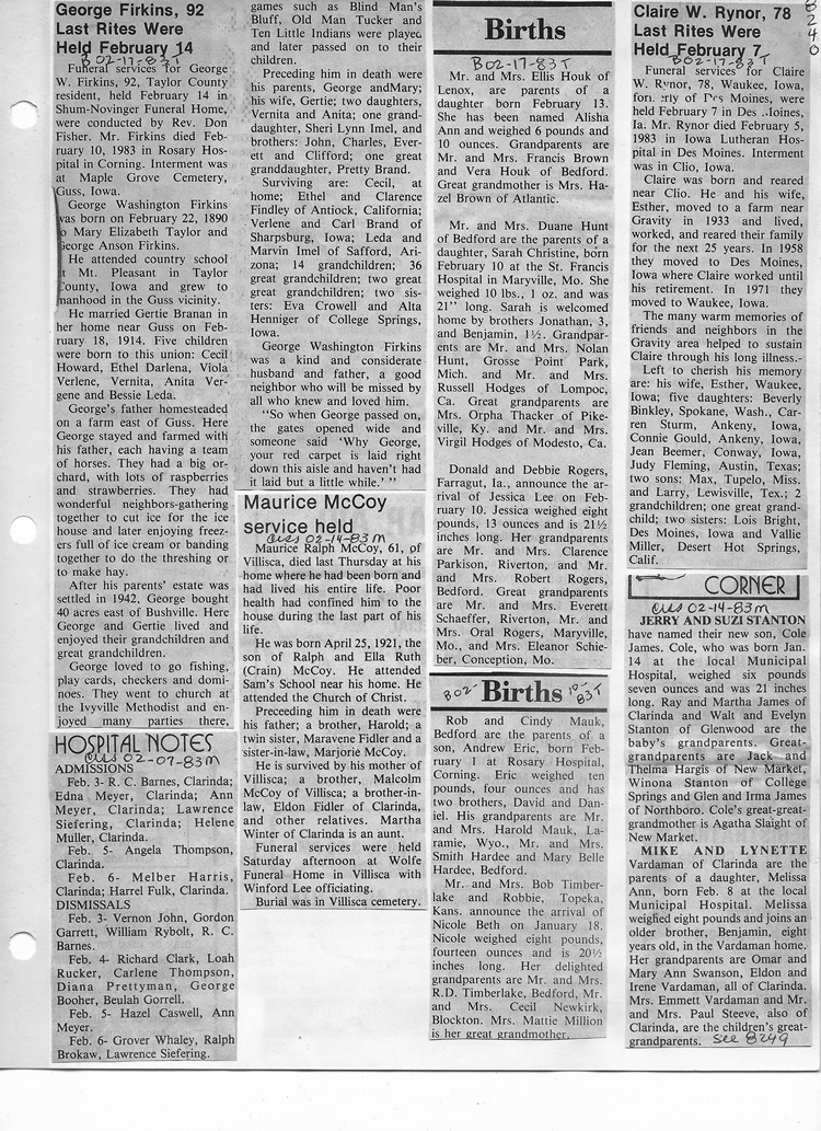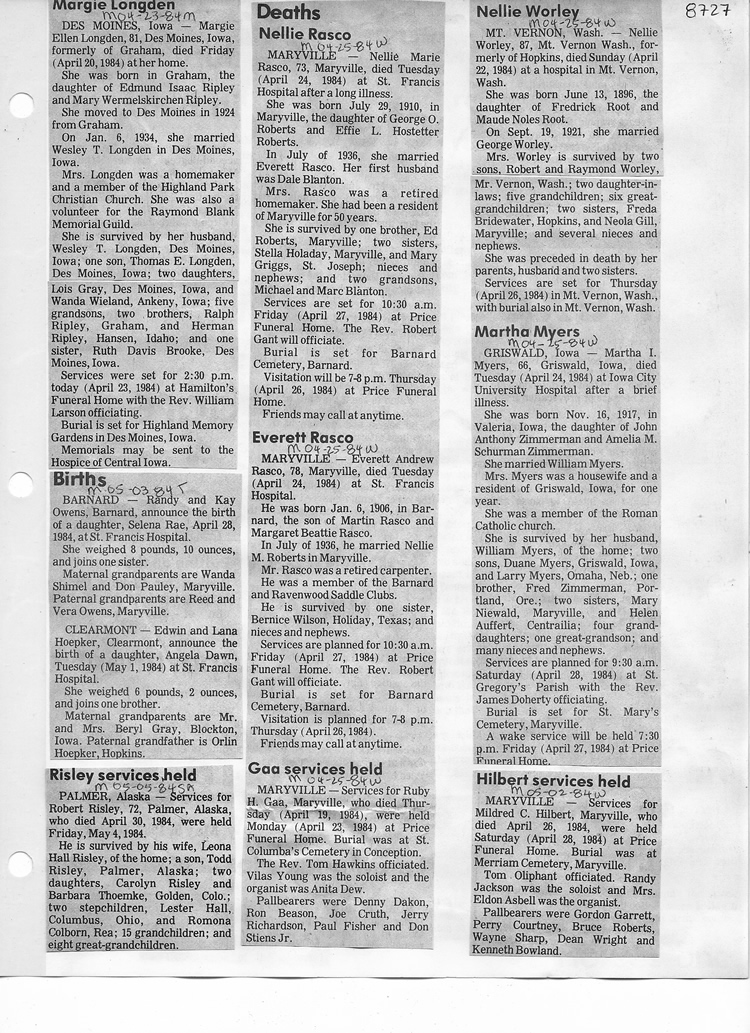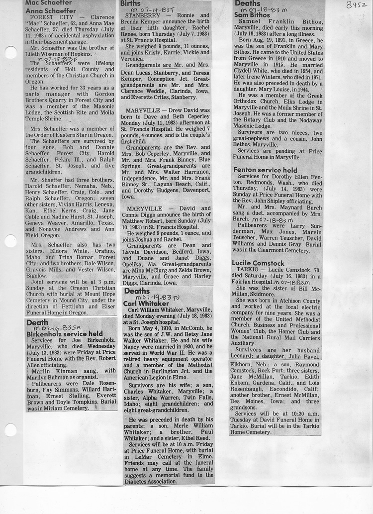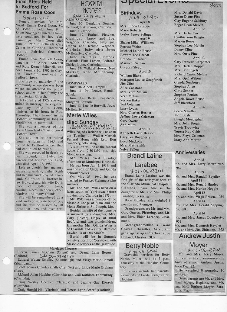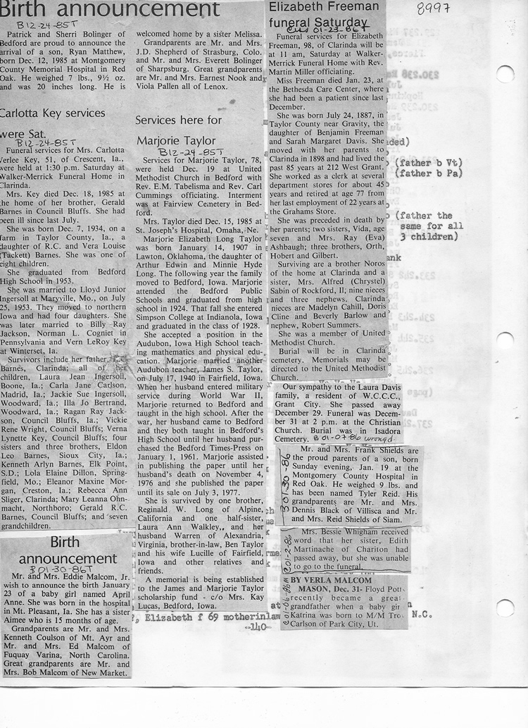 O'Dell's Abstracted Newspaper Index - Clippings - #8000's