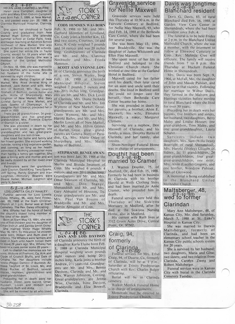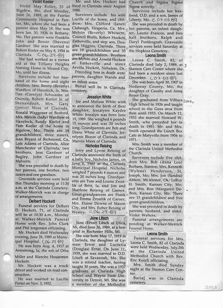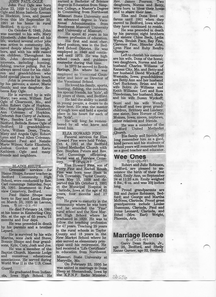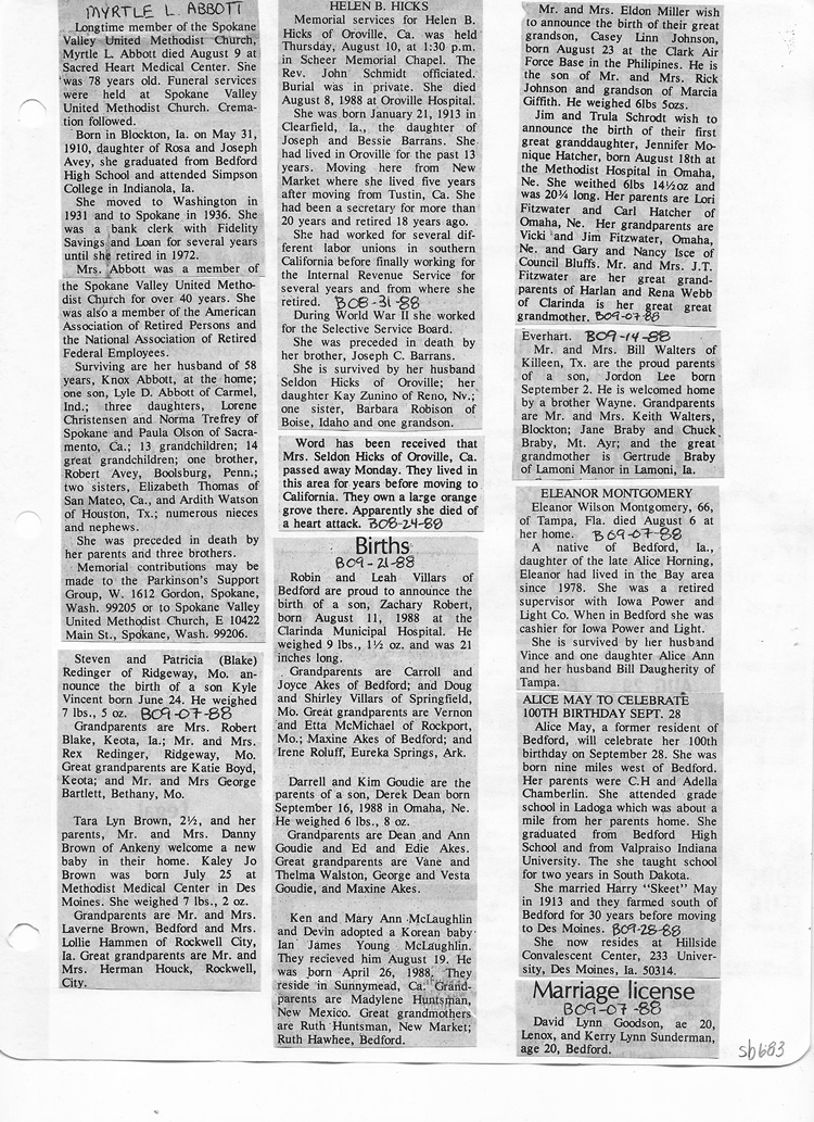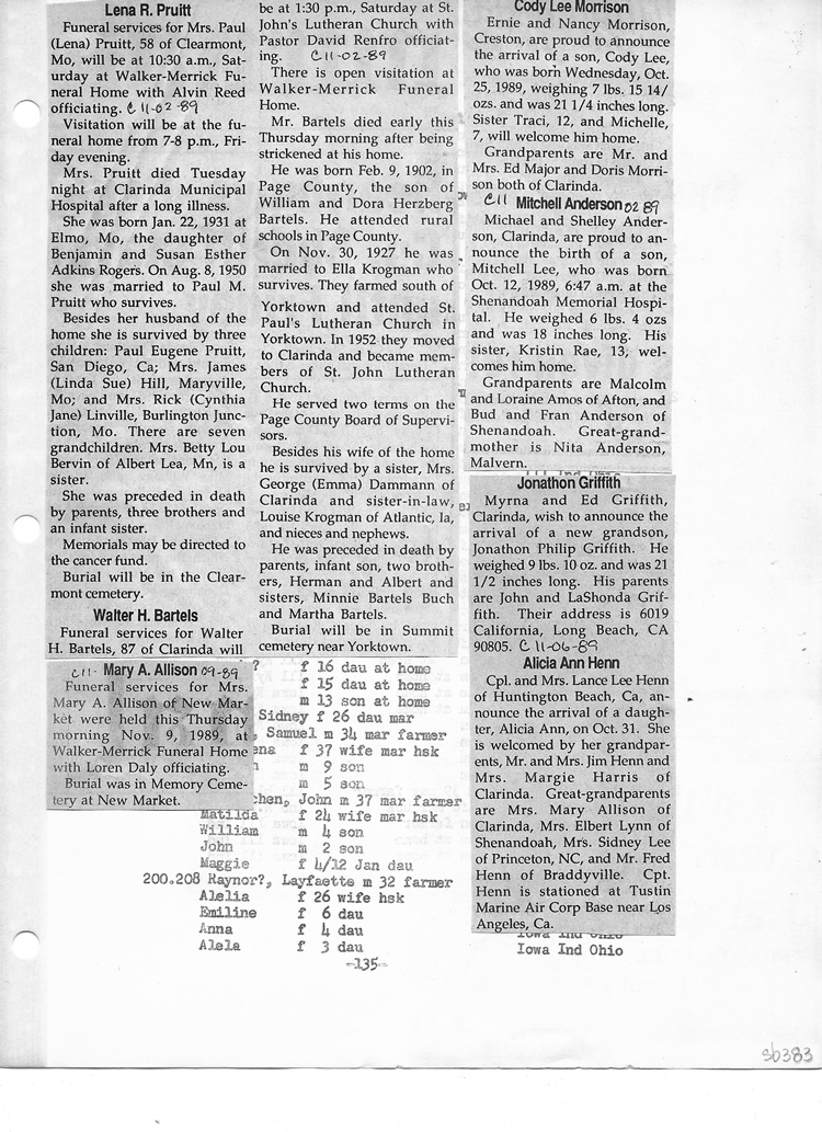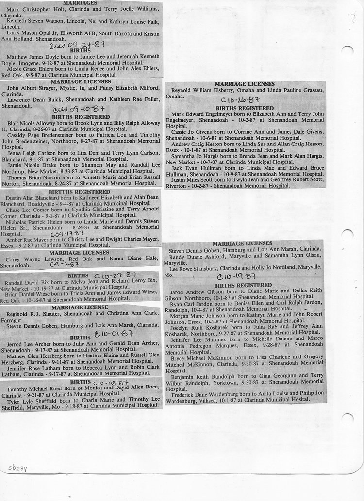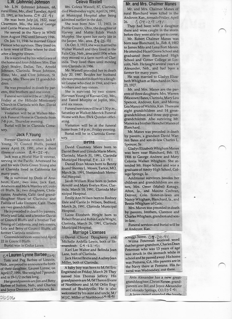 O'Dell's Abstracted Newspaper Index Clippings