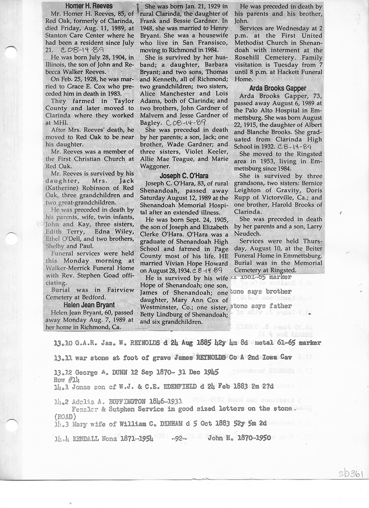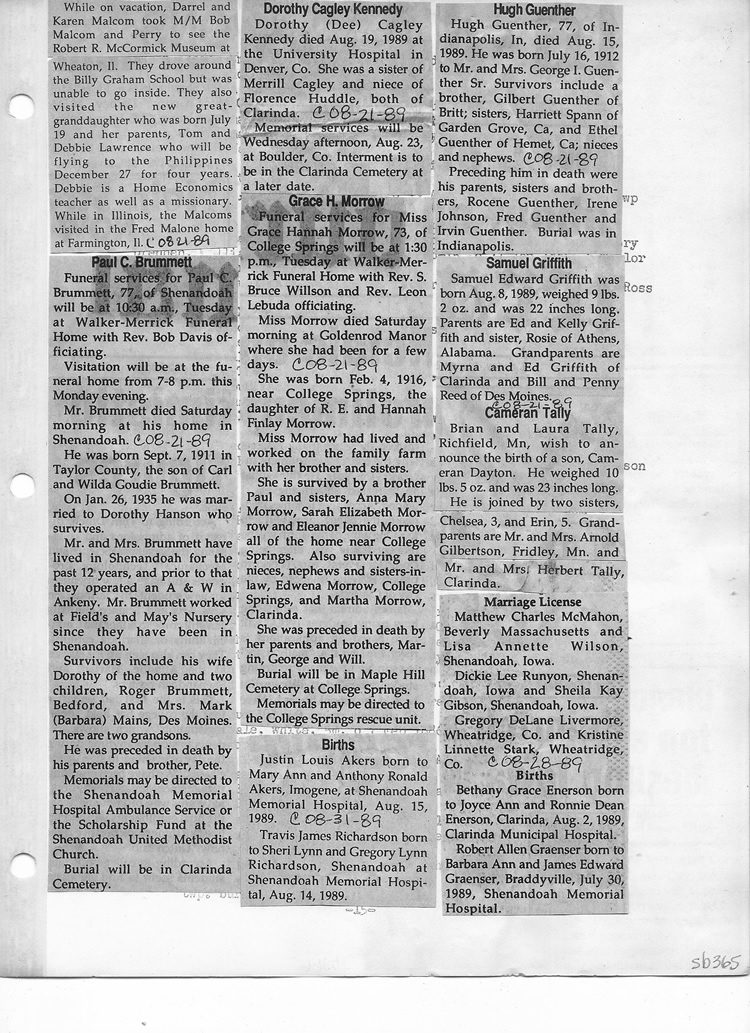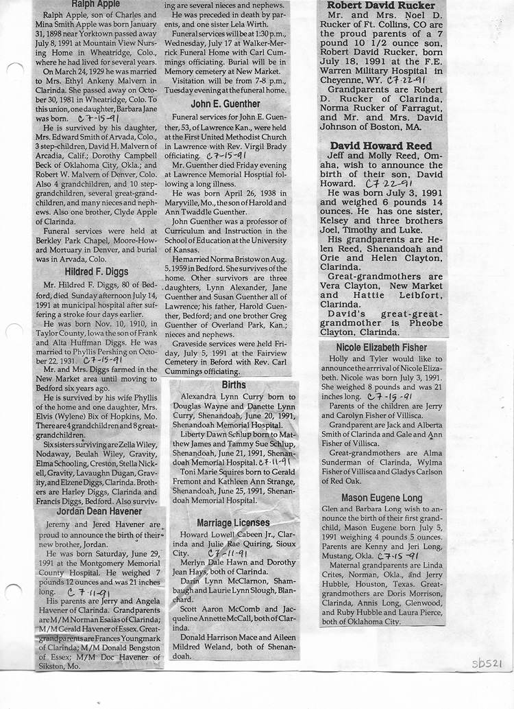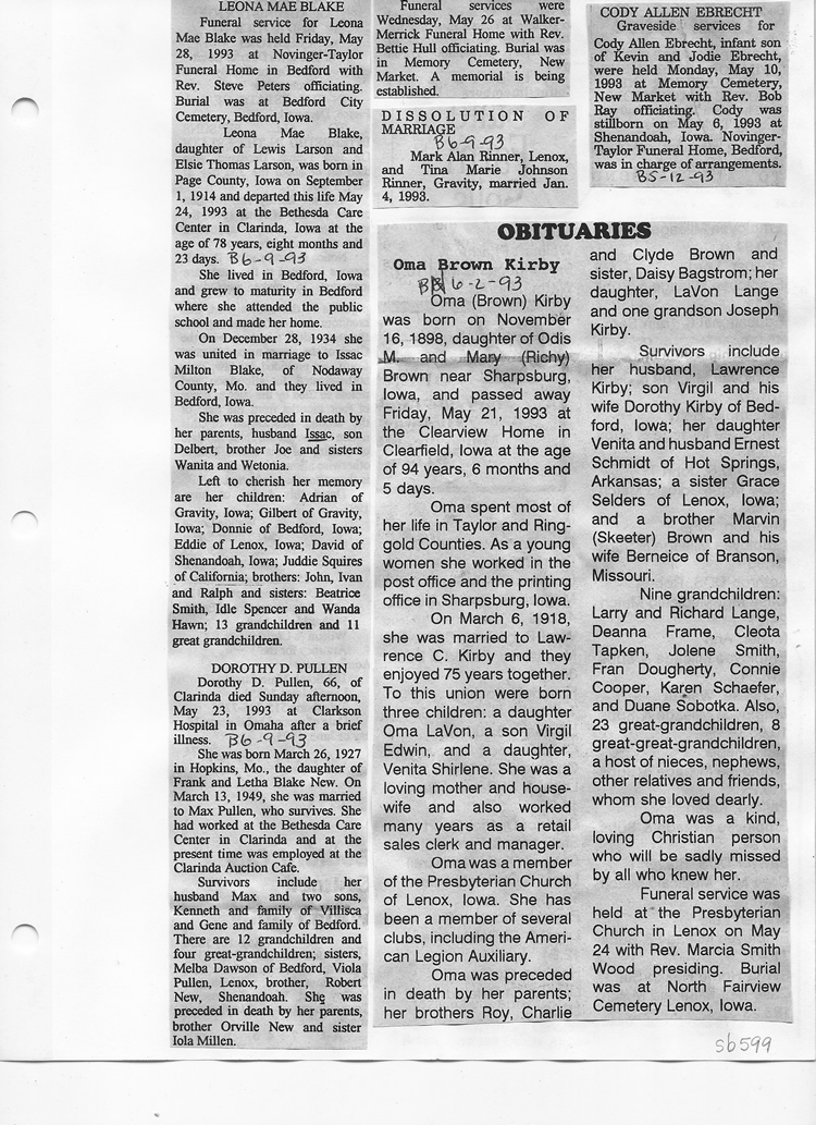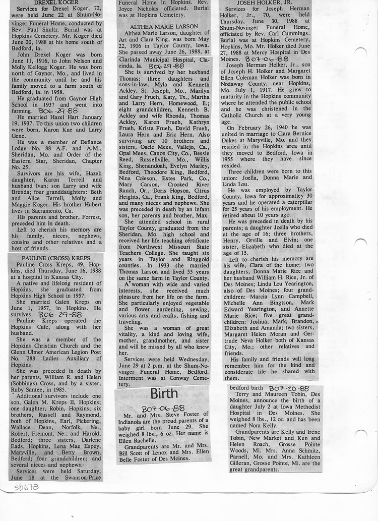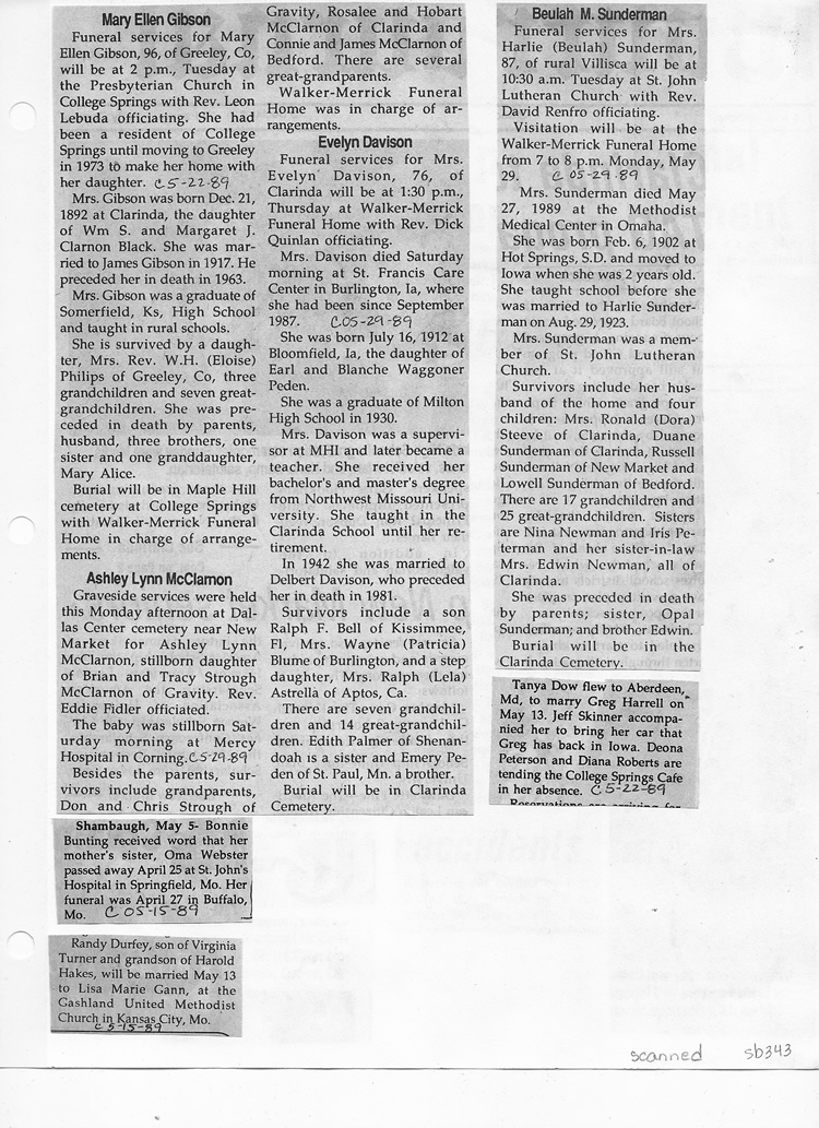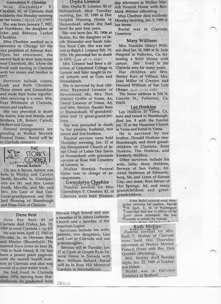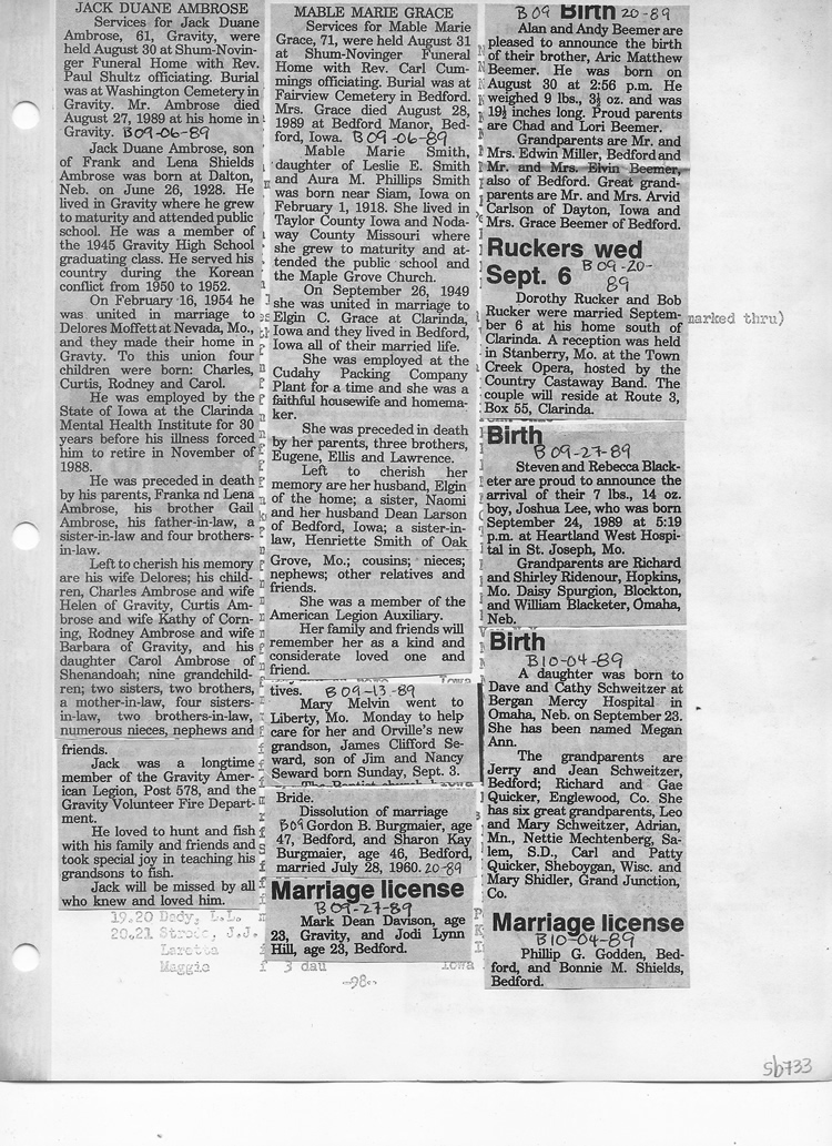 O'Dell's Abstracted Newspaper Index Clippings