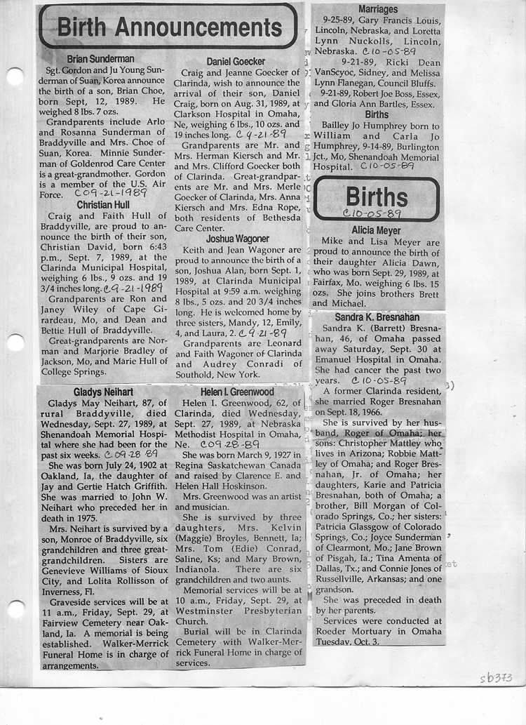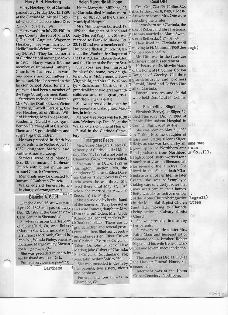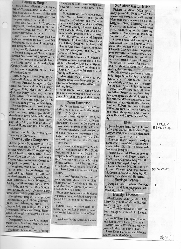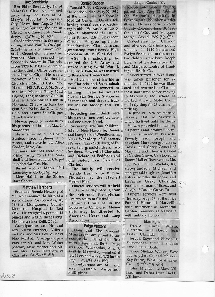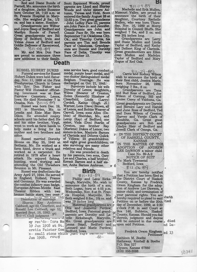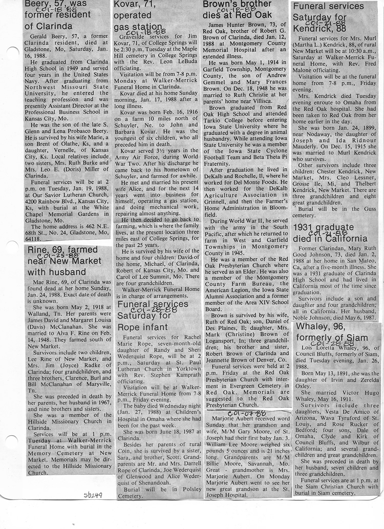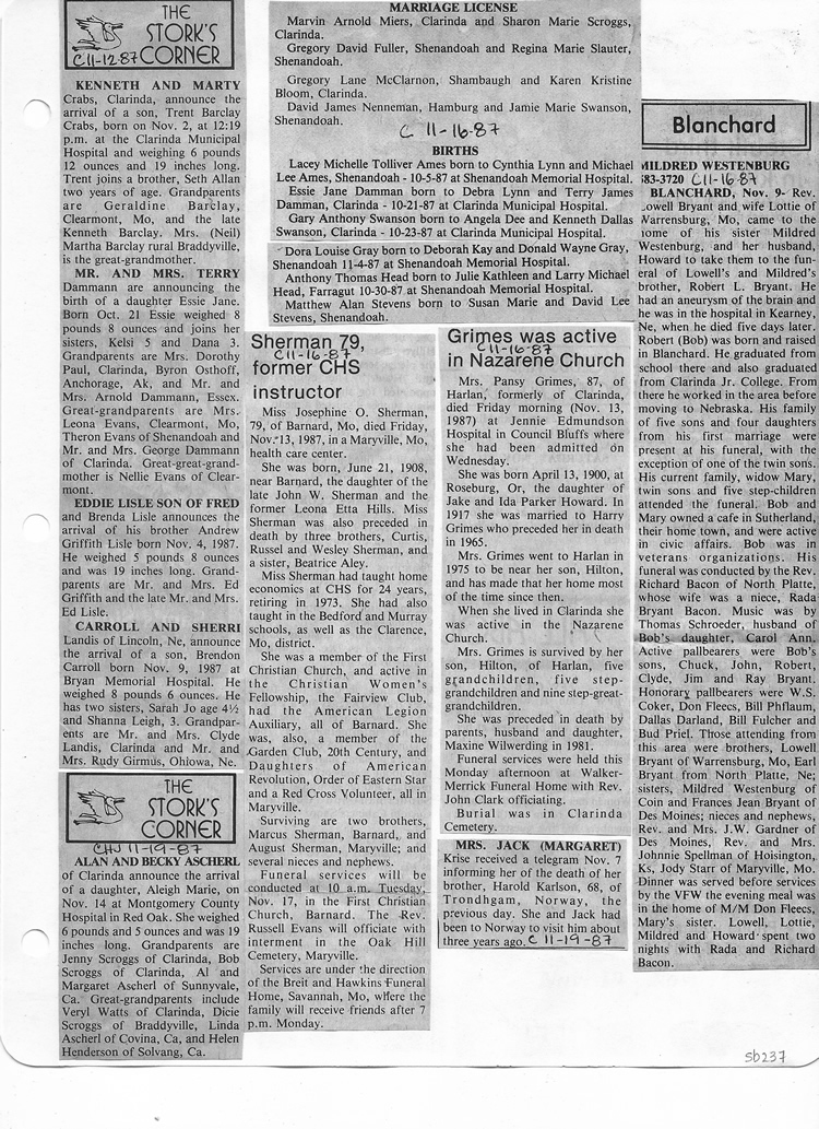 O'Dell's Abstracted Newspaper Index Clippings