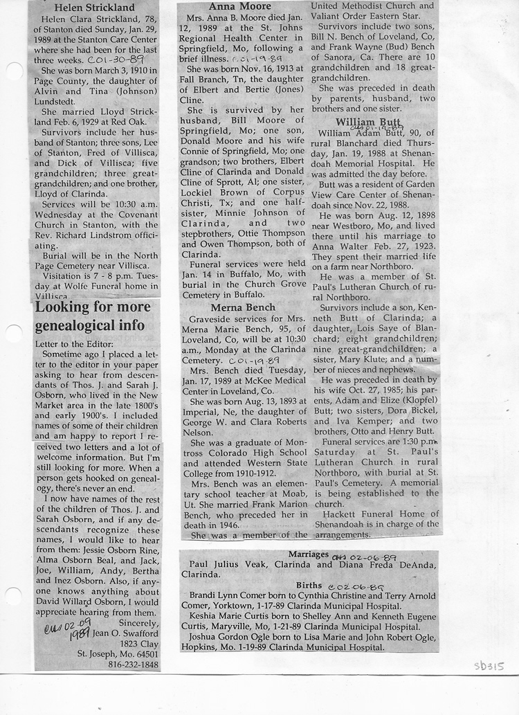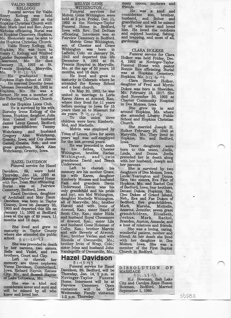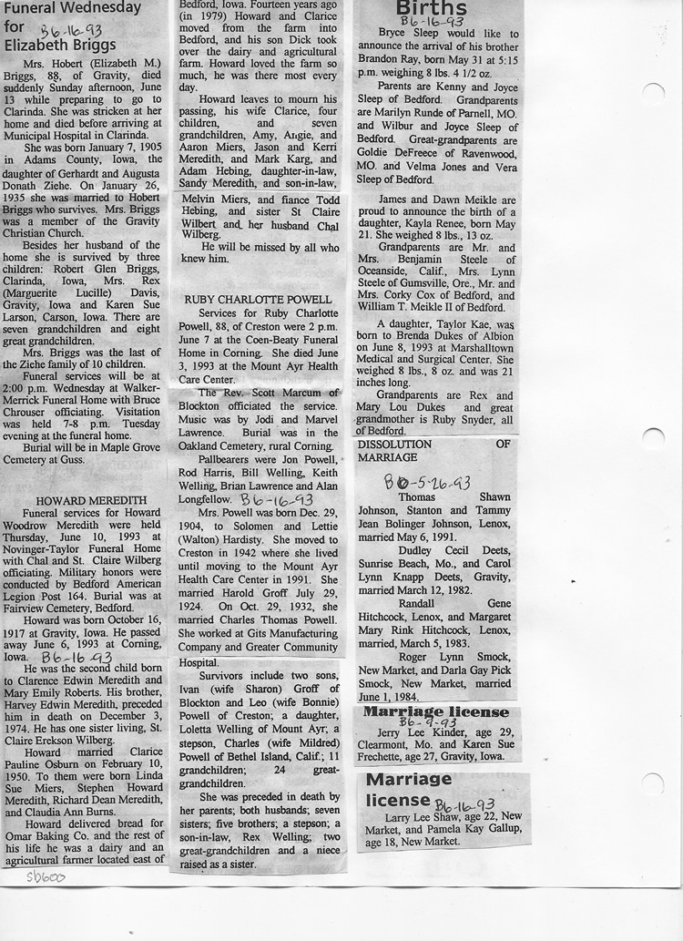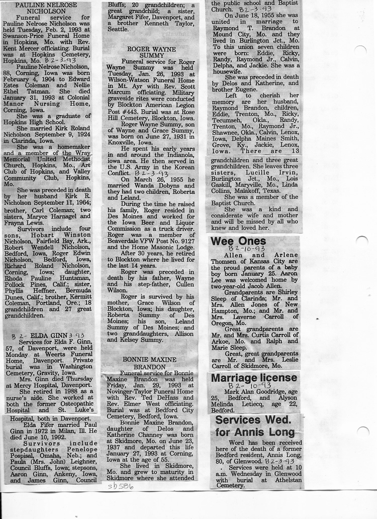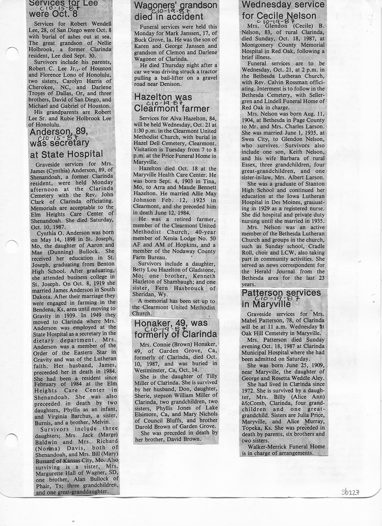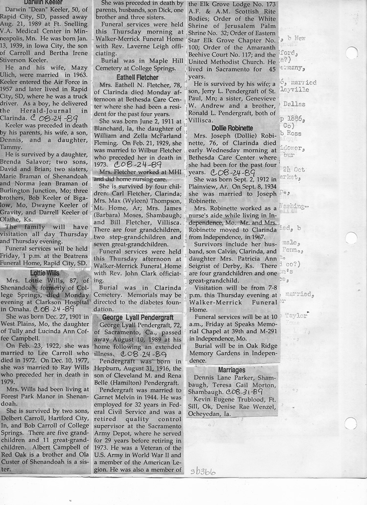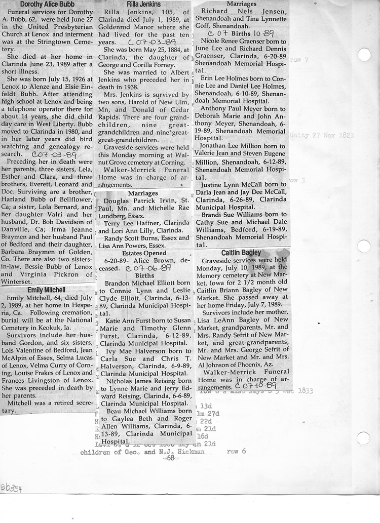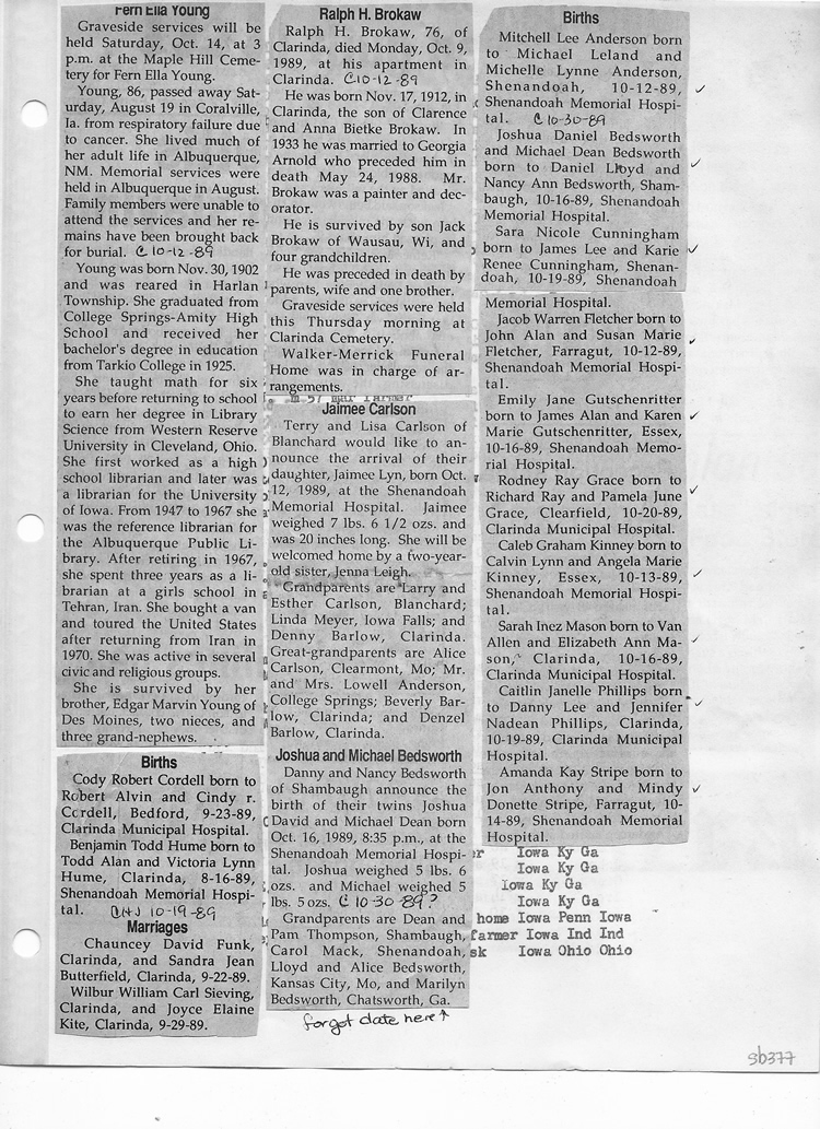 O'Dell's Abstracted Newspaper Index Clippings