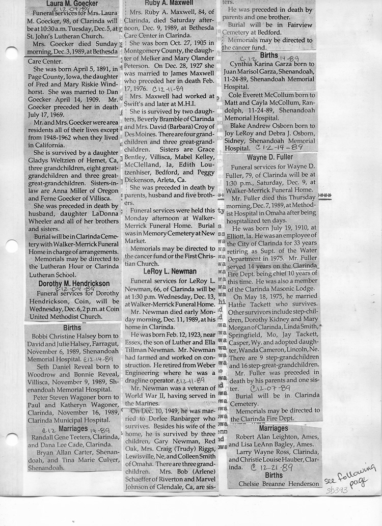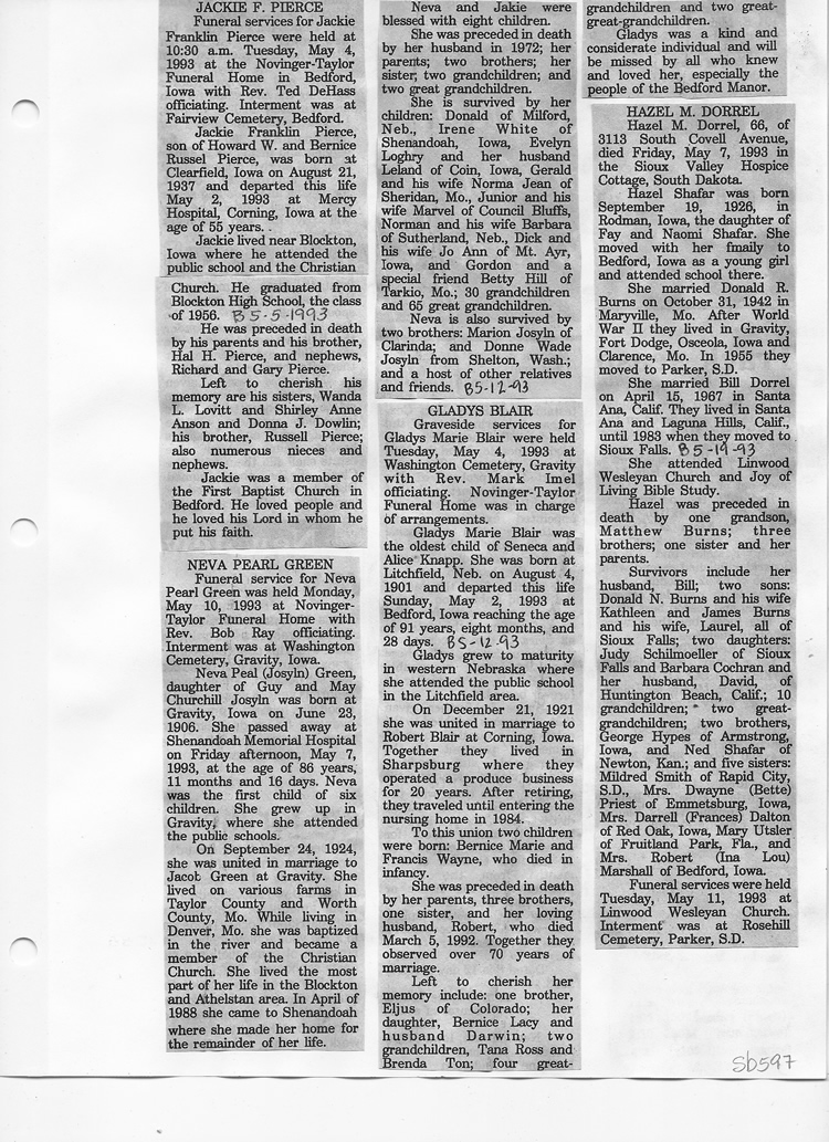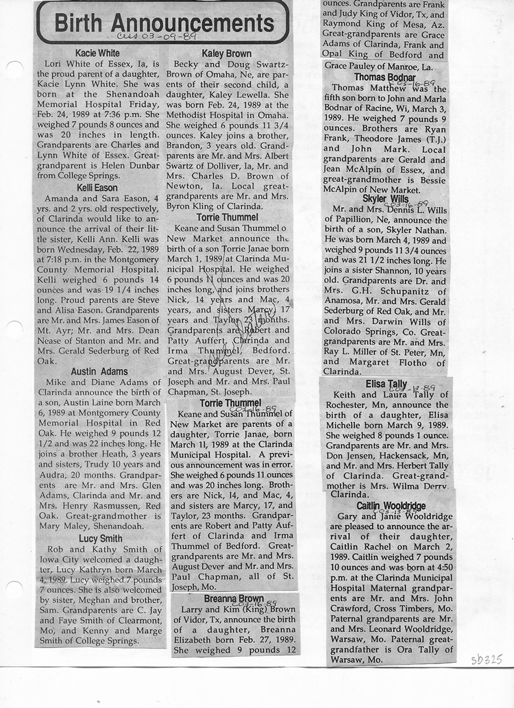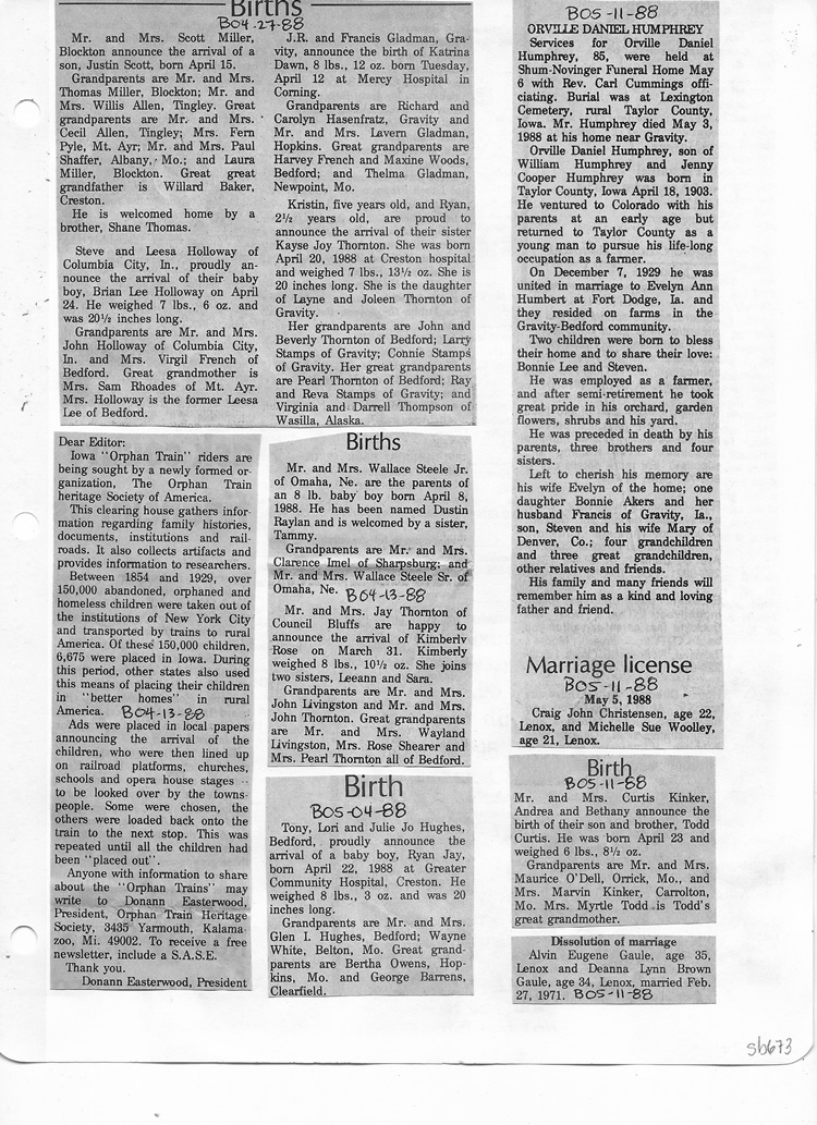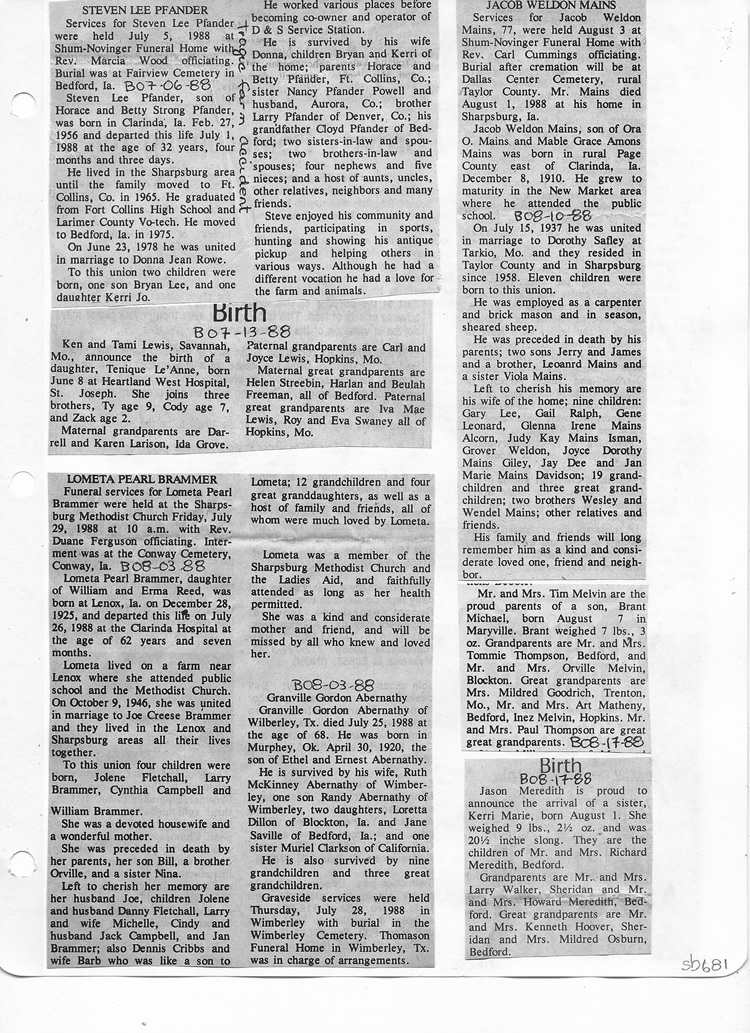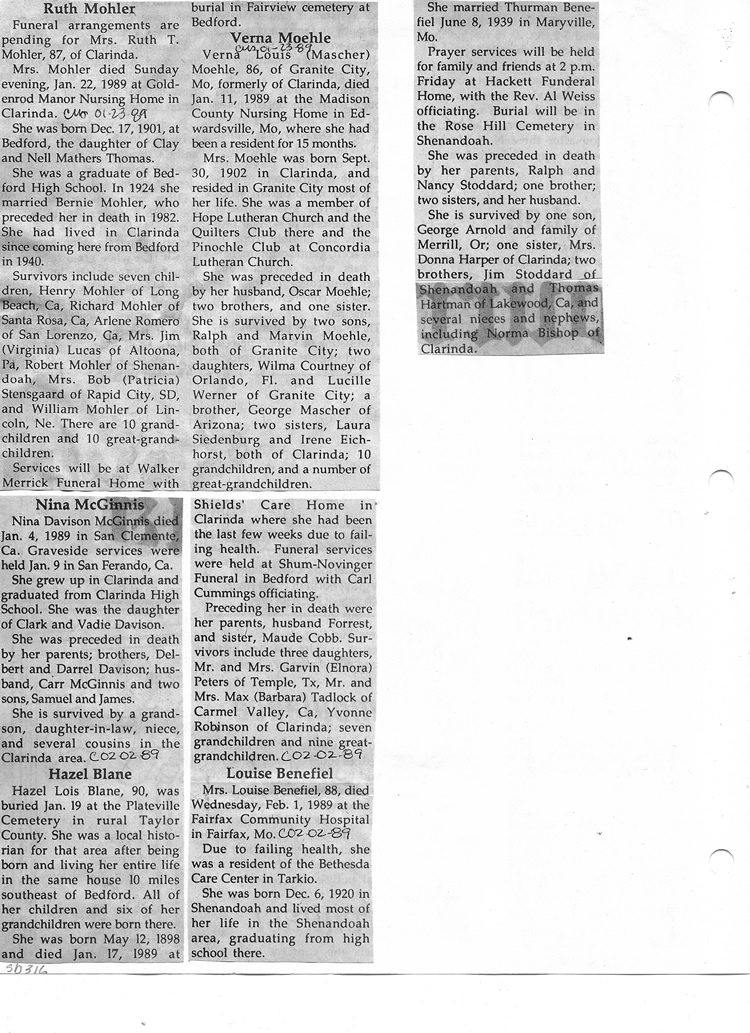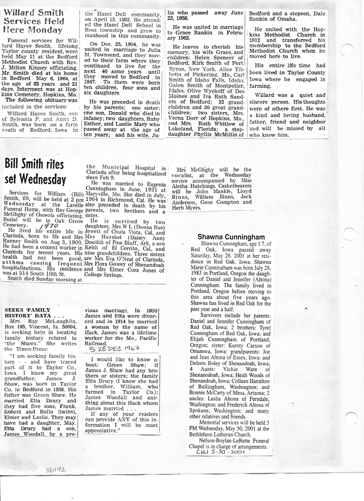 O'Dell's Abstracted Newspaper Index Clippings